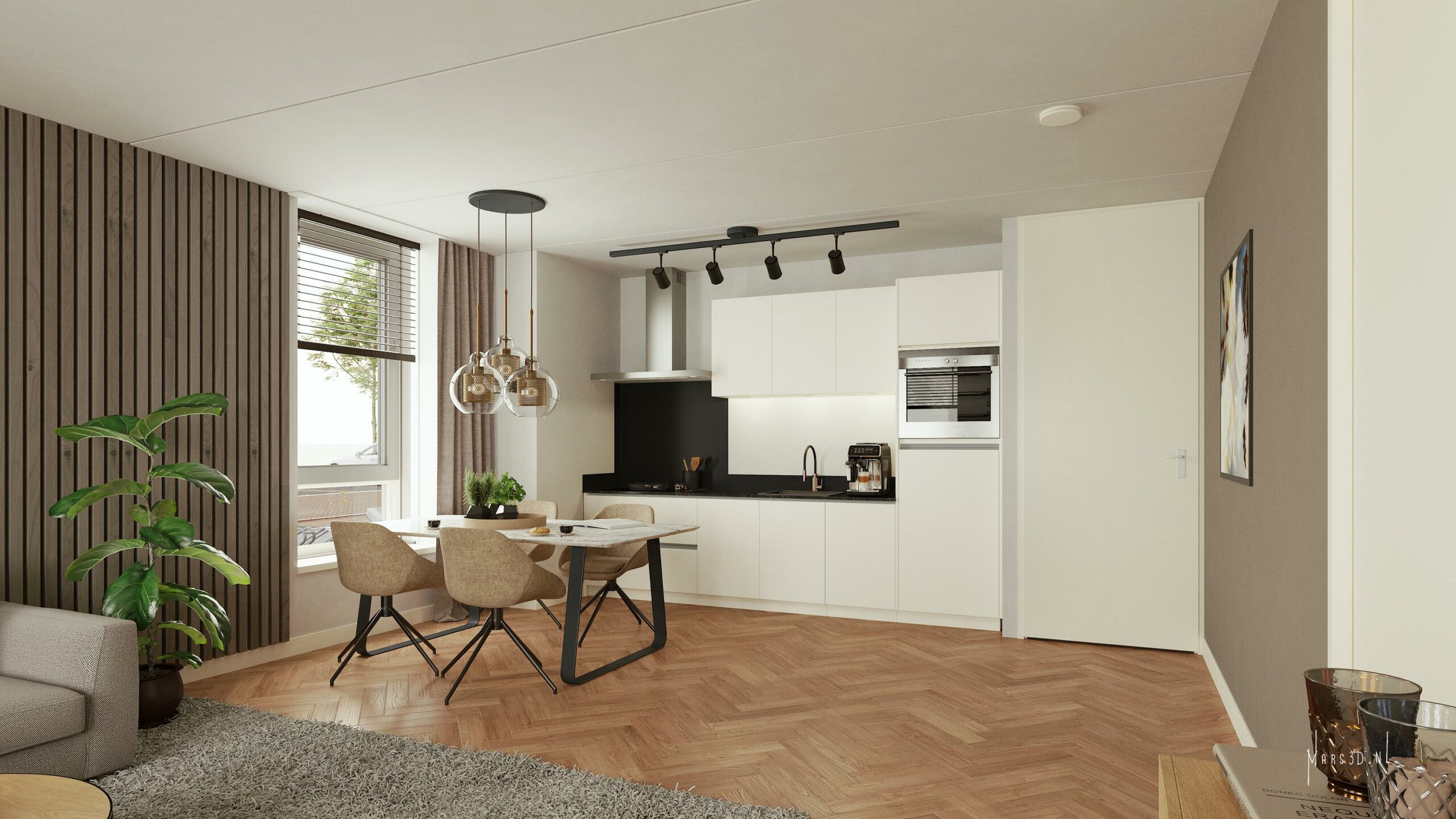 Het appartement is voorzien van een hoog afwerkingsniveau en beschikt over twee slaapkamers, een ruime woonkamer, open keuken voorzien van koelkast met vriesvak, 4 zone inductiekookplaat, vaatwasser en een combimagnetron. Vanaf de slaapkamer is er via een schuifdeur toegang naar de badkamer, deze is voorzien van douche, 2e toilet en badkamermeubel. De badkamer is ook vanaf de hal toegankelijk. Het appartement heeft de beschikking over een ruim terras of balkon.