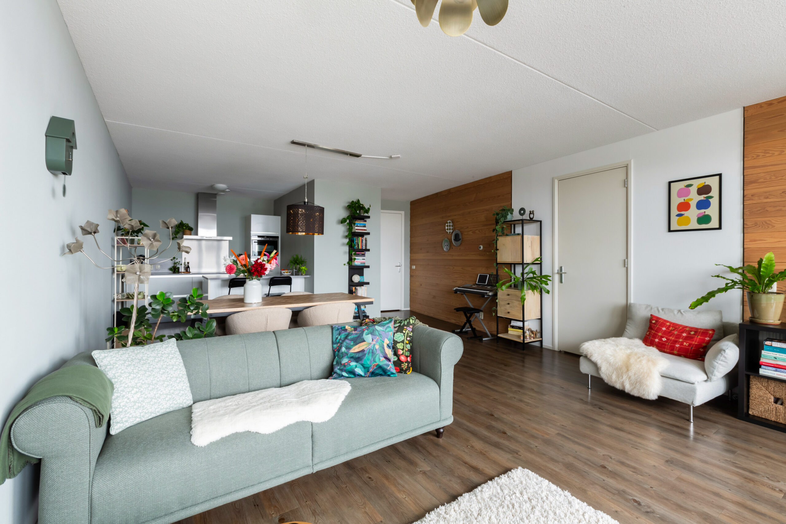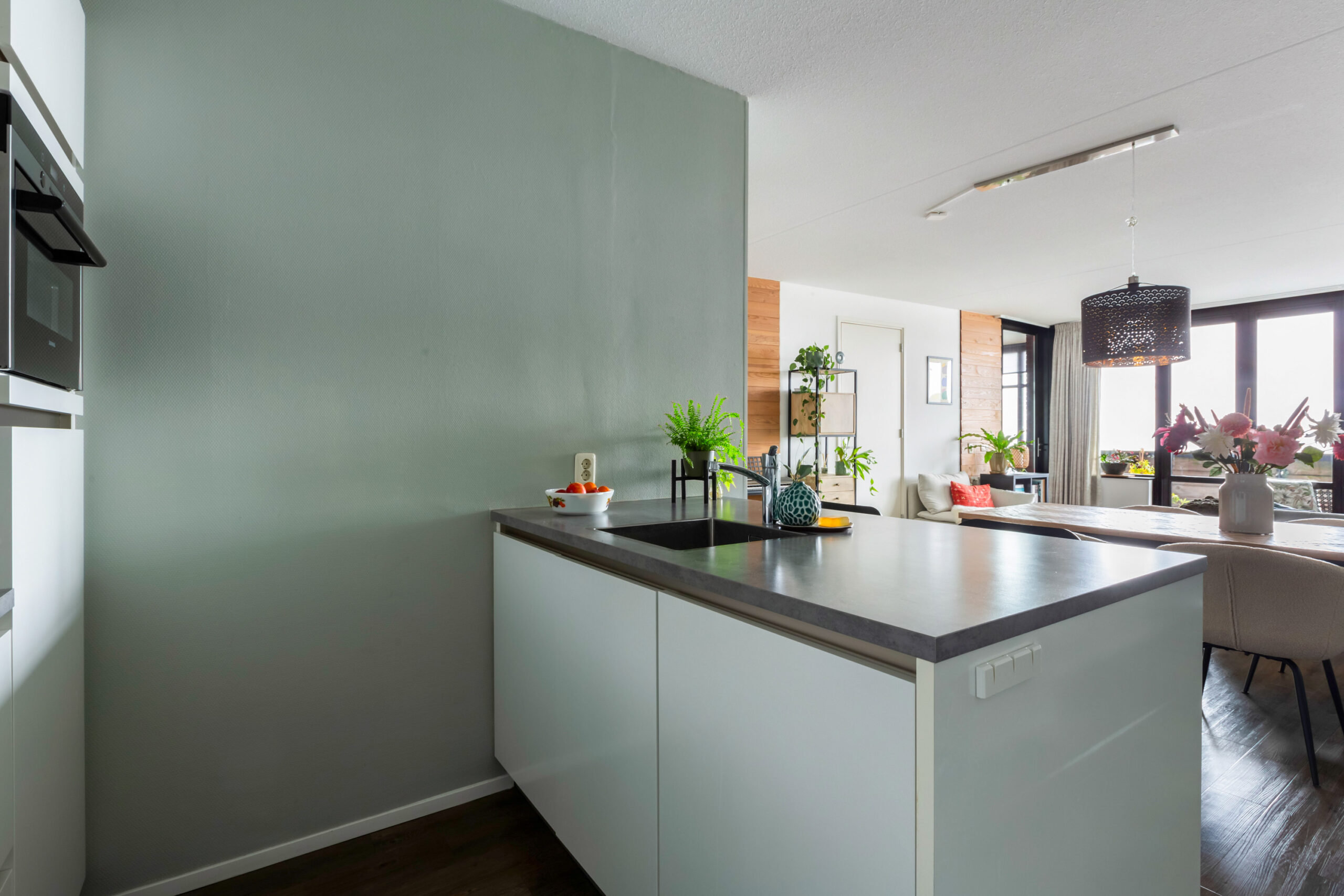 Het appartement beschikt over een ruime en lekkere lichte woonkamer met aansluitend de werk-/hobbykamer en een grote wintertuin/loggia. De loggia is goed afgewerkt en geeft tevens toegang tot het balkon (gelegen op het Westen en samen ca. 13 m²). Verder is er een open keuken voorzien van een moderne inrichting met inbouwapparatuur, twee slaapkamers, modern sanitair en een praktische inpandige berging met wasmachine-aansluiting en opstelplaats van de warmtepompboiler. In het souterrain is er de beschikking over een privé-(fietsen)berging en een privé-parkeerplaats.
