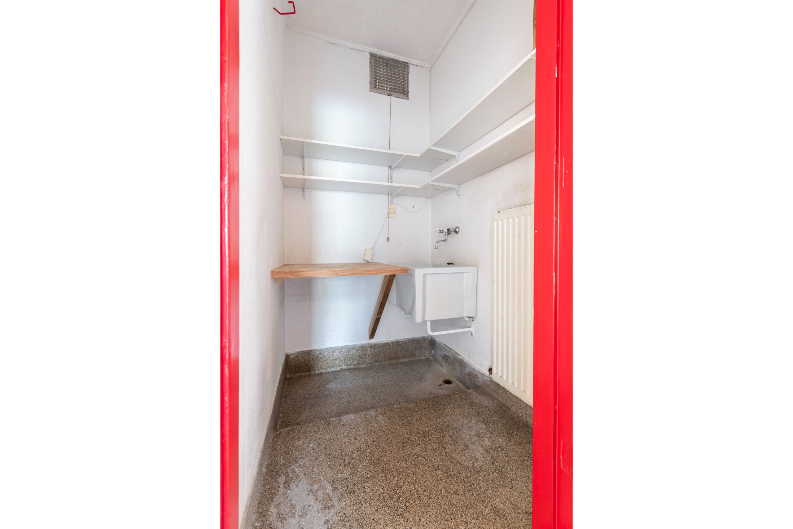 Begane grond: entree/hal met meterkast, via tussenhal toegang tot 1e slaapkamer met aansluitingen voor de was-apparatuur, tuingerichte woonkamer voorzien van een wastafel en met een schuifpui die toegang geeft tot de oprit, dichte keukenruimte met eenvoudige keukenopstelling en aangrenzende kelder, toiletruimte, sanitaire ruimte met wasbak, trapopgang, 2e slaapkamer met vaste kast en toegang tot zowel de overkapping als de 3e slaapkamer met wastafel.