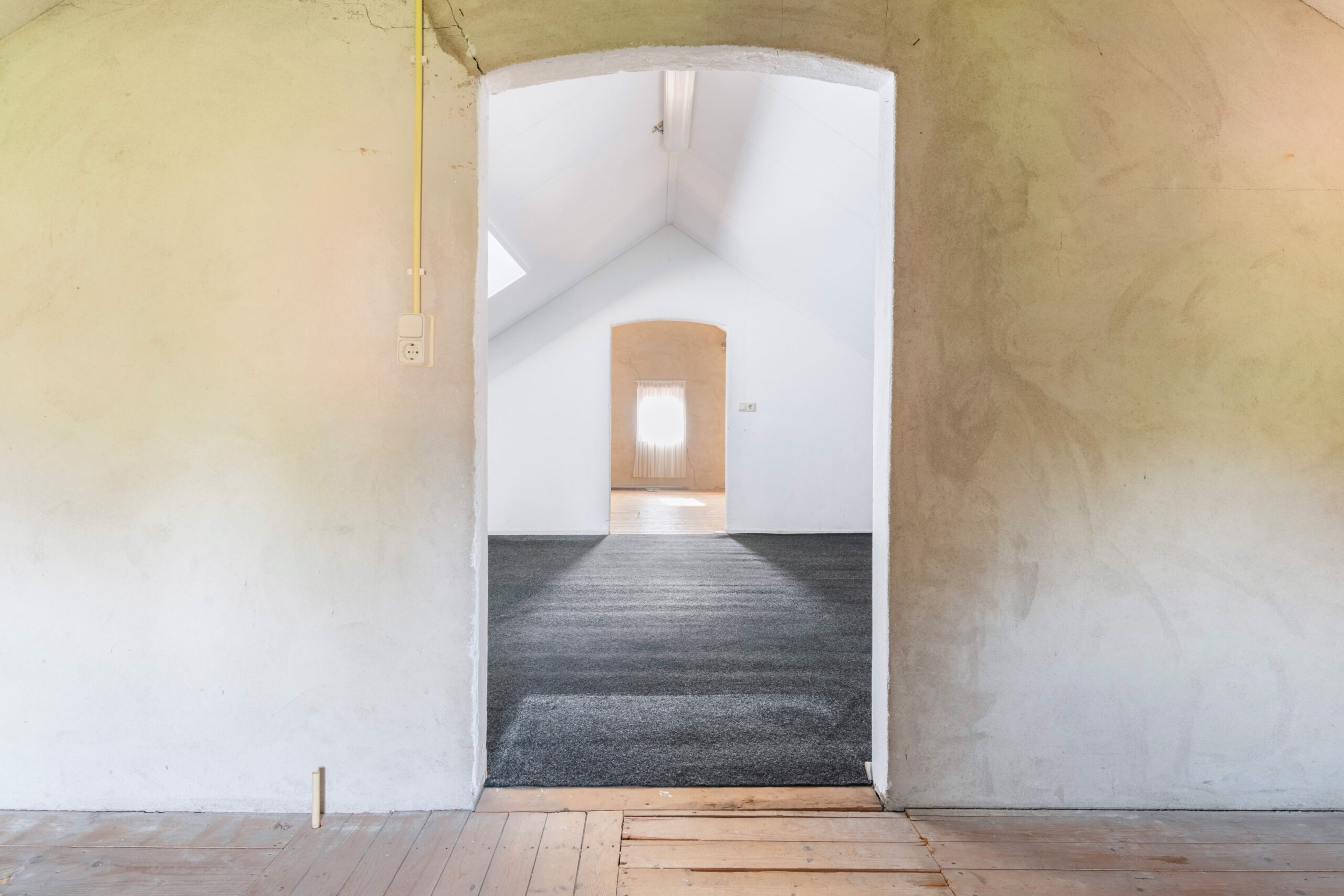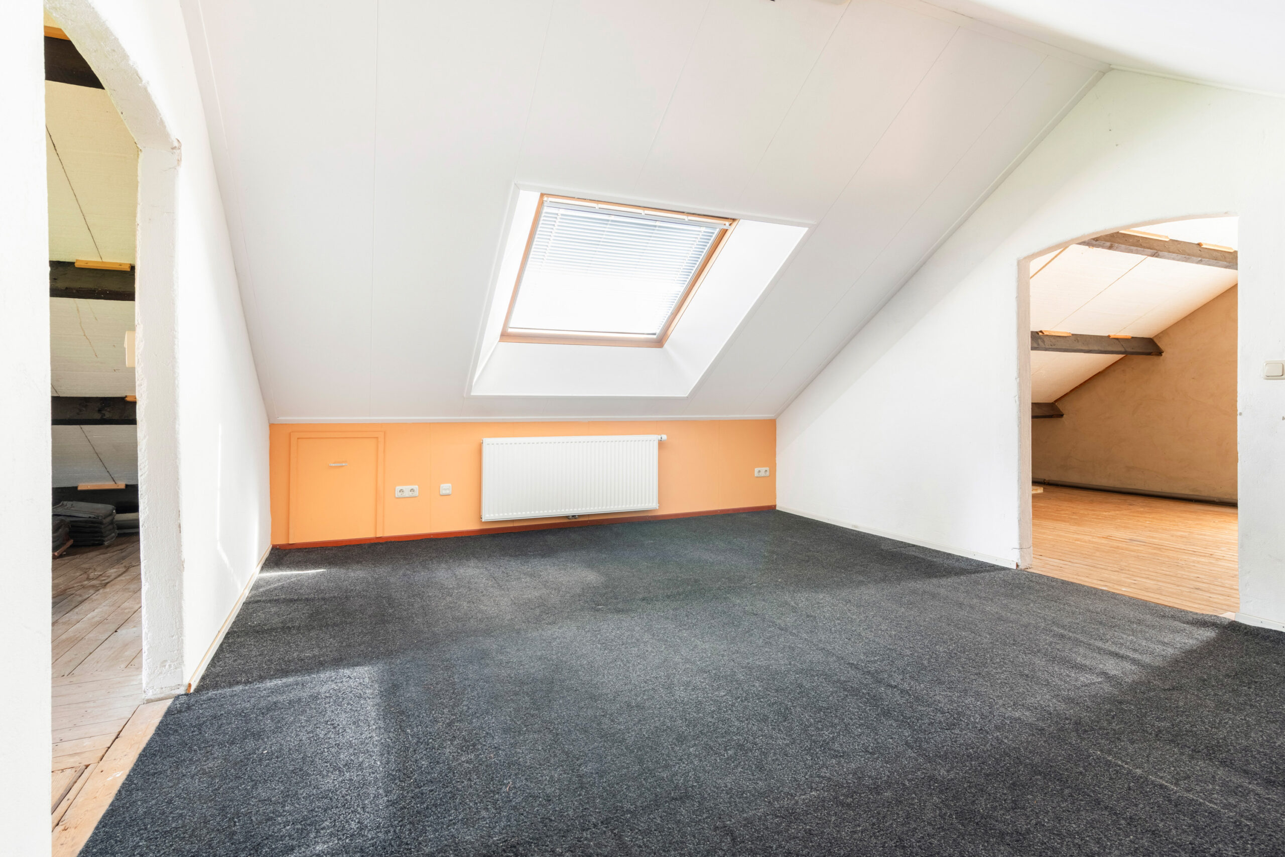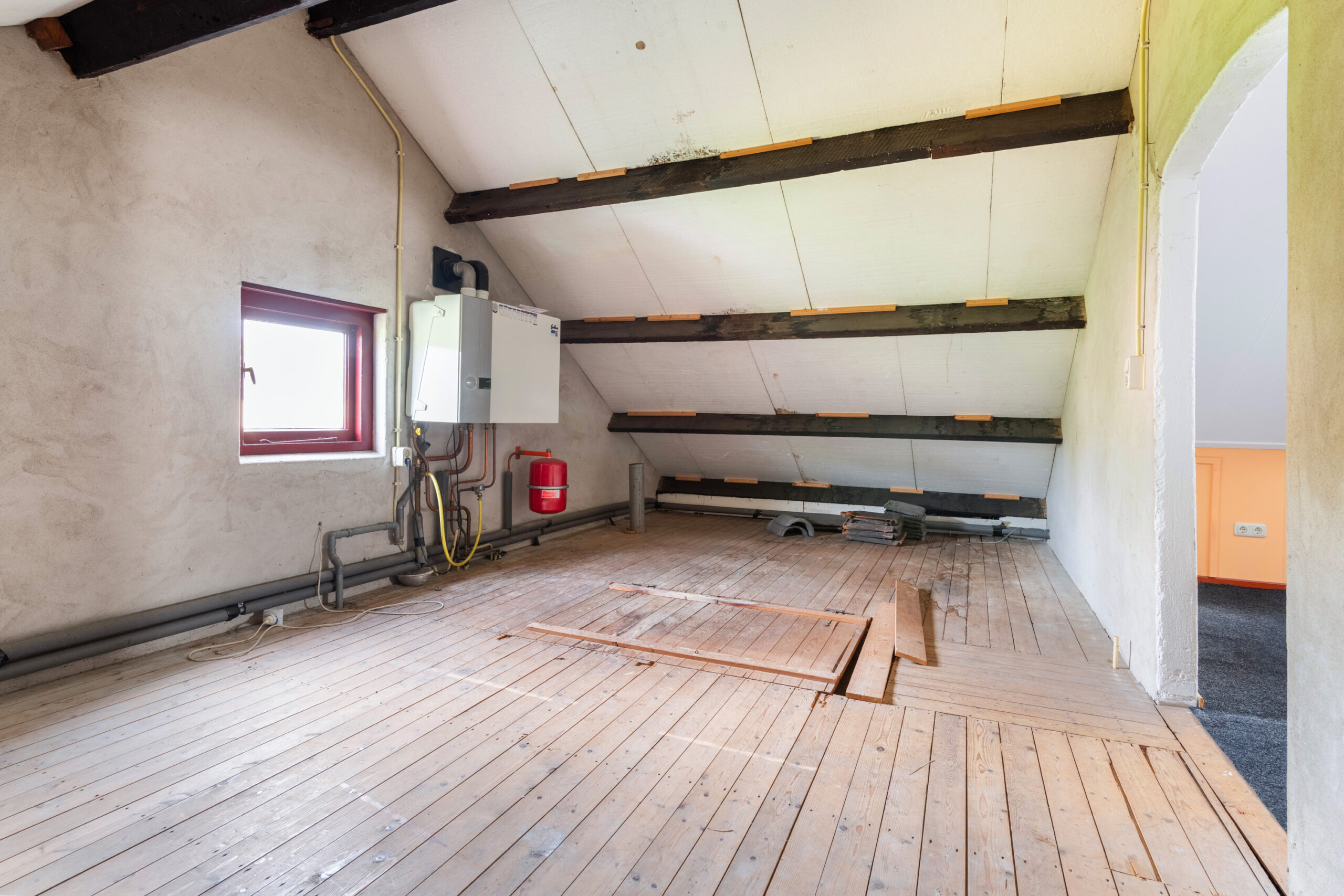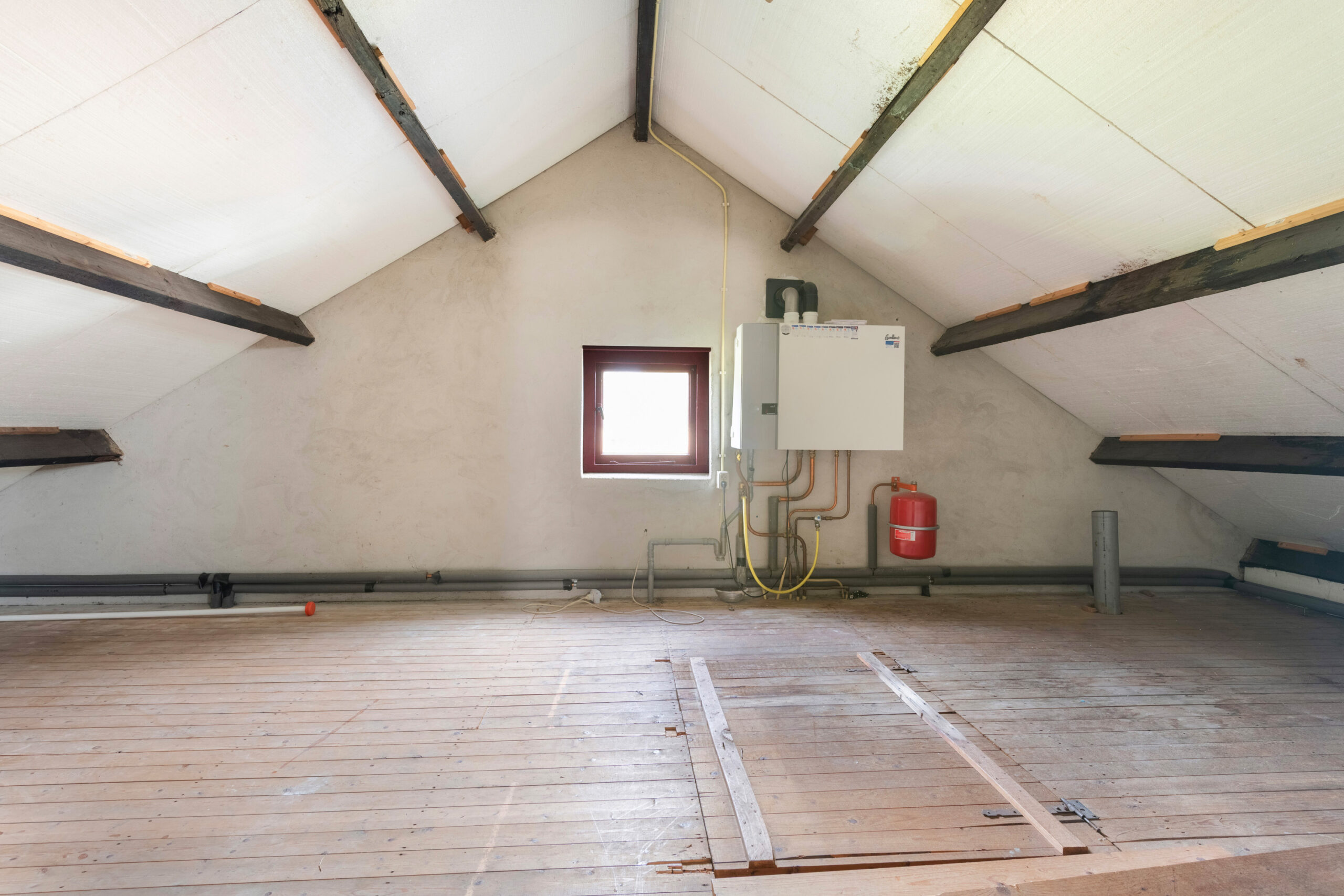 Verdieping: overloop met open doorgang naar twee separate kamers en opstelplaats voor de cv-ketel (Nefit).