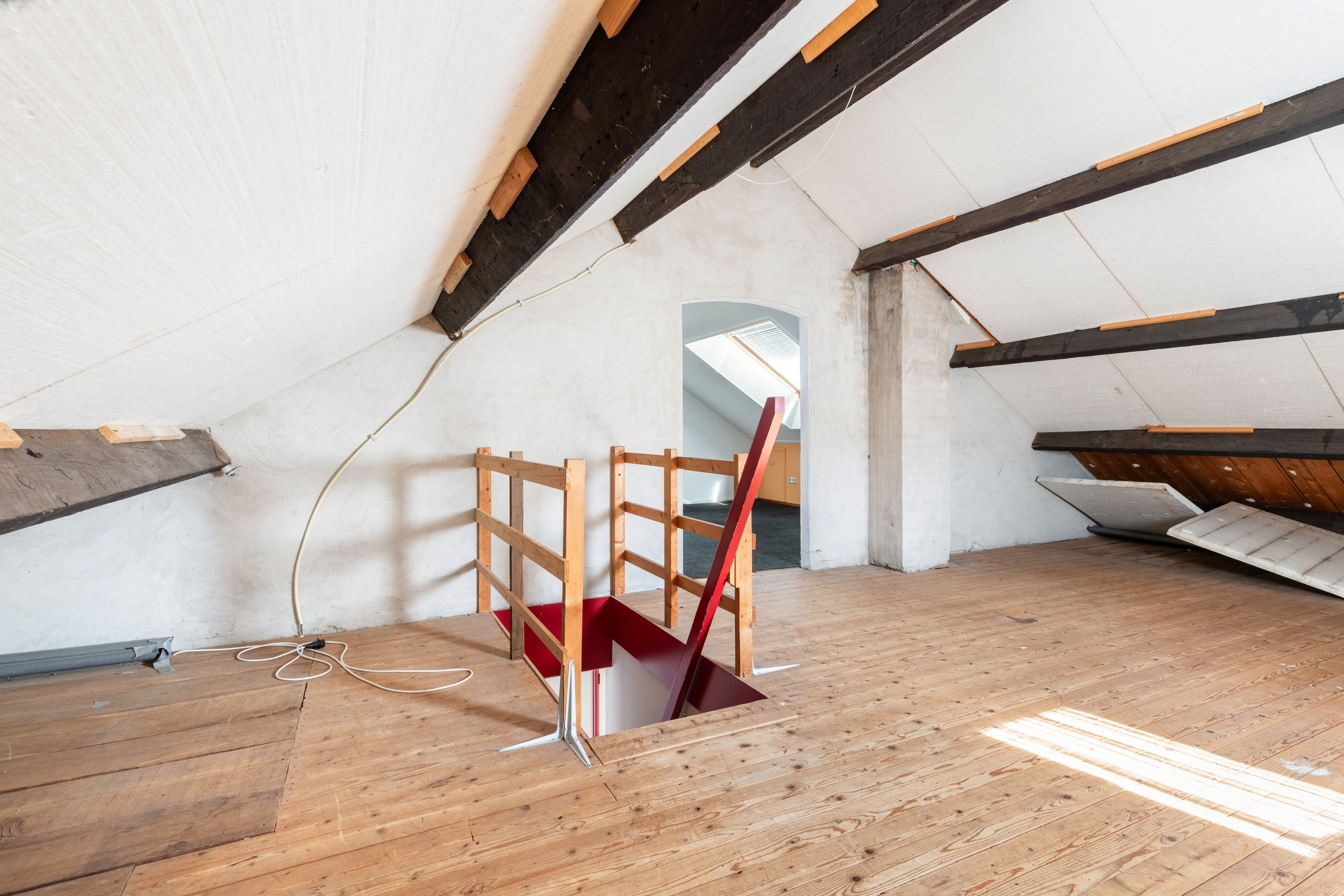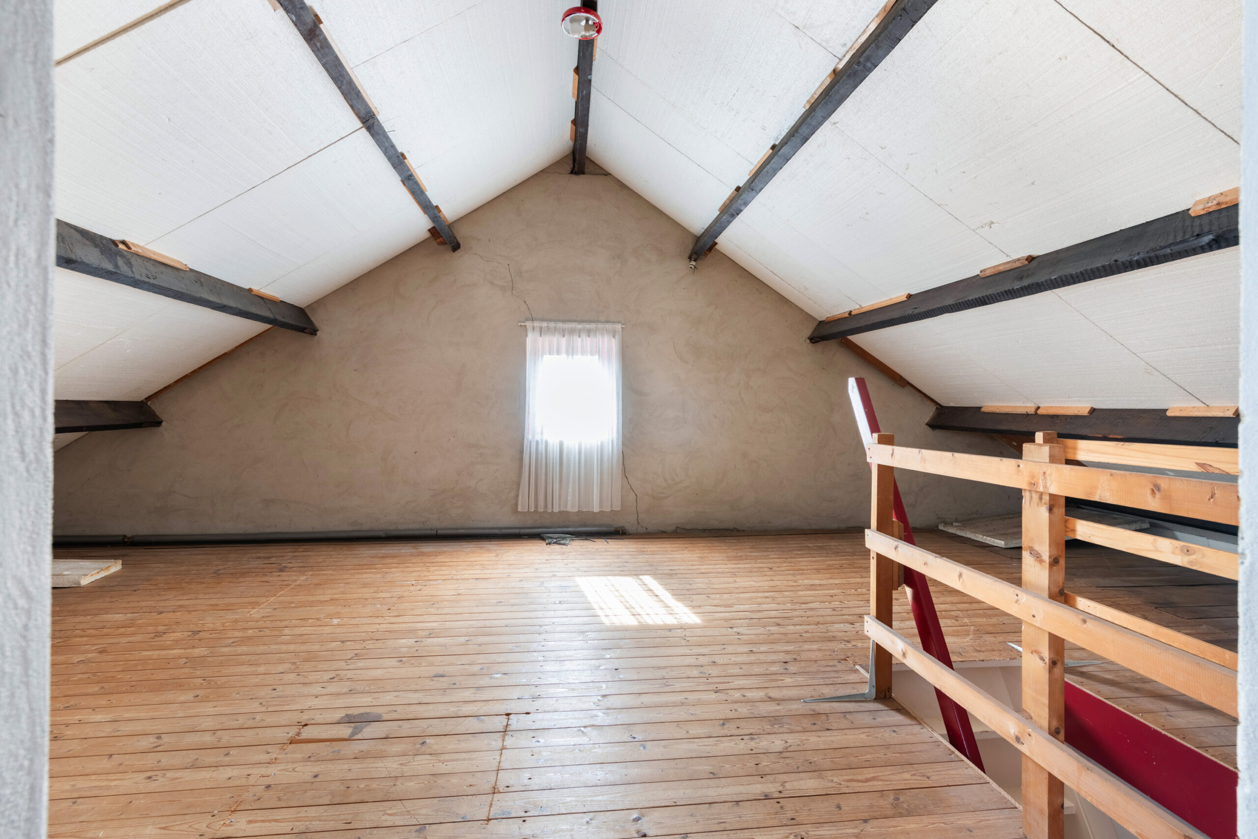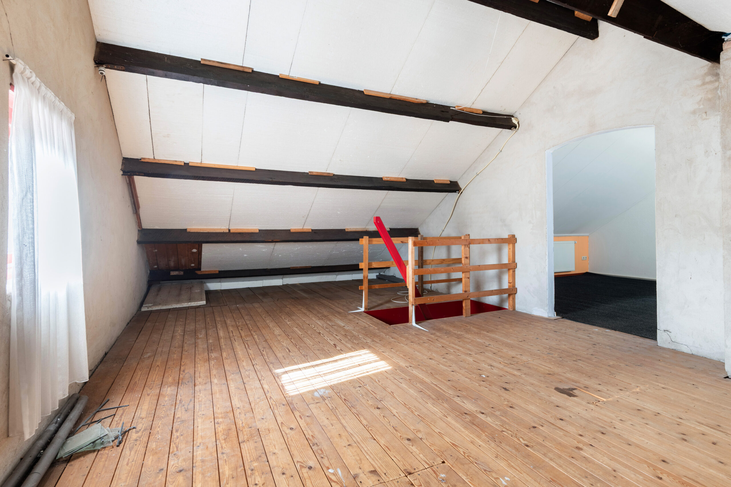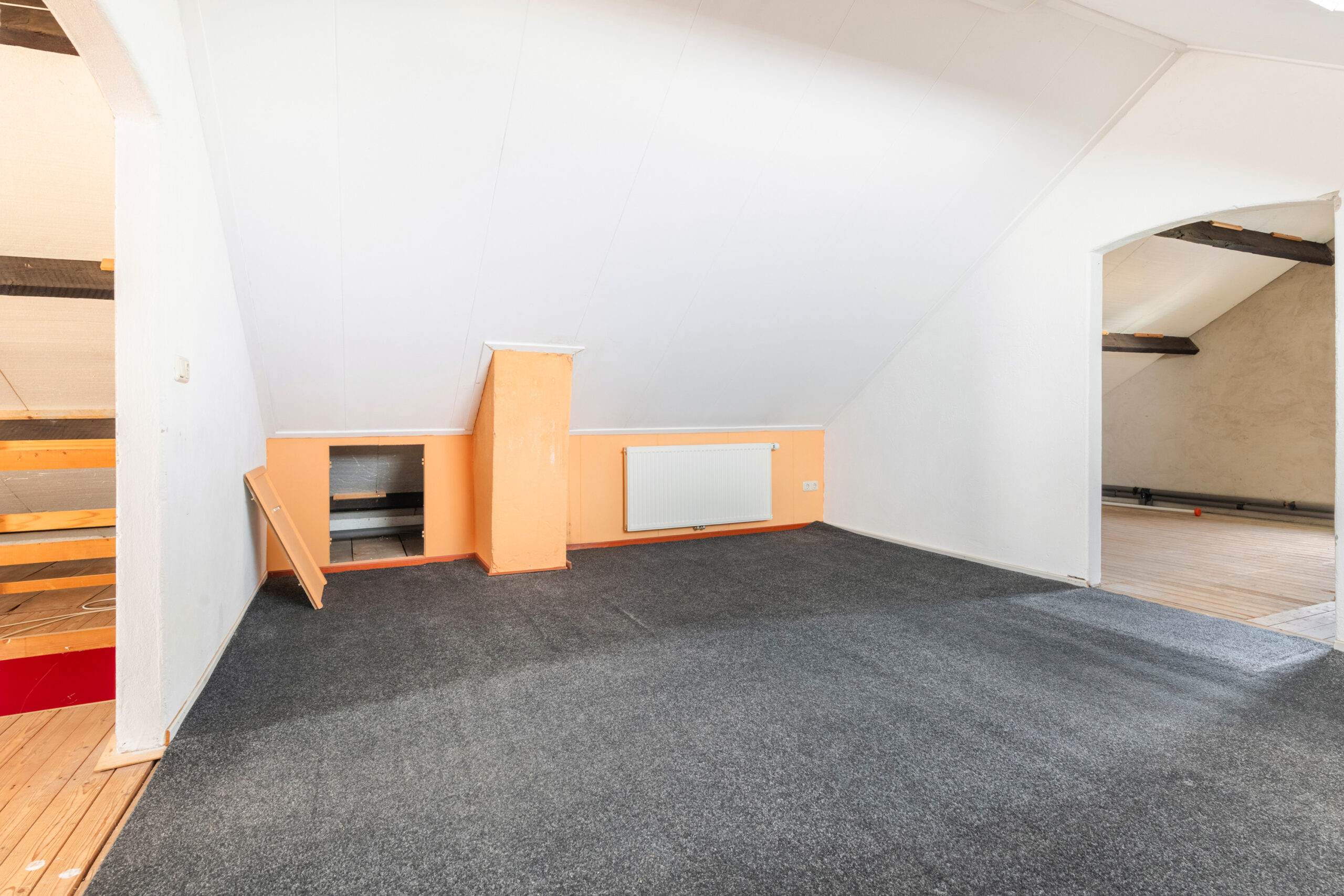 Verdieping: overloop met open doorgang naar twee separate kamers en opstelplaats voor de cv-ketel (Nefit).
