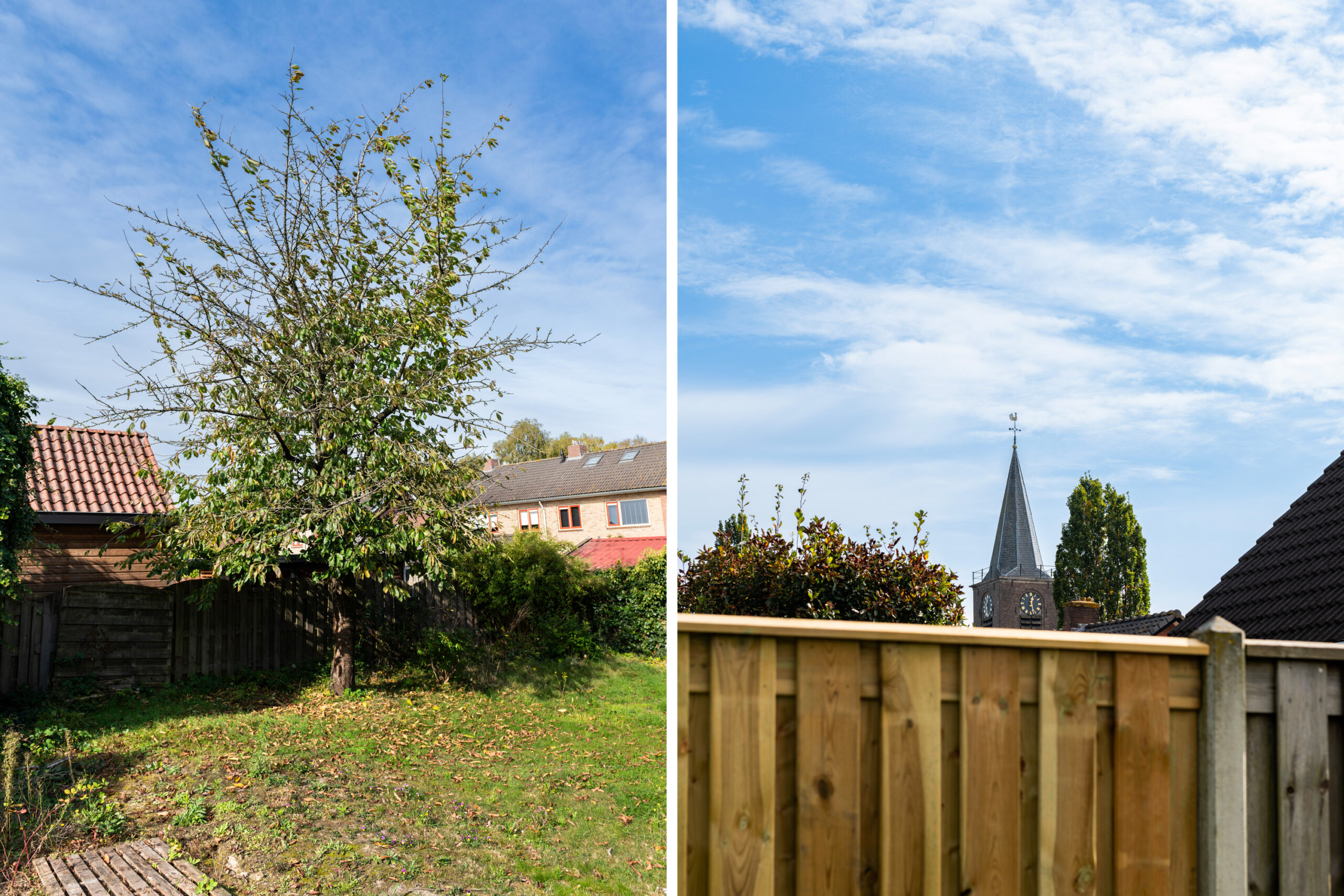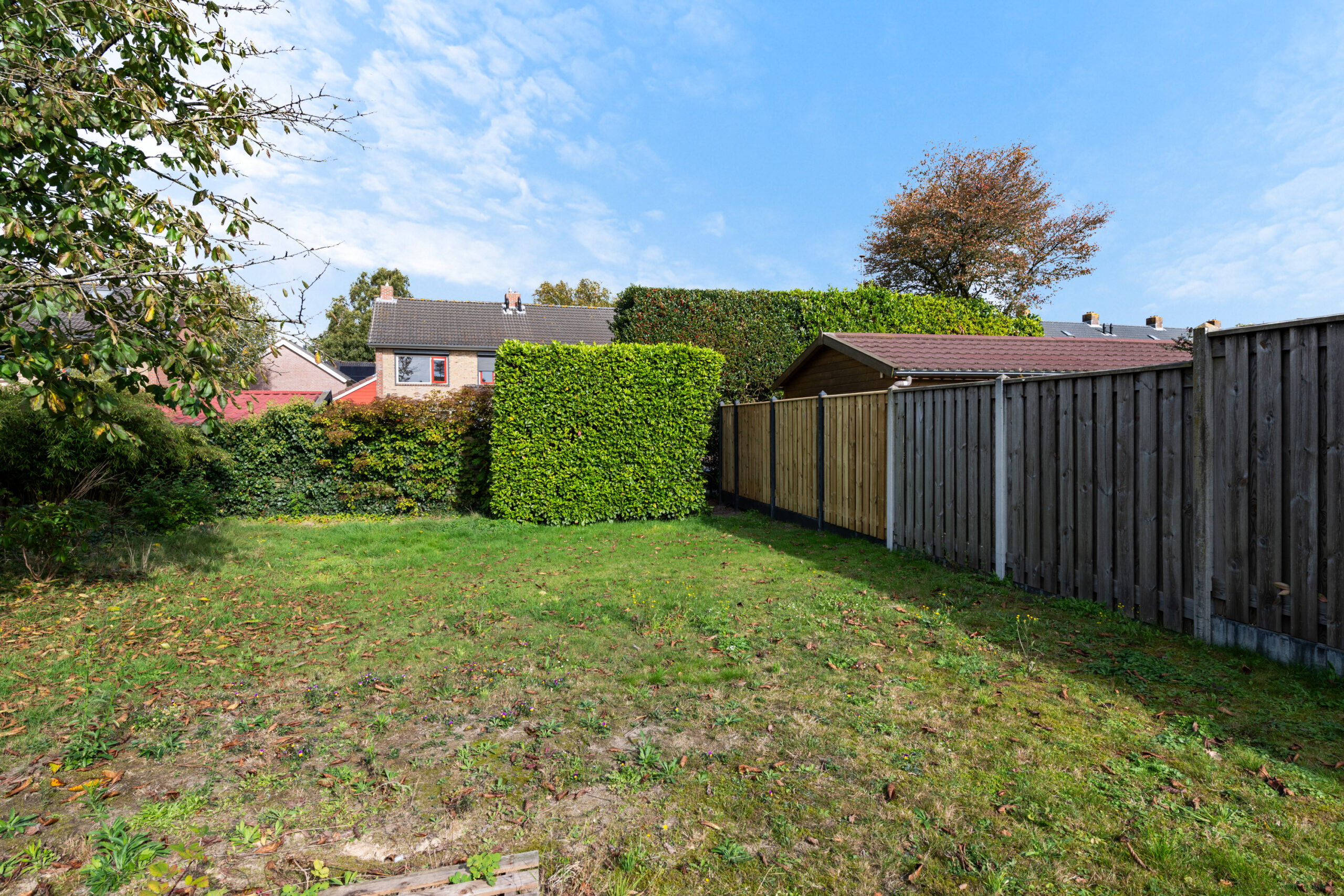 De achtertuin is gesitueerd op het noorden en dient geheel naar eigen wens ingericht en aangelegd te worden zodat het ook buiten heerlijk genieten is. Hier bevindt zich ook nog een houten berging.