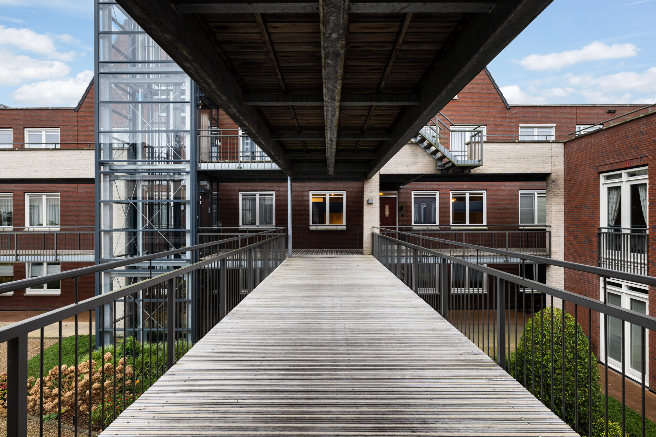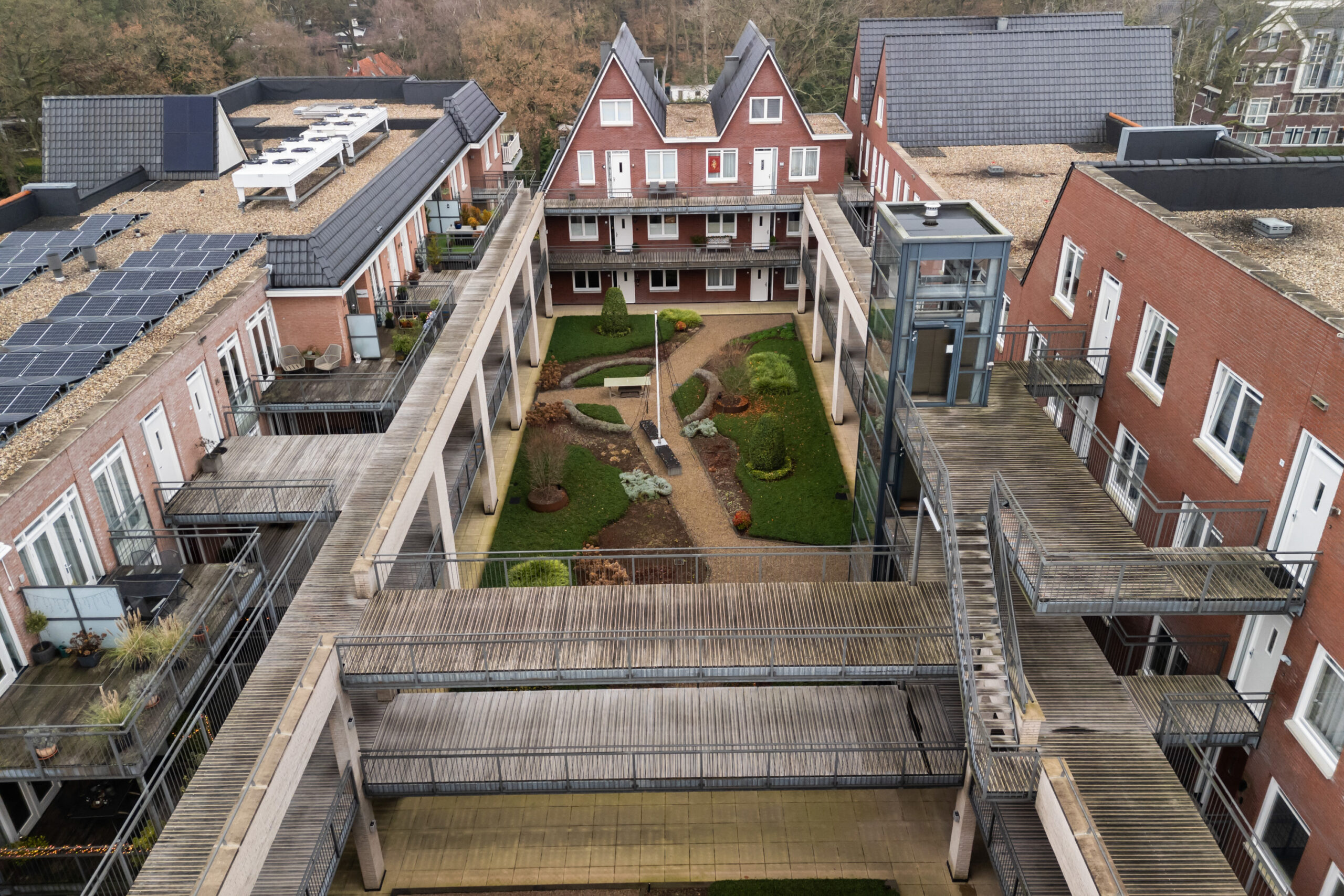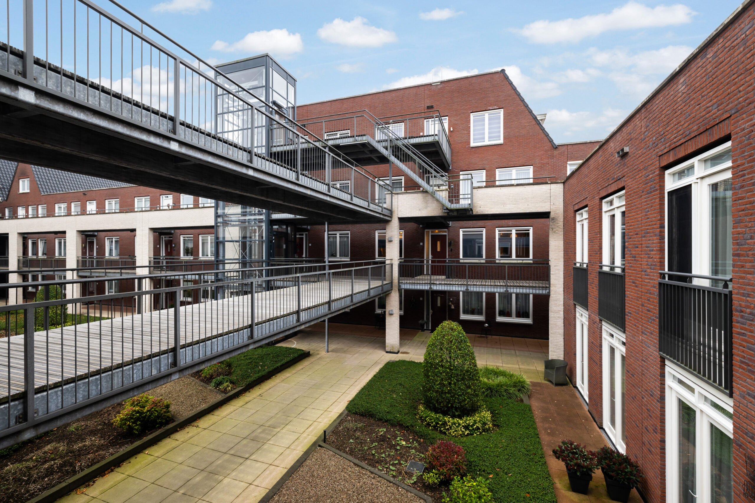 De blikvanger van het complex is de mooie binnentuin. Een prachtig aangelegde en goed onderhouden gemeenschappelijke tuin, voorzien van royale borders met een diversiteit aan beplanting en met ruime looppaden met grind. Een fijne ontmoetingsplaats voor alle bewoners van het complex!