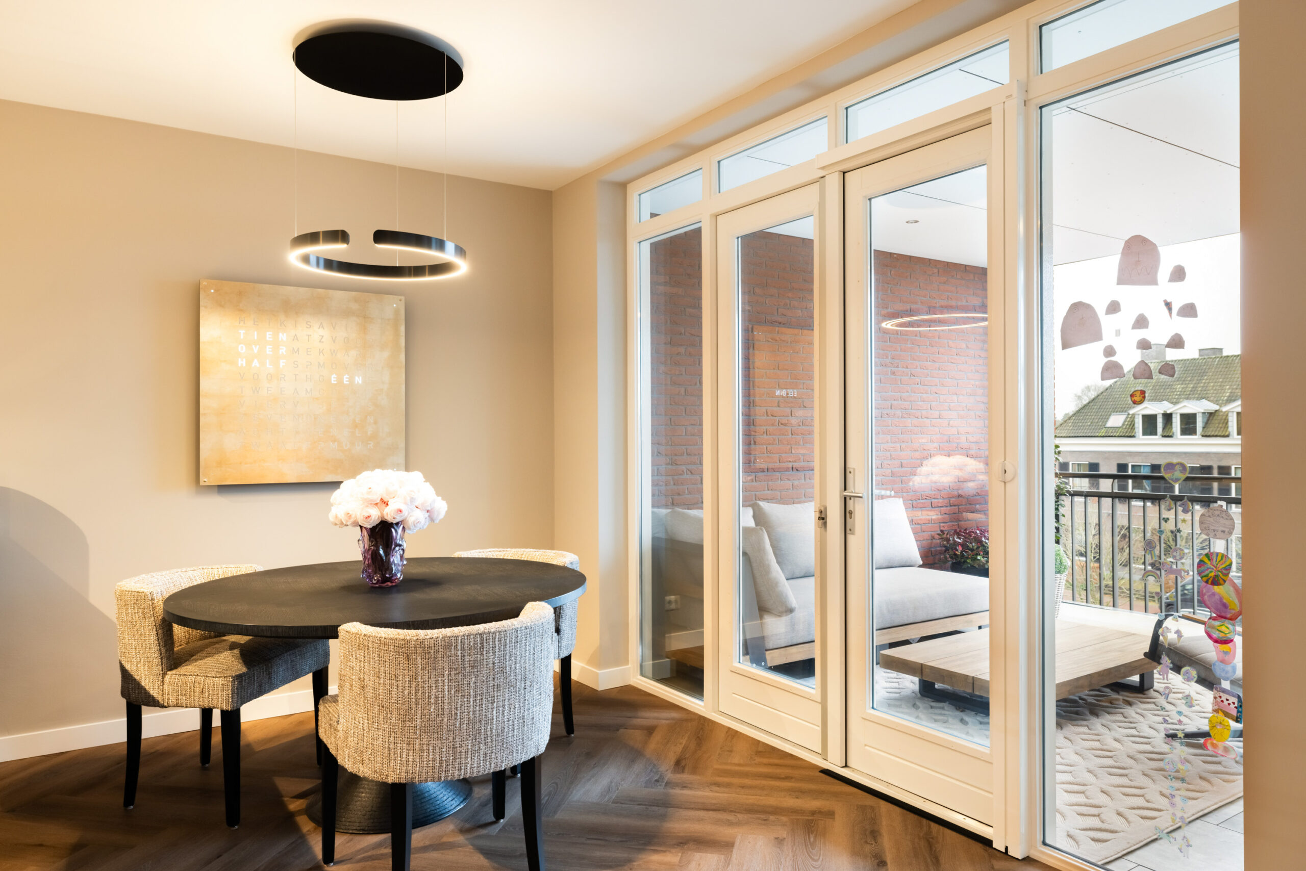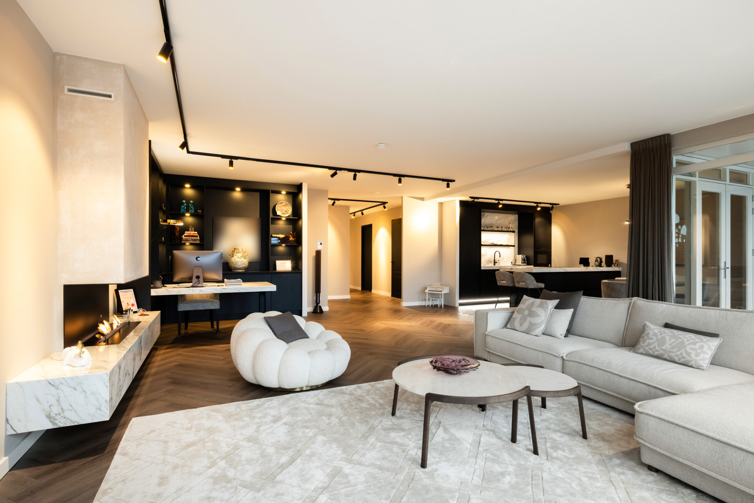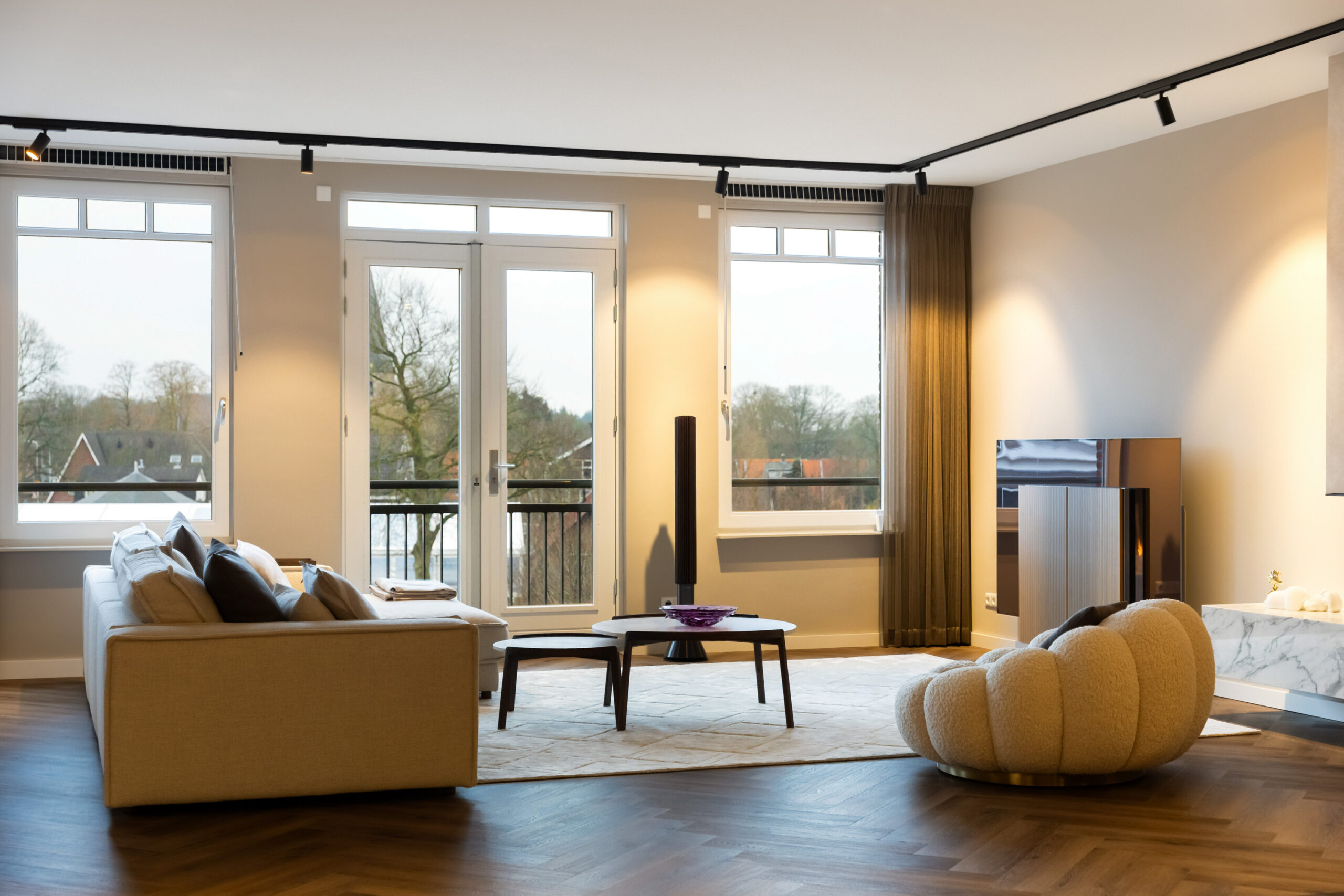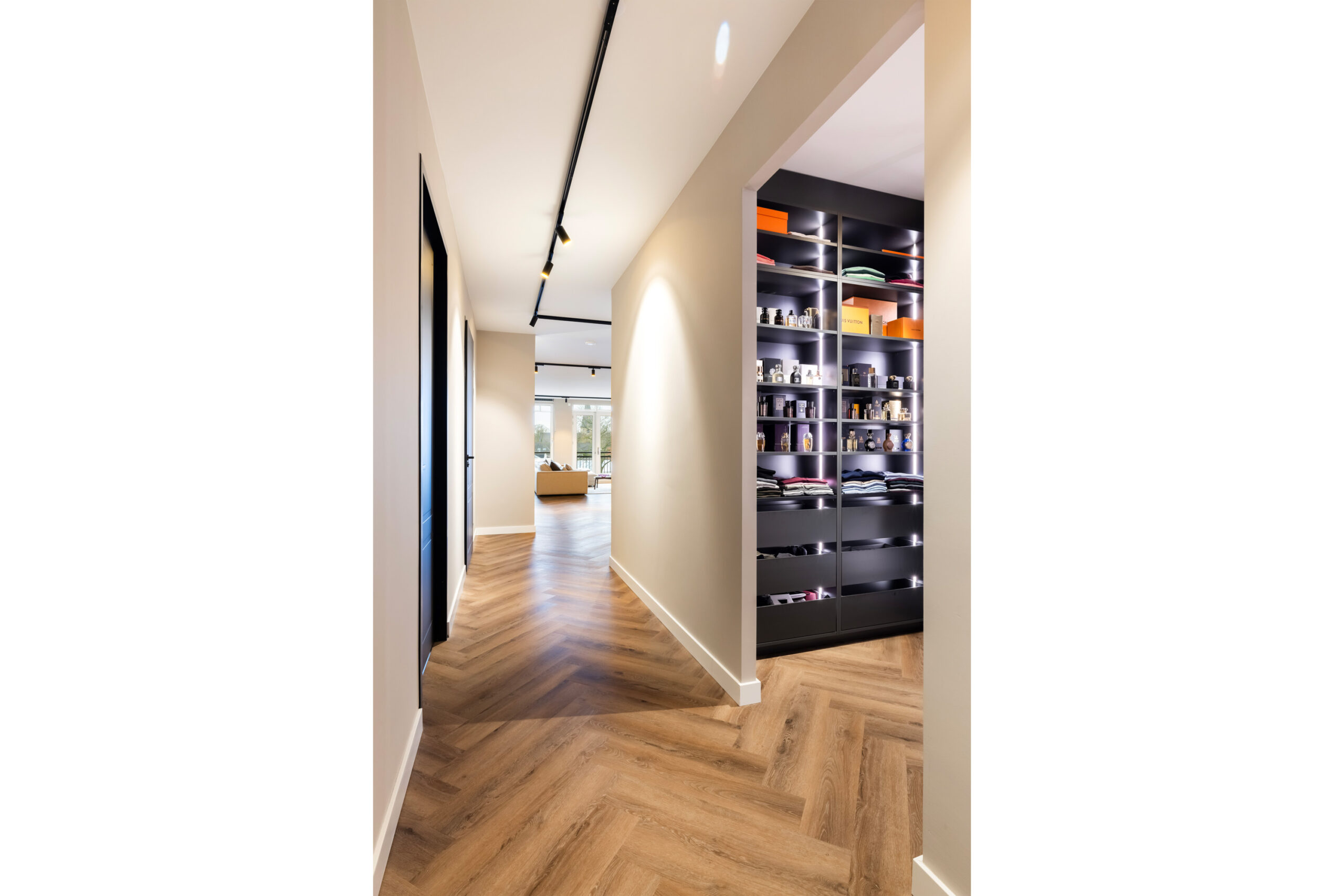En dan het appartement..... bij binnenkomst ervaart u direct de ruimte, sfeer en luxe die dit appartement uitademt. Alle ruimtes zijn voorzien van strakke plafond-, wand- en vloerafwerking en de aanwezig spotverlichting zorgt voor een warme belichting in het hele appartement. Het aanwezige domoticasysteem maakt dat het appartement helemaal voldoet aan het hedendaagse wooncomfort. De mooie visgraat pvc-vloer geeft een warme uitstraling en de open doorgang van de entree naar de living zorgt voor een extra ruimtelijk effect. Daarnaast komt er in de living en keuken voldoende natuurlijk lichtinval binnen door de grote raampartijen. Hierdoor ontstaat er een directe verbinding met buiten en geniet u tevens van een fantastisch uitzicht!