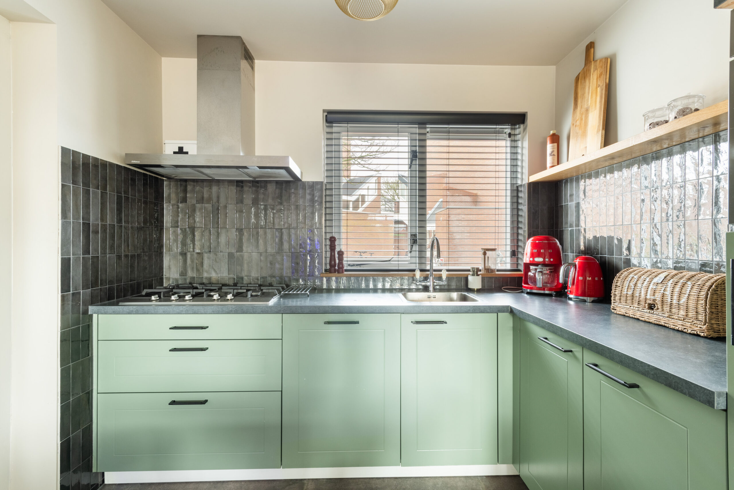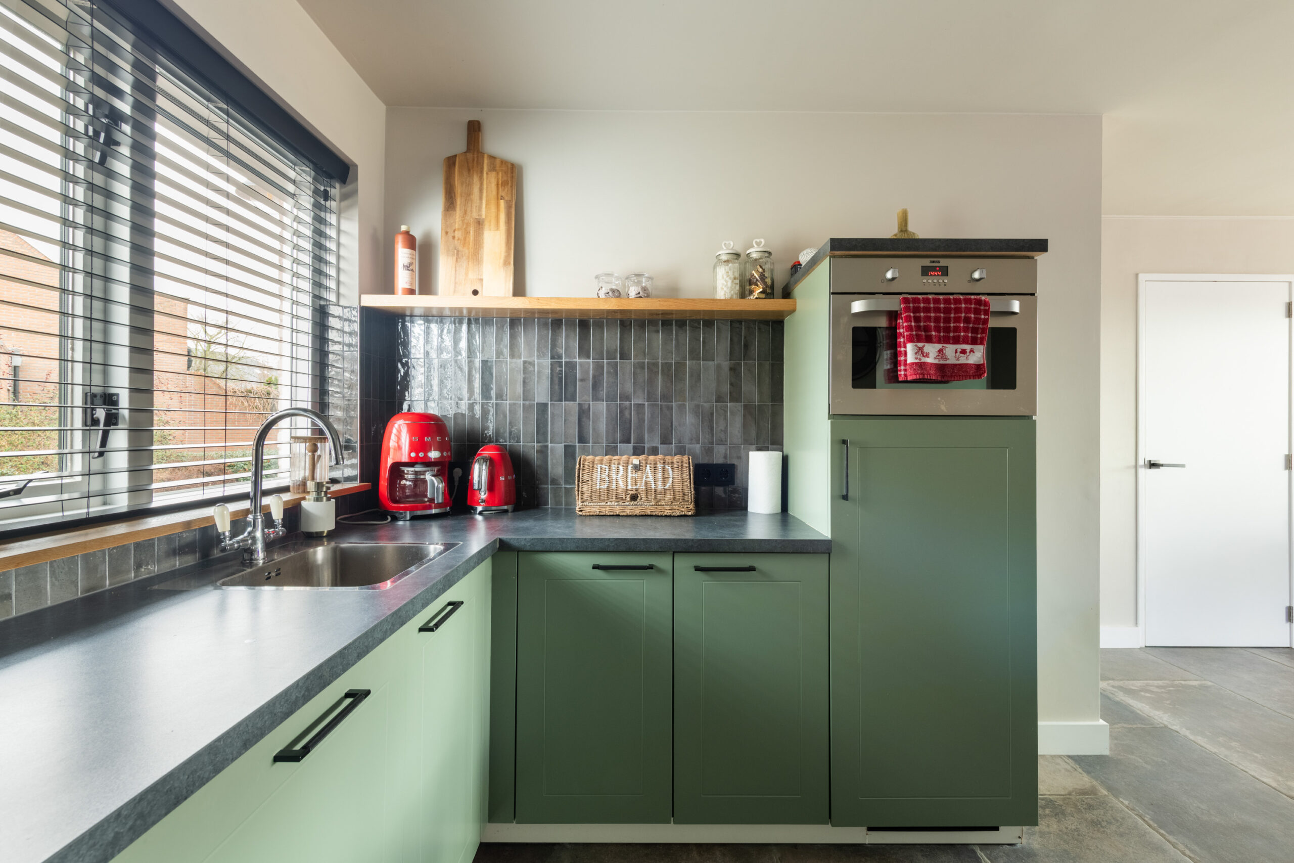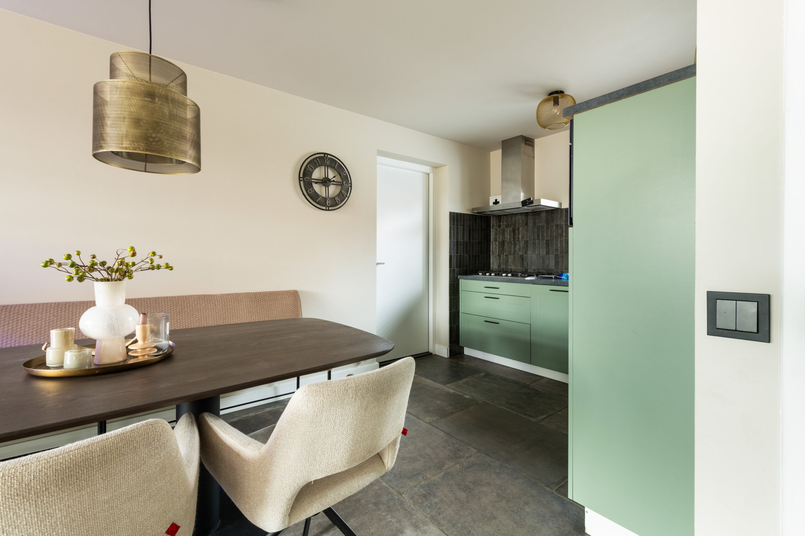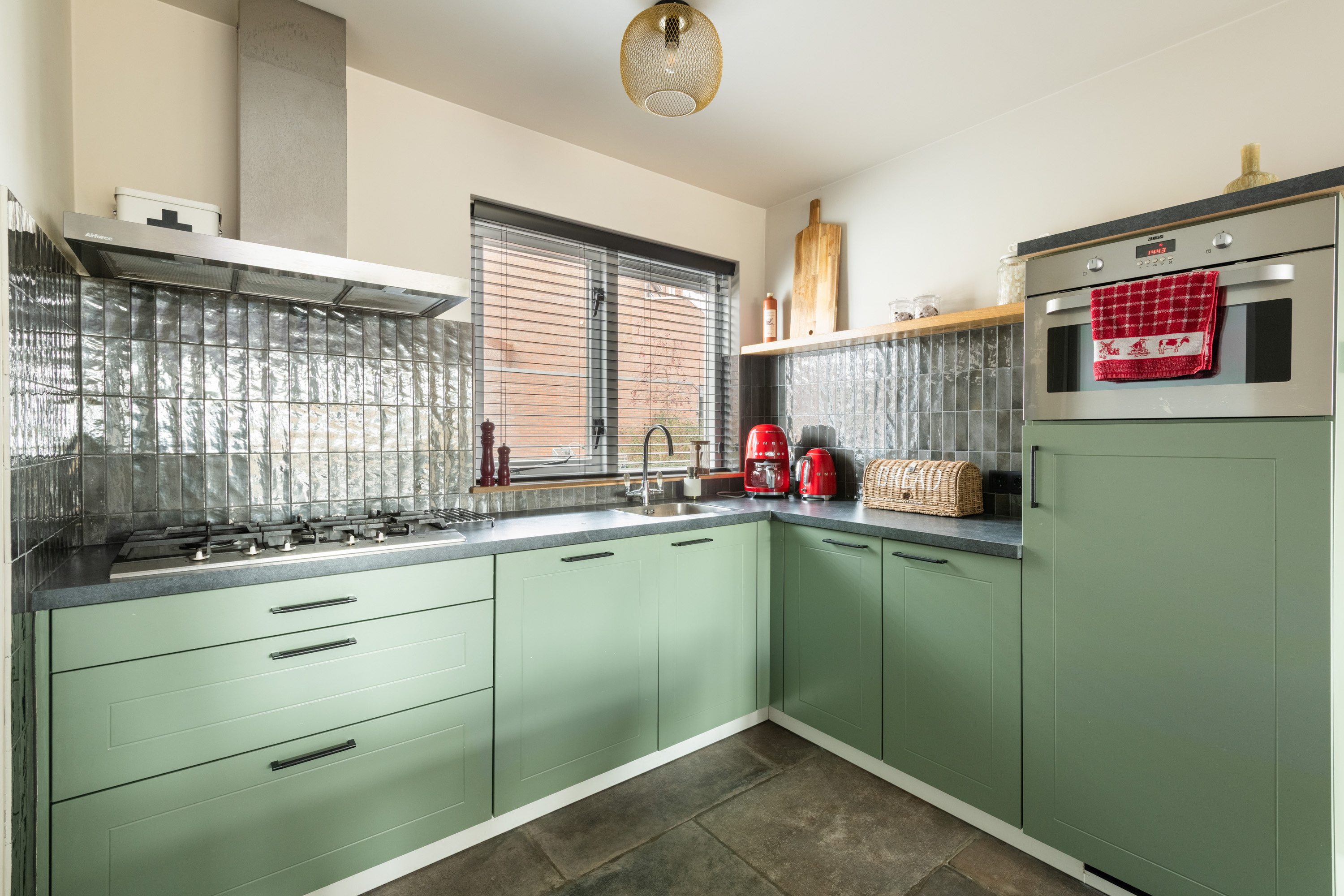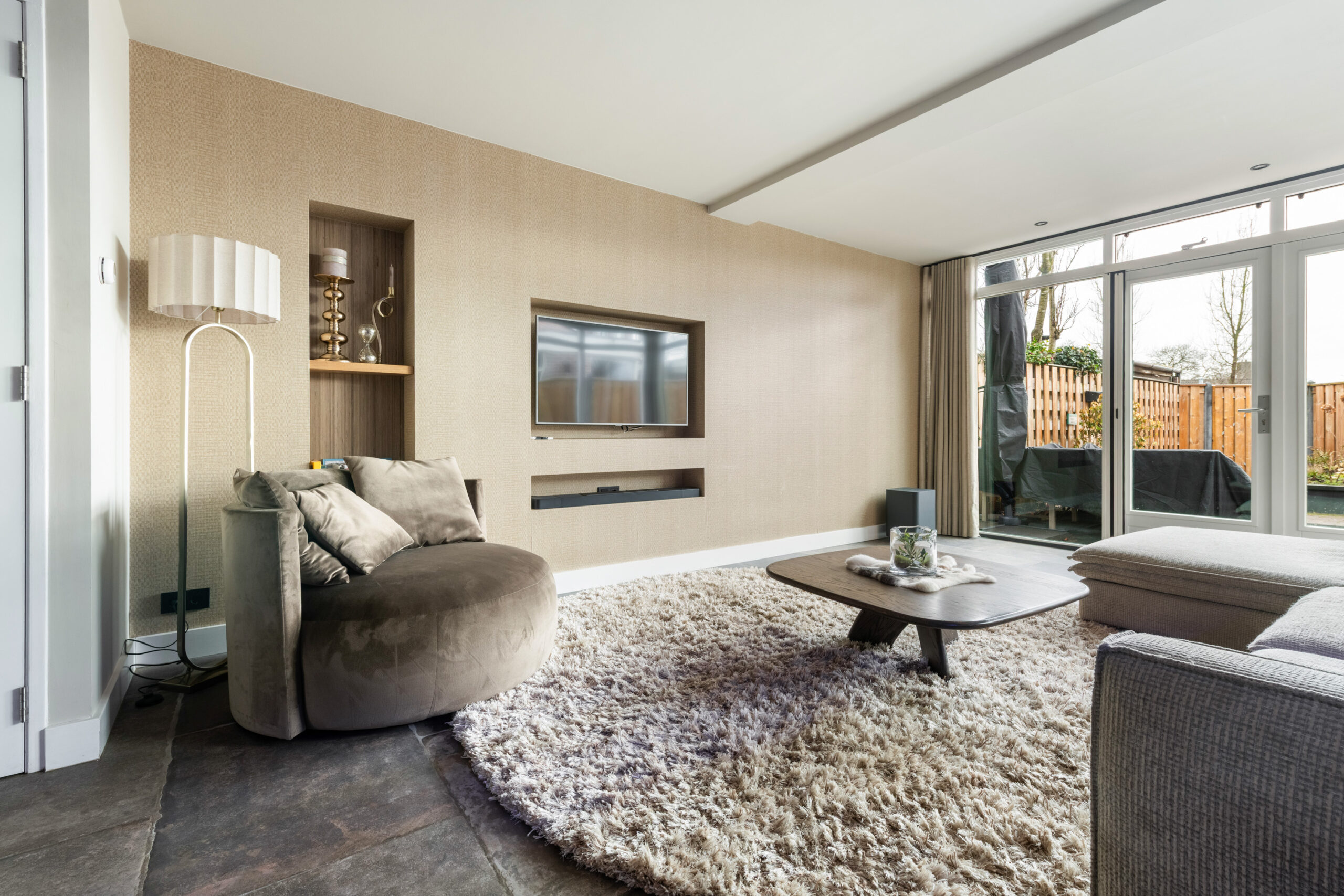 Begane grond: nette entree/hal met mooie stenenvloer, toiletruimte voorzien van toilet en fonteintje, meterkast en trapopgang. Middels glazen deur toegang tot de ruime en lichte tuingerichte woonkamer welke is voorzien van een prachtige tegelvloer met vloerverwarming, strakke wand- en plafondafwerking, vaste kast en openslaande deuren naar de achtertuin. De open keuken bevindt zich aan de voorzijde en is voorzien van de gewenste inbouwapparatuur. Aangrenzend bevindt zich de praktische bijkeuken met directe toegang tot zowel de royale berging als naar de voorzijde.