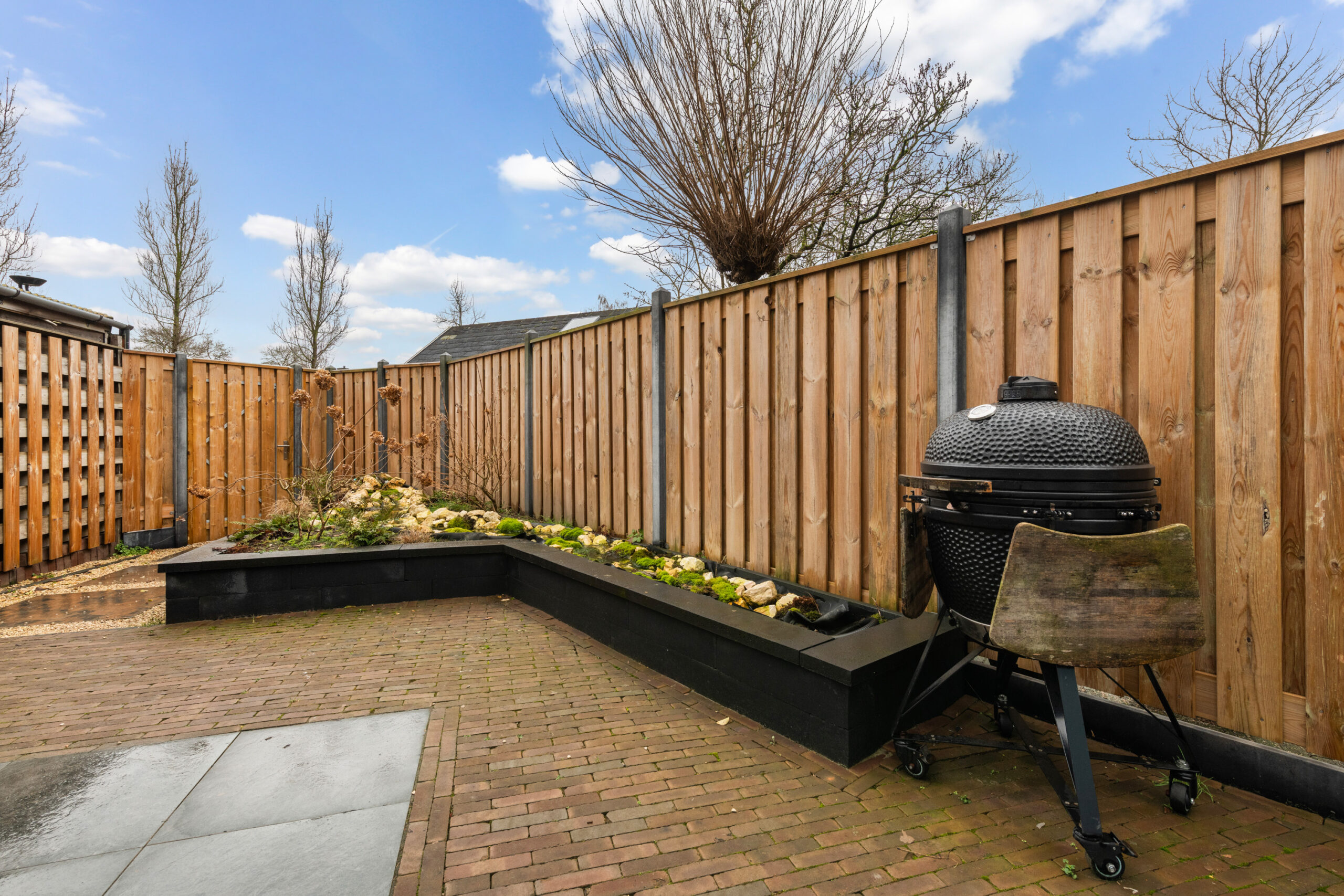 En dan de tuin.... gesitueerd op het zuidoosten en voorzien van een mooie terrastegel, sierbestrating en een stenen border voorzien van (lage) beplanting. Wat is het hier fijn genieten van het buitenleven! Middels de poortdeur krijgt u toegang tot het achterom. Aan de zijkant van de woning bevindt zich de ingang van de berging. Een heerlijke royale ruimte die voor meerdere doeleinden te gebruiken is en eveneens vanuit binnen bereikbaar.