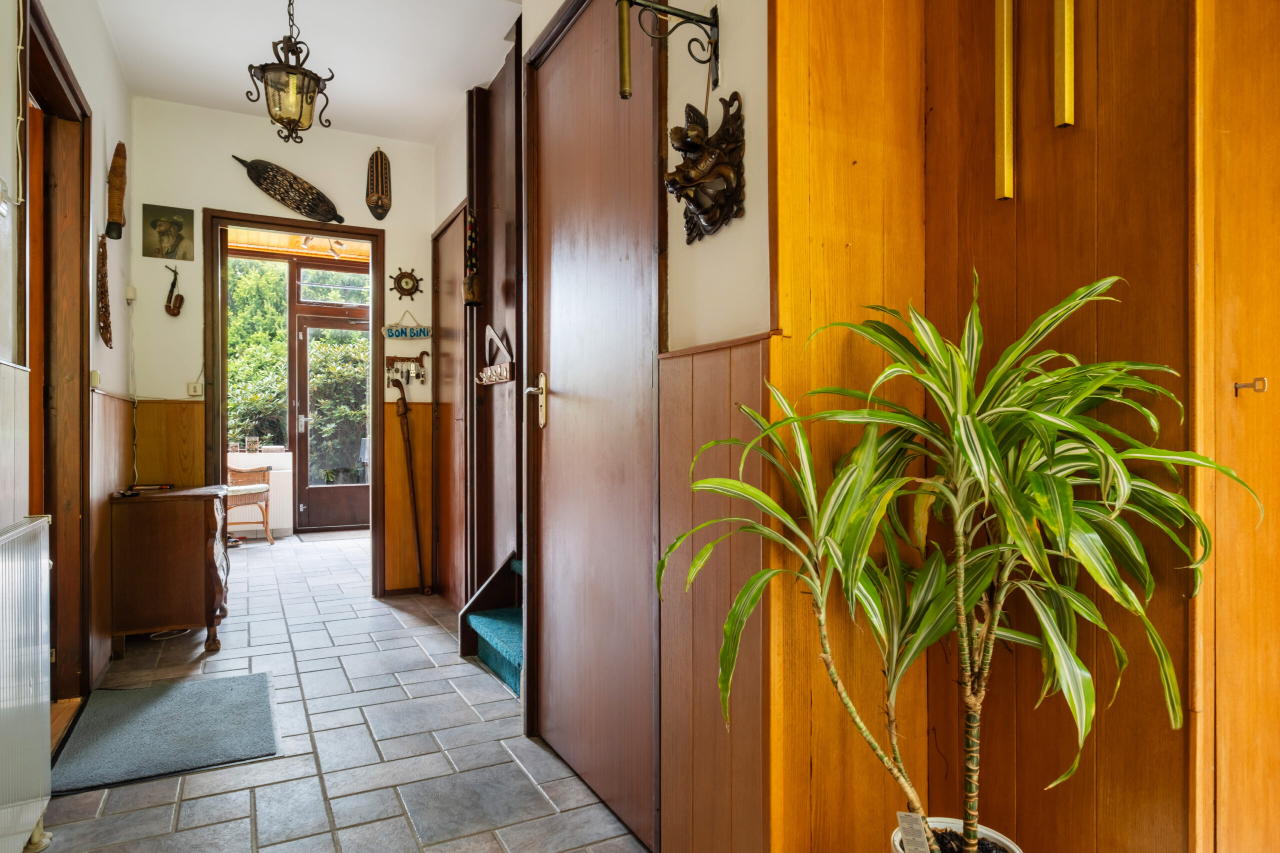 Via het tuinpad bereikt u de overdekte entree van de woning met de volgende indeling: