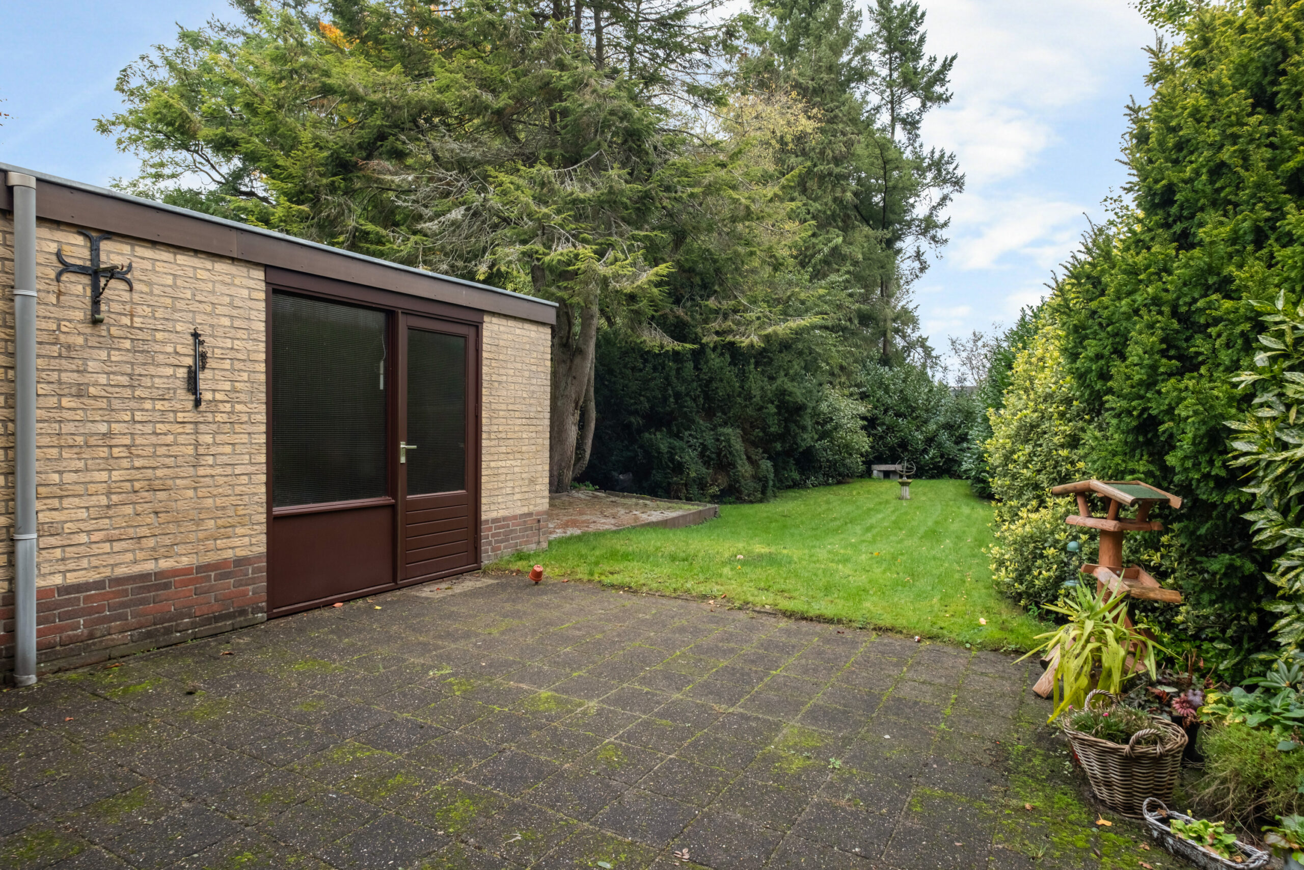 En dan de tuin .... de voortuin is voorzien van diverse bomen en struiken en het tuinpad naar de entree. Via de oprit bereikt u de poortdeur die toegang geeft tot de diepe achtertuin. Deze is gesitueerd op het noorden en voorzien van een terras direct achter de woning, een groot gazon omgeven door diverse bomen en struiken. Een heerlijk diepe tuin om te genieten van de rust en de optimale privacy die u hier ervaart!