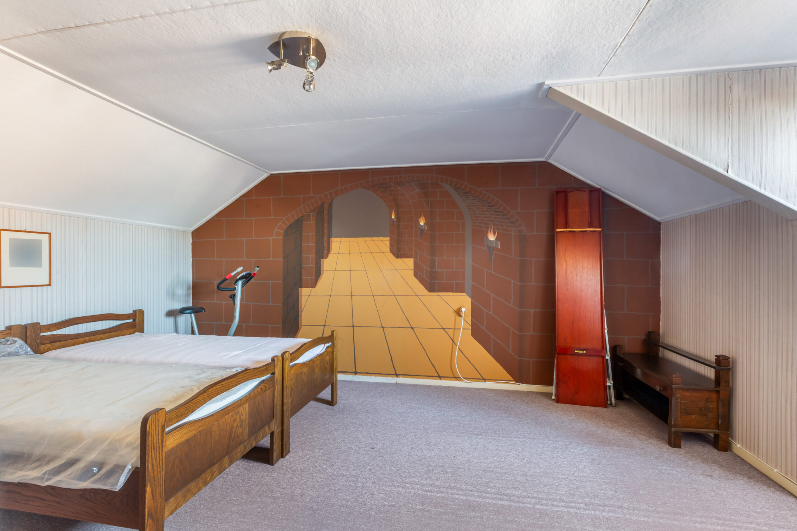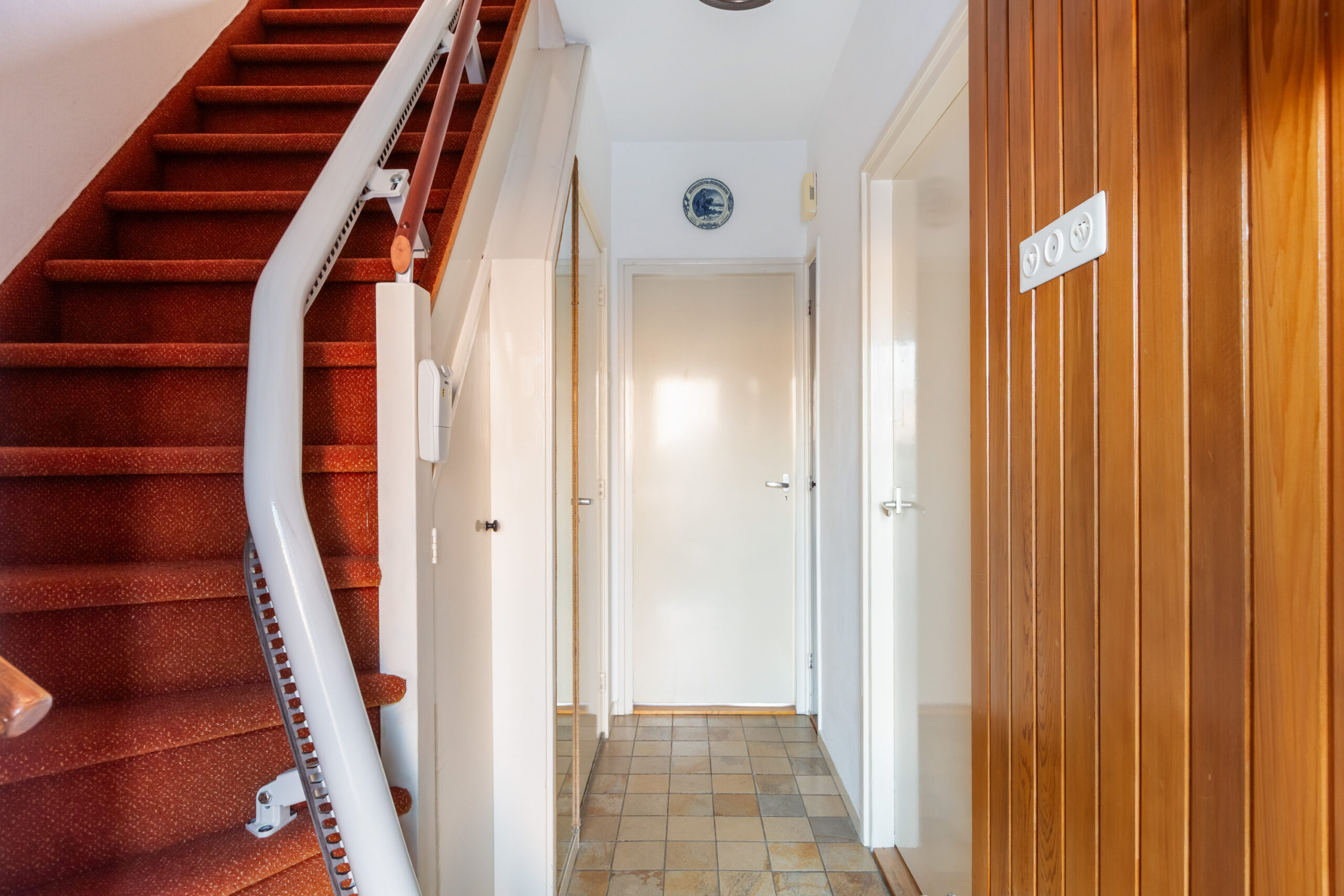 Via het luik op de overloop heeft u toegang tot de bovengelegen vliering.
