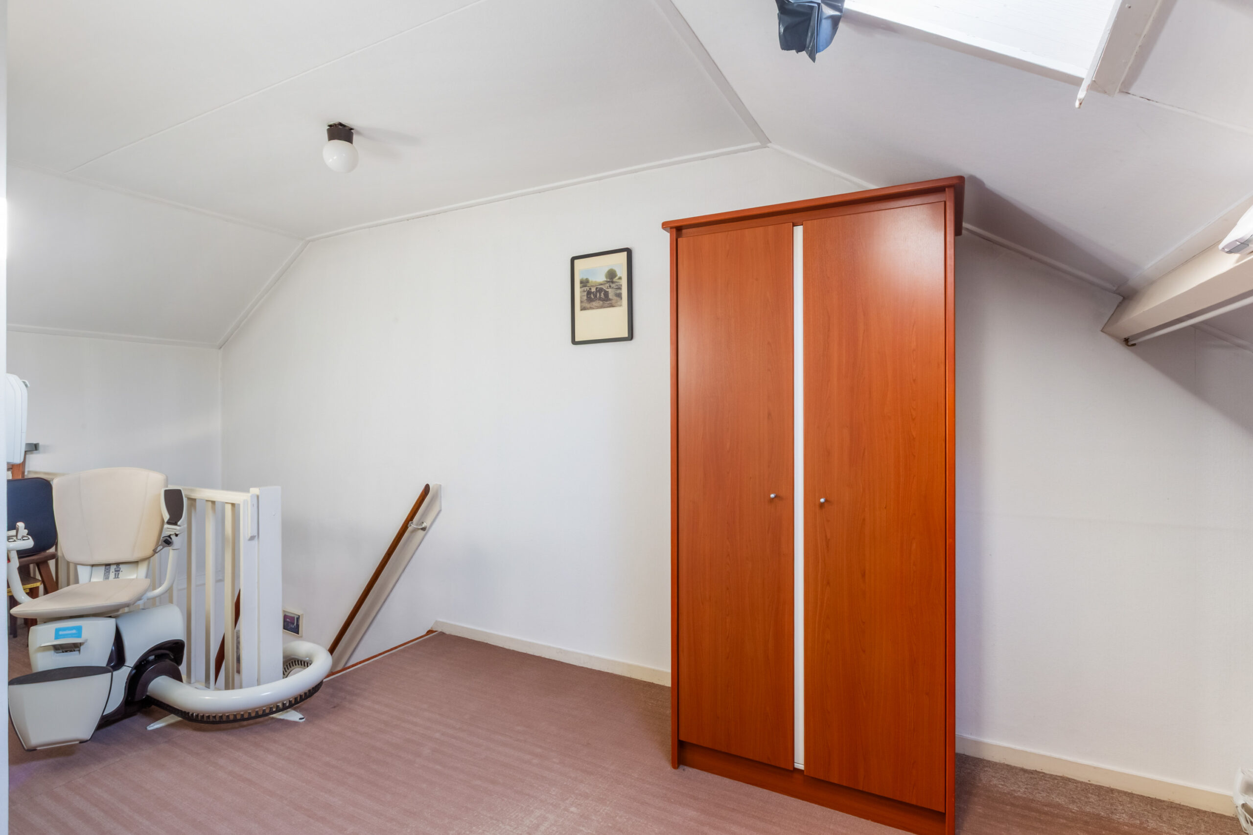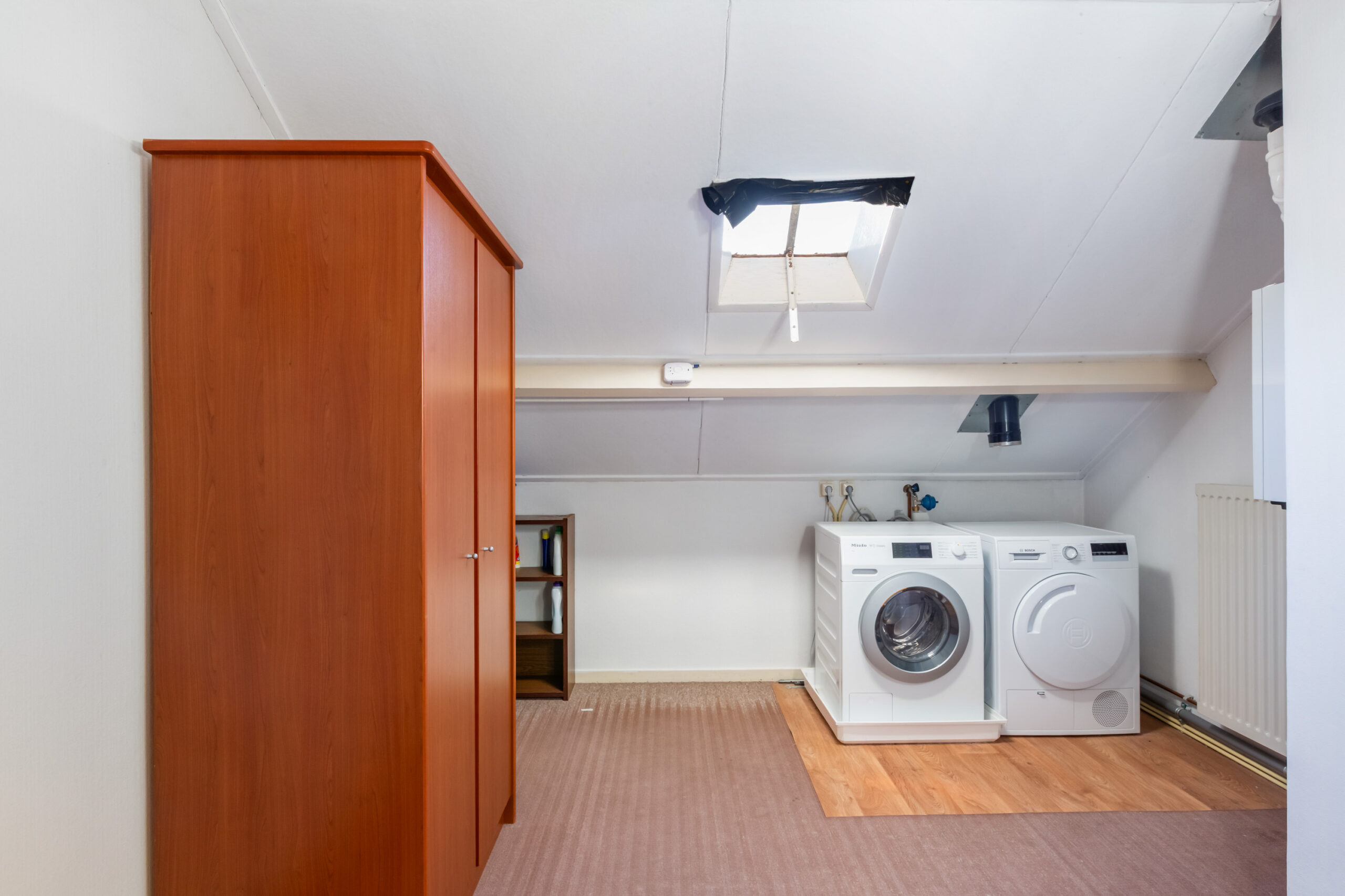 Verdieping: overloop met klein dakraam, vaste kast, opstelplaats voor de cv-ketel en aansluitingen voor de was-apparatuur. 2e slaapkamer voorzien van dakkapel