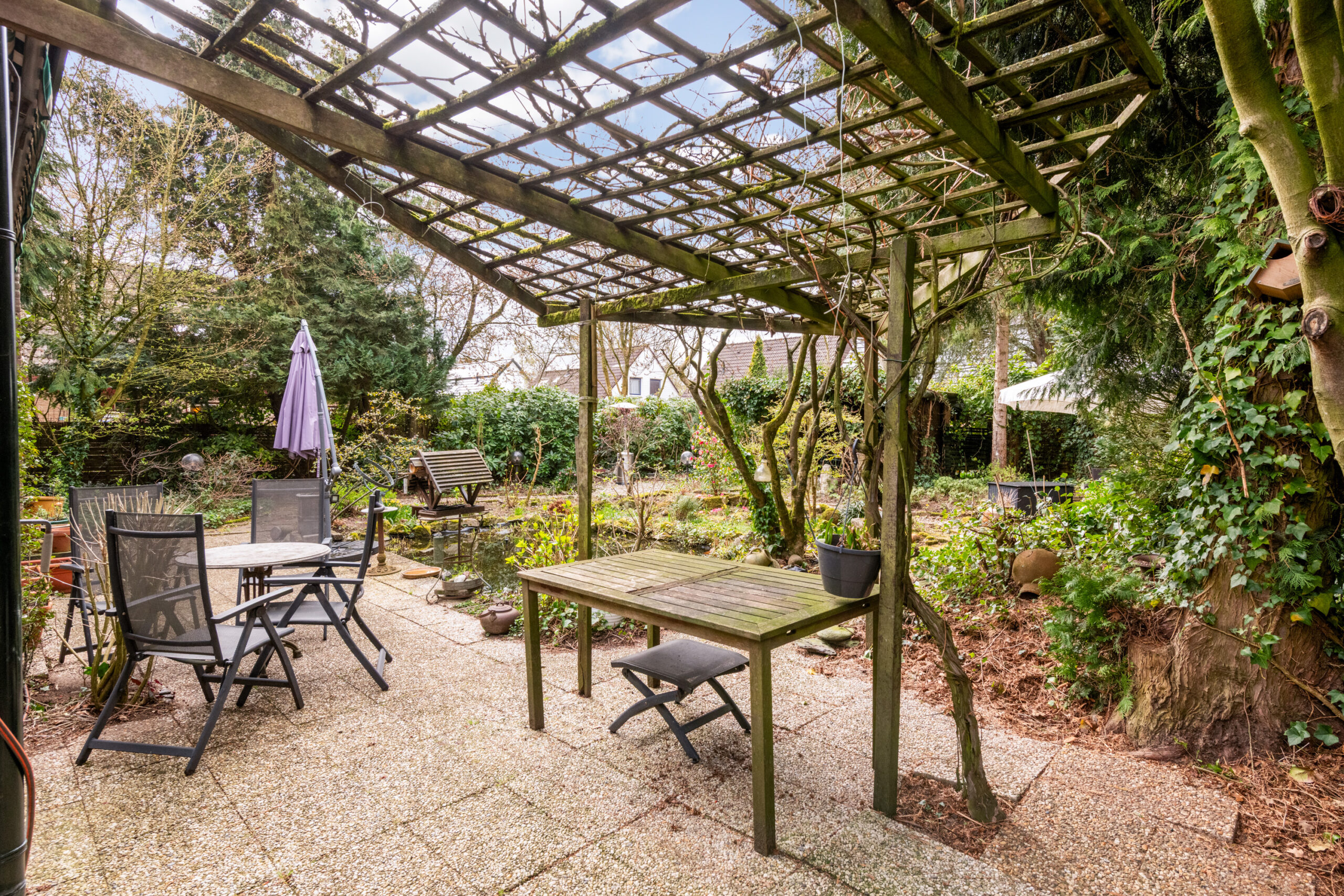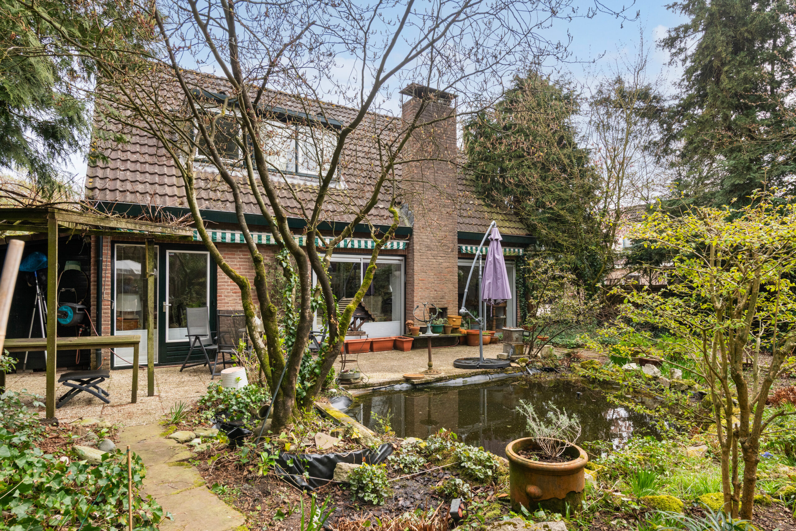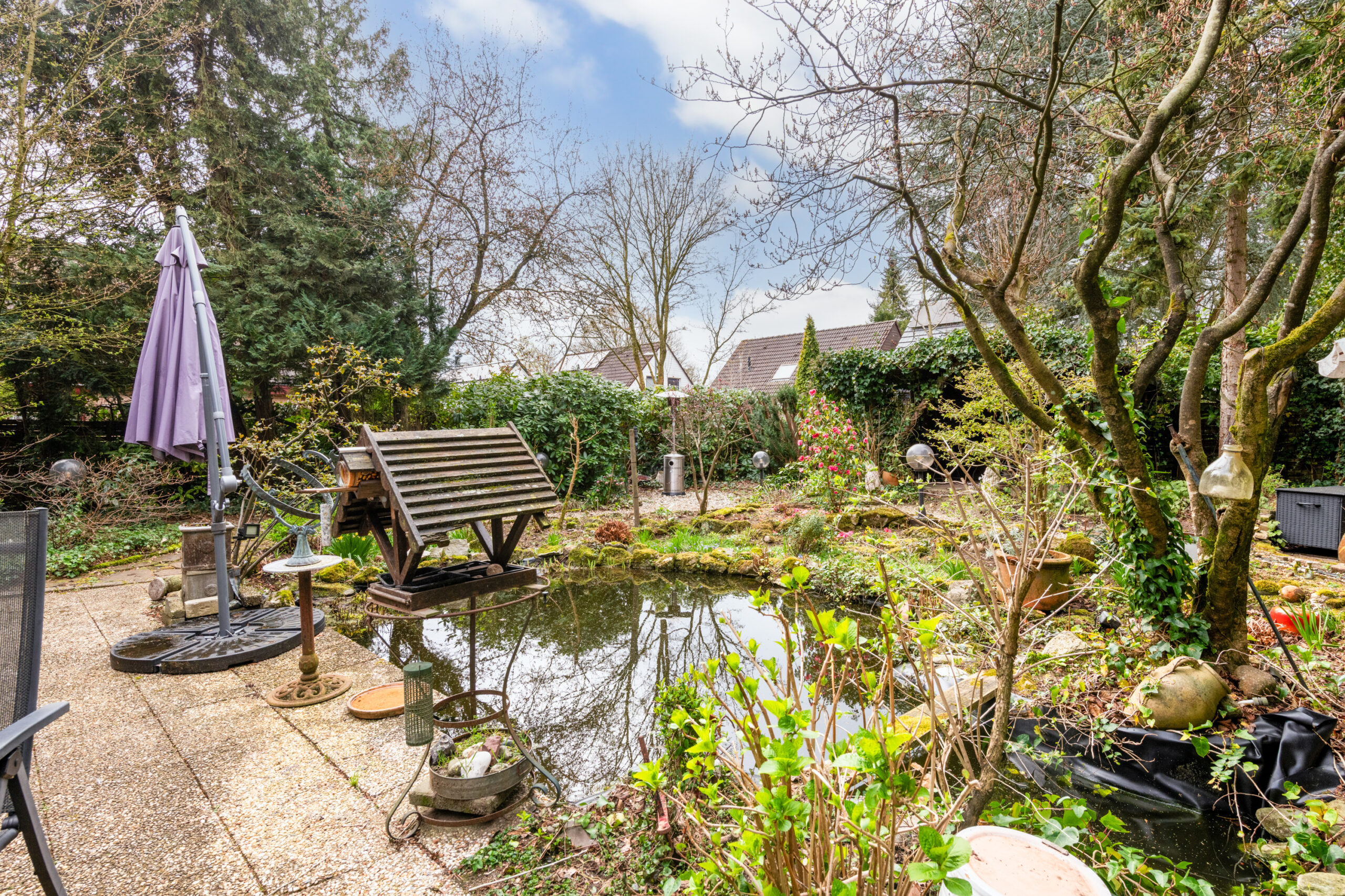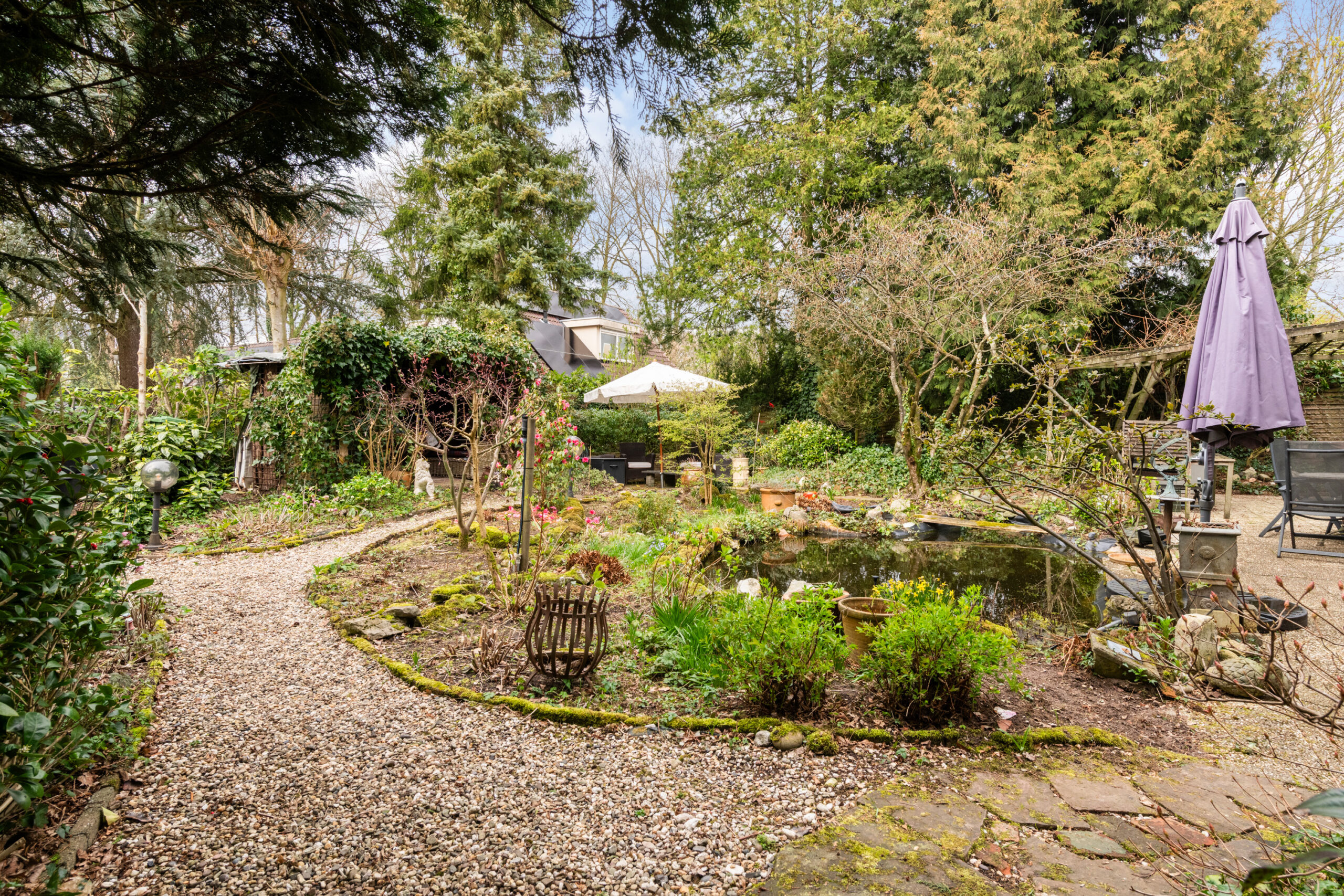 Verder is de tuin voorzien van verschillende terrassen, het terras bij de achtergevel van de woning is voorzien van een buiten openhaard, de tuin heeft brede borders en een vijverpartij. De houten tuinberging is geschikt voor het tuingereedschap, hier treft u ook de grondwaterpomp voor de beregening van de tuin.