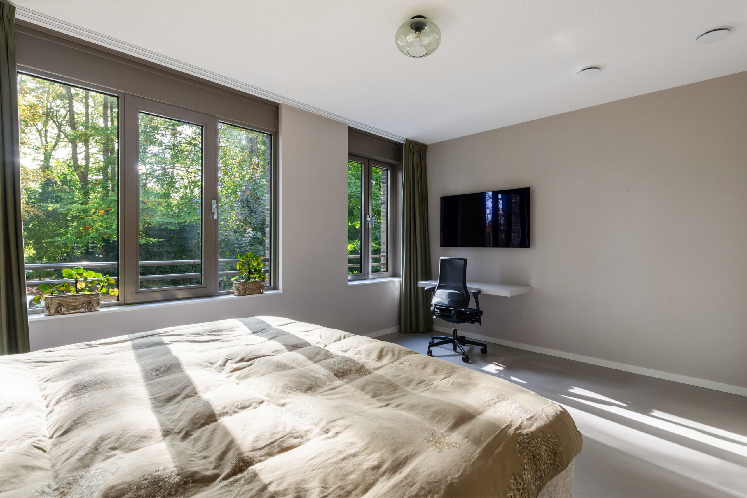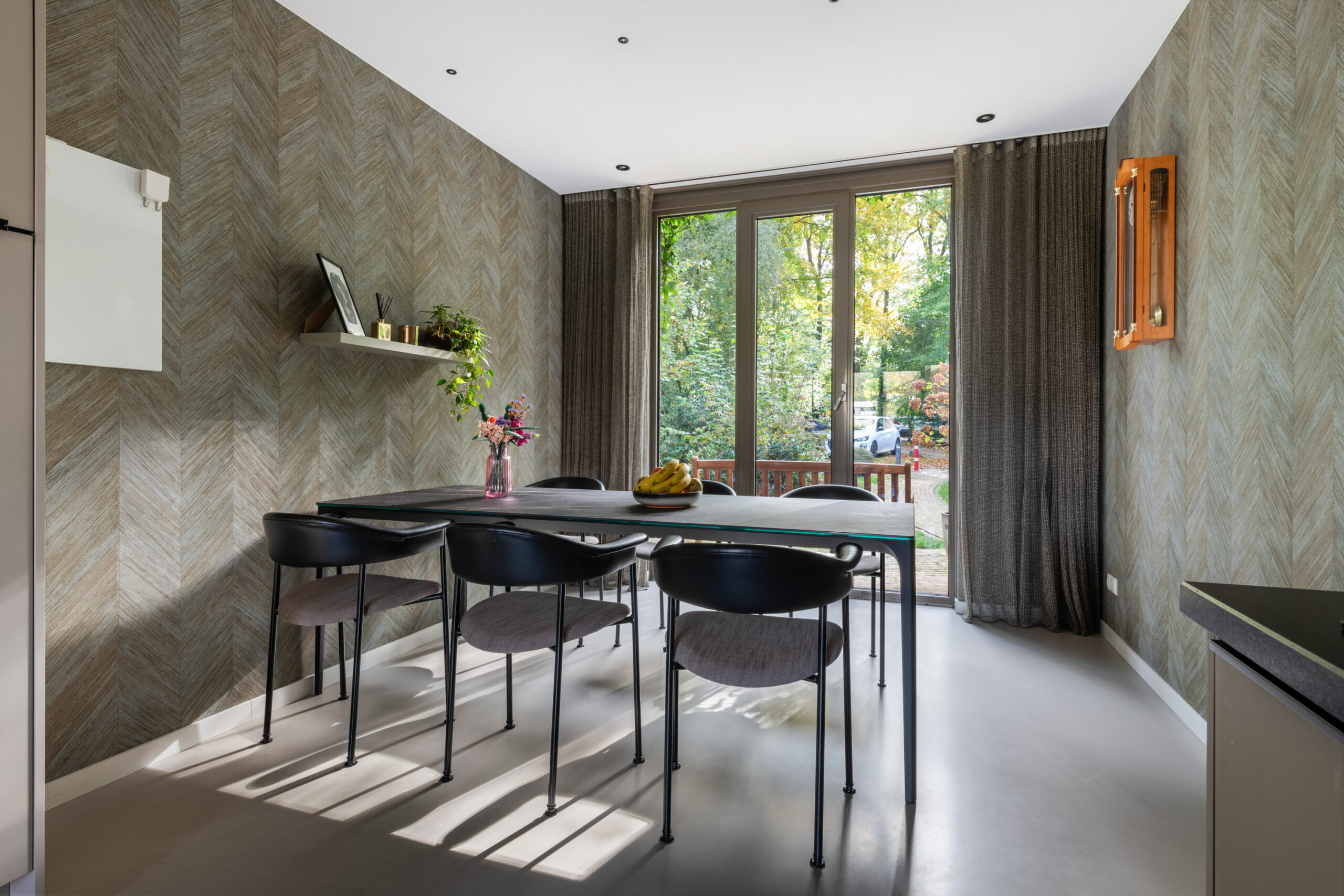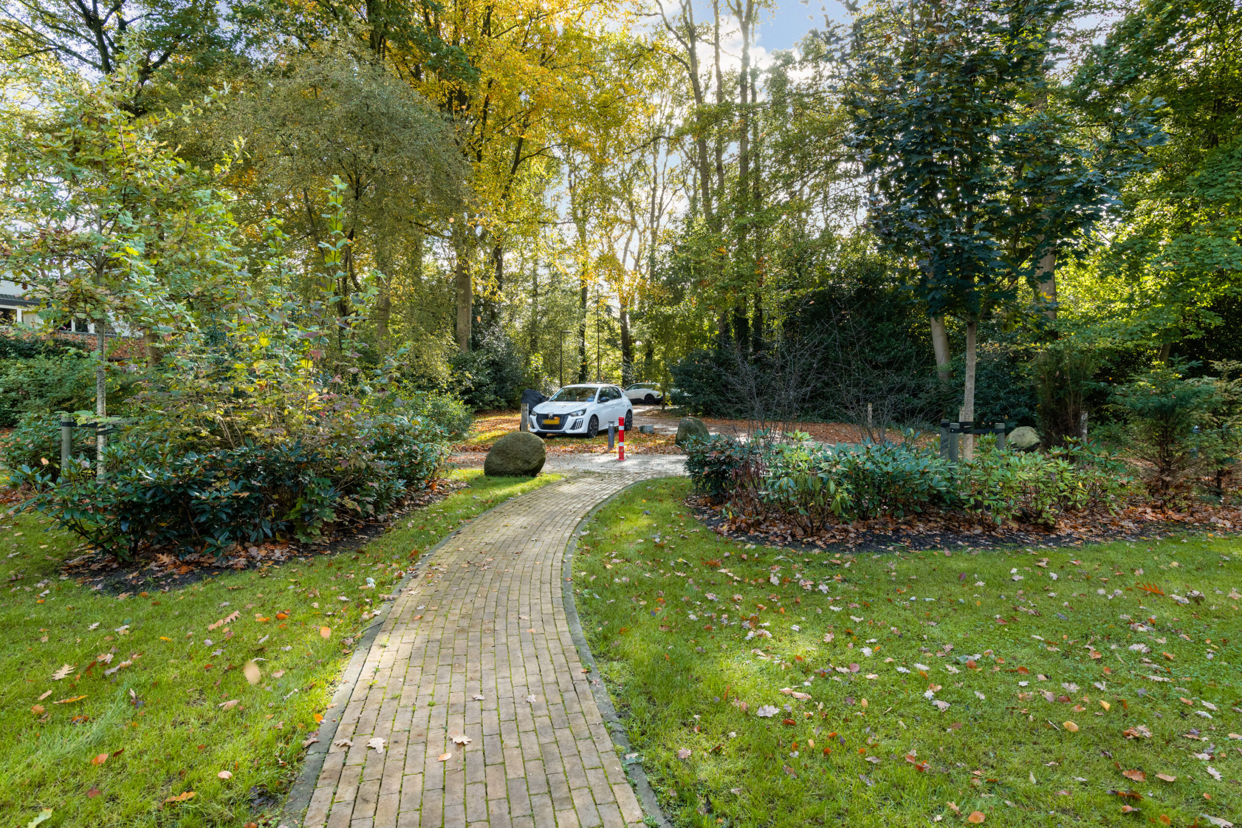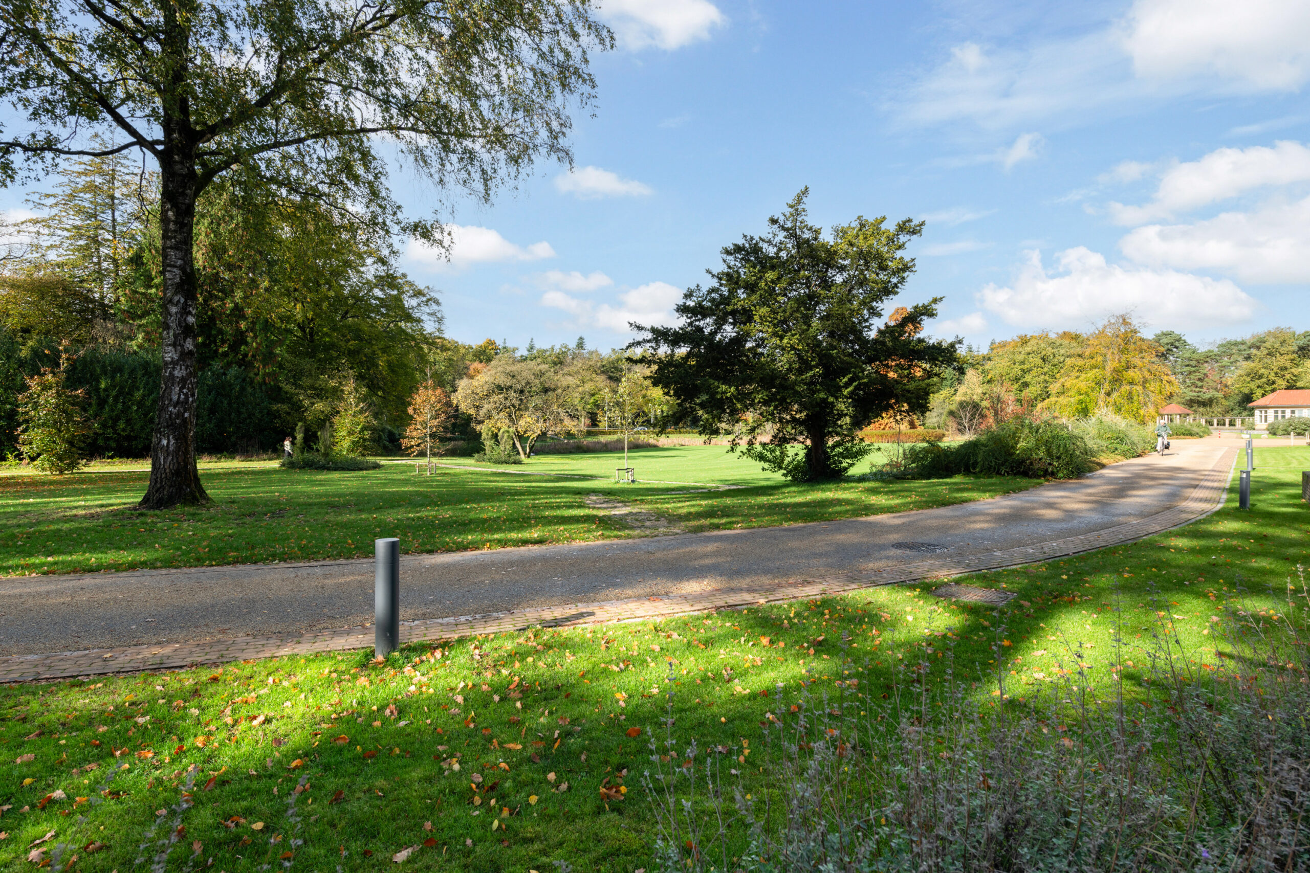 Aan de voorzijde is er prachtig uitzicht op de monumentale eiken en aan de achterzijde is er vrij zicht op de landgoedtuin en de wandelpaden. Door de schitterende verlichting is het 's avonds ook prachtig om te wandelen.