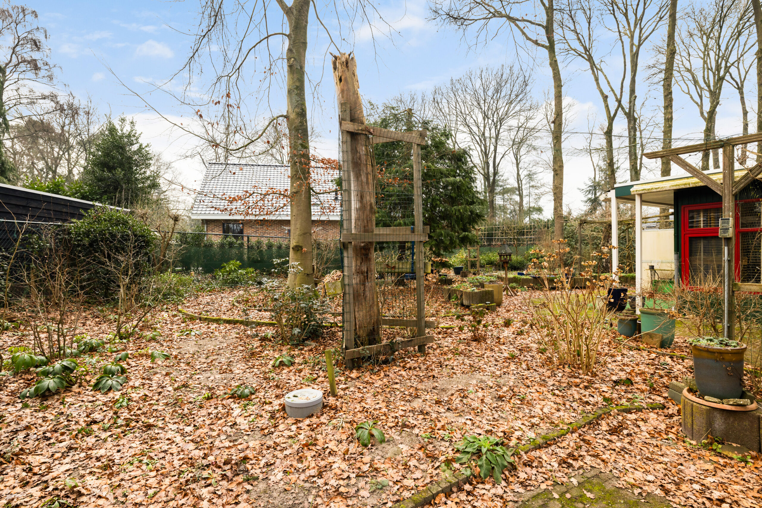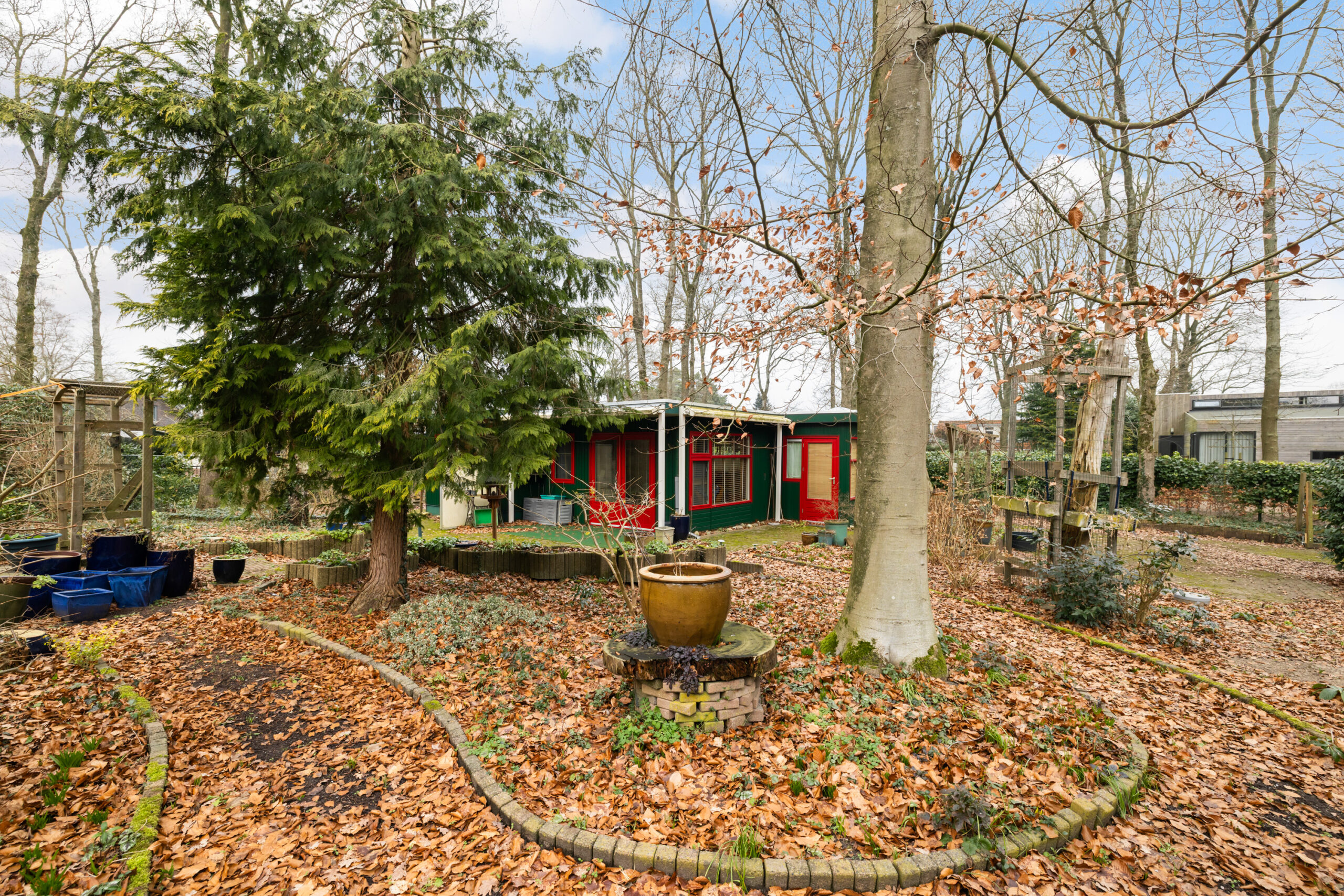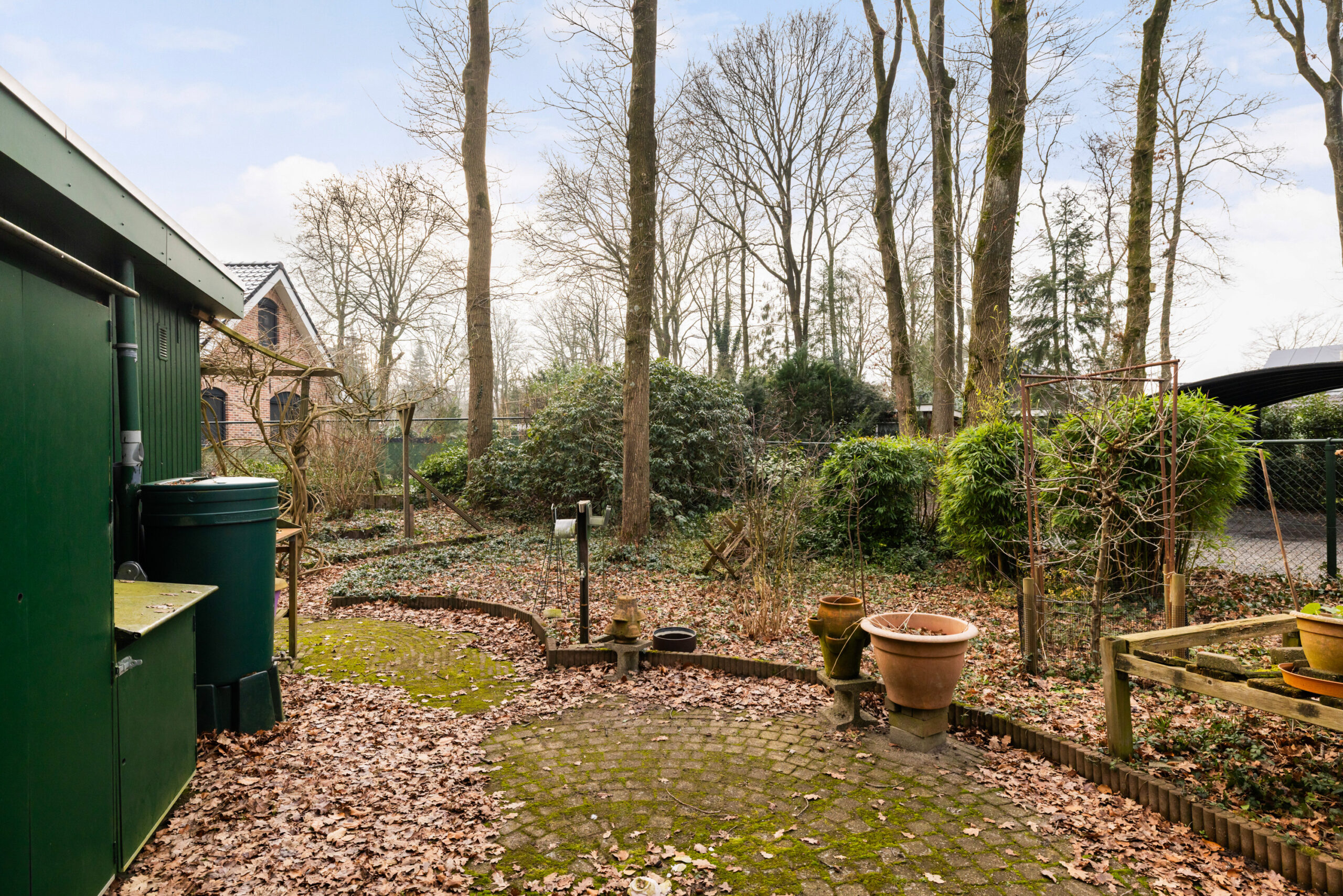 De tuin is gesitueerd rondom de woning en voorzien van een aantal hoge volgroeide bomen en een diversiteit aan beplanting. Direct grenzend aan de openslaande deuren bevindt zich een terras welke deels overdekt is en verder in de tuin is het mogelijk om meerdere zitjes te creëren waardoor het op verschillen plekken optimaal genieten is van de rust, ruimte en privacy die deze bosrijke omgeving u te bieden heeft. In 2023 is een infiltratieput aangelegd in de tuin ten behoeve van het regenwater. Tevens is er een grondwaterpomp voor beregening van de tuin.