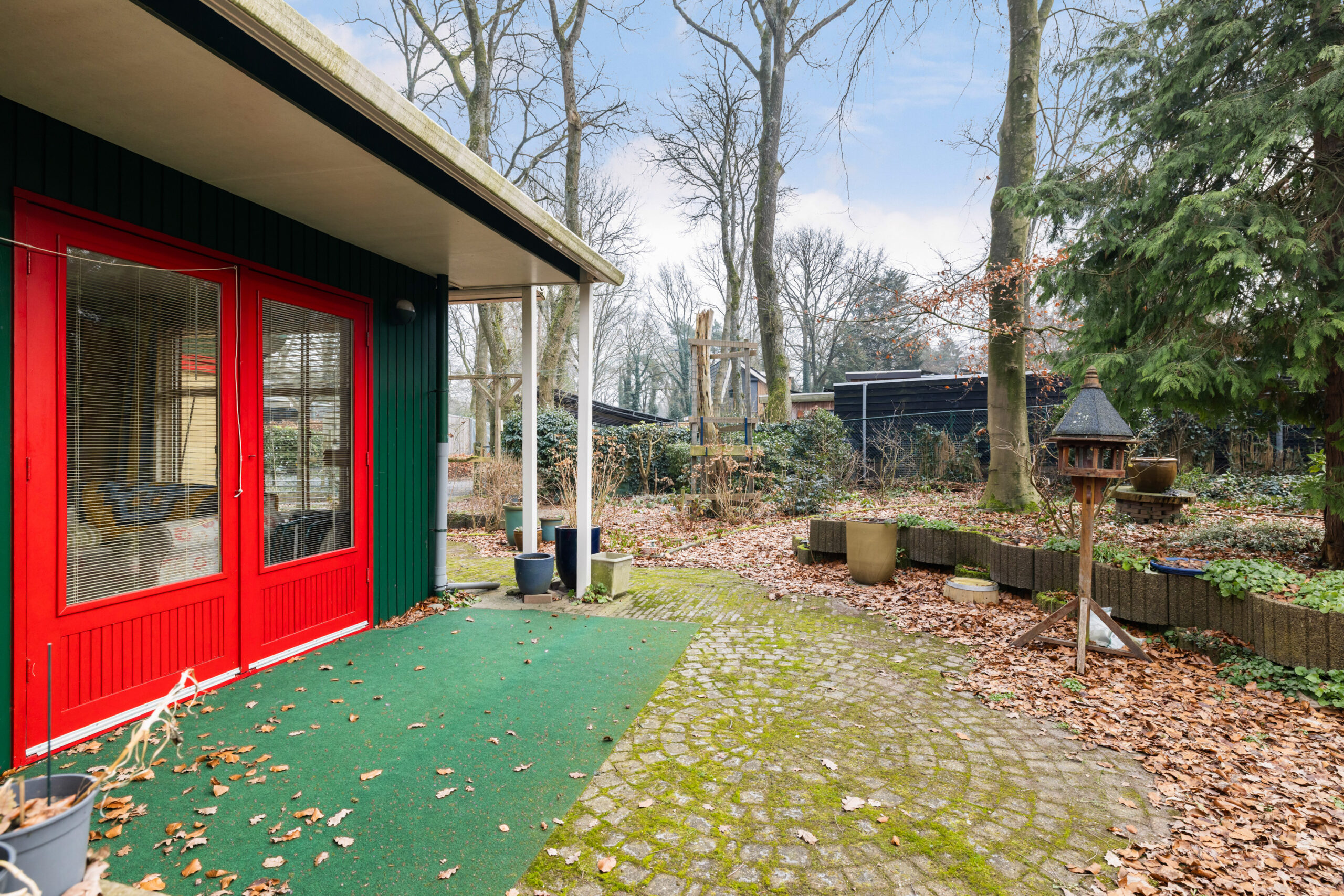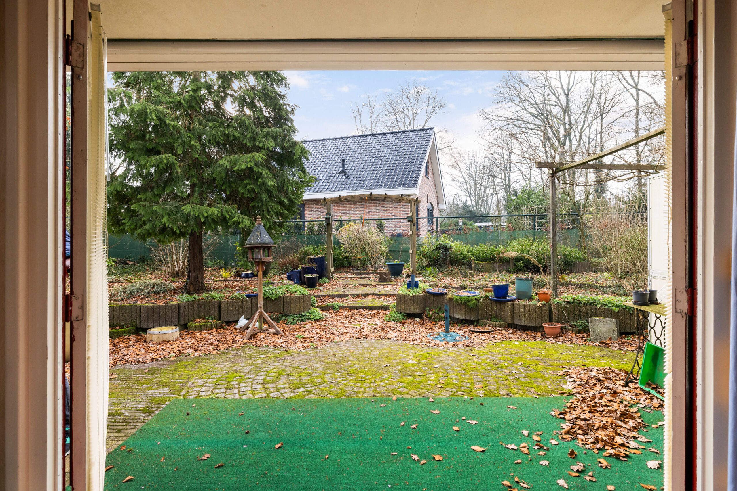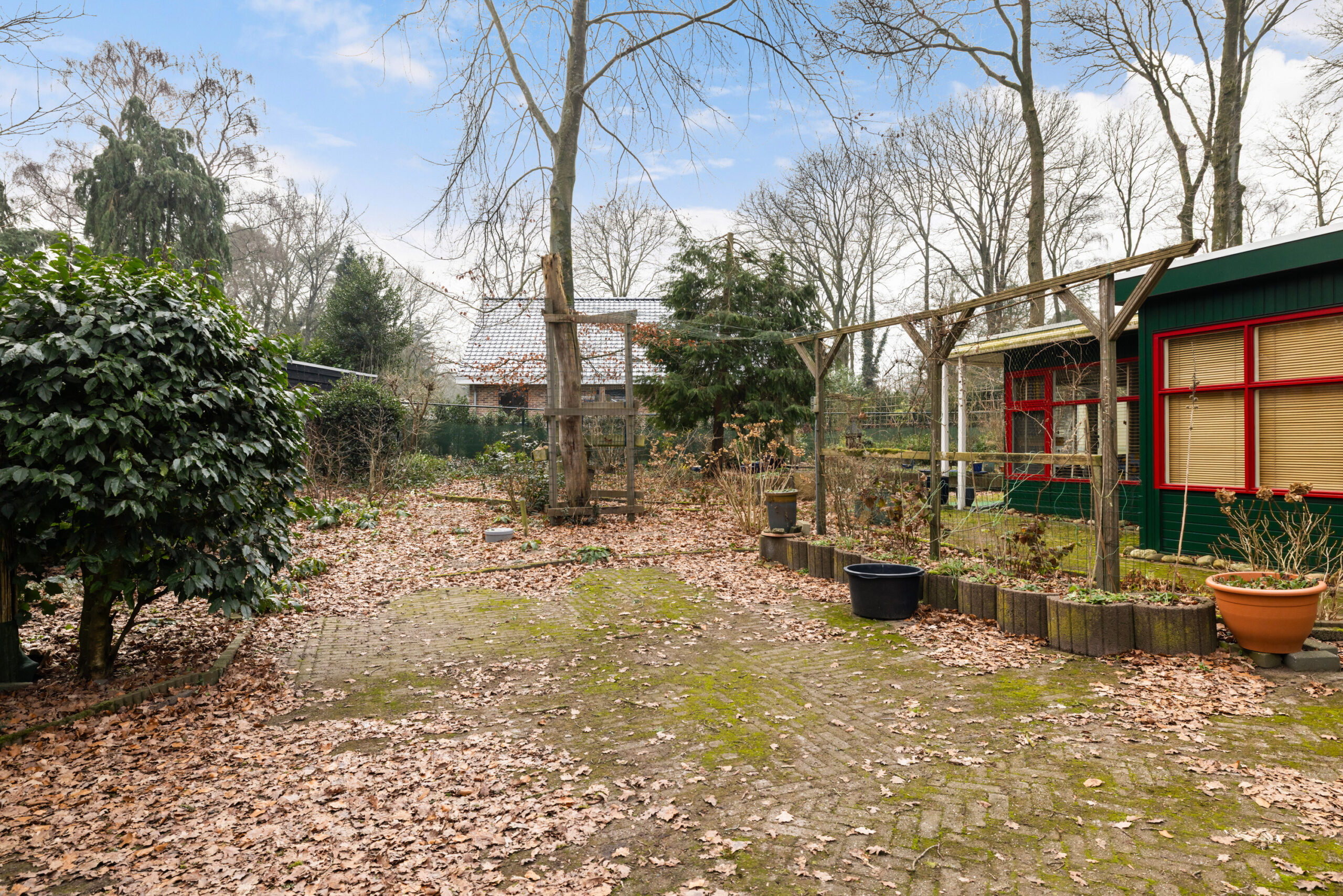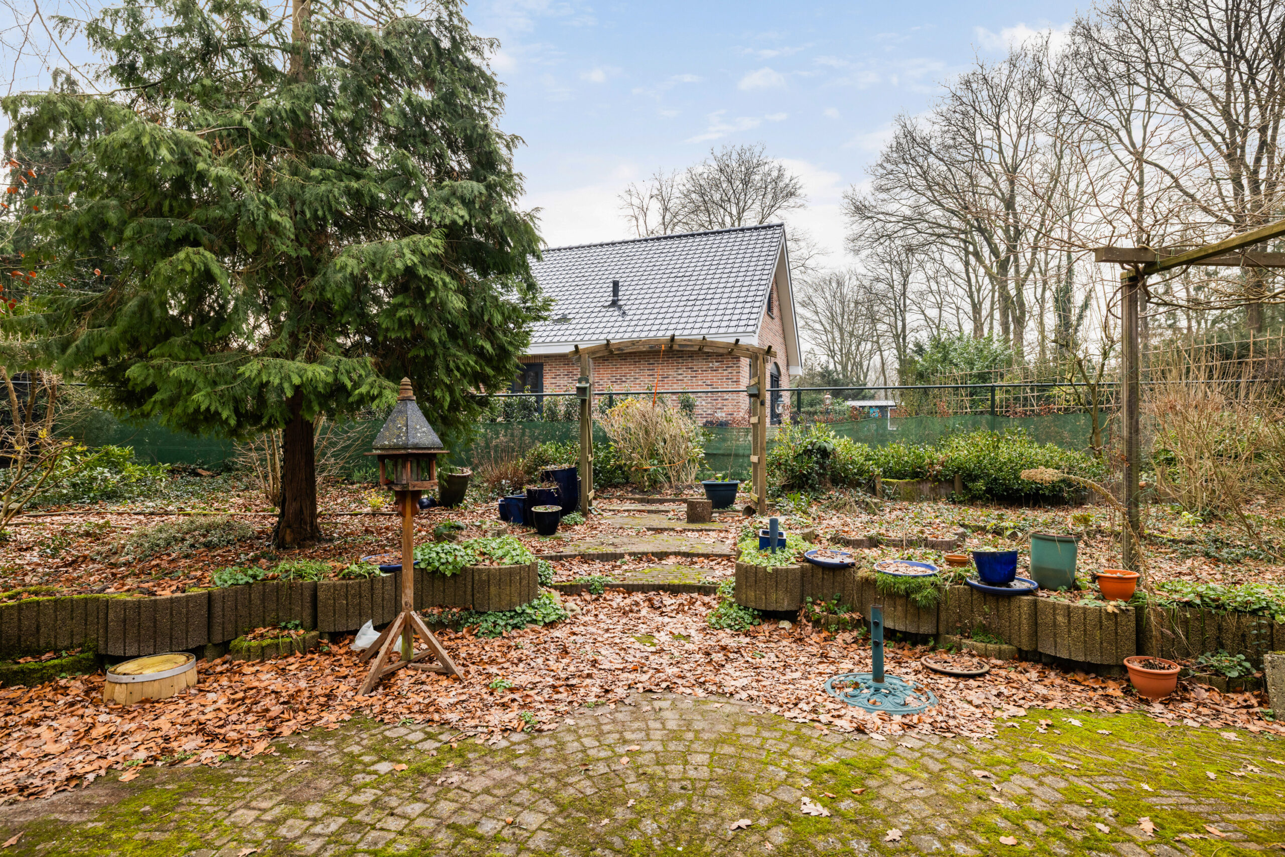 De tuin is gesitueerd rondom de woning en voorzien van een aantal hoge volgroeide bomen en een diversiteit aan beplanting. Direct grenzend aan de openslaande deuren bevindt zich een terras welke deels overdekt is en verder in de tuin is het mogelijk om meerdere zitjes te creëren waardoor het op verschillen plekken optimaal genieten is van de rust, ruimte en privacy die deze bosrijke omgeving u te bieden heeft. In 2023 is een infiltratieput aangelegd in de tuin ten behoeve van het regenwater. Tevens is er een grondwaterpomp voor beregening van de tuin.