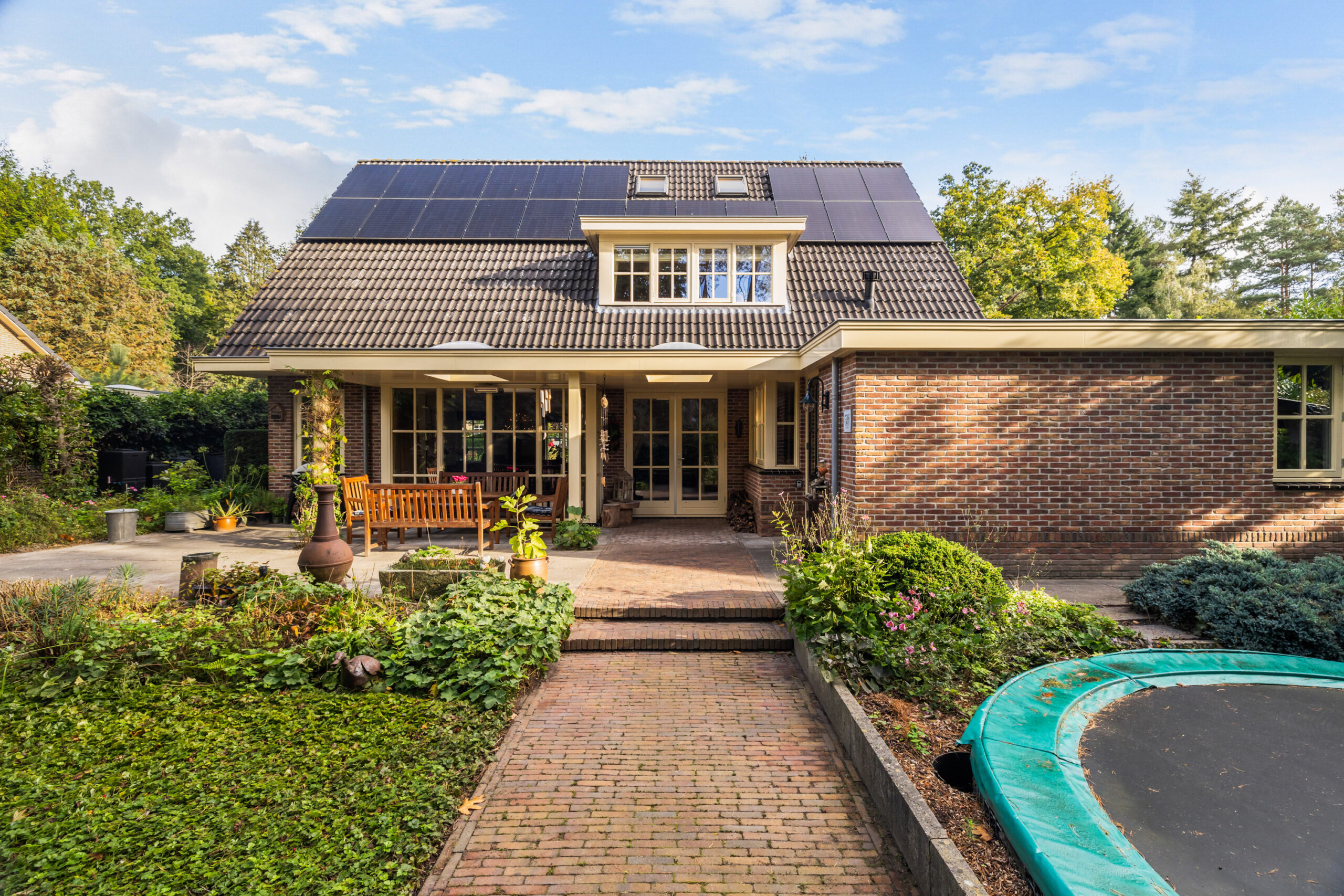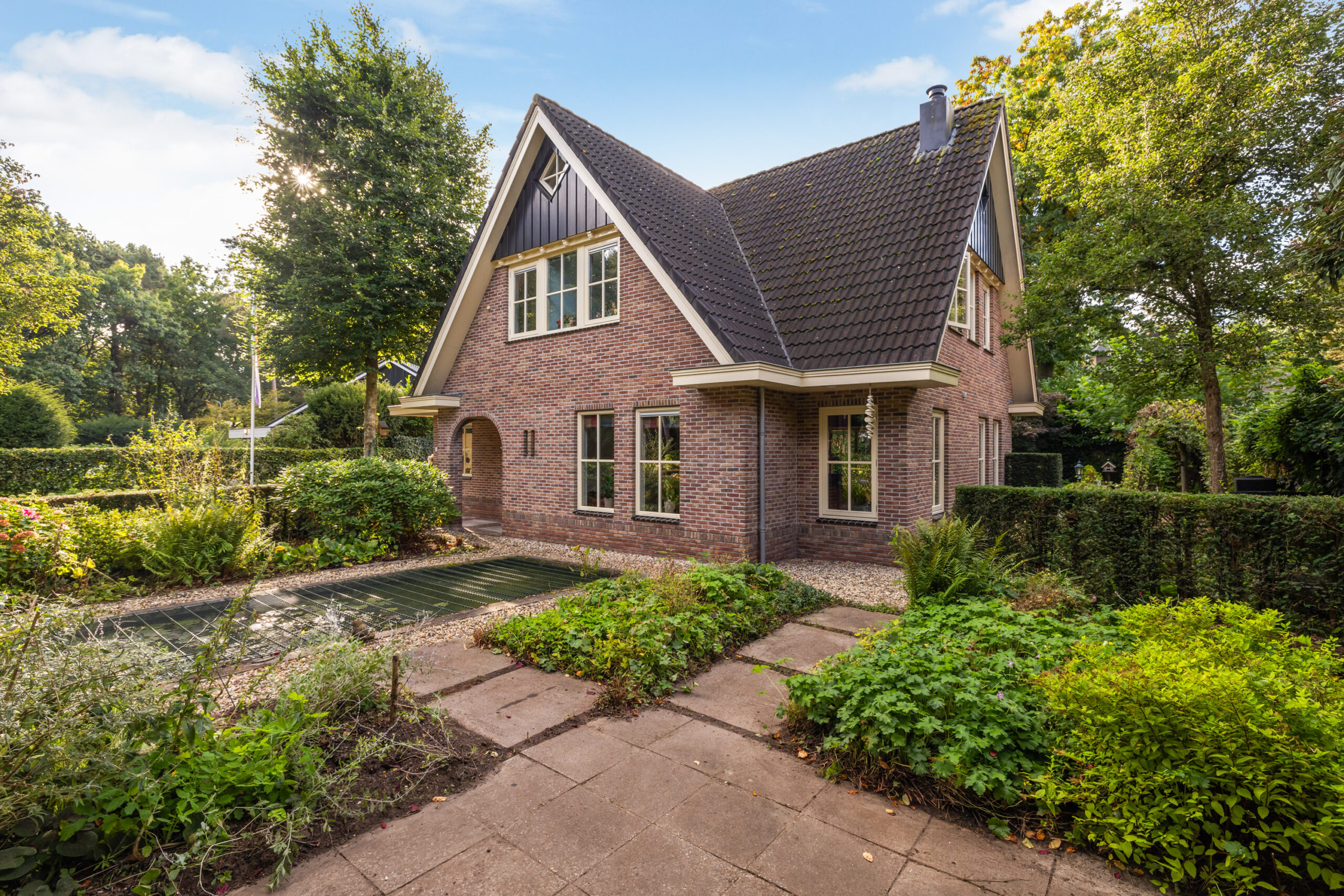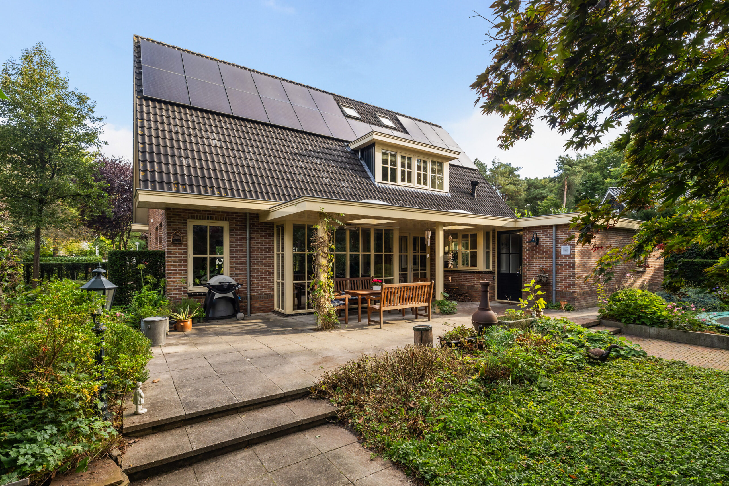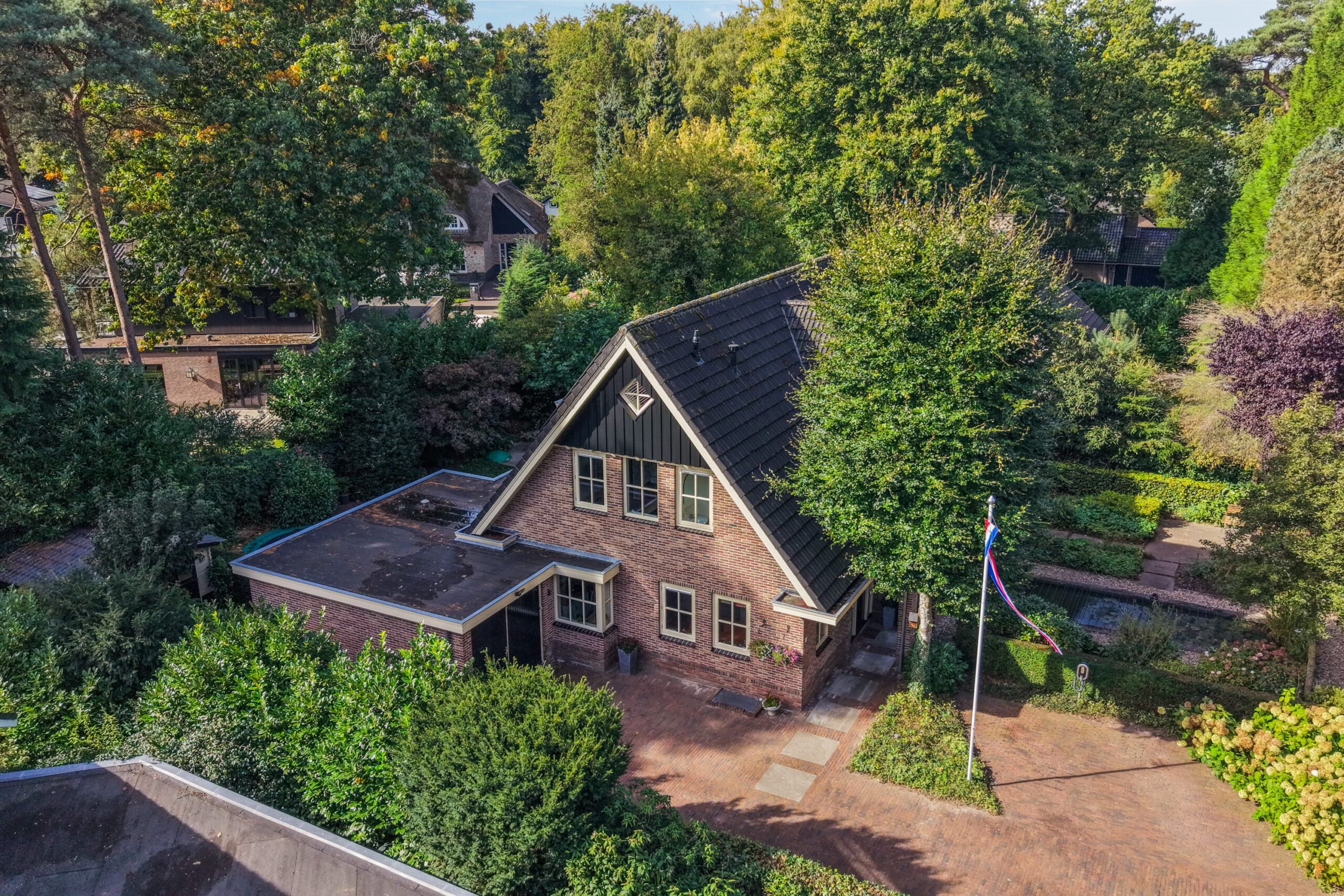 Op een fantastische locatie midden in het groen en aan de rand van het bos staat deze schitterende, vrijstaande en grotendeels onderkelderde villa met oprit, aangebouwde garage en tuinhuis op een fraai aangelegd perceel van 805 m².