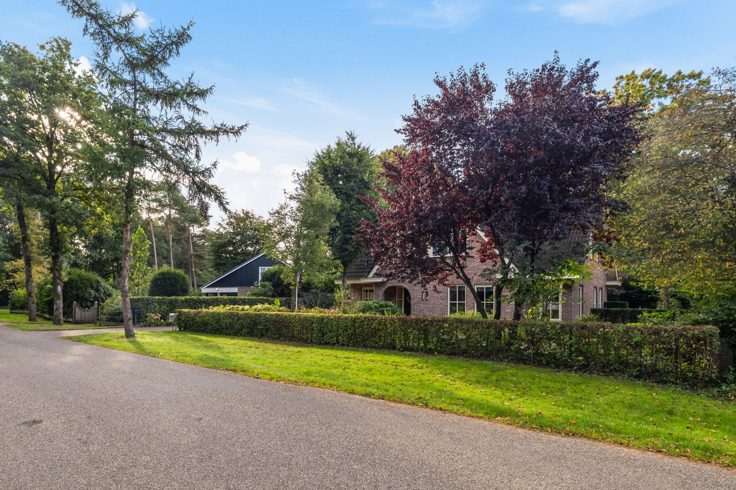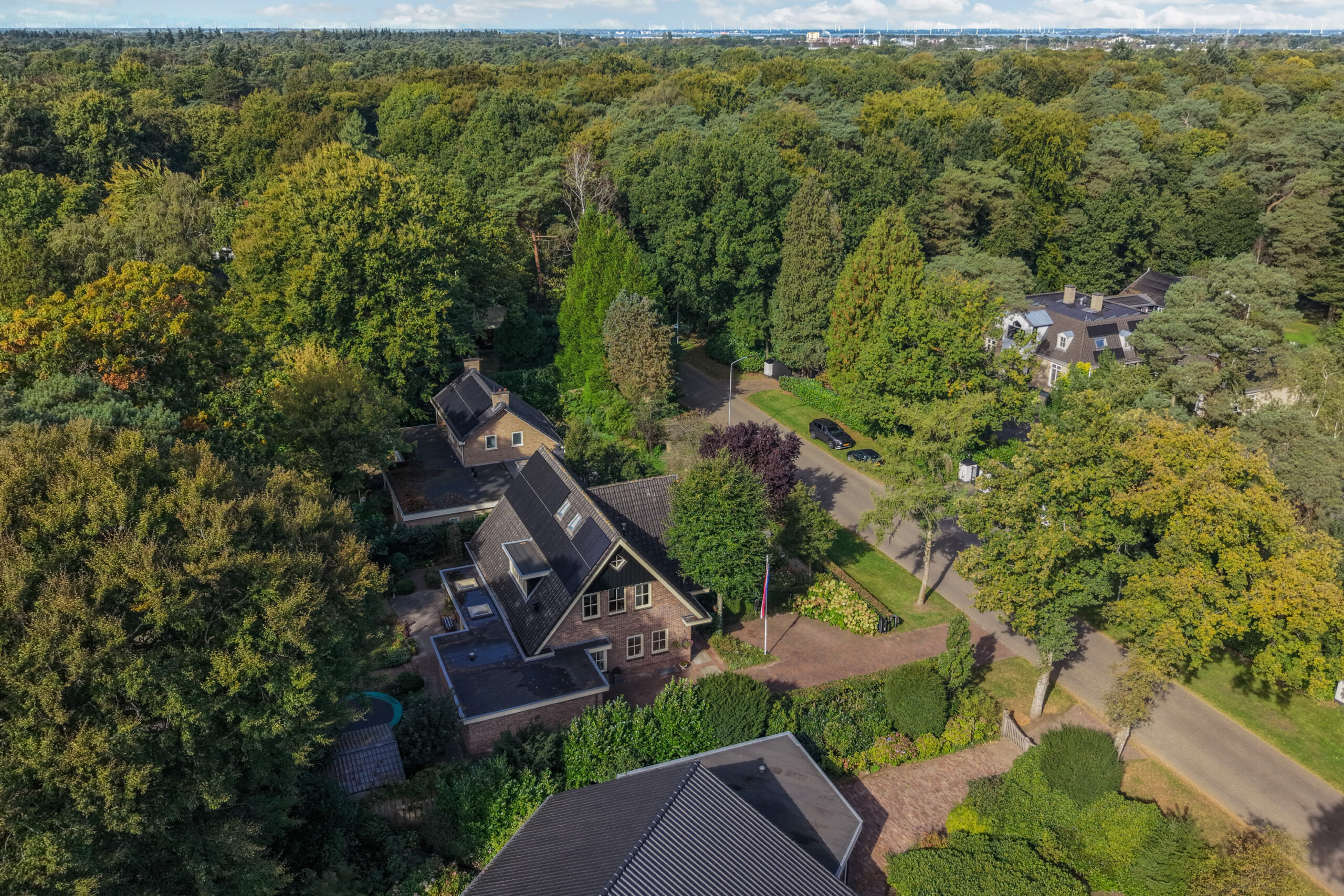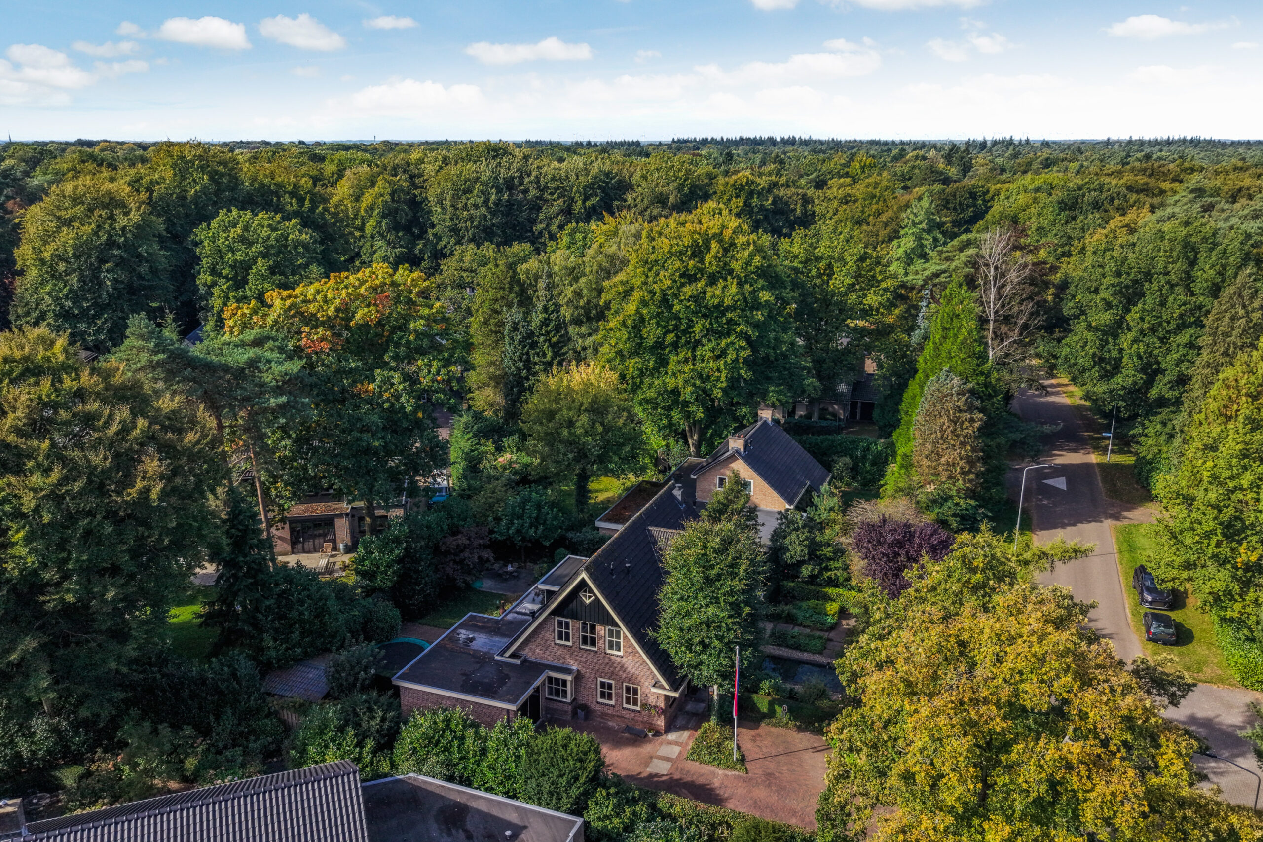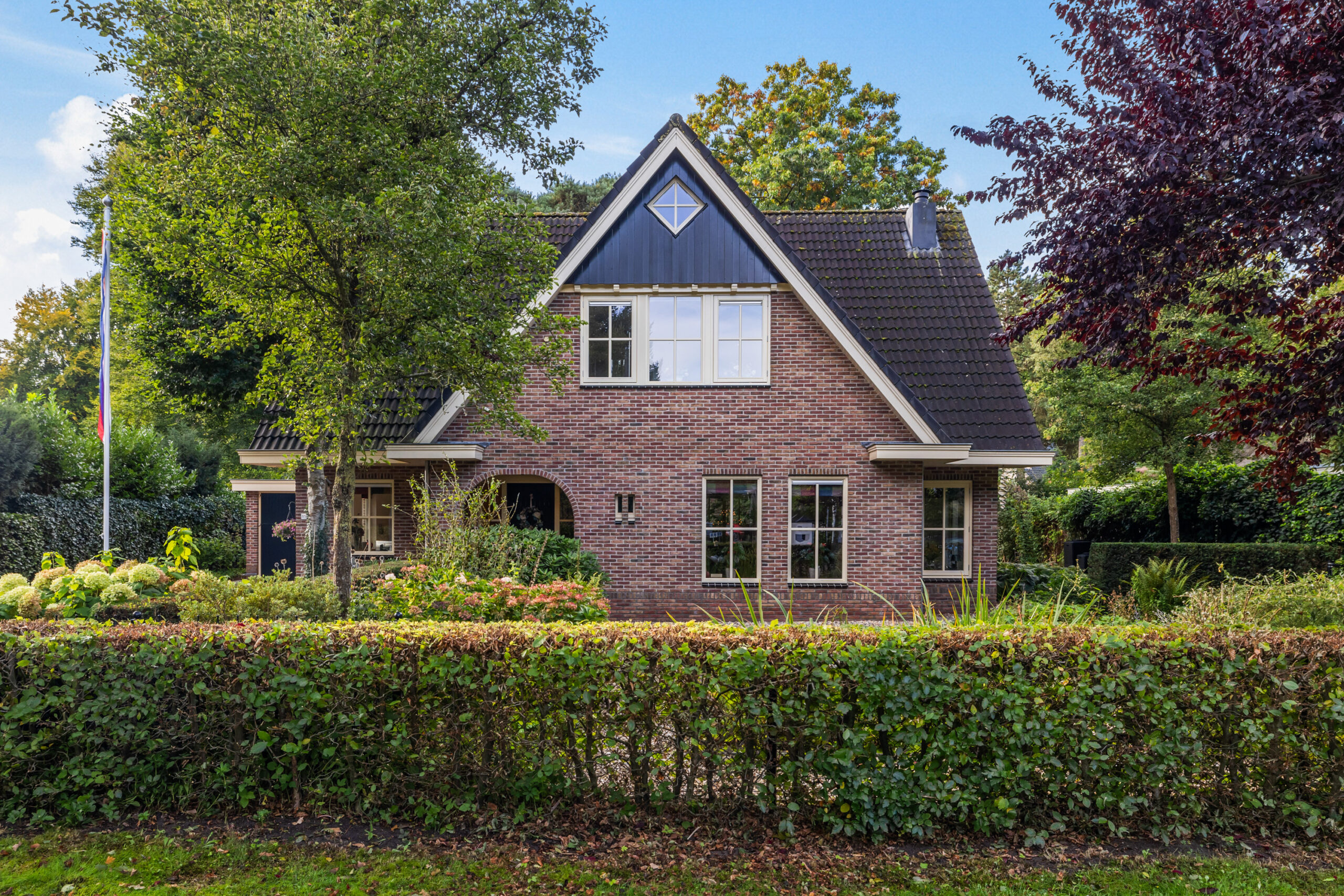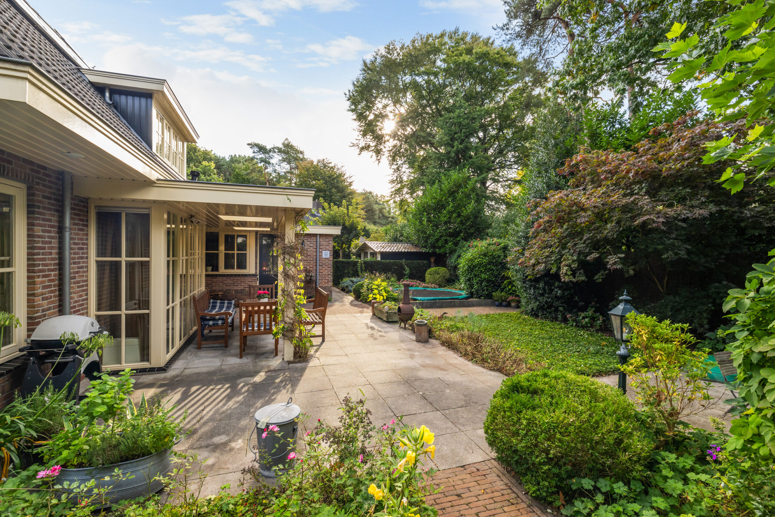 Op een fantastische locatie midden in het groen en aan de rand van het bos staat deze schitterende, vrijstaande en grotendeels onderkelderde villa met oprit, aangebouwde garage en tuinhuis op een fraai aangelegd perceel van 805 m².