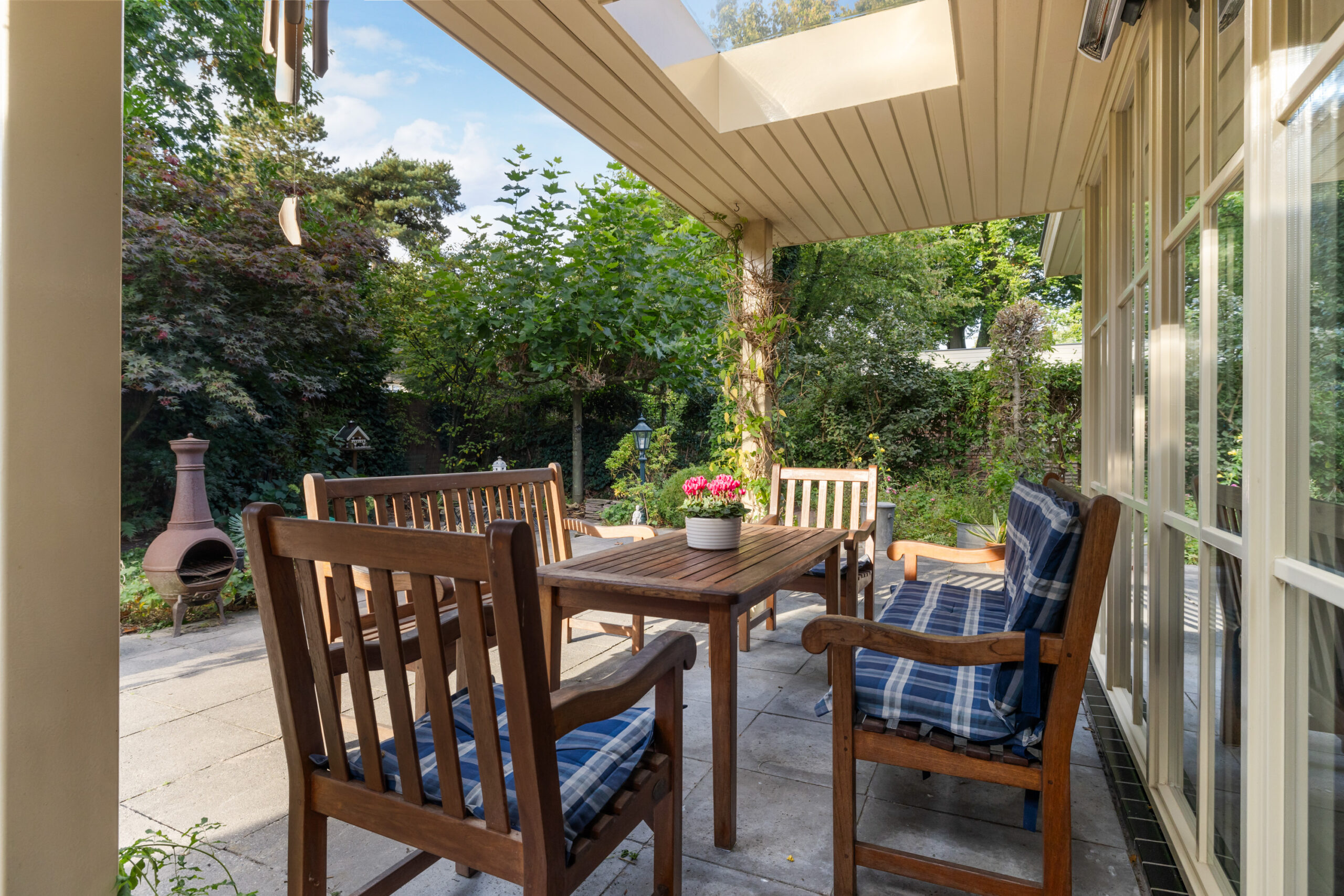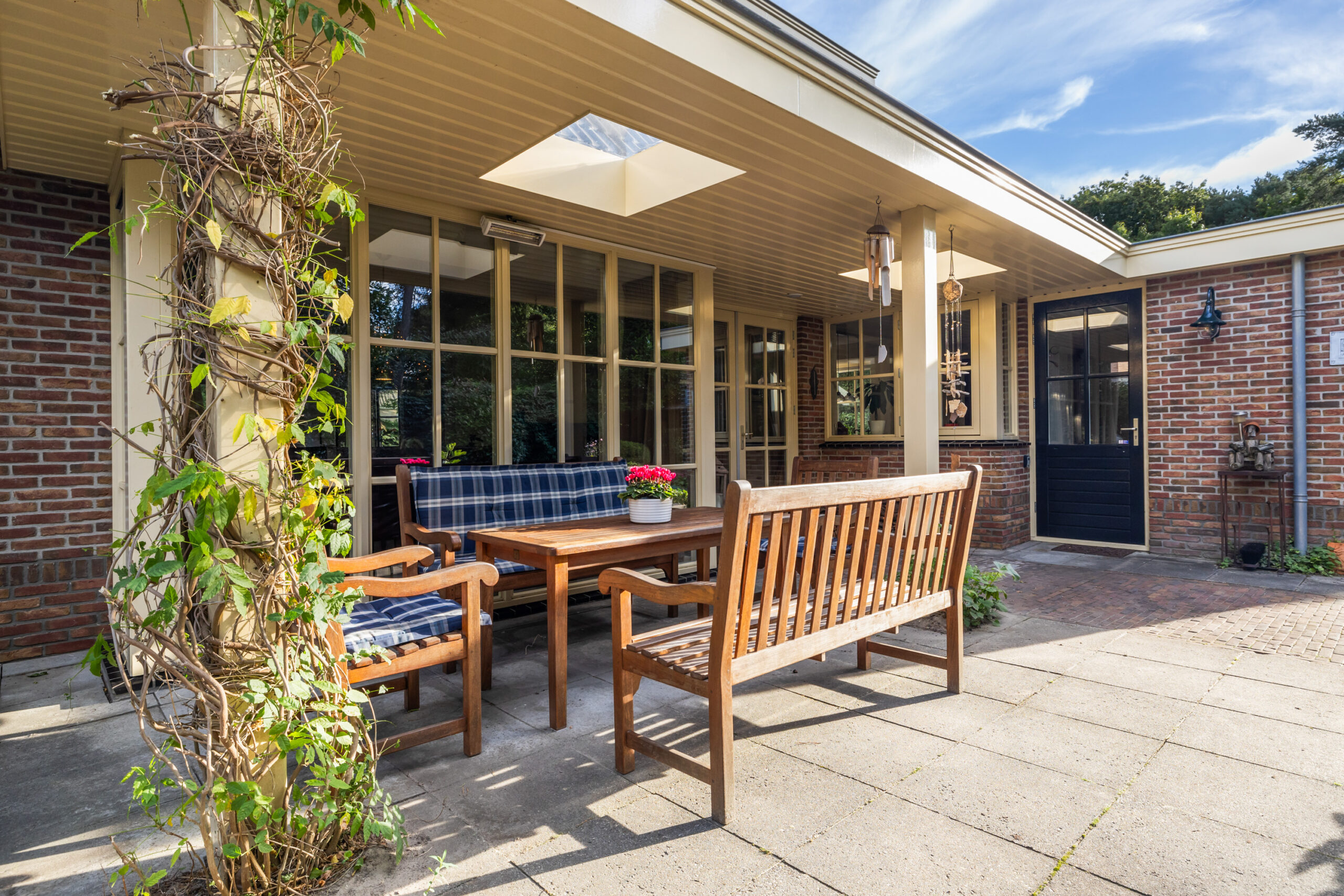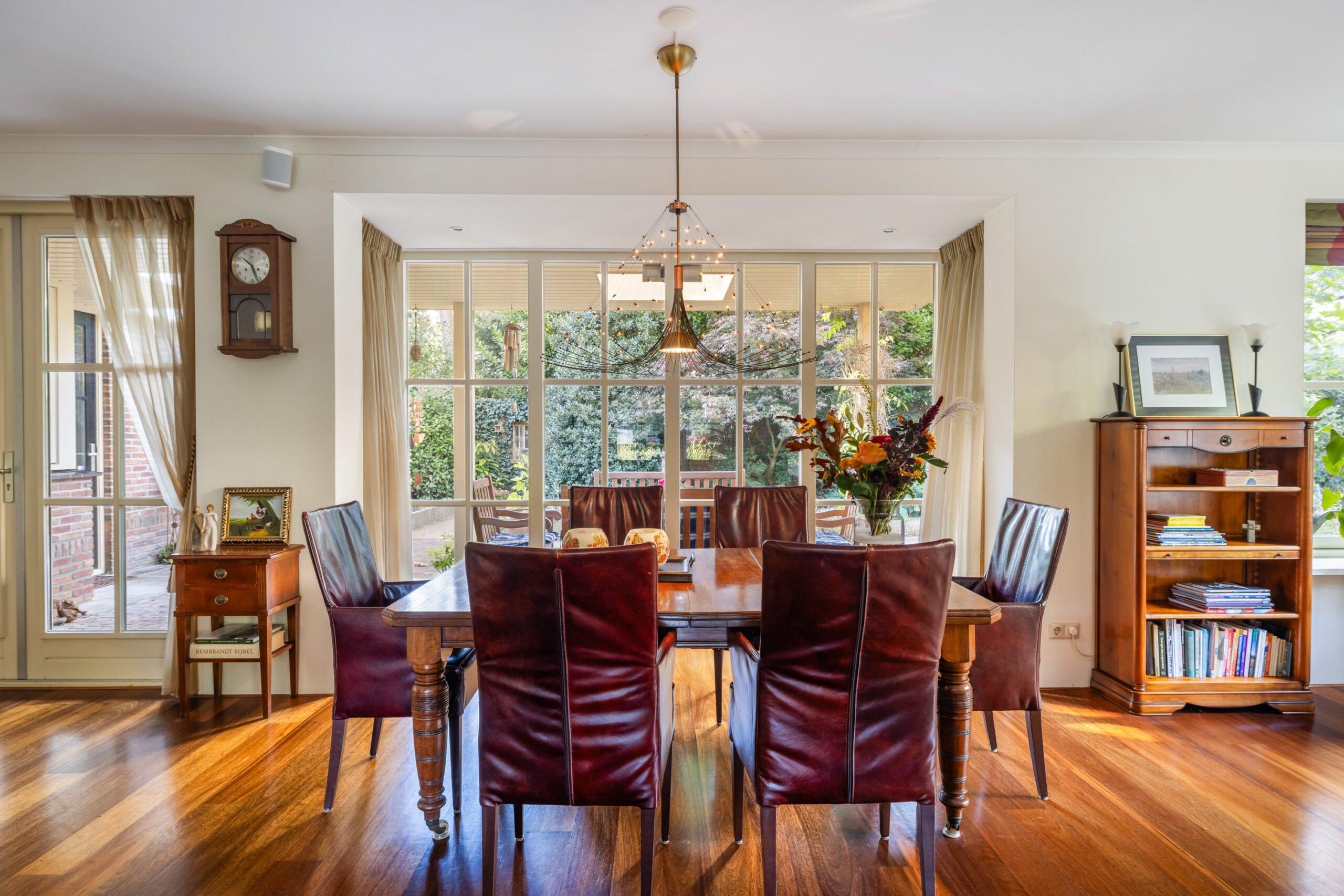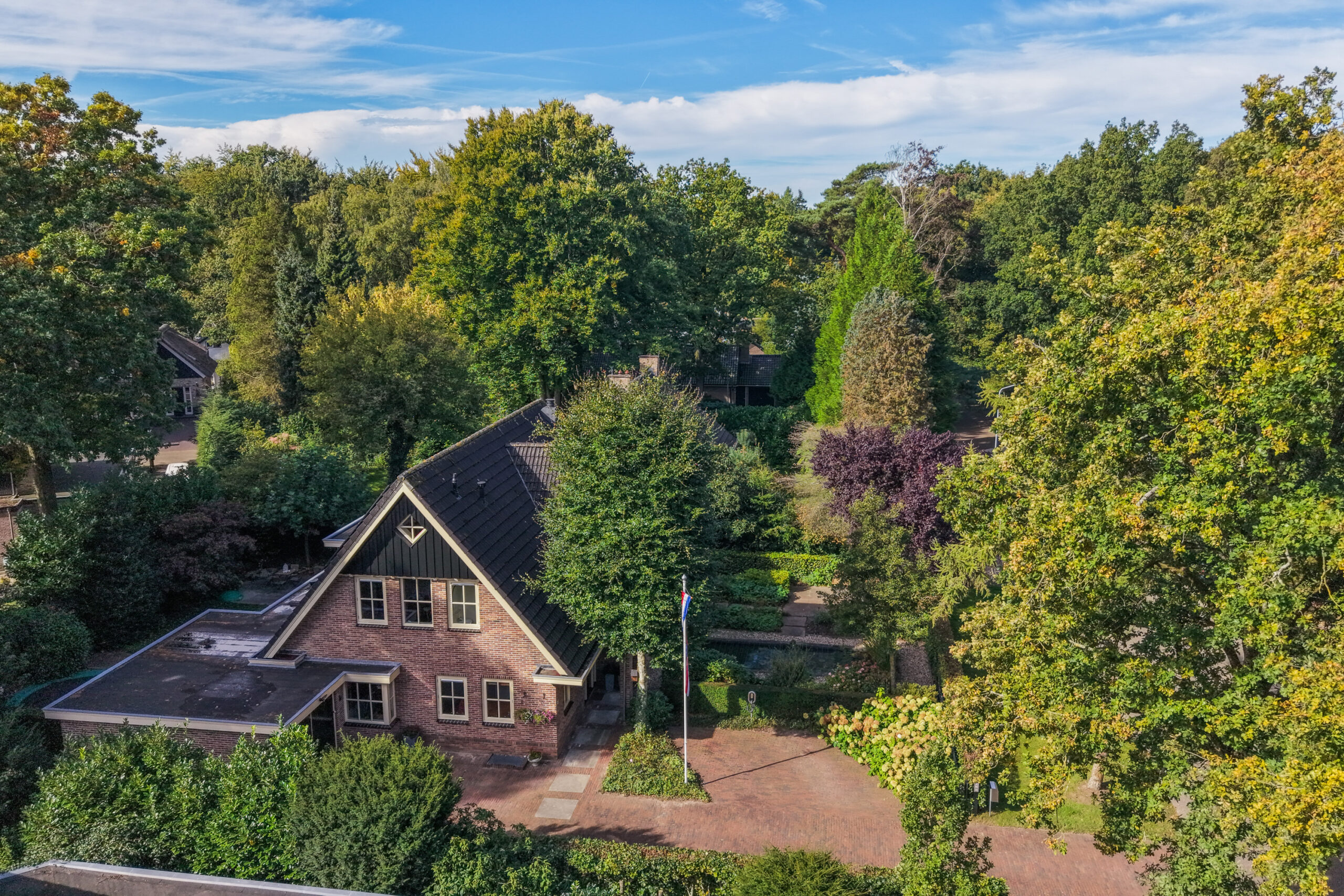 Op een fantastische locatie midden in het groen en aan de rand van het bos staat deze schitterende, vrijstaande en grotendeels onderkelderde villa met oprit, aangebouwde garage en tuinhuis op een fraai aangelegd perceel van 805 m².