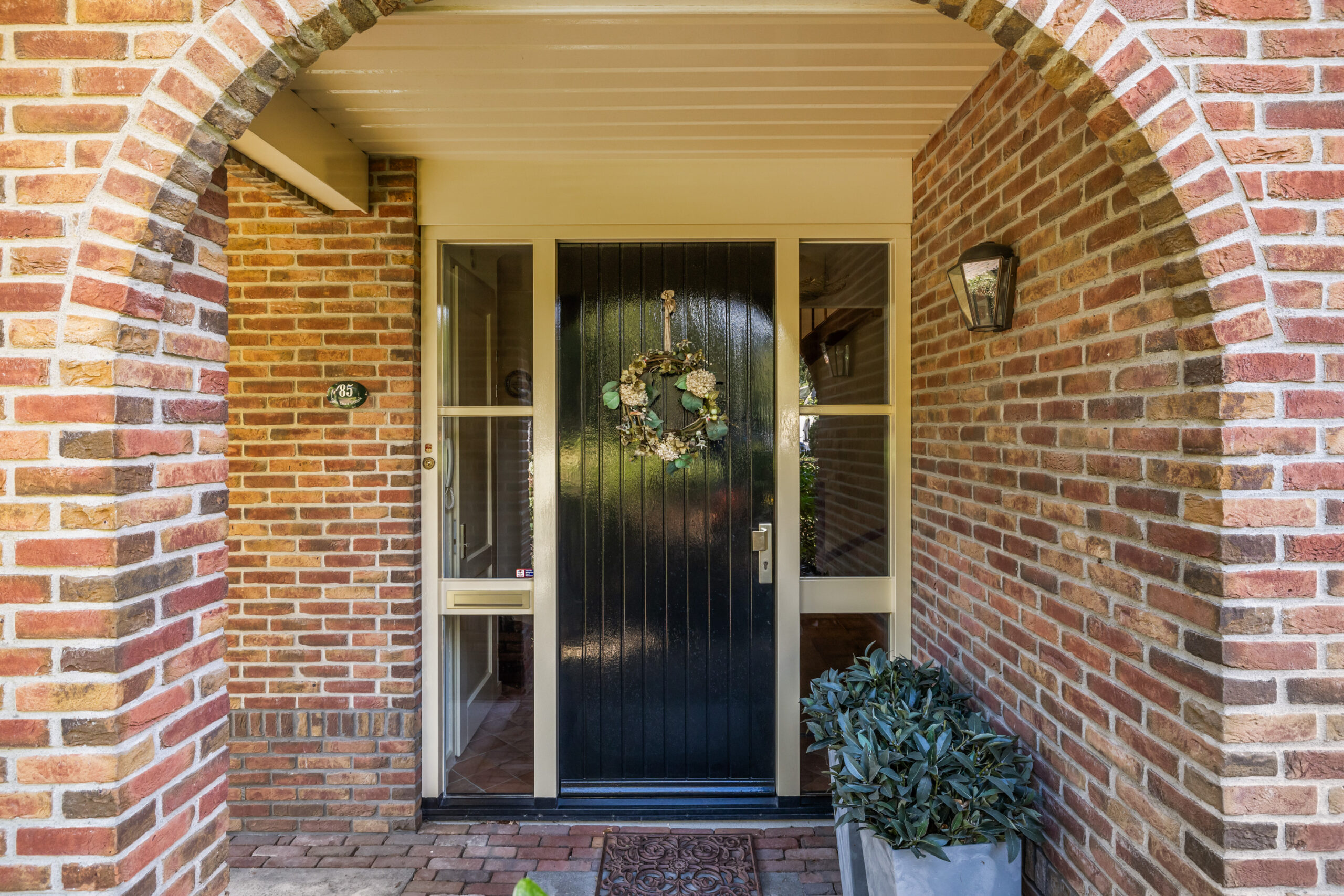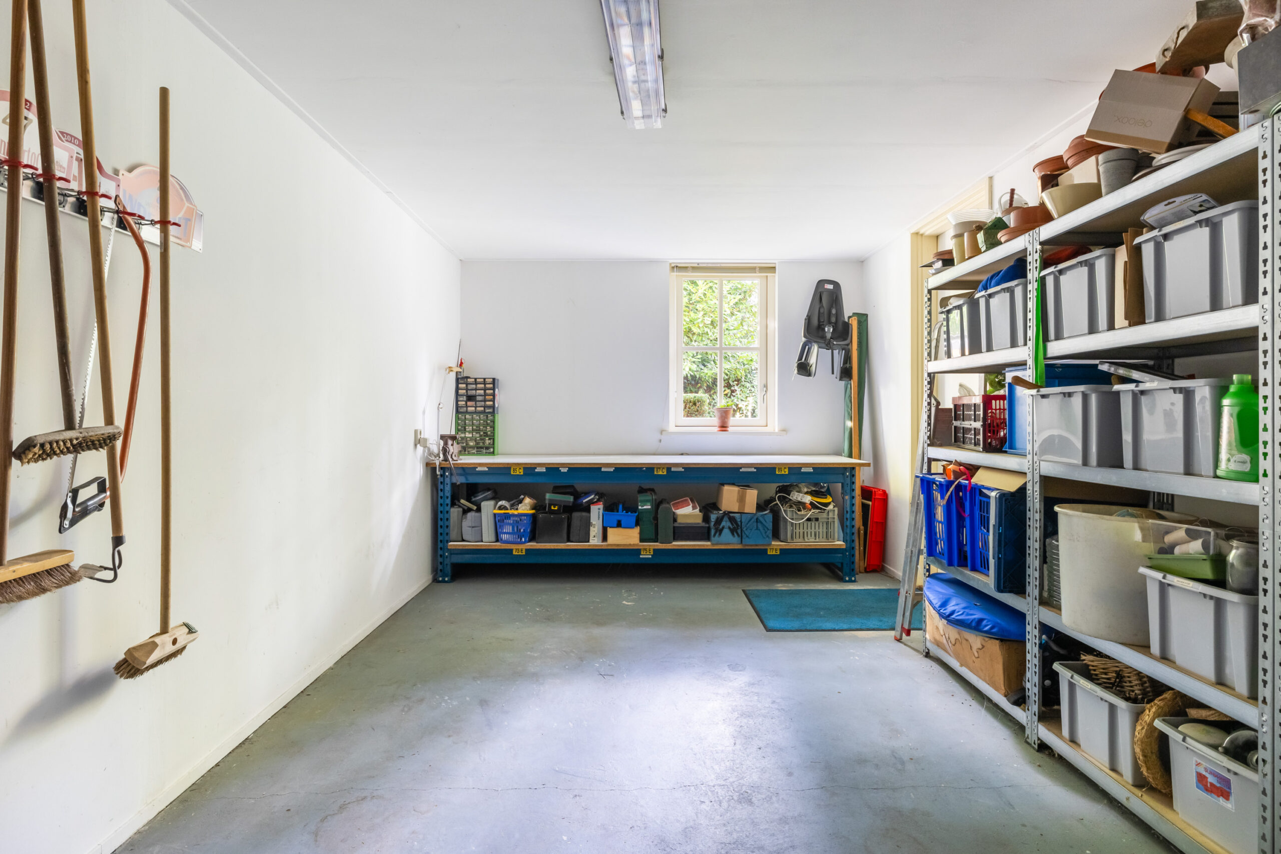 De aangebouwde garage is voorzien van houten openslaande deuren naar de oprit welke voldoende parkeermogelijkheden biedt voor meerdere auto's op eigen terrein. Tevens bevindt zich aan de voorzijde een elektrische laadpaal. De oprit is af te sluiten middels een elektrisch bedienbaar smeedijzeren hekwerk.
