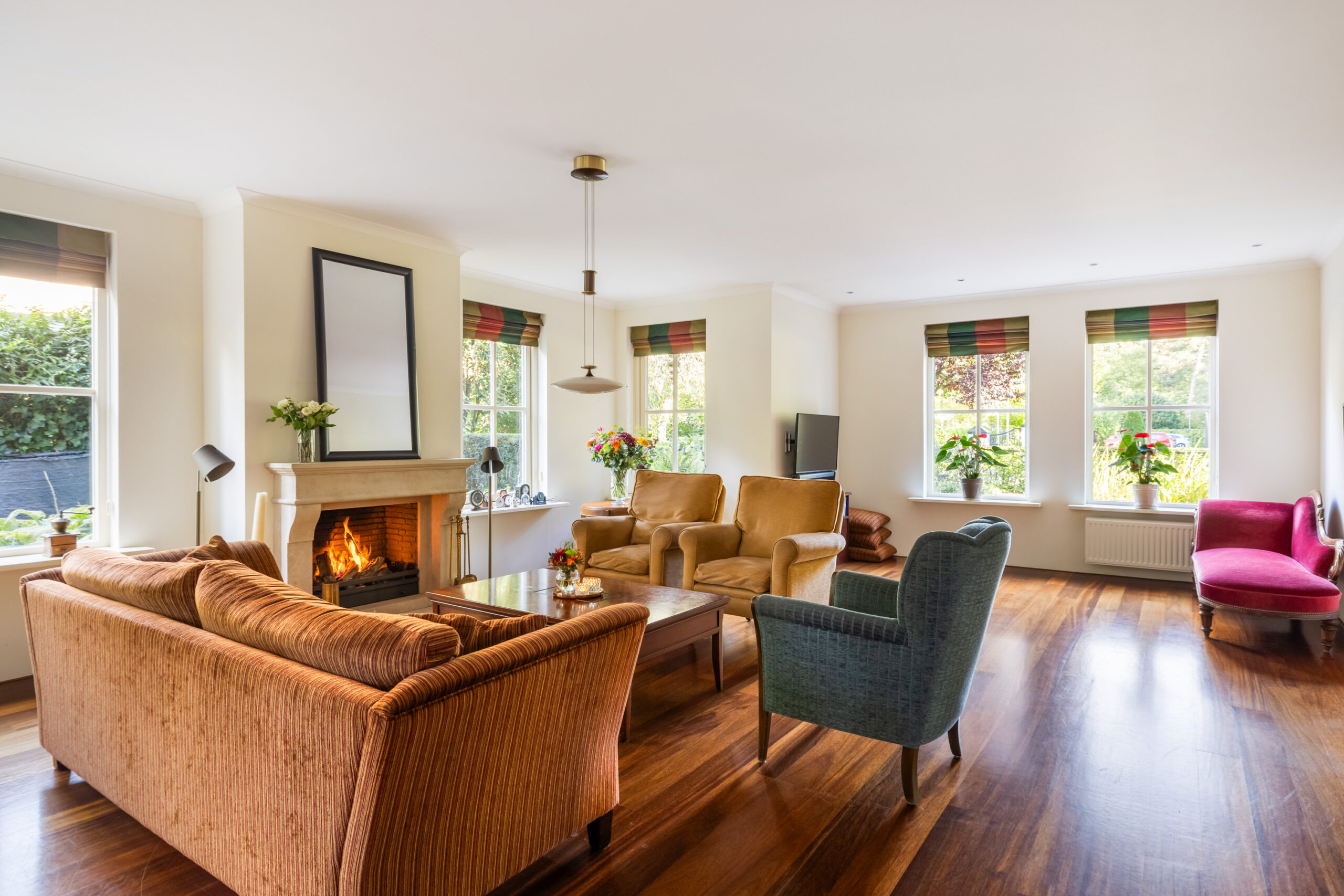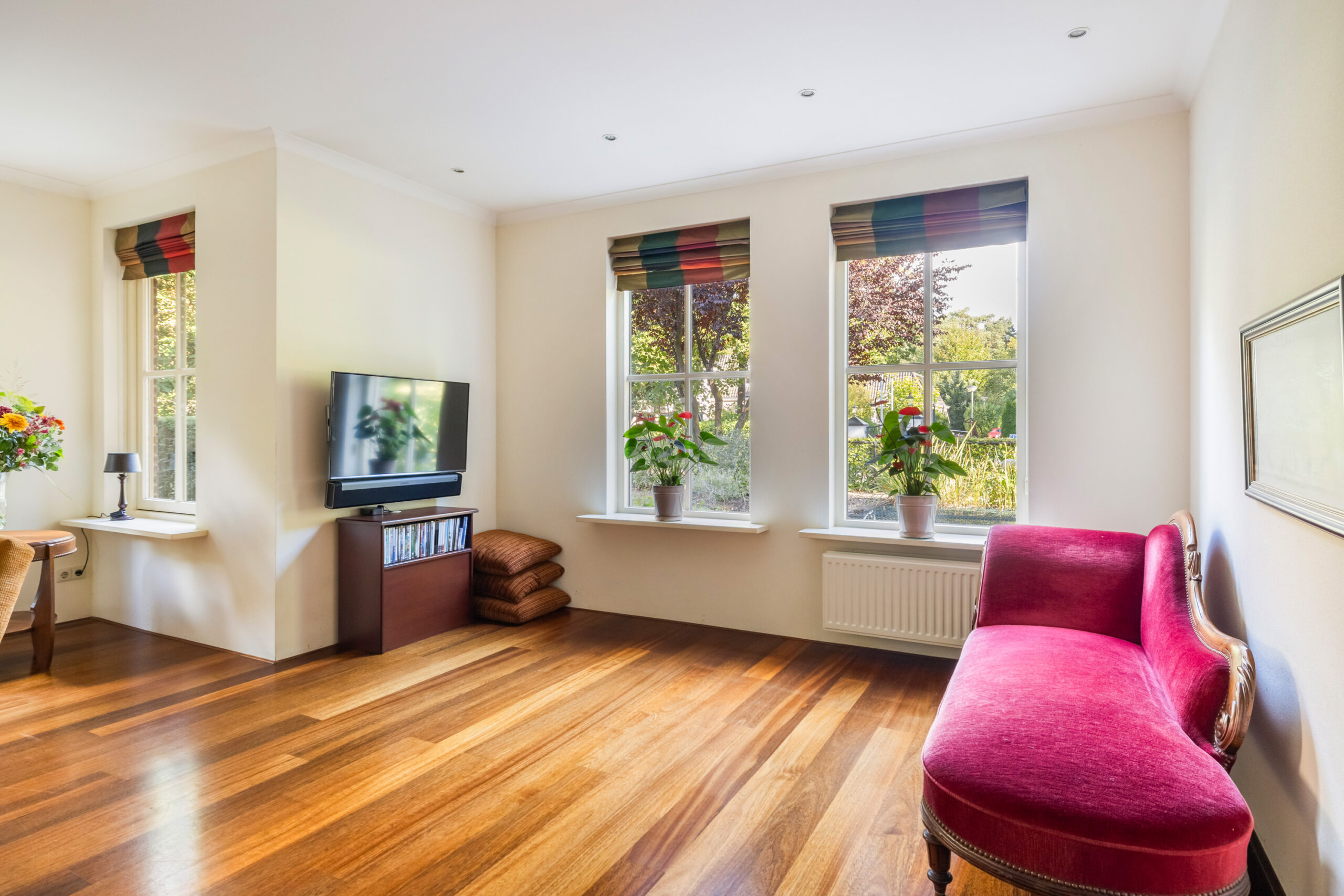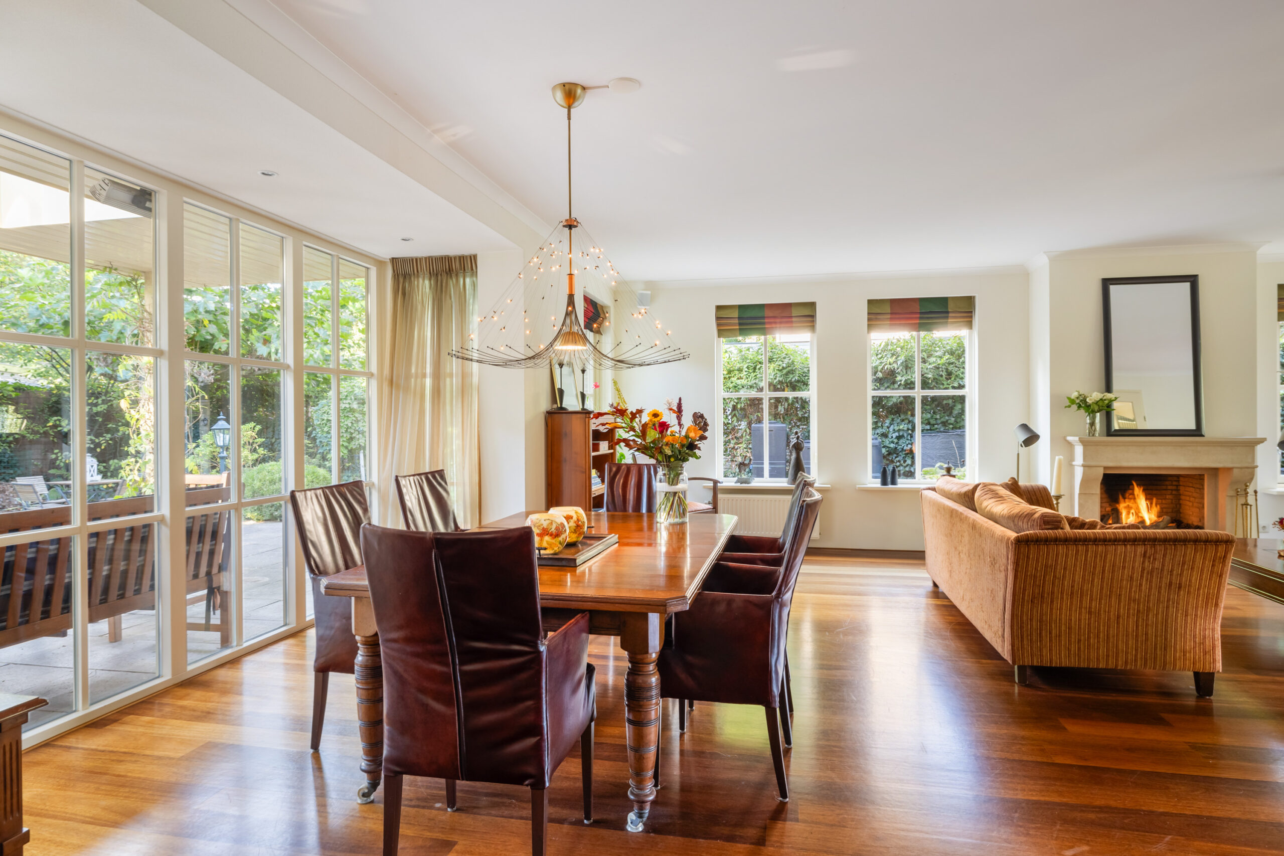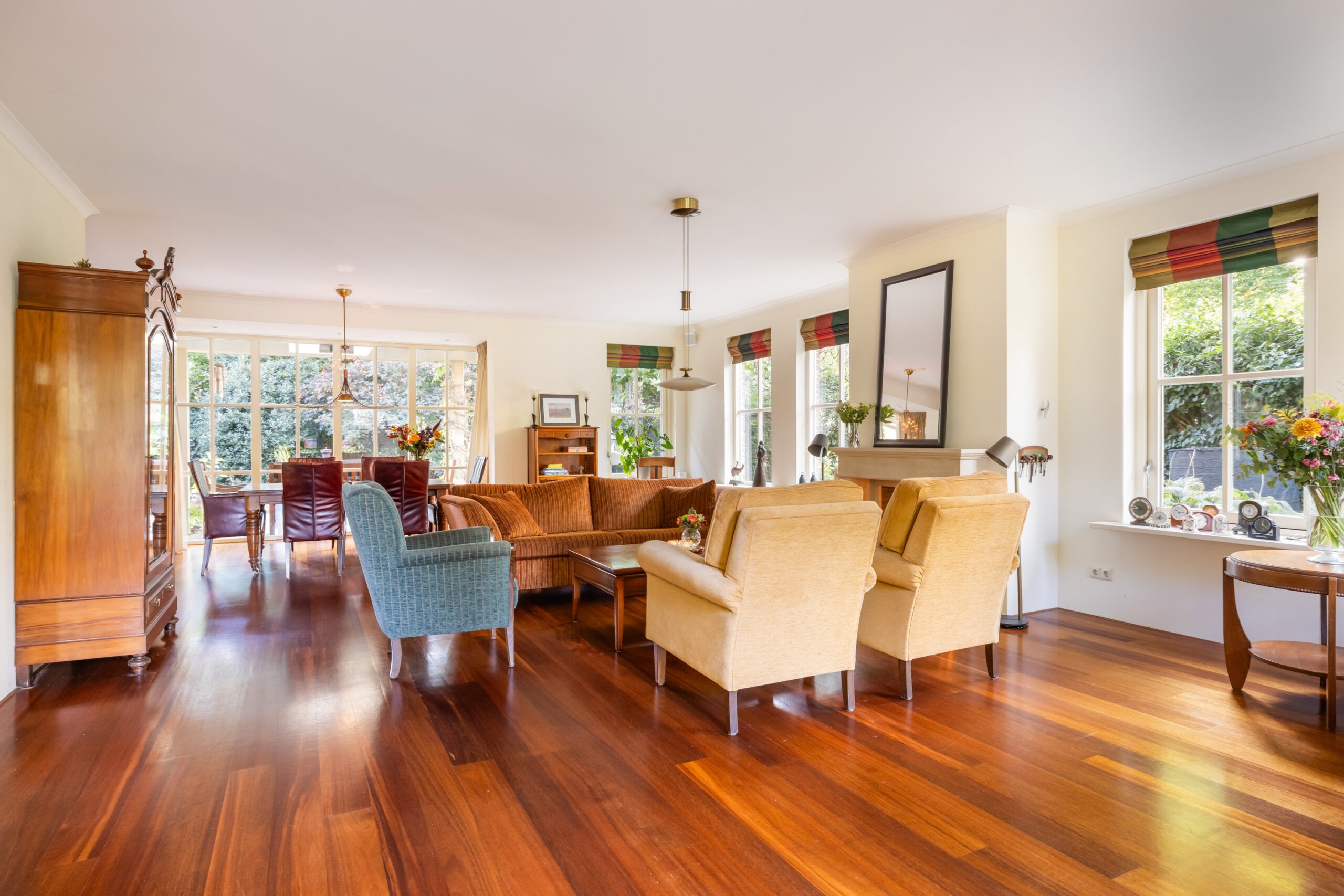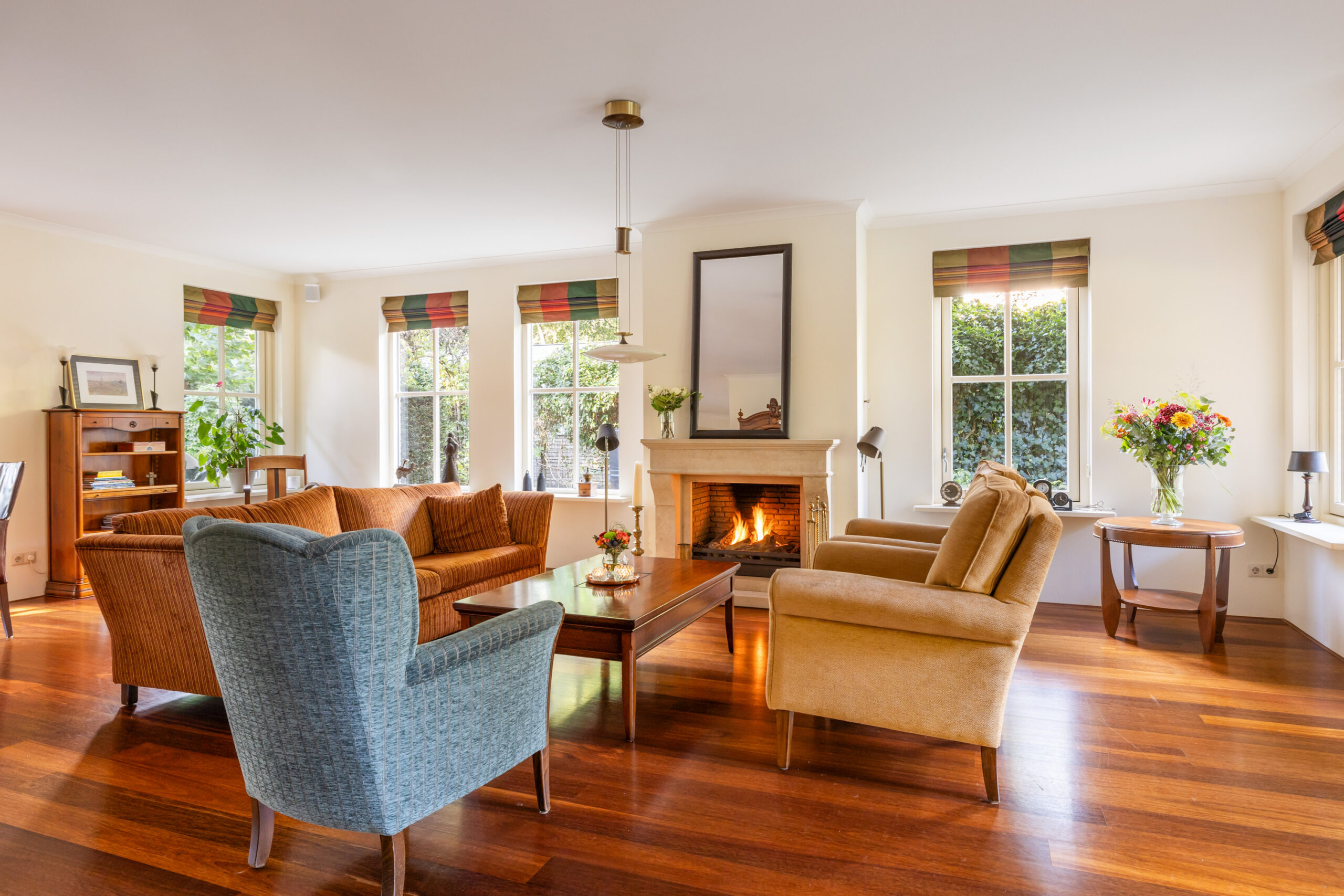 Middels de openslaande deuren krijgt u toegang tot de ruime living met houten vloer en inbouwspots en voorzien van een sfeervolle gashaard en openslaande deuren naar het overdekte terras. Door de vele raampartijen komt er veel natuurlijk lichtinval binnen wat deze living tot een fijne, lichte ruimte maakt!