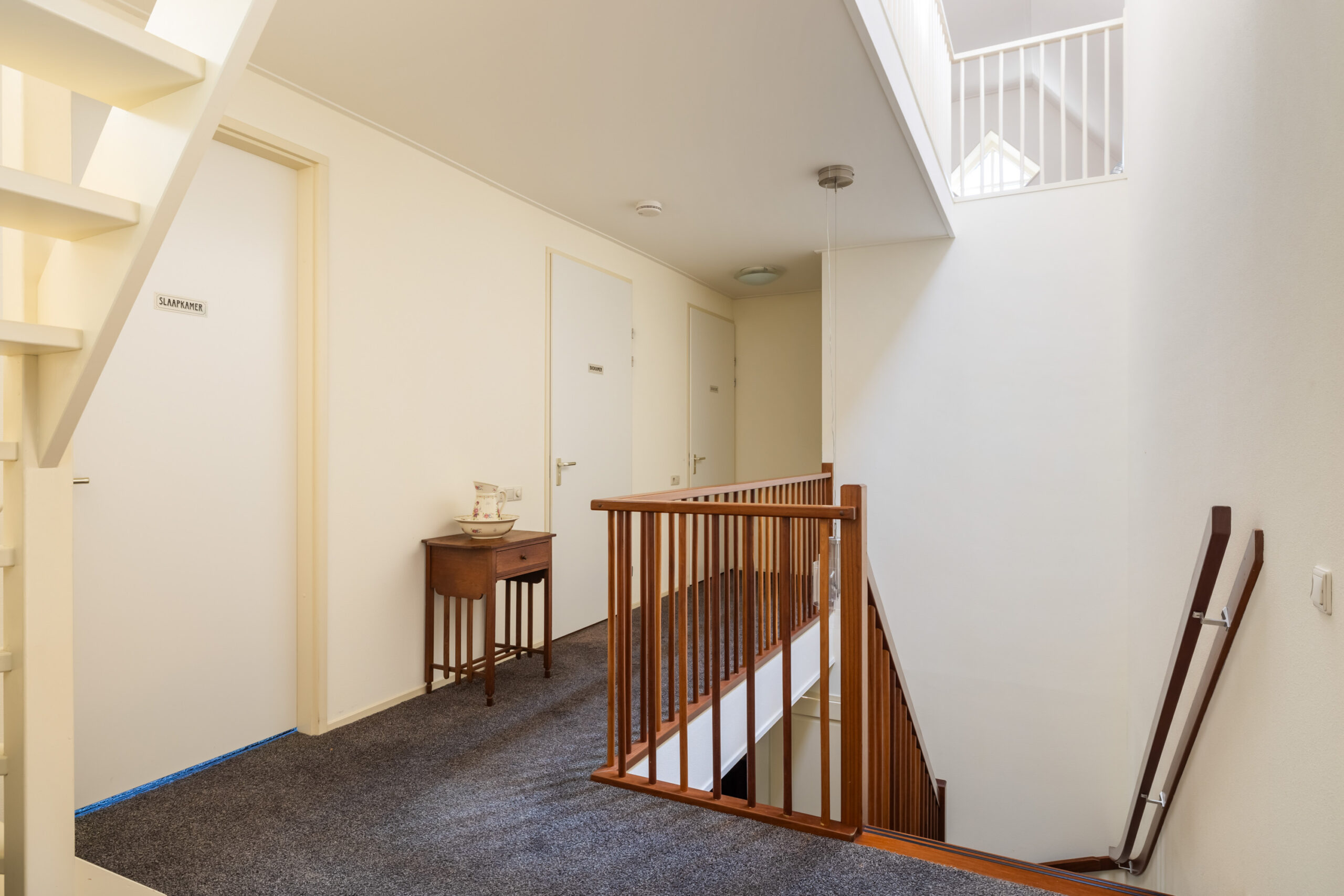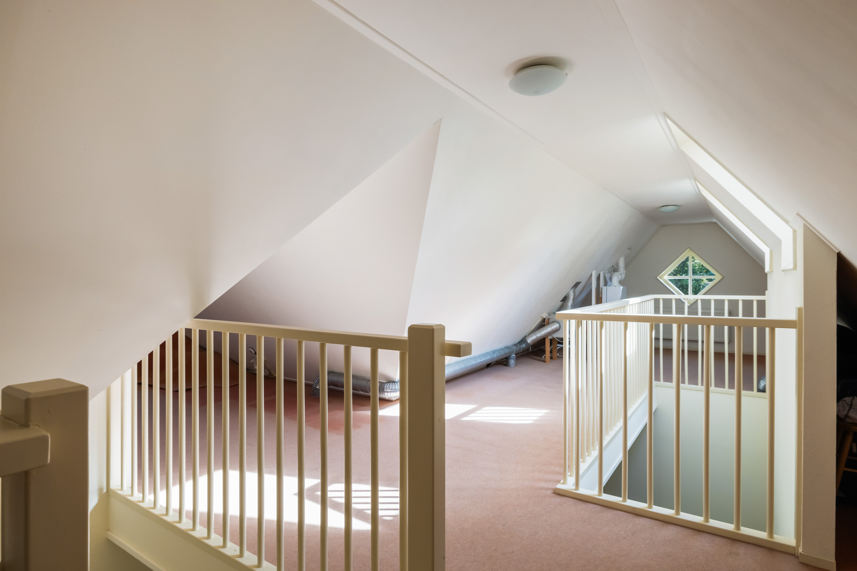 2e verdieping: eveneens middels een open houten trap bereikt u de overloop van de 2e verdieping voorzien van een tweetal dakramen en met opstelplaats voor de cv-ketel (Atag, 2023). Tevens bevindt zich hier nog een 5e slaapkamer.