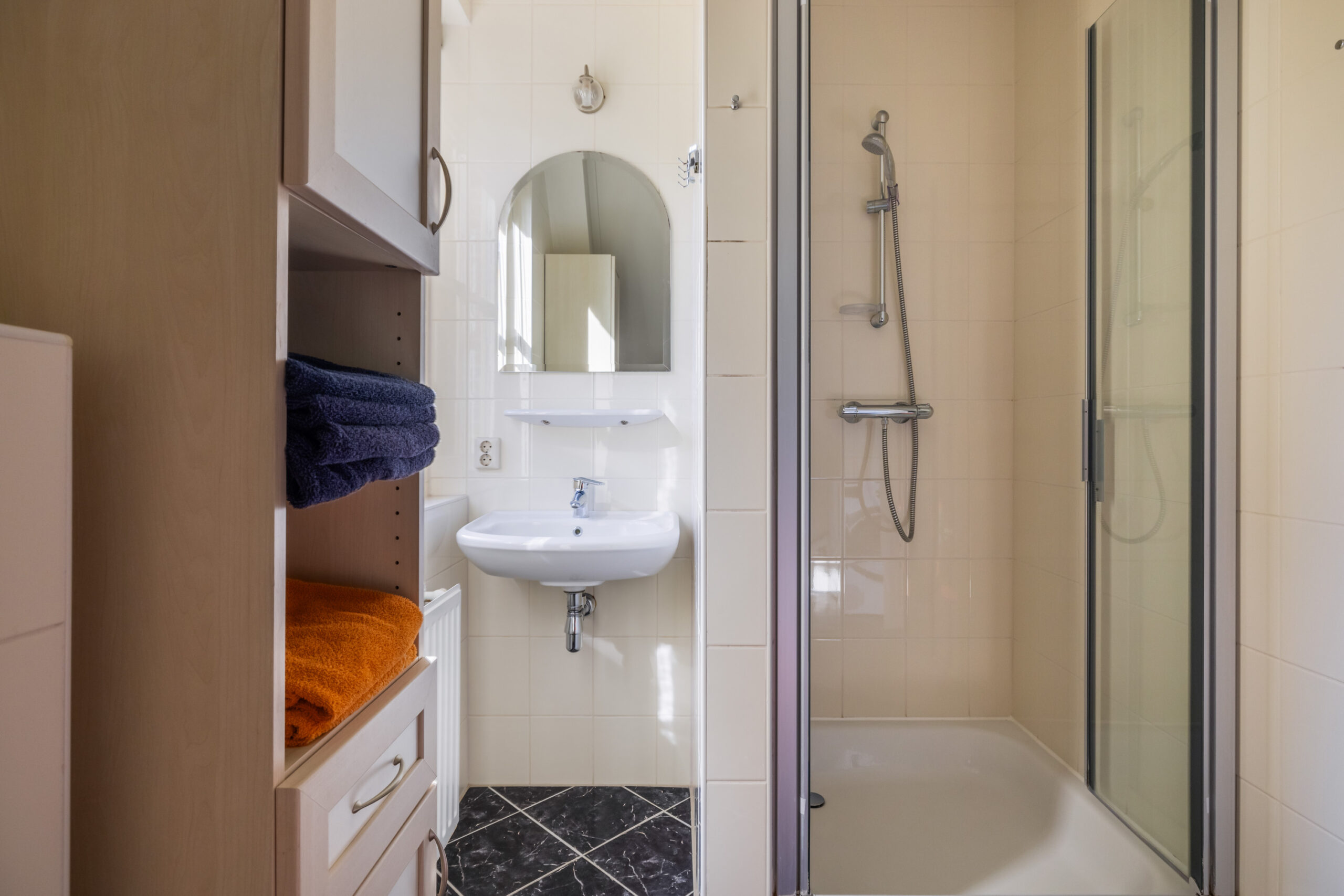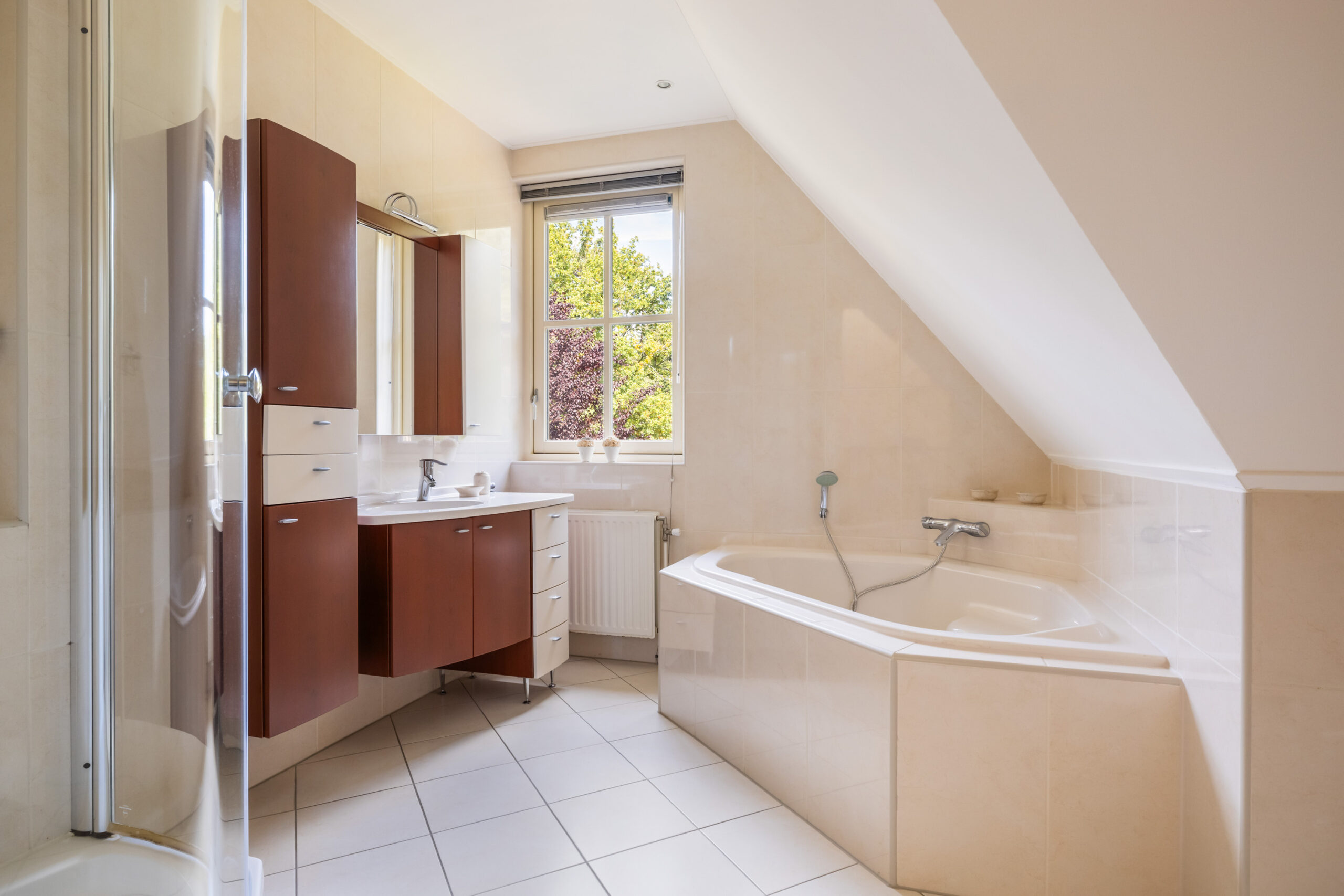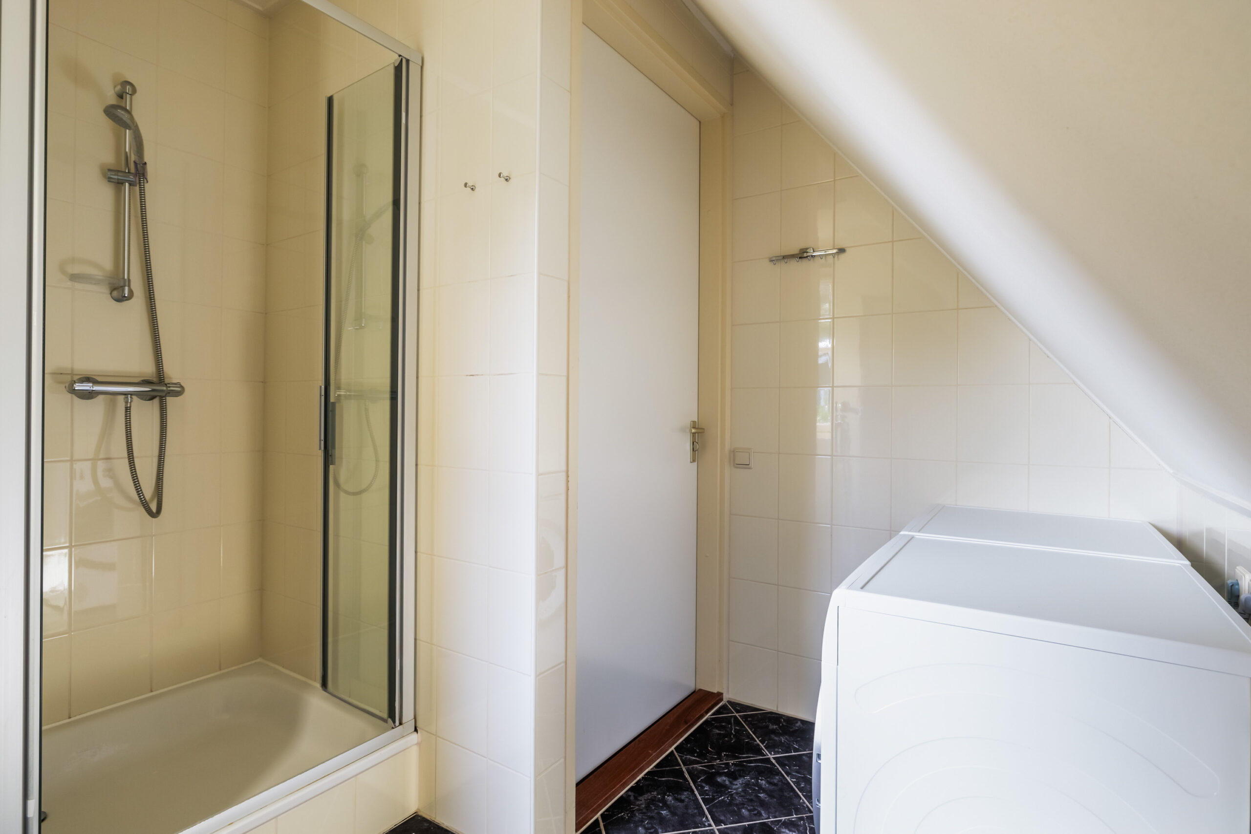 1e verdieping: via een open houten trap bereikt u de overloop met vide welke toegang geeft tot de 1e slaapkamer, 2e slaapkamer met dakkapel, 3e slaapkamer voorzien van een vaste kastenwand met schuifdeuren en nog een 4e slaapkamer. Naast de slaapkamers bevindt zich een badkamer welke voorzien is van een douche, badkamermeubel met wastafel, ligbad en een vrijdragend toilet. Aangrenzend bevindt zich nog een 2e badkamer welk is voorzien van een douche, wastafel, vrijdragend toilet en aansluitingen voor de was-apparatuur.