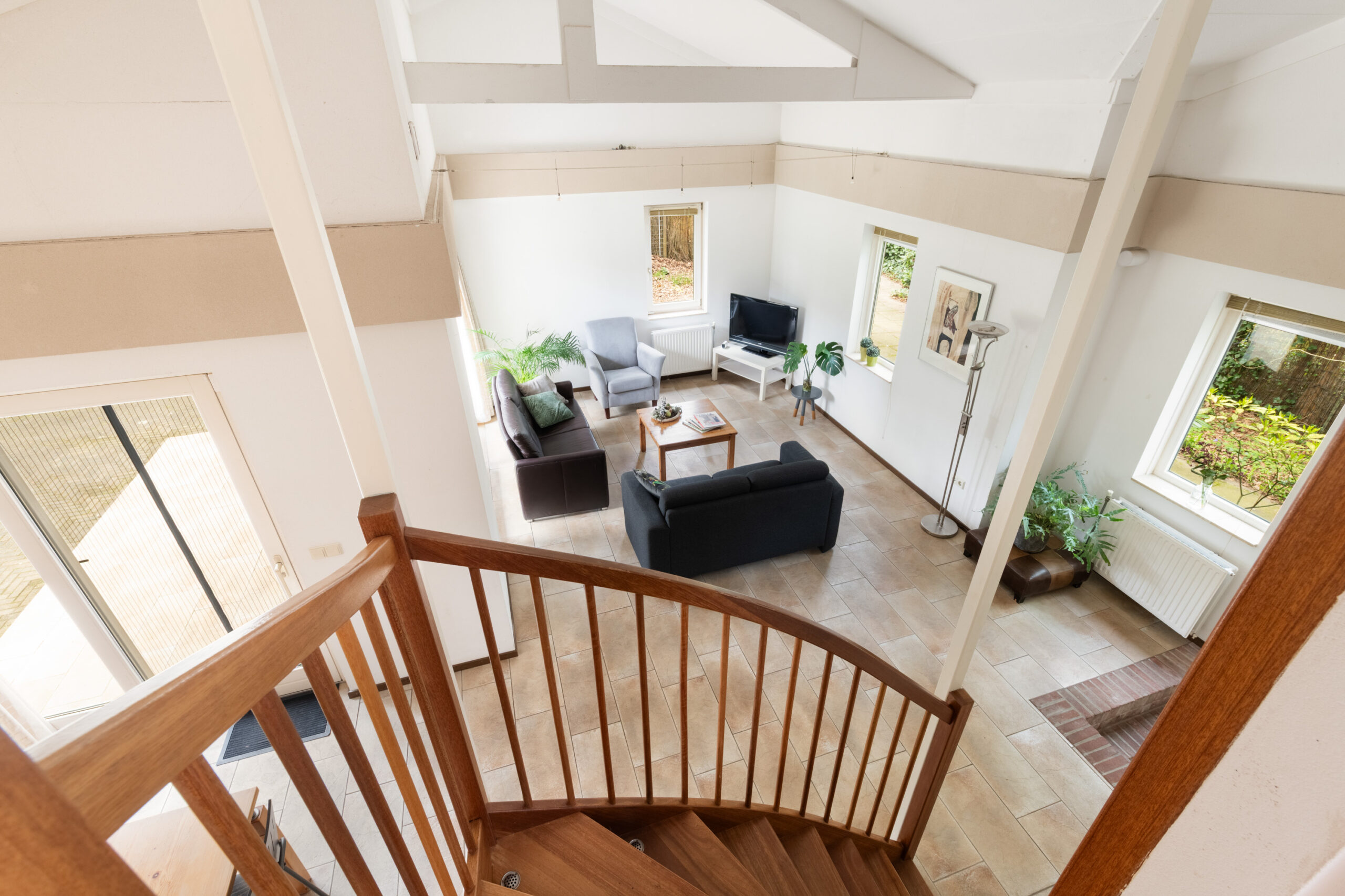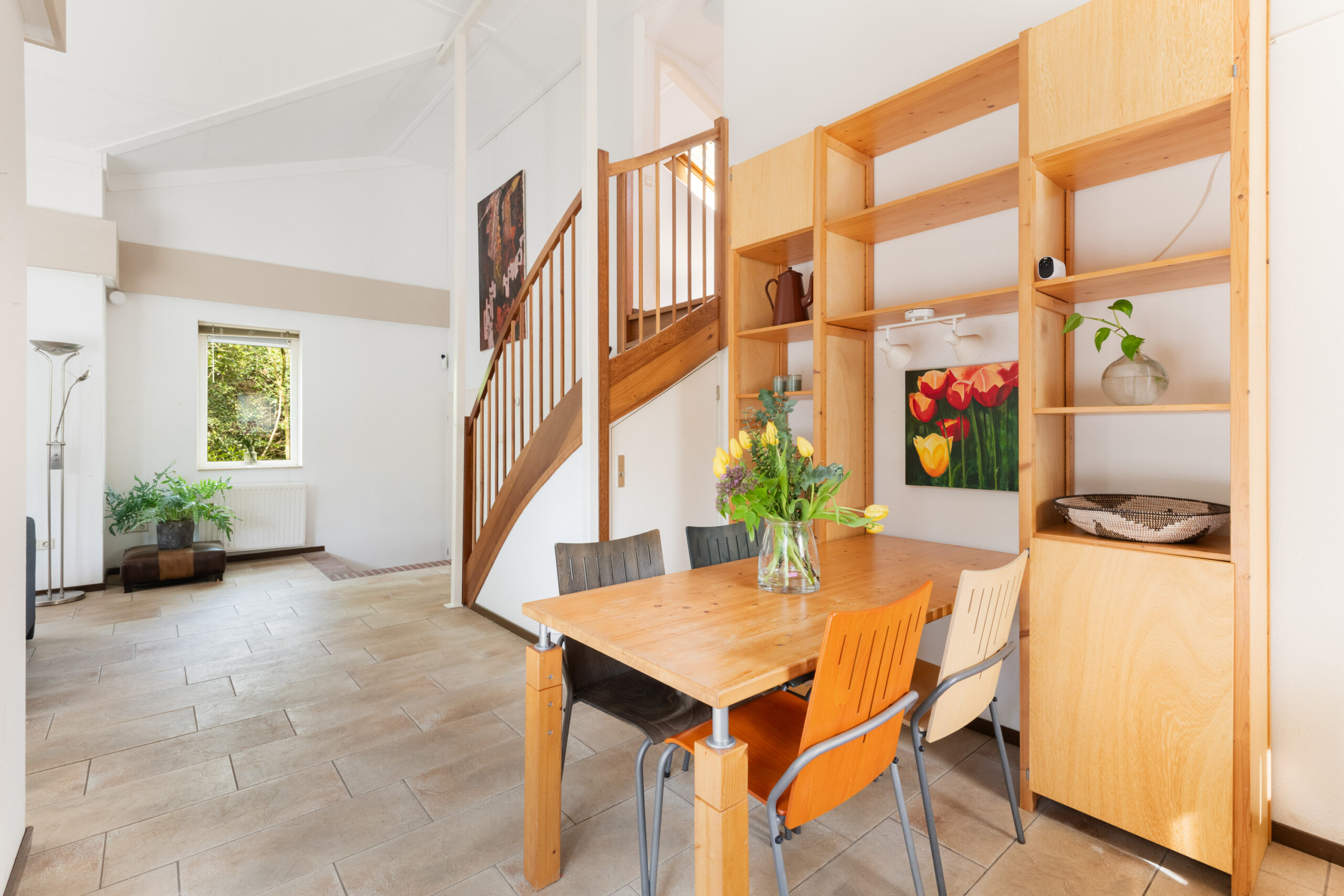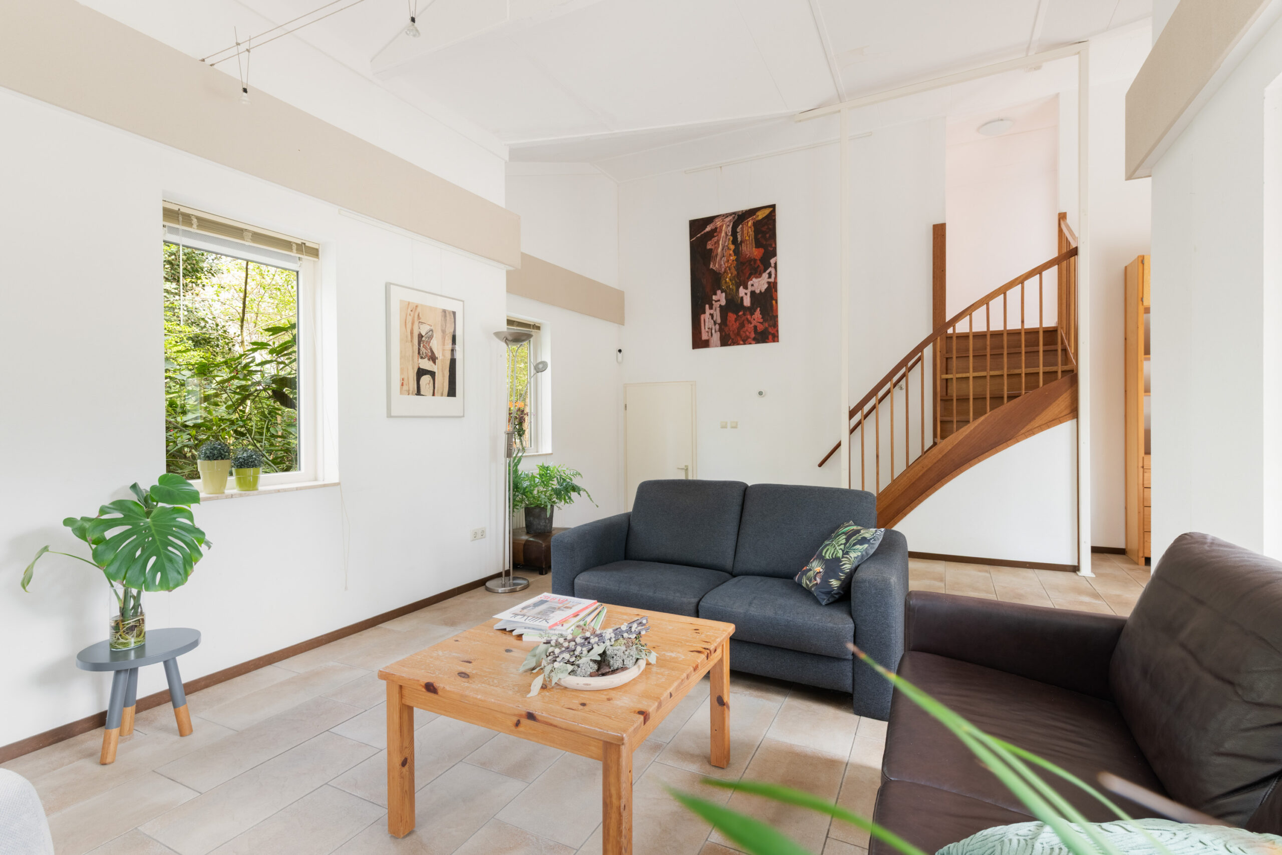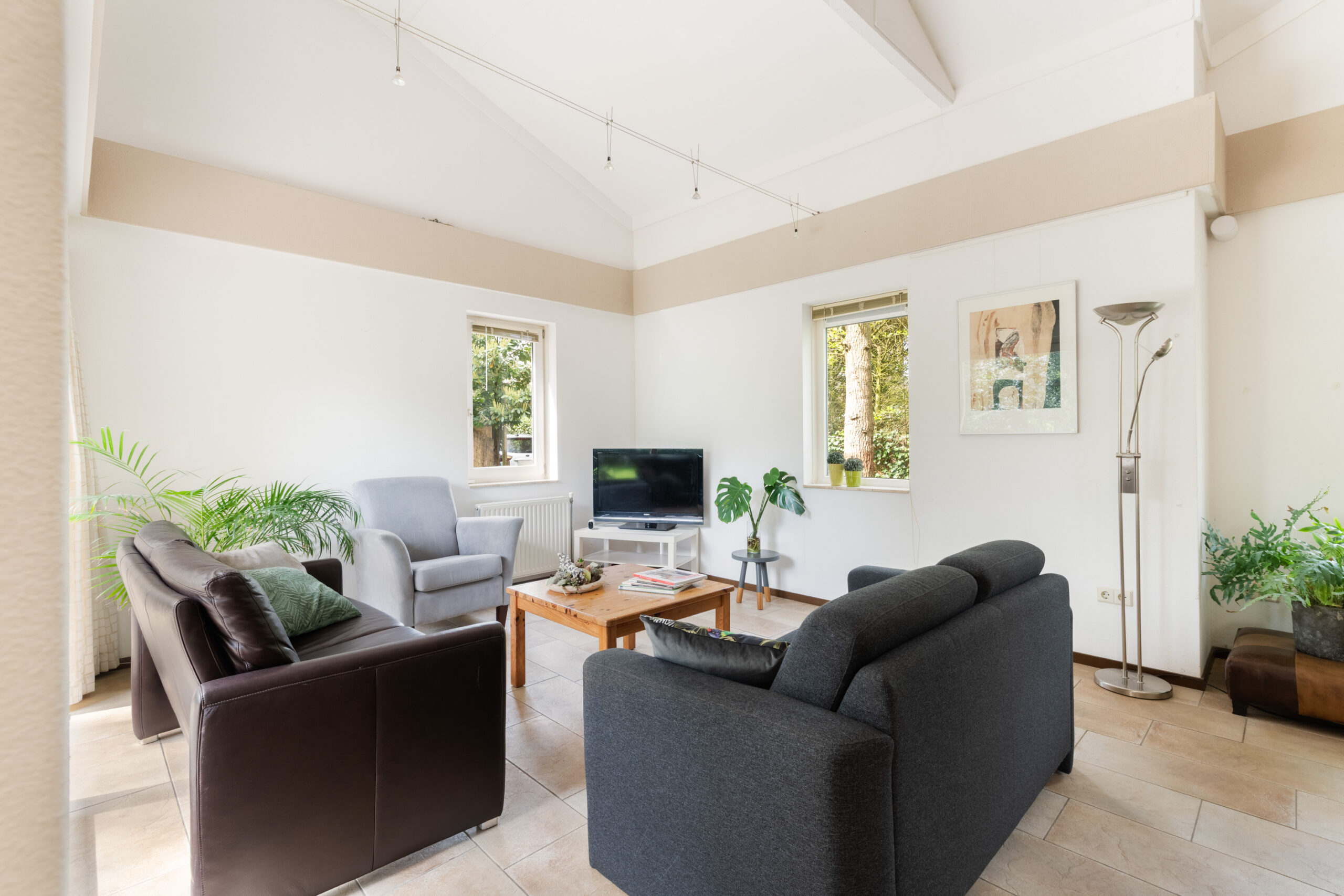 - Lichte woonkamer met hoog plafond, circa 4,12 m (!) ;