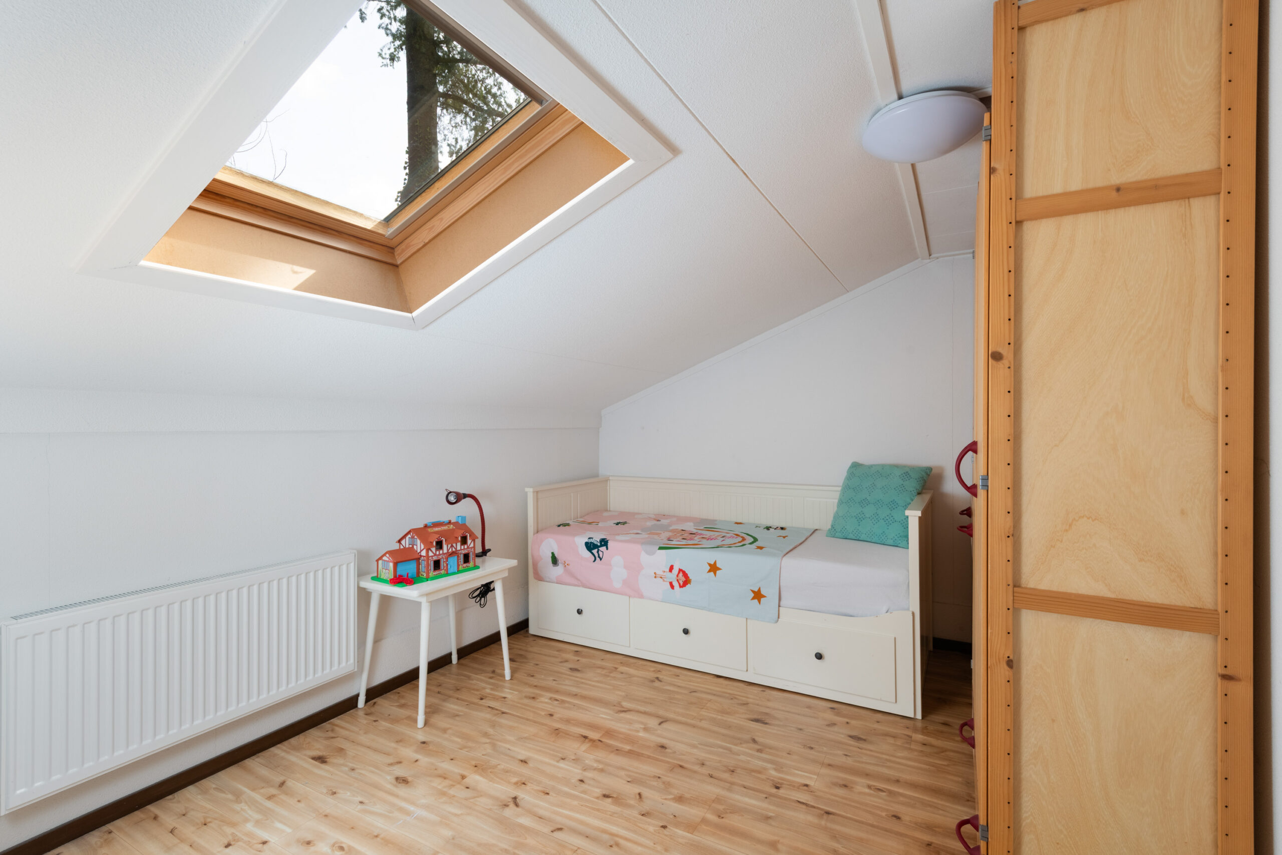 Vanuit uw bed kijkt u via het dakraam zo naar de sterrenhemel.