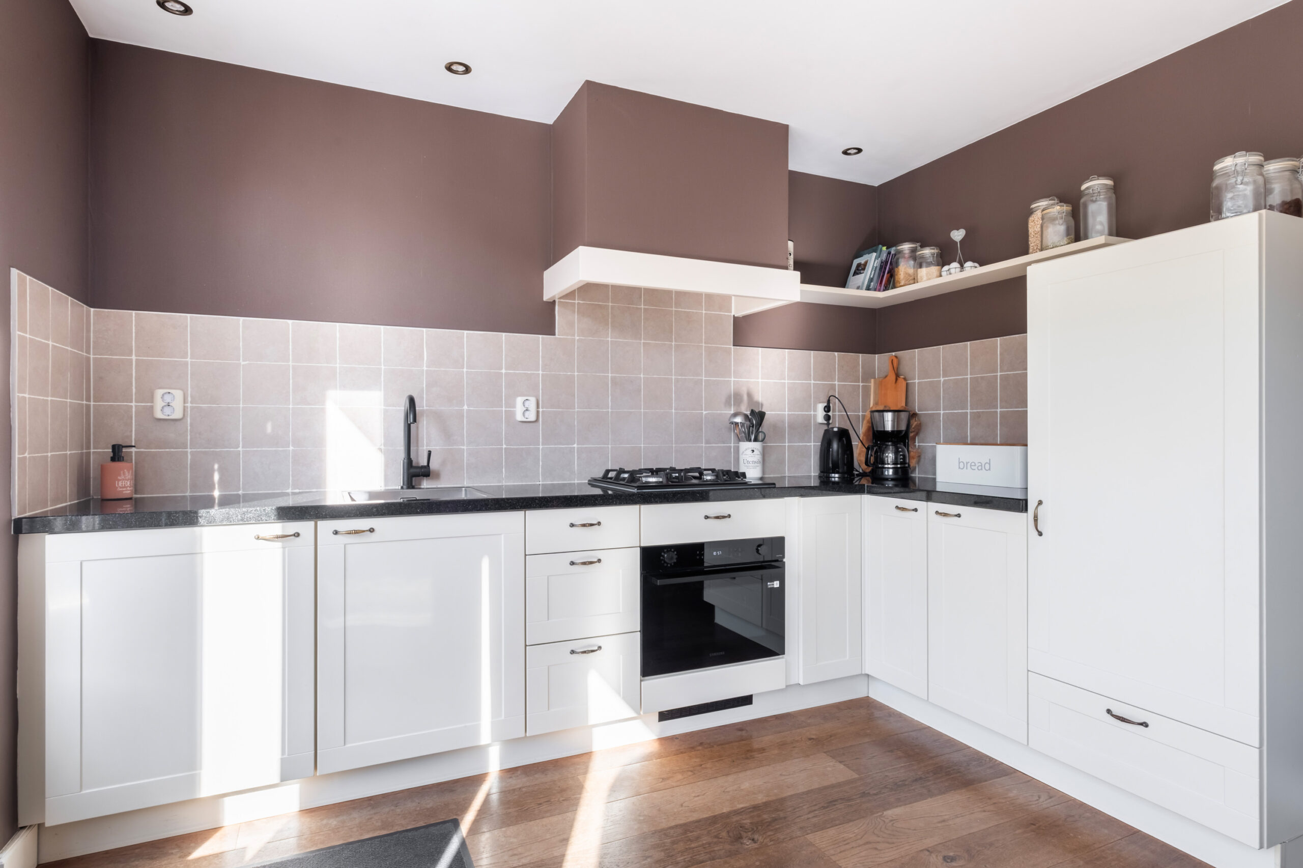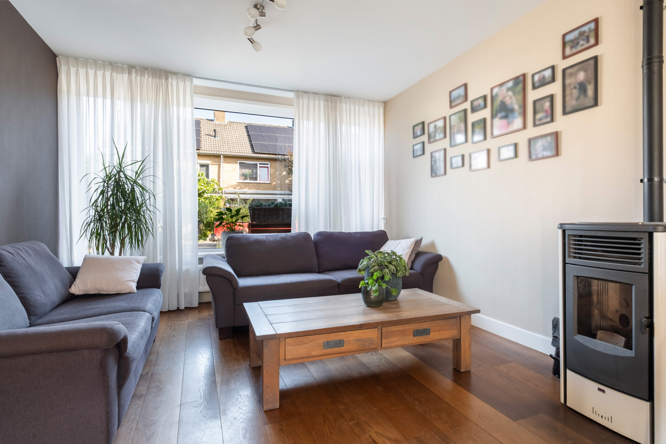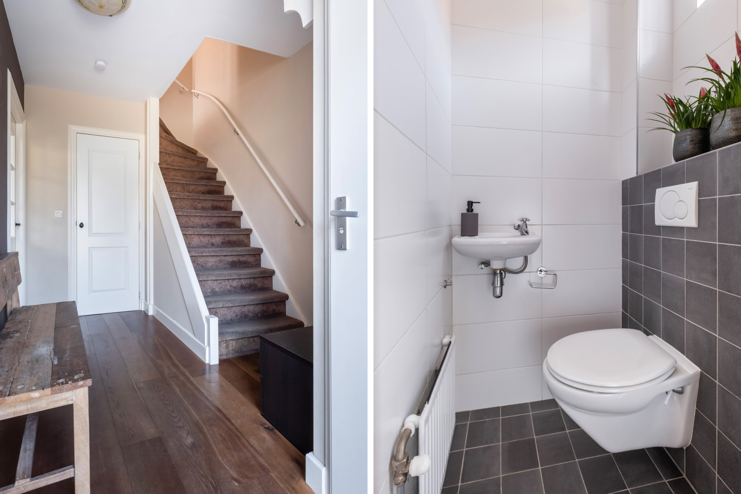 Begane grond: hal, toilet, royale trapkast met daarin tevens de meterkast, woonkamer met lamelparketvloer, pelletkachel en open keuken met koelkast, combi-oven (2024), gaskookplaat en afzuigkap.