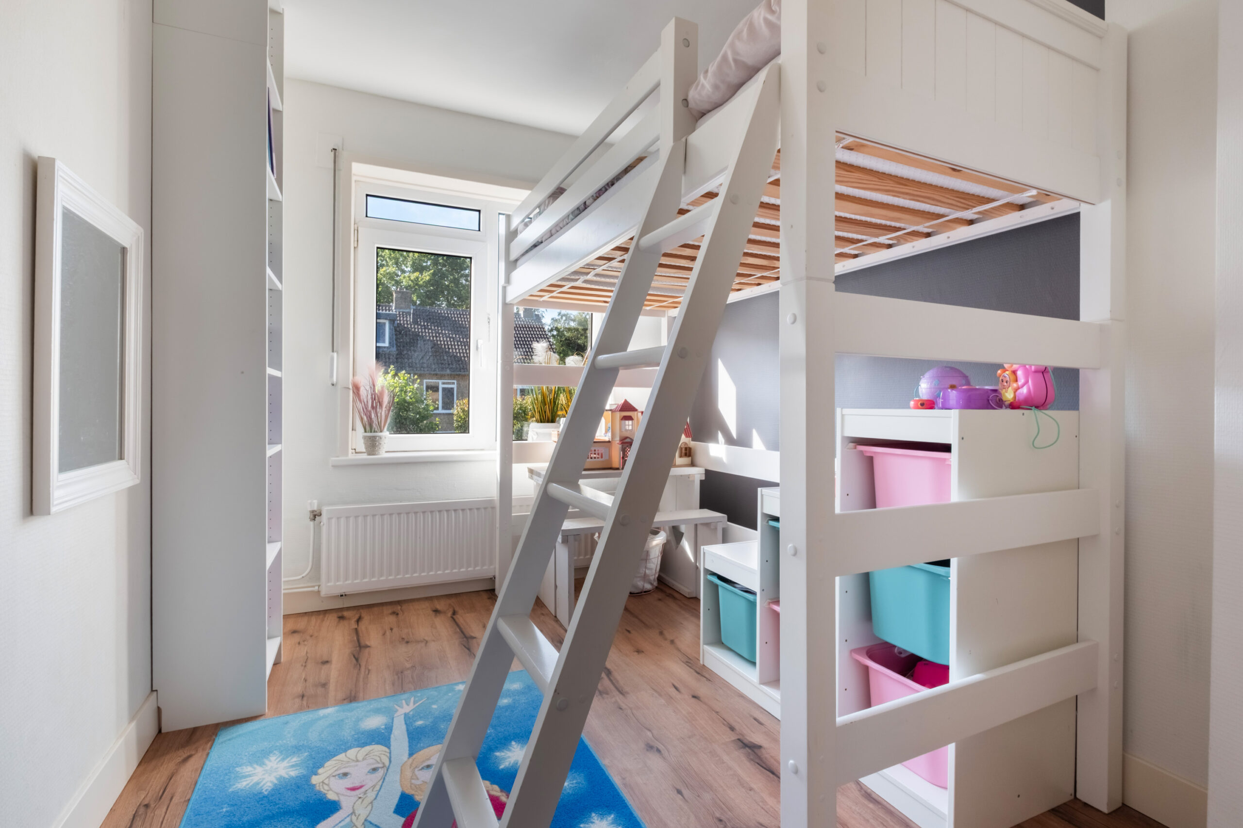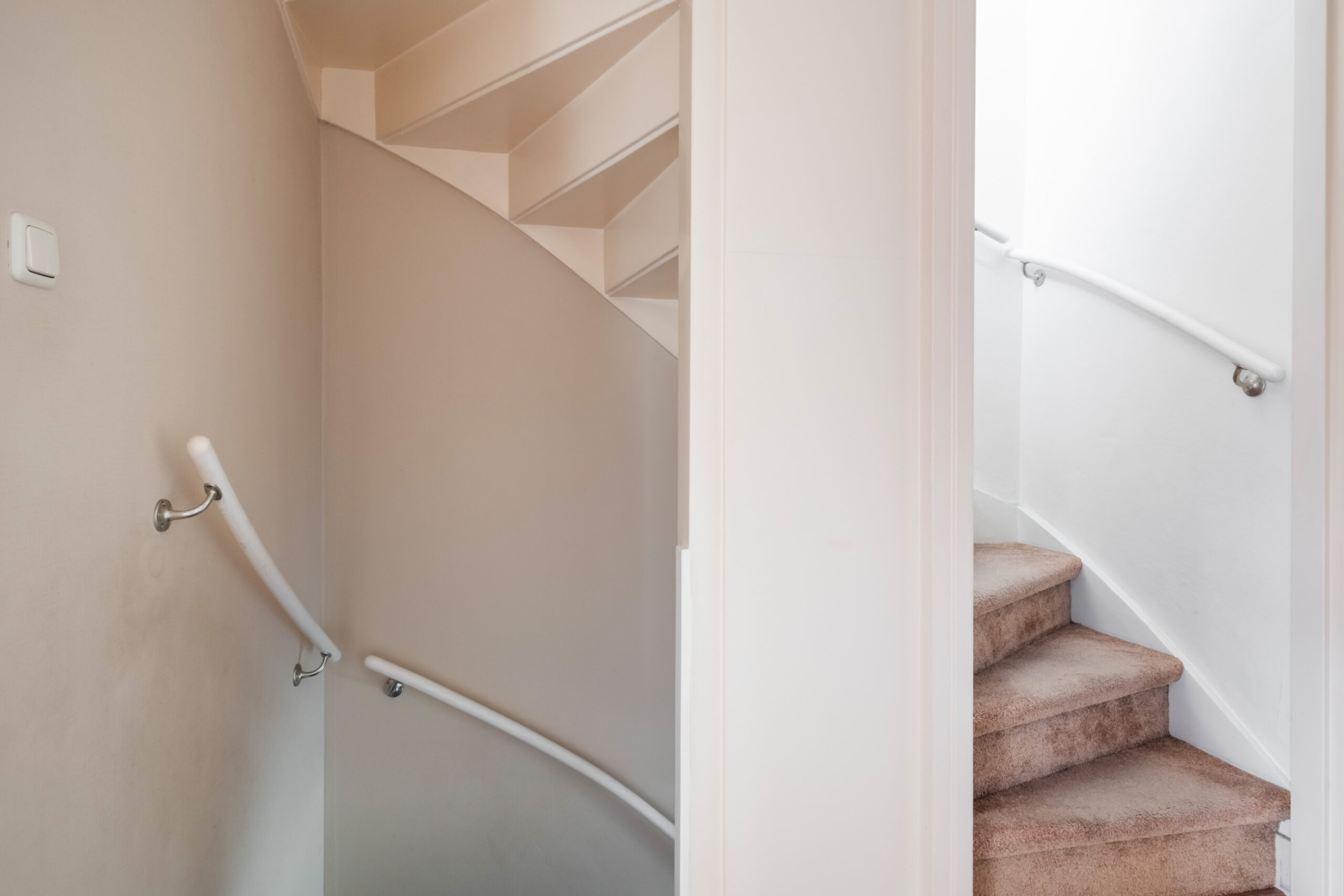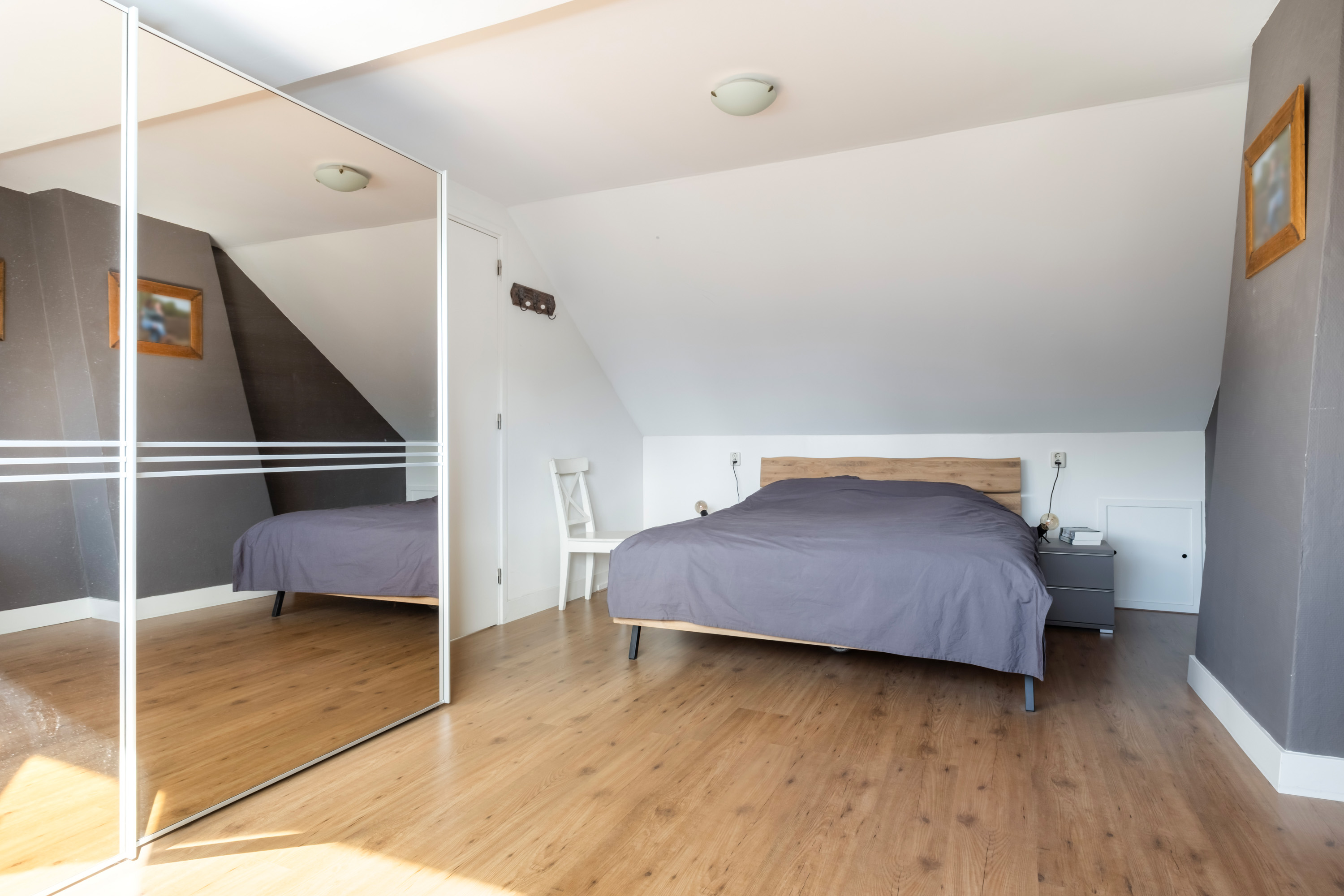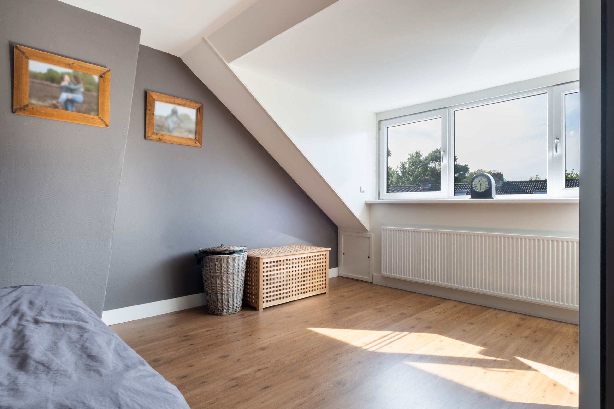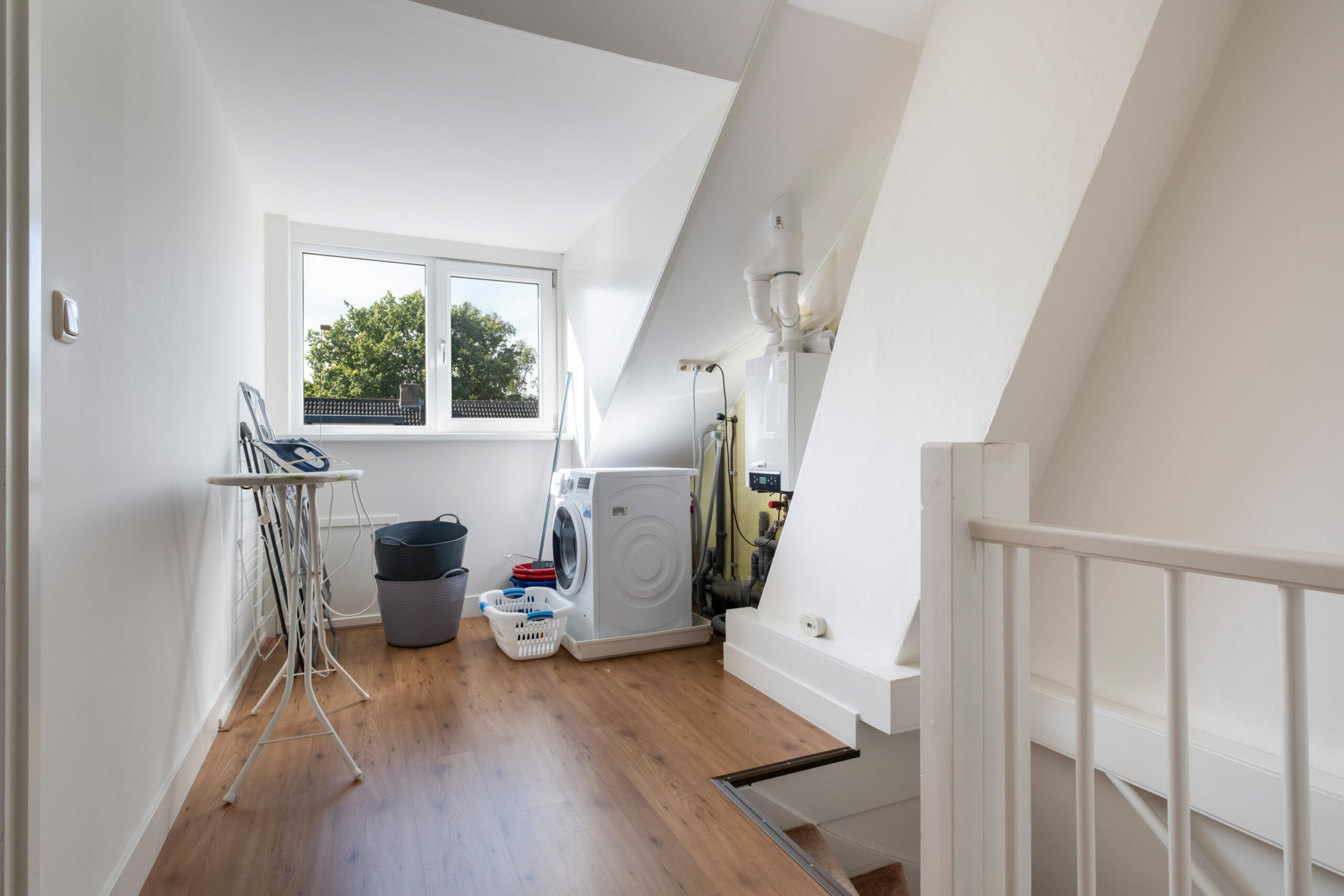 Tweede verdieping: voorzolder/overloop met bergruimte, wasmachine-aansluiting en C.V.-ketel en een 5e slaapkamer met bergruimte. Door de dakkapel aan de achterzijde die doorloopt in zowel de slaapkamer als de overloop is hier een mooie leefruimte ontstaan.