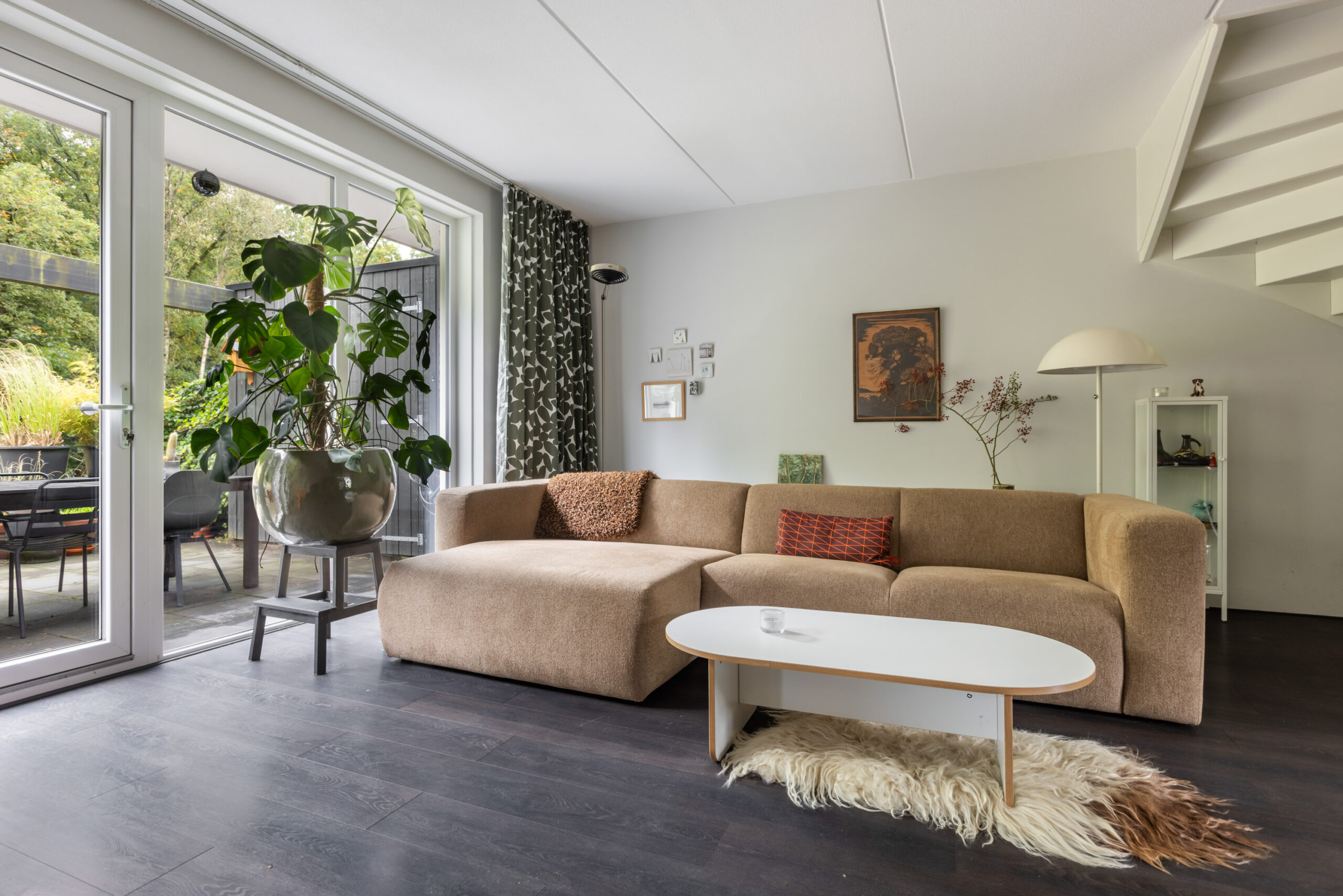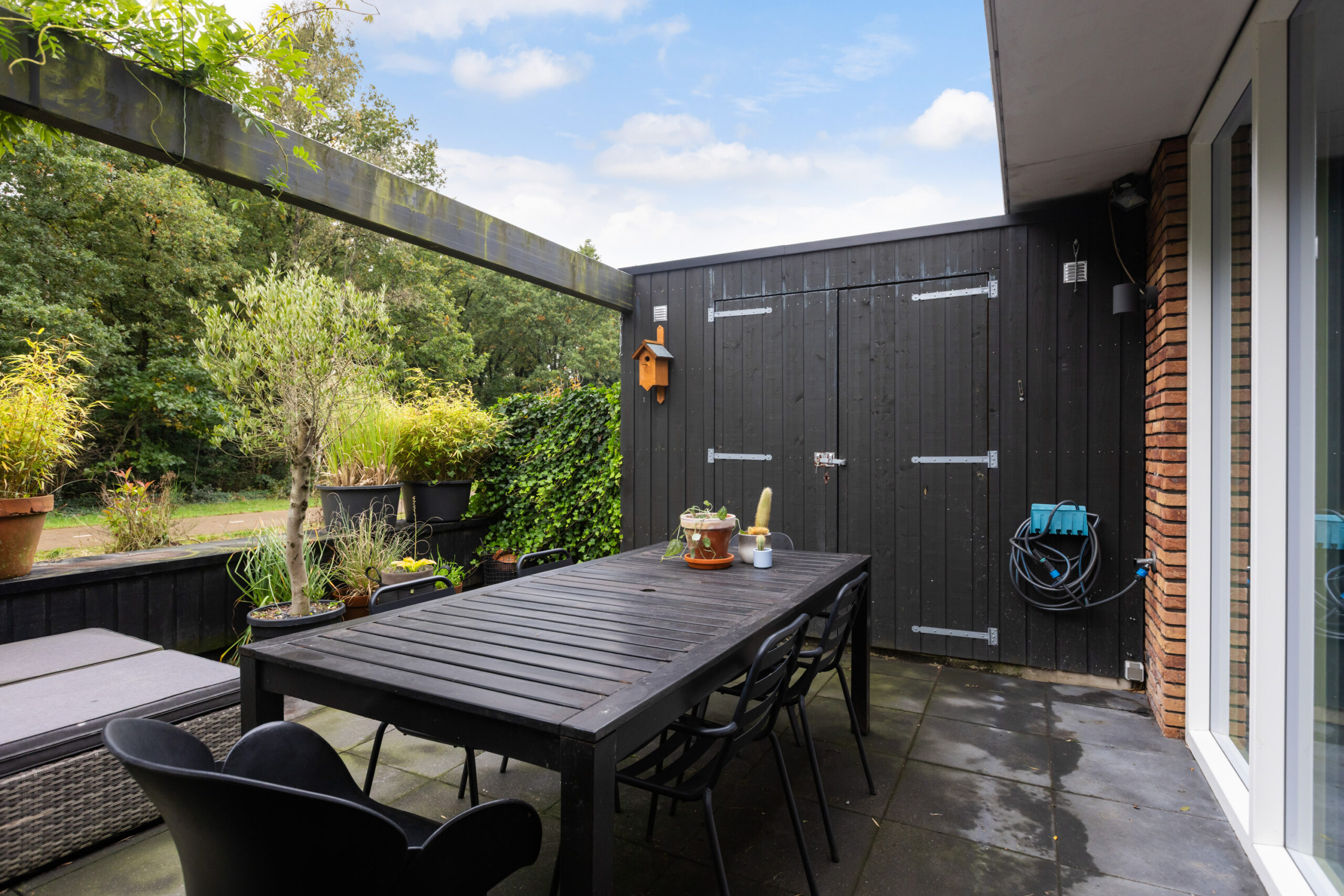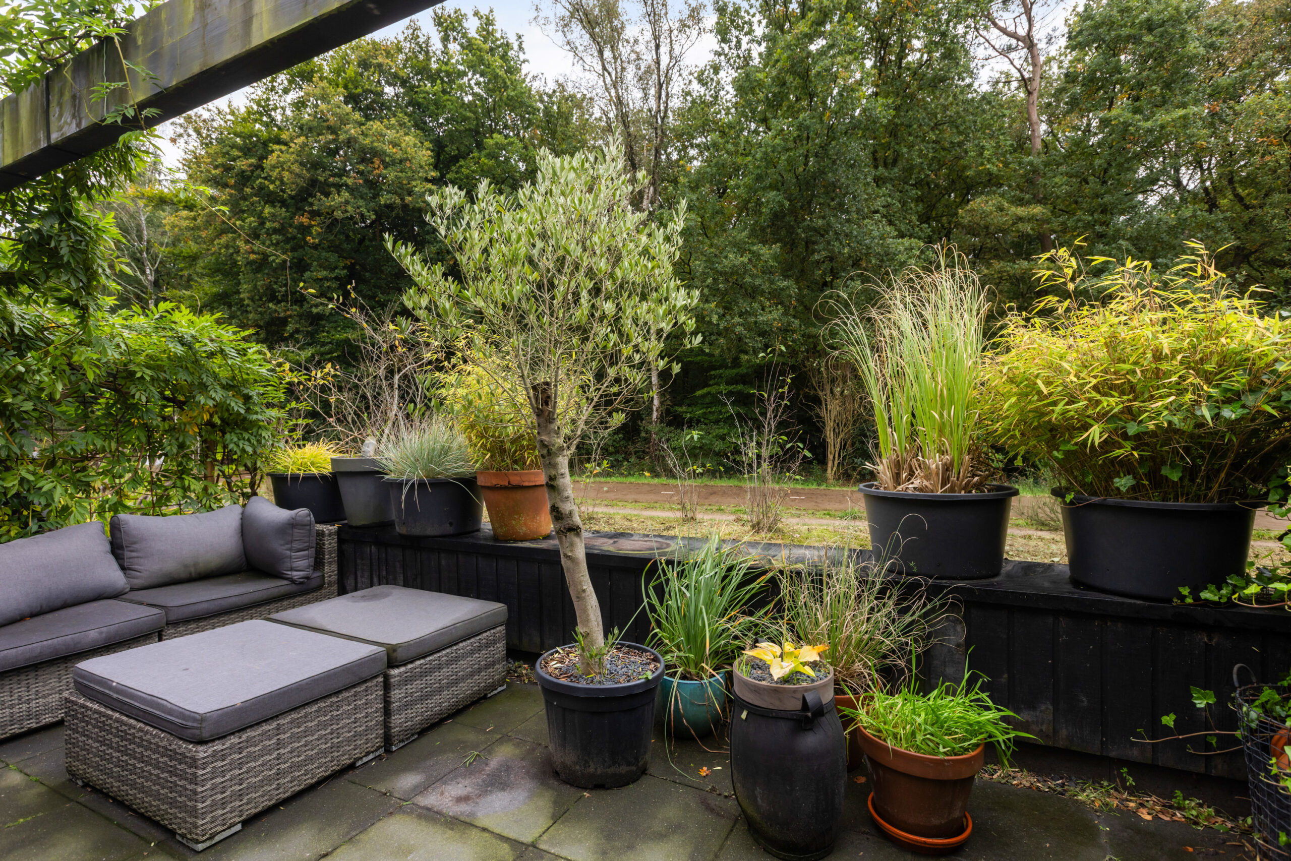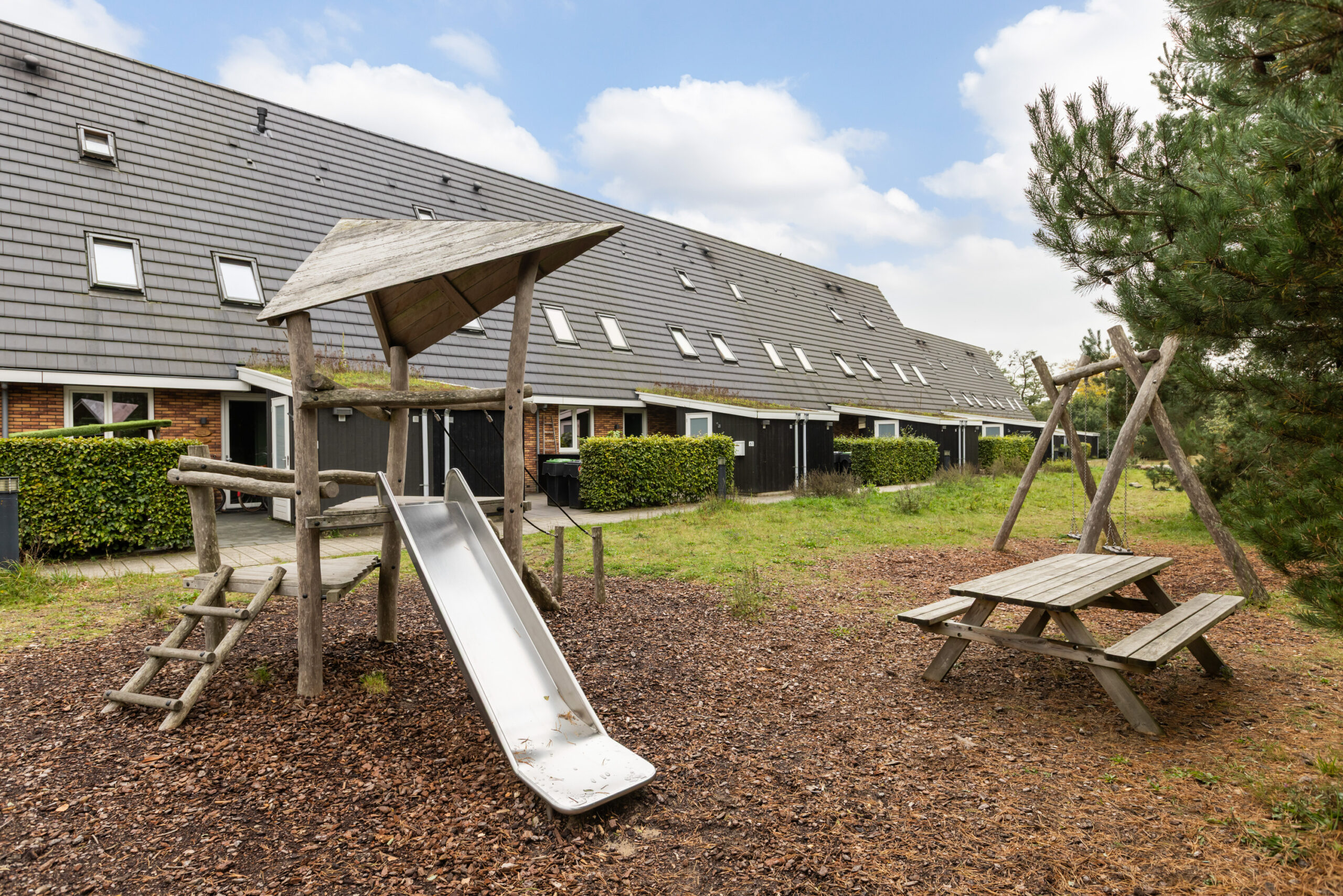 Vanaf de woonkamer is er vrij uitzicht op de bosrand. Aan de achterzijde van de woning ligt een prettig terras op het zuiden. Aan de voorzijde ligt een brede groenstrook met een speeltuintje. De woonomgeving is zeer kindvriendelijk, mede door het ontbreken van autoverkeer.