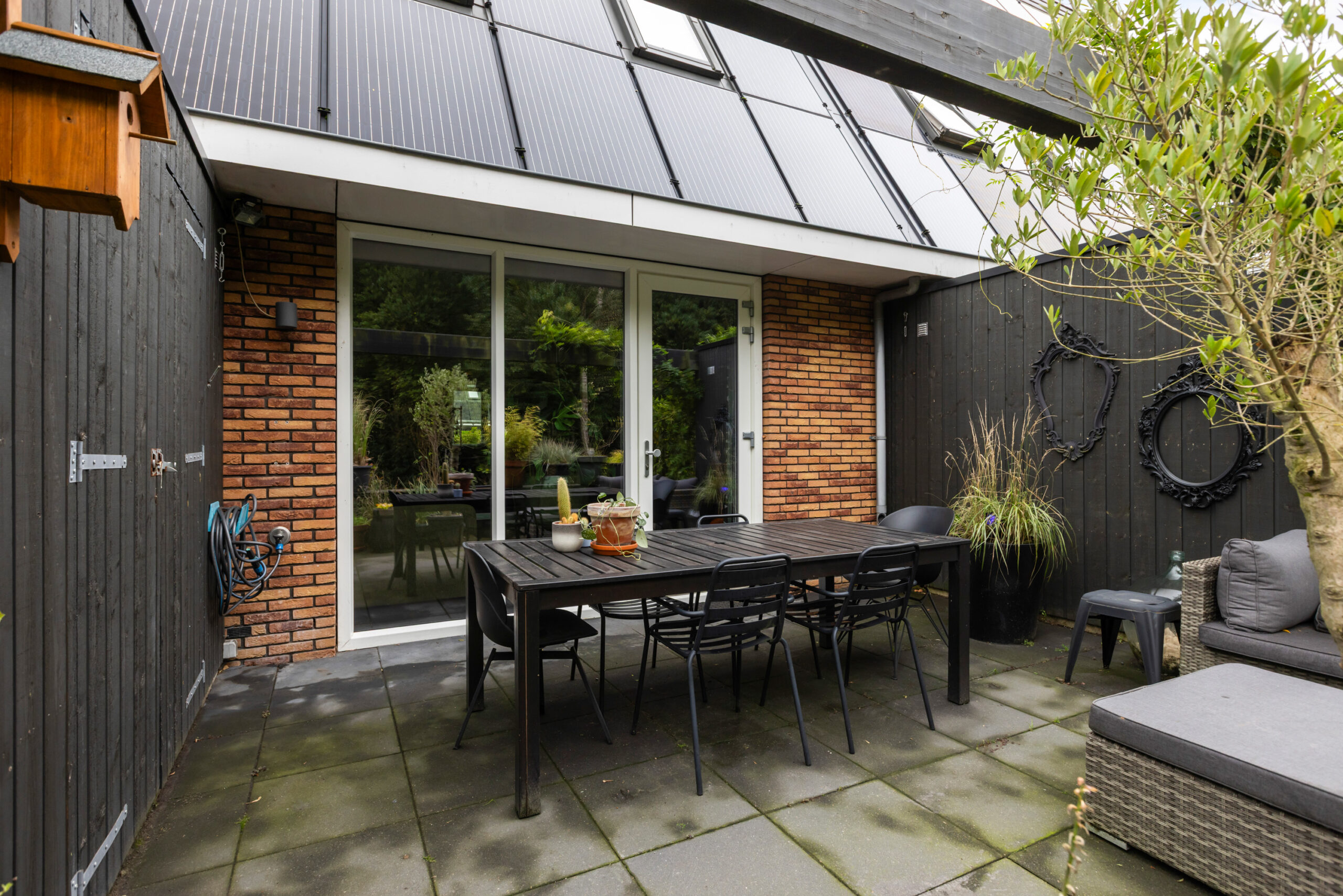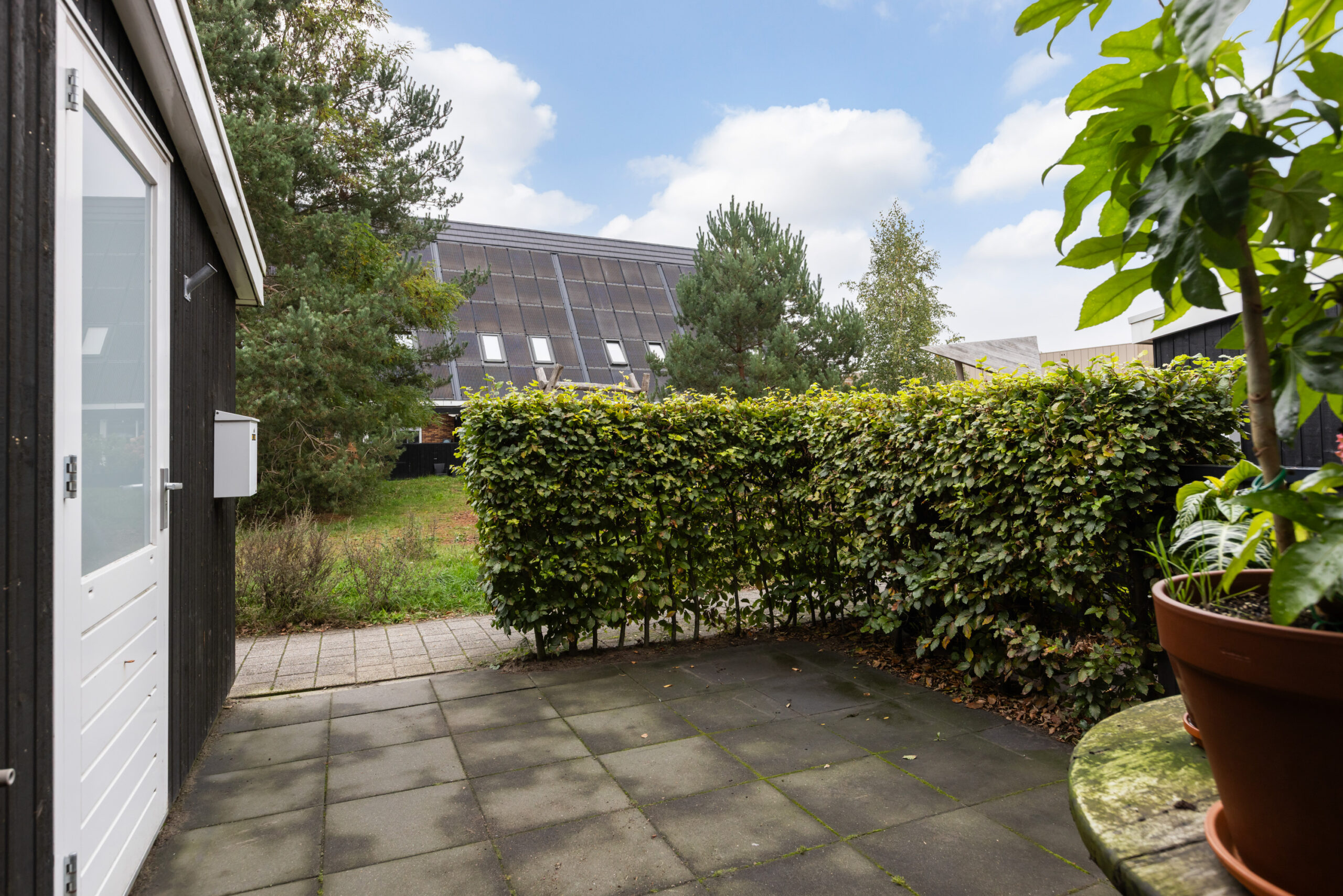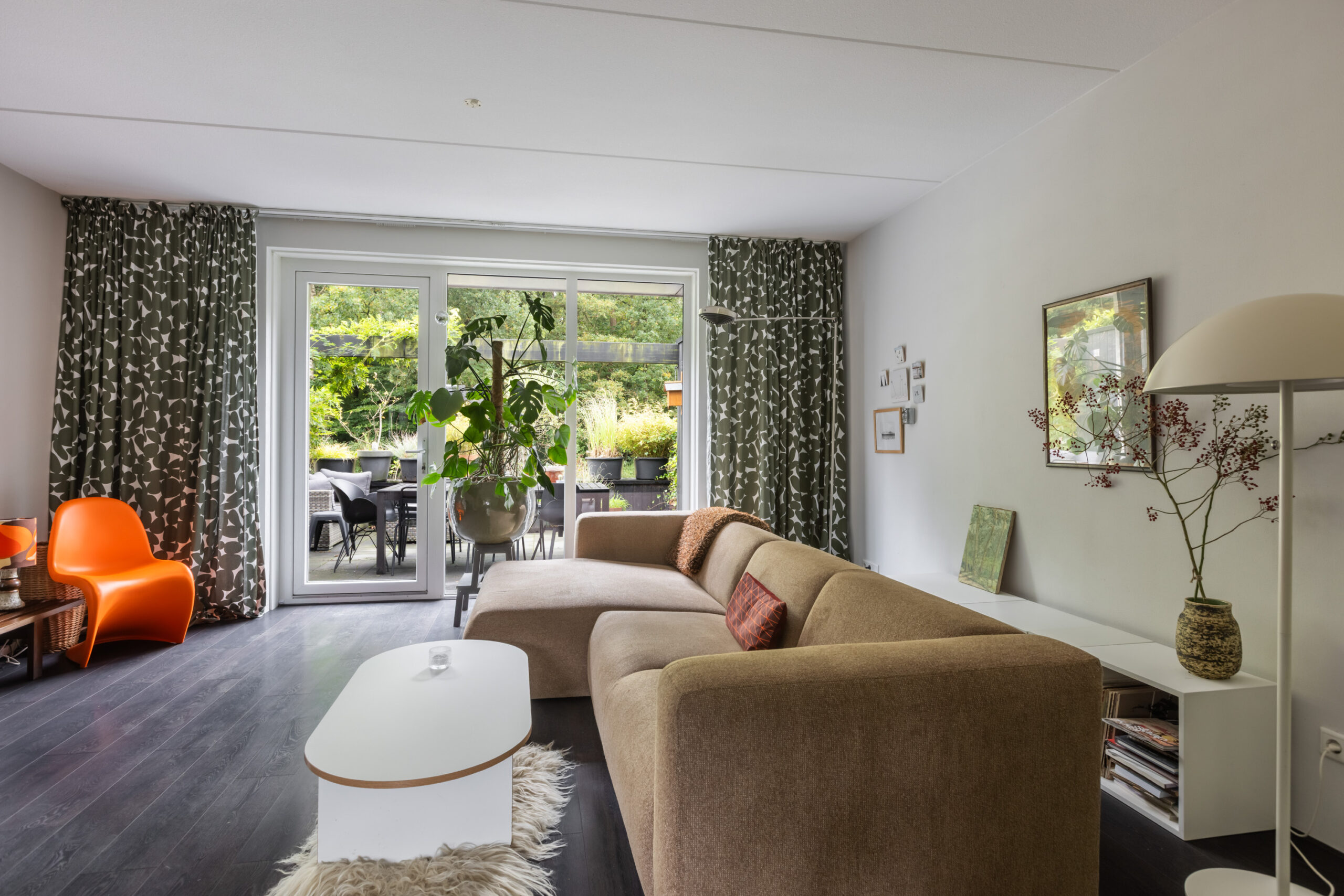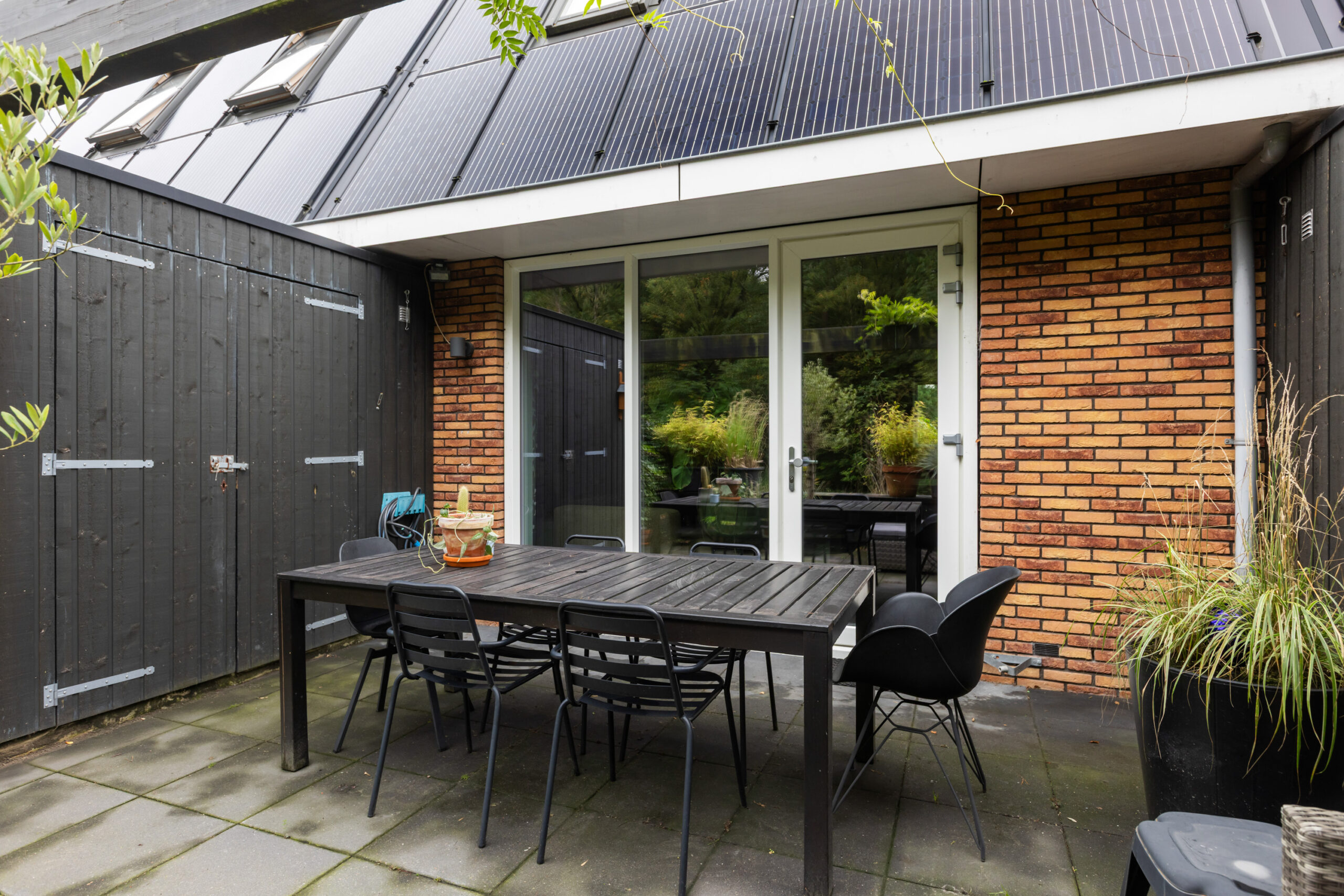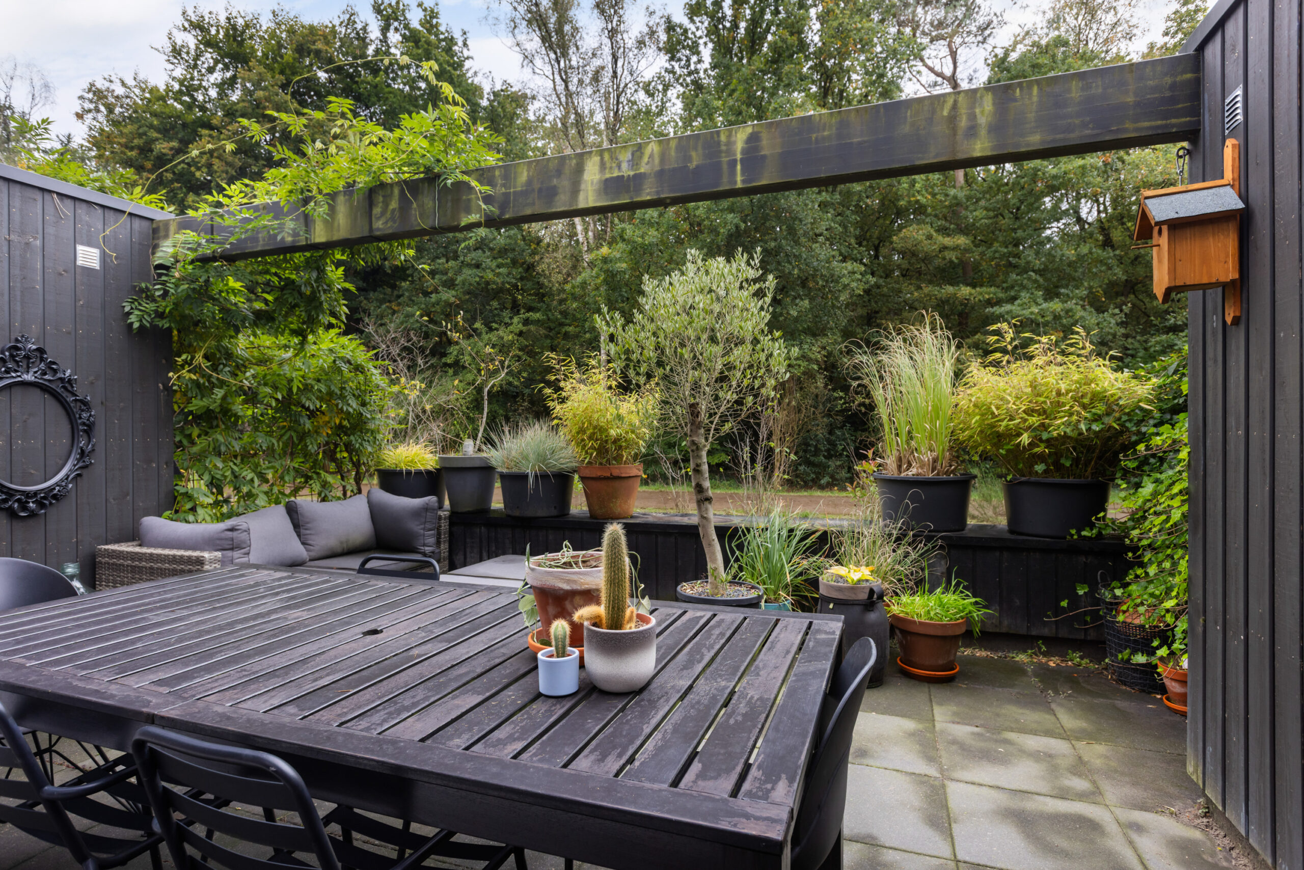 Vanaf de woonkamer is er vrij uitzicht op de bosrand. Aan de achterzijde van de woning ligt een prettig terras op het zuiden. Aan de voorzijde ligt een brede groenstrook met een speeltuintje. De woonomgeving is zeer kindvriendelijk, mede door het ontbreken van autoverkeer.