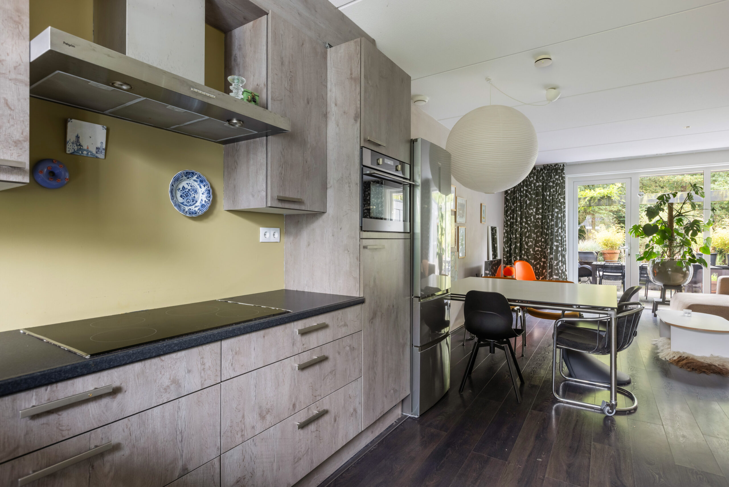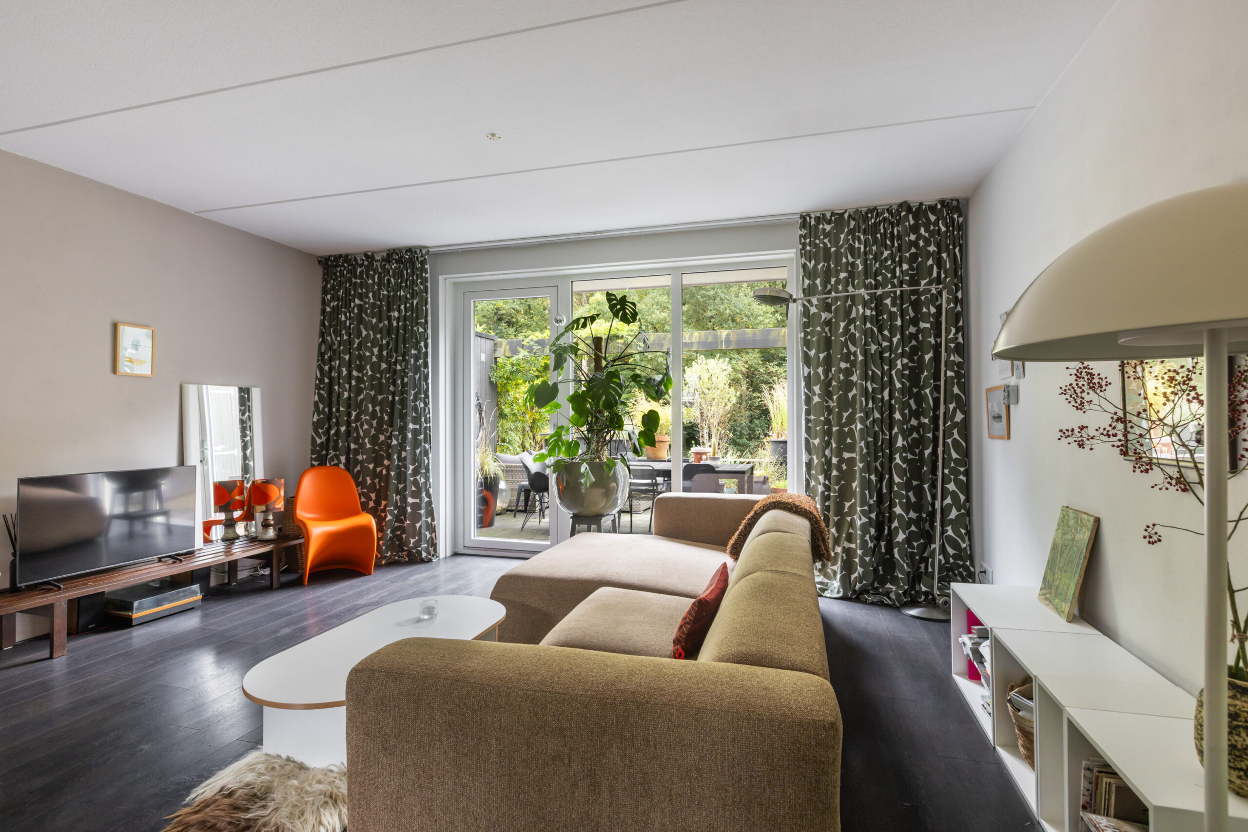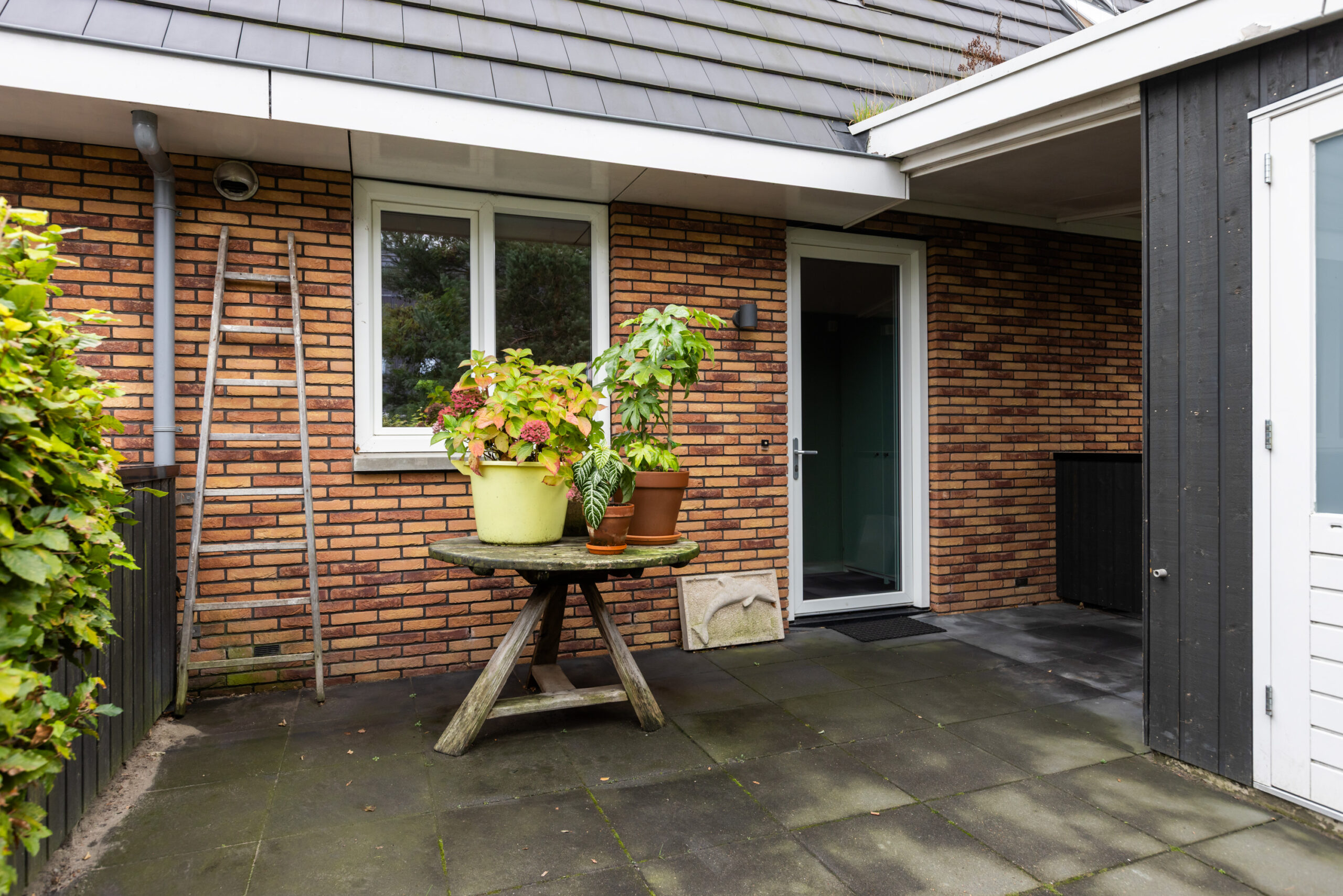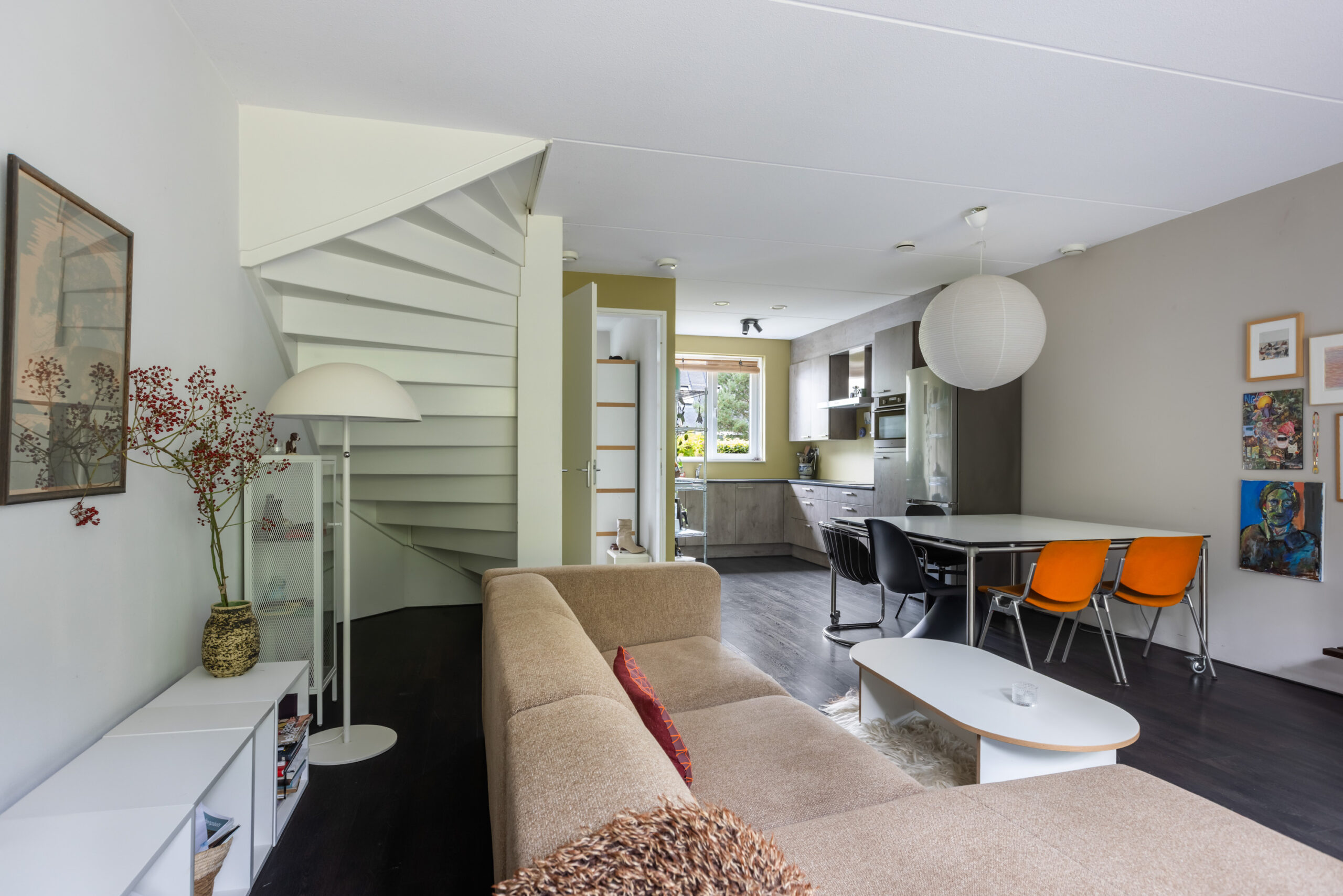 Vanaf de woonkamer is er vrij uitzicht op de bosrand. Aan de achterzijde van de woning ligt een prettig terras op het zuiden. Aan de voorzijde ligt een brede groenstrook met een speeltuintje. De woonomgeving is zeer kindvriendelijk, mede door het ontbreken van autoverkeer.