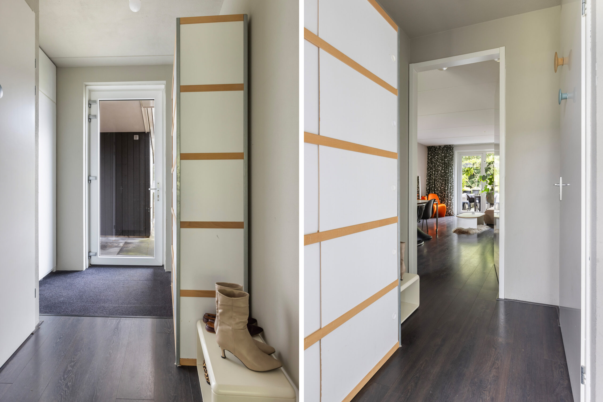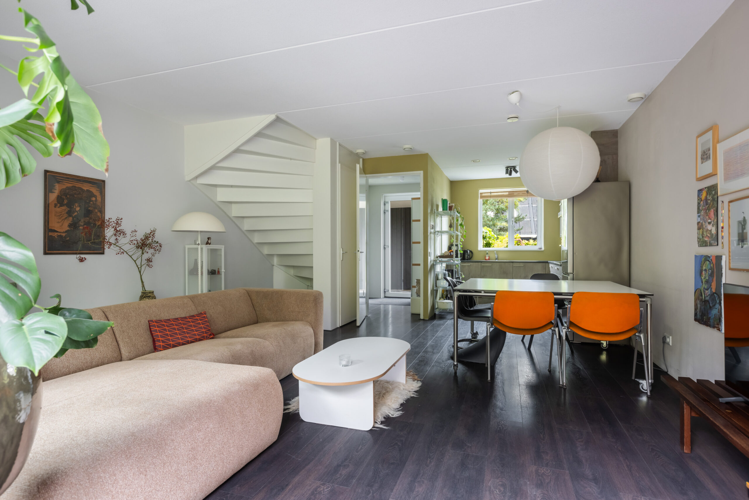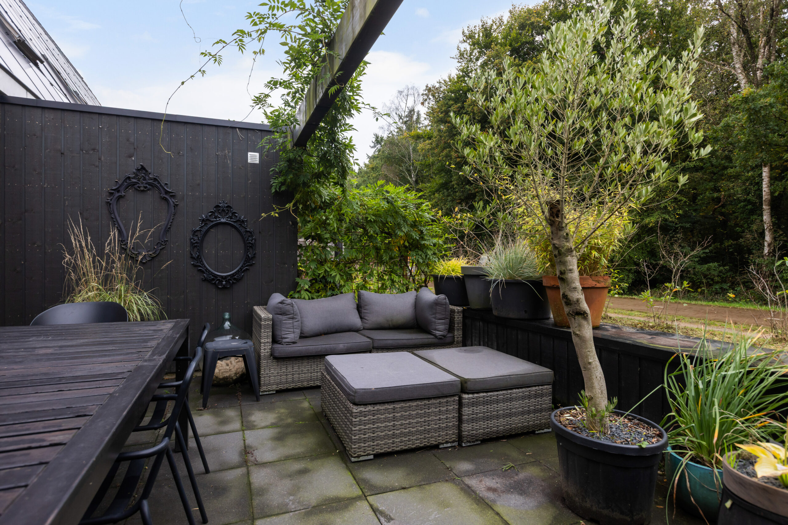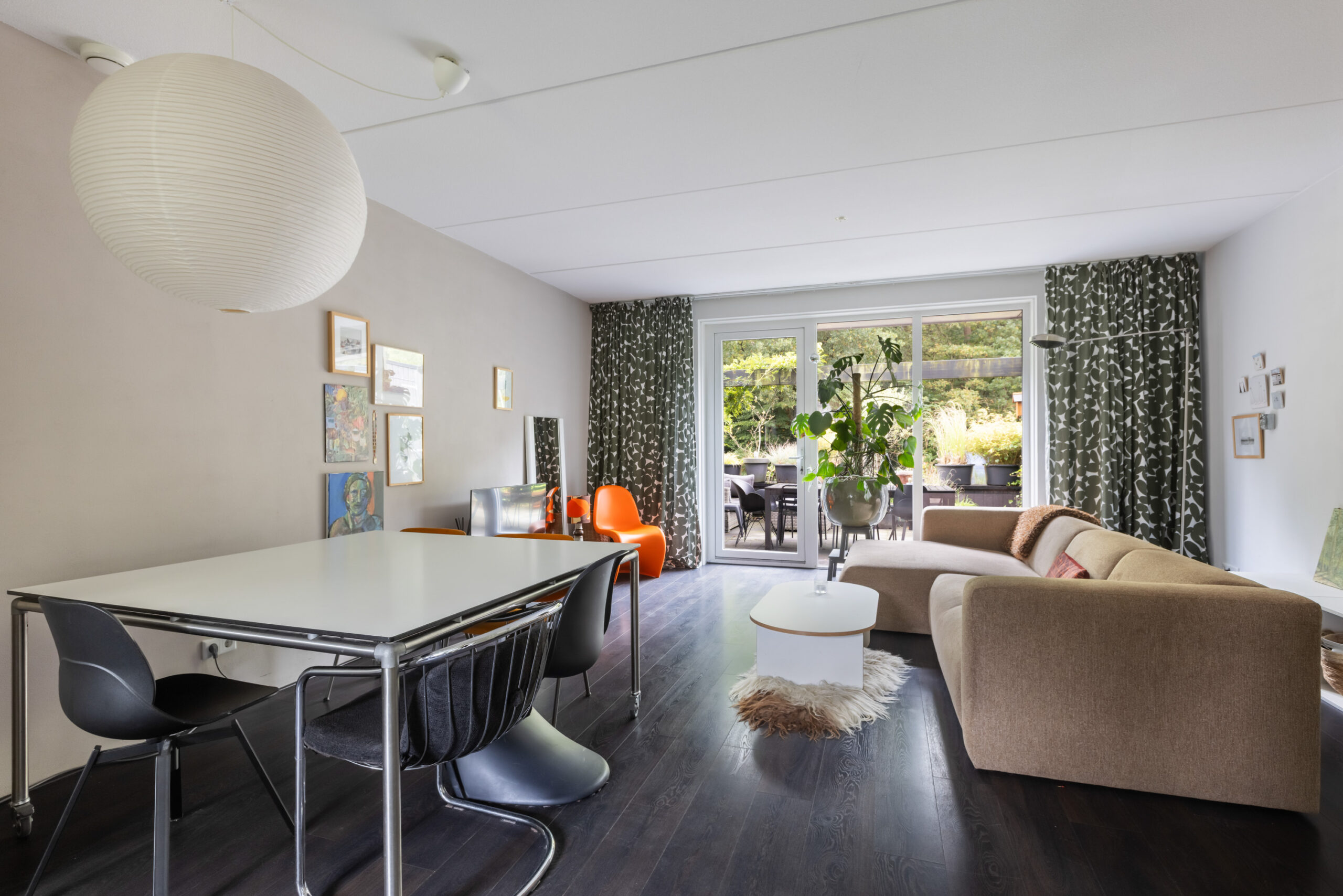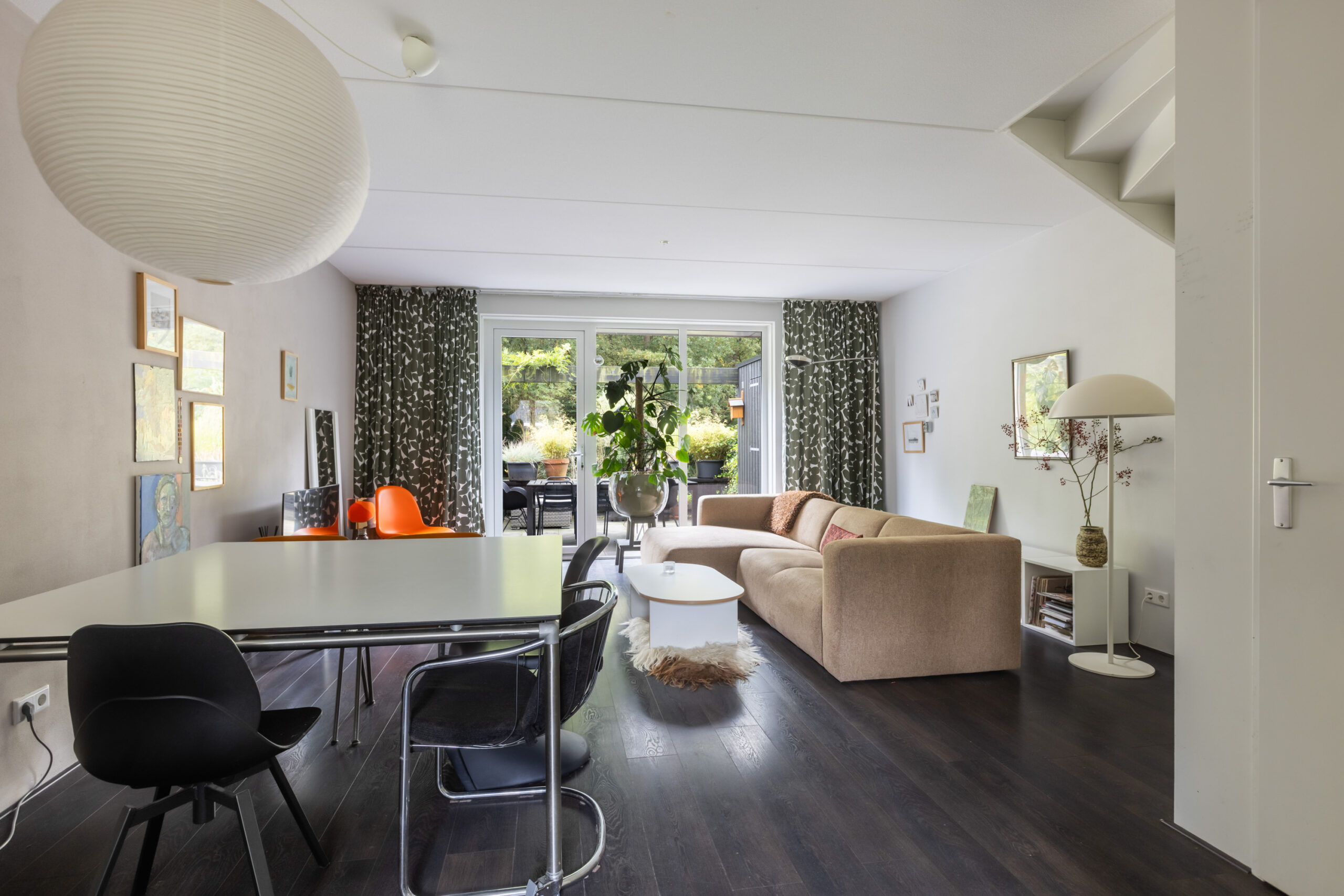 Vanaf de woonkamer is er vrij uitzicht op de bosrand. Aan de achterzijde van de woning ligt een prettig terras op het zuiden. Aan de voorzijde ligt een brede groenstrook met een speeltuintje. De woonomgeving is zeer kindvriendelijk, mede door het ontbreken van autoverkeer.