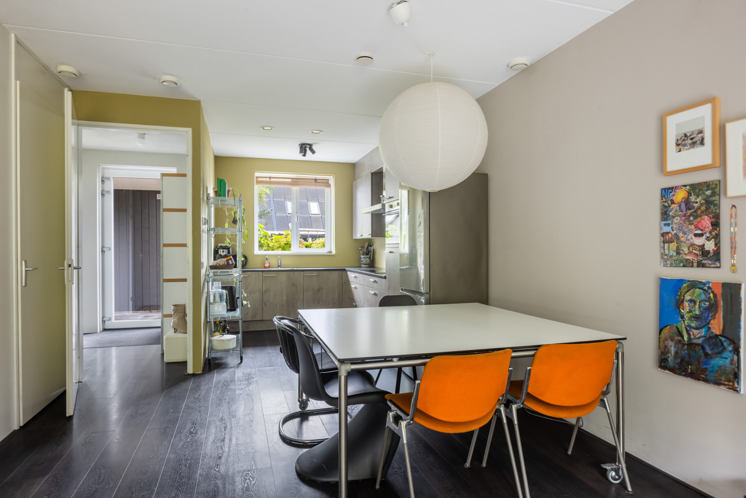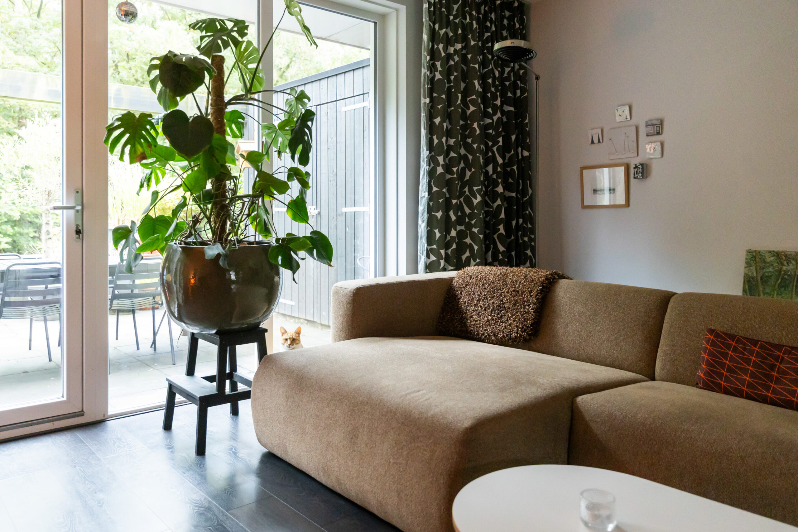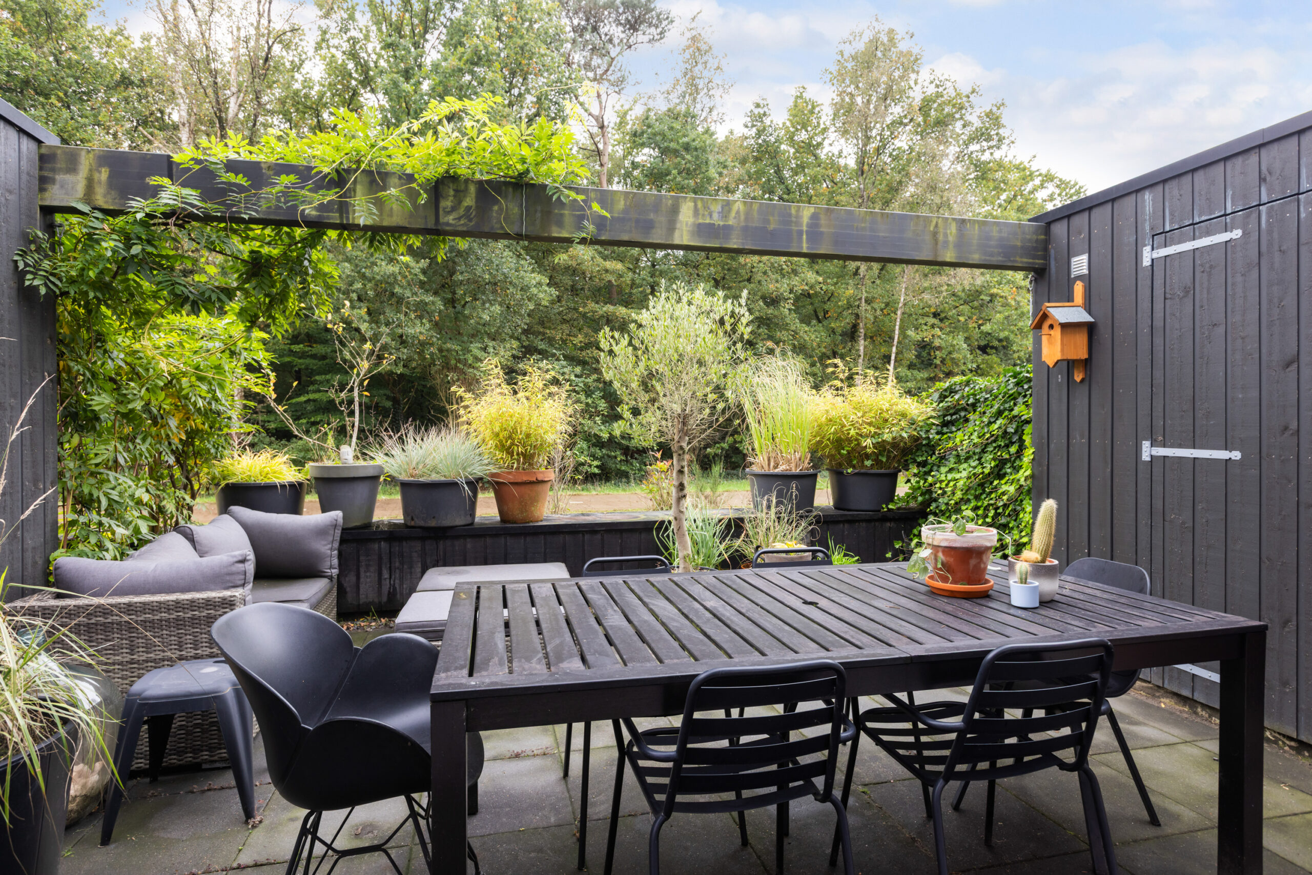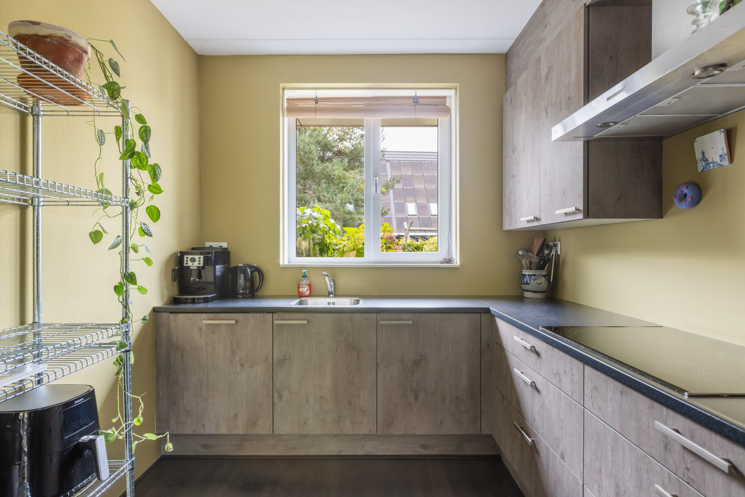 Vanaf de woonkamer is er vrij uitzicht op de bosrand. Aan de achterzijde van de woning ligt een prettig terras op het zuiden. Aan de voorzijde ligt een brede groenstrook met een speeltuintje. De woonomgeving is zeer kindvriendelijk, mede door het ontbreken van autoverkeer.