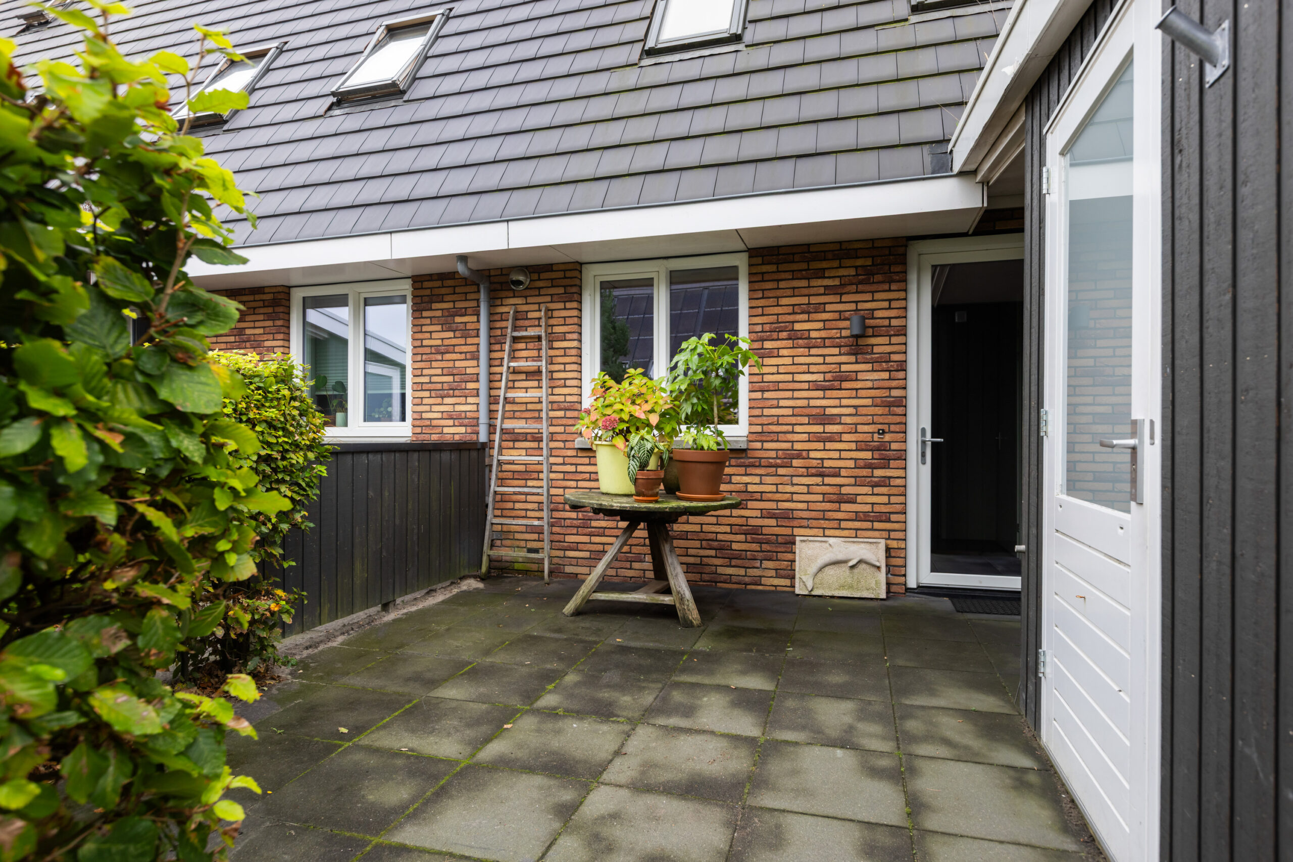 Het terras aan de achterzijde is gelegen op het zuiden. Er is een praktische tuinkast aanwezig voor het opslaan van de tuinmeubels. De berging bevindt zich aan de voorzijde van de woning.