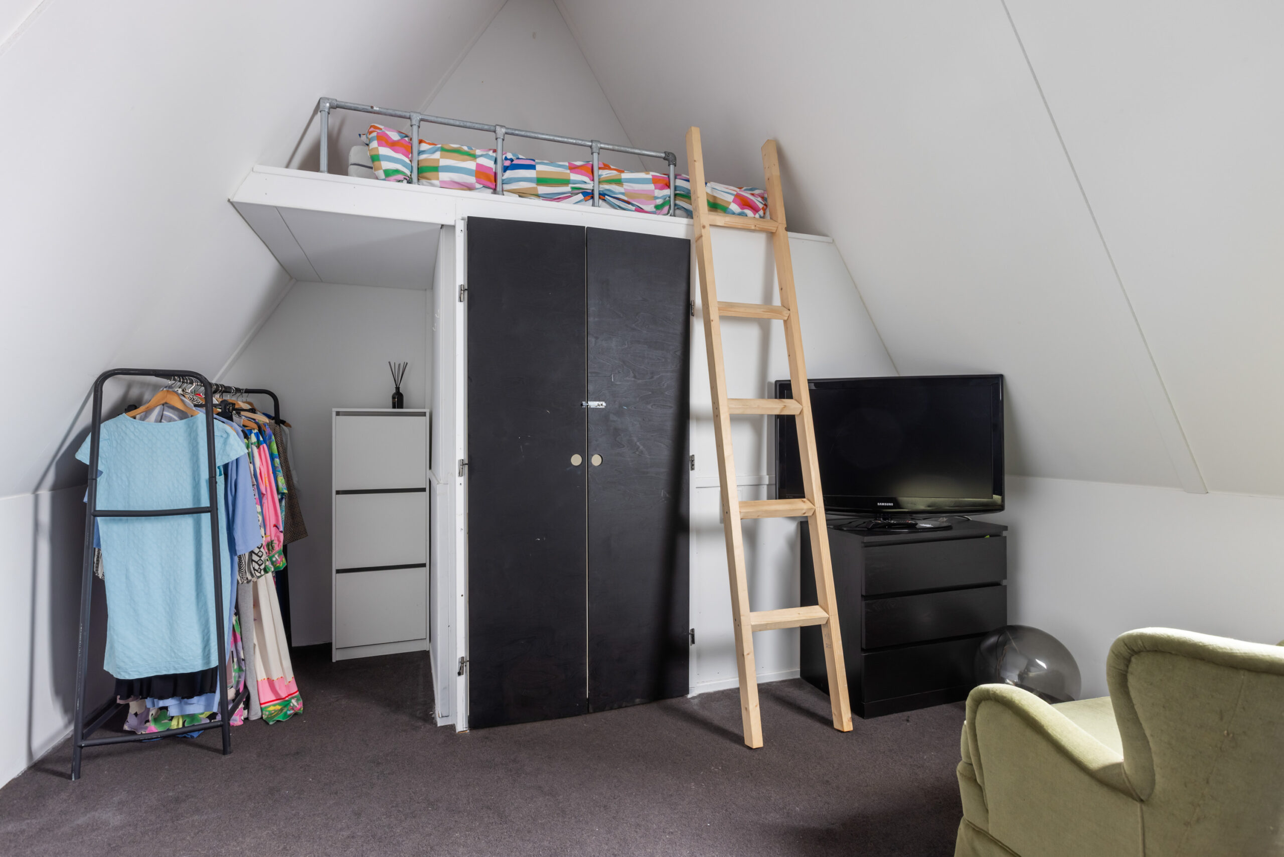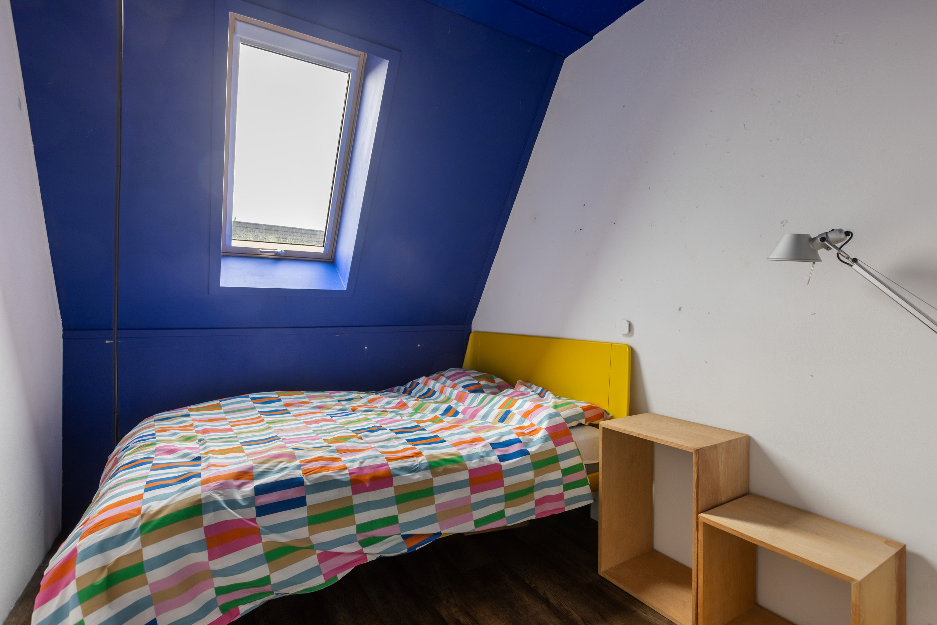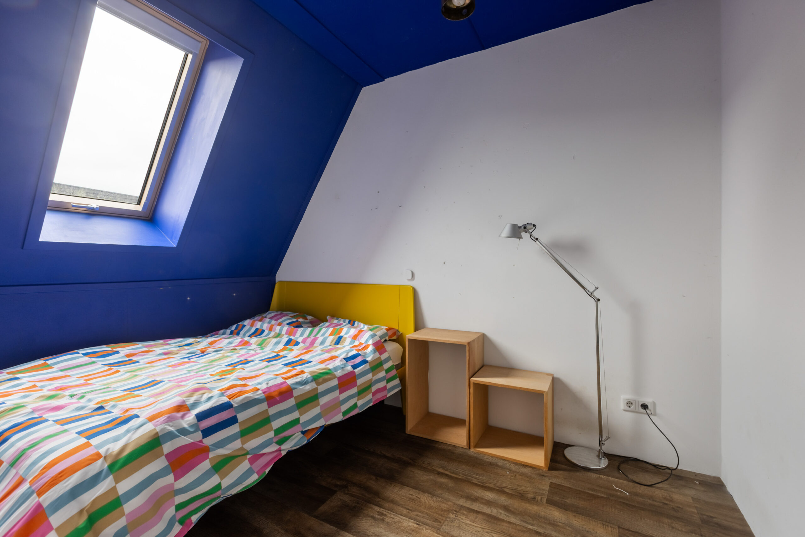 2e verdieping: multifunctionele ruimte met wasmachine aansluiting en technische installaties. Er is een extra kamer gerealiseerd met slaapvide!