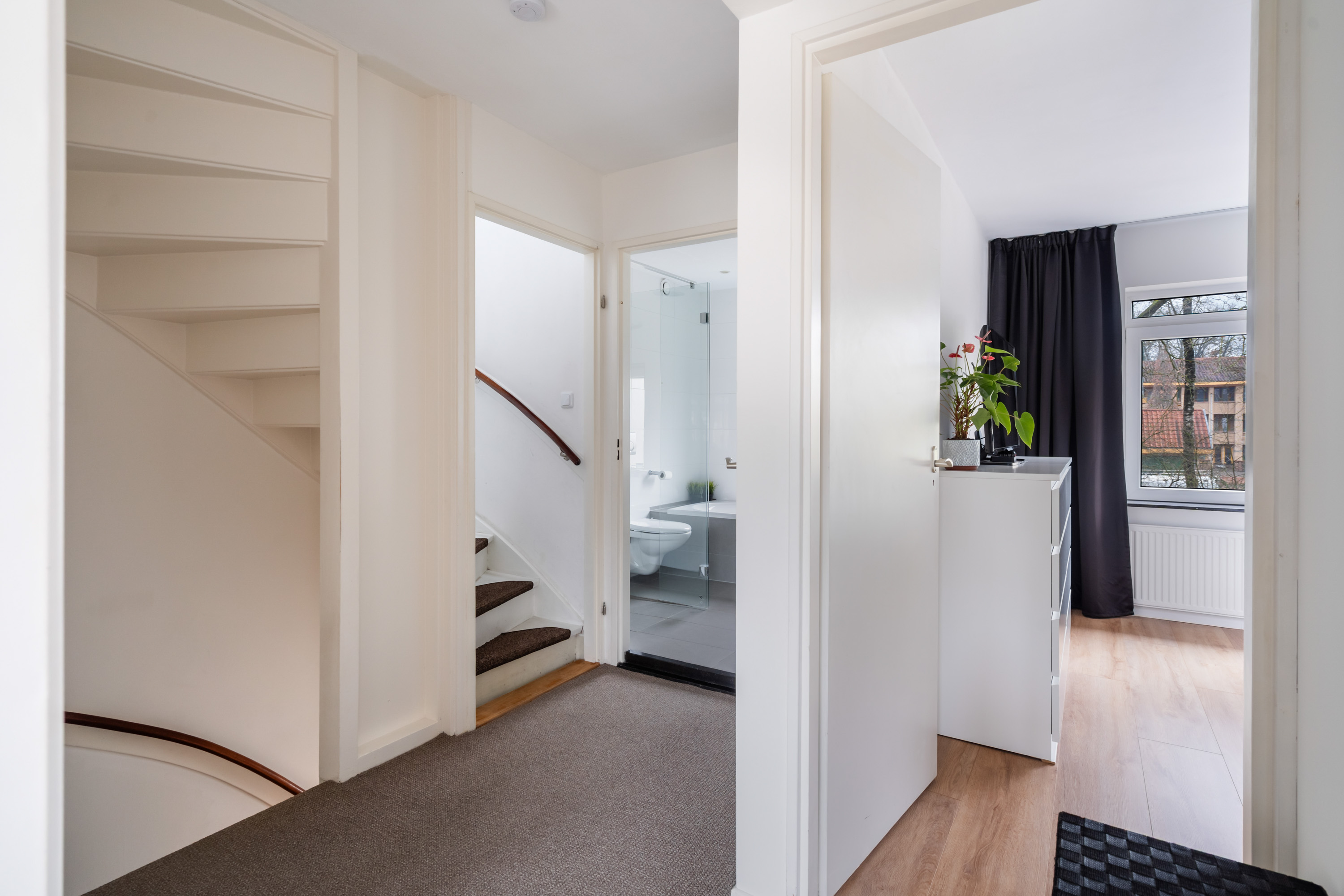 Doordat er destijds 1 slaapkamer is omgebouwd tot badkamer is er nu een heerlijke royale badkamer aanwezig. Vanwege de ruime tweede verdieping zijn er nog steeds 4 slaapkamers aanwezig.