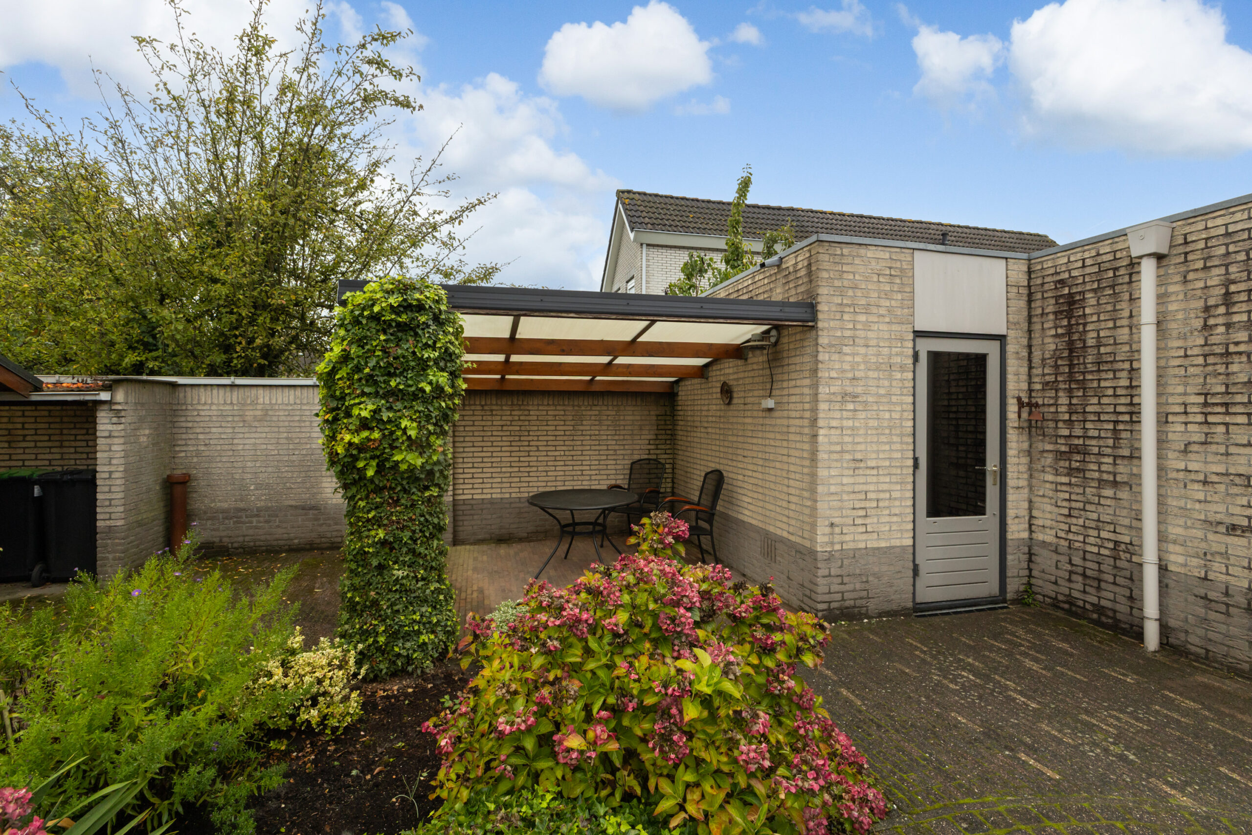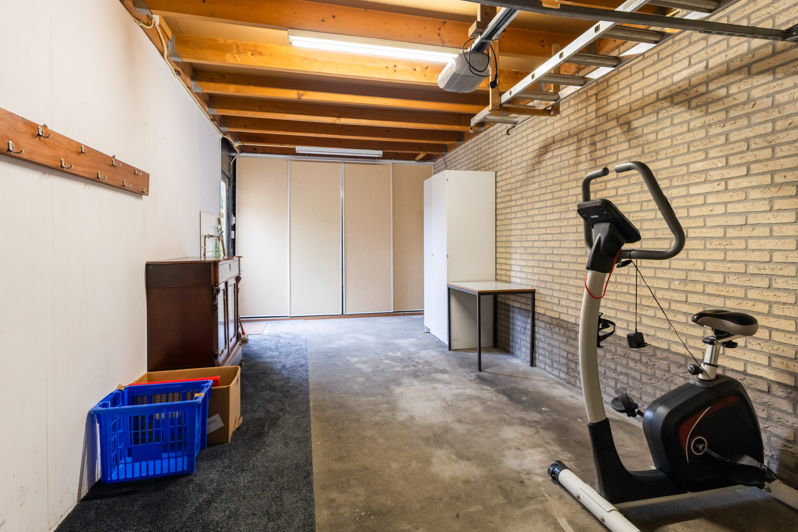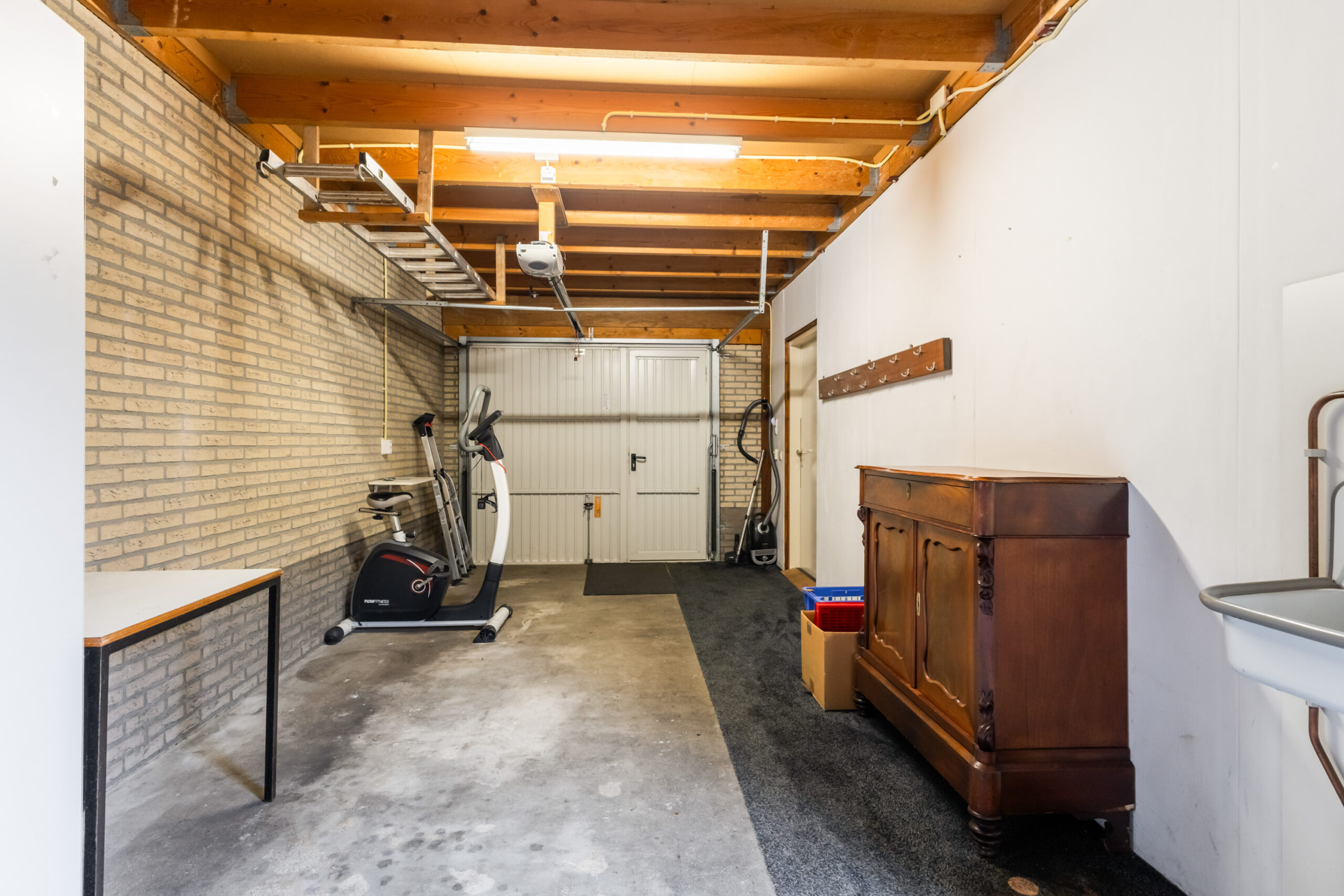 De aangebouwde garage is voorzien van een elektrische kanteldeur met loopdeur en heeft aan de binnenzijde een vaste kastenwand met schuifdeuren. Tevens is er vanuit de garage directe toegang tot de achtertuin. De voorgelegen oprit met carport biedt de mogelijkheid voor het parkeren van twee auto's op eigen terrein.