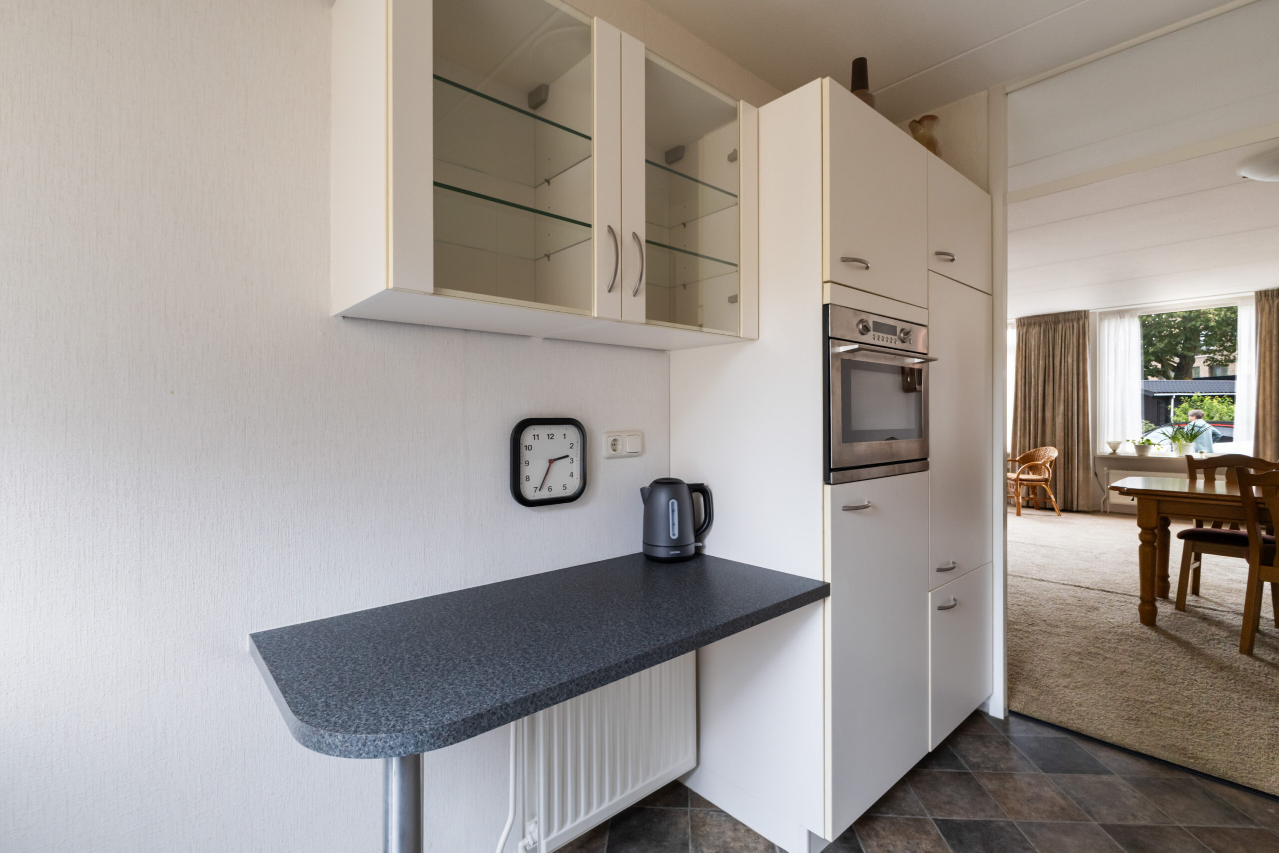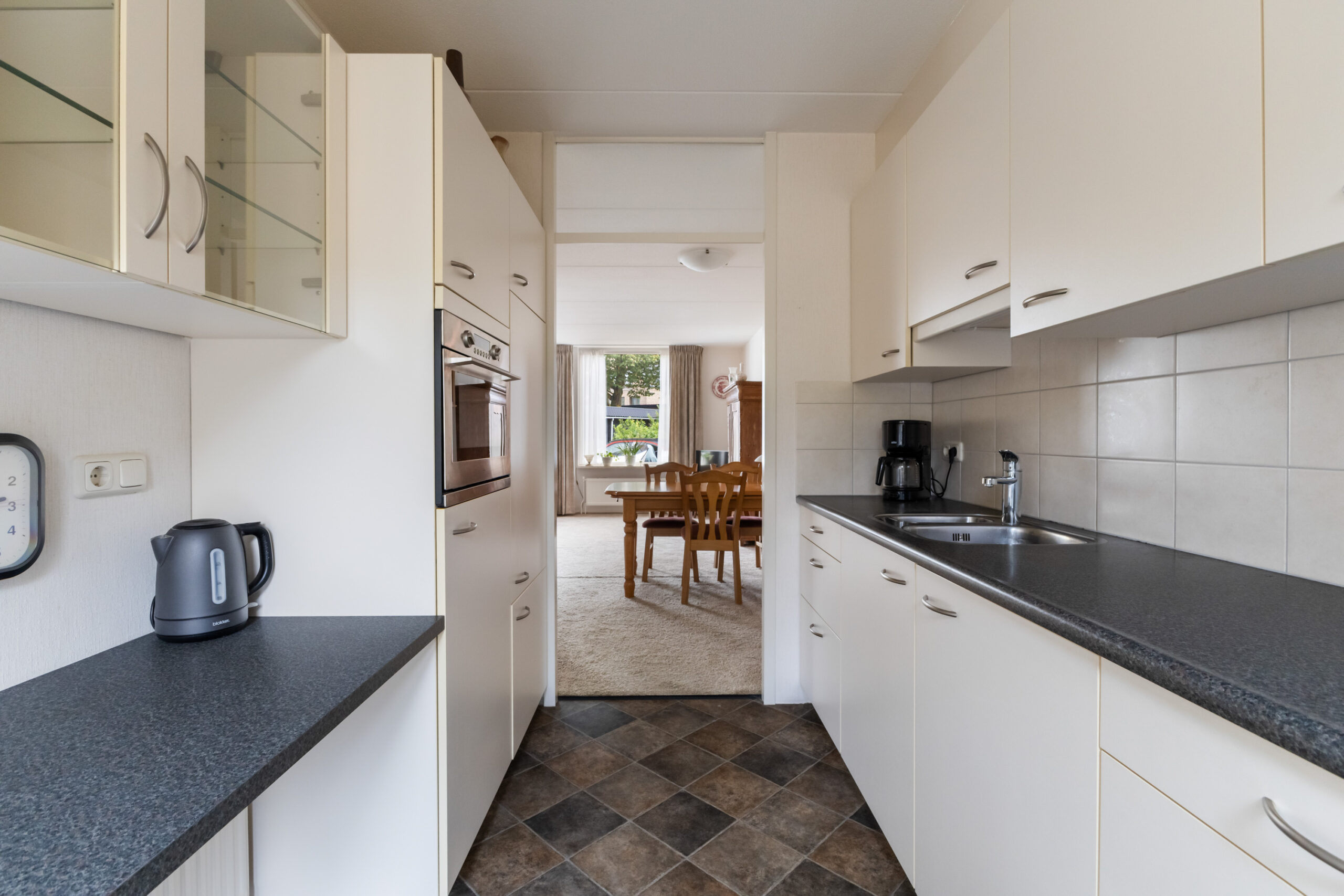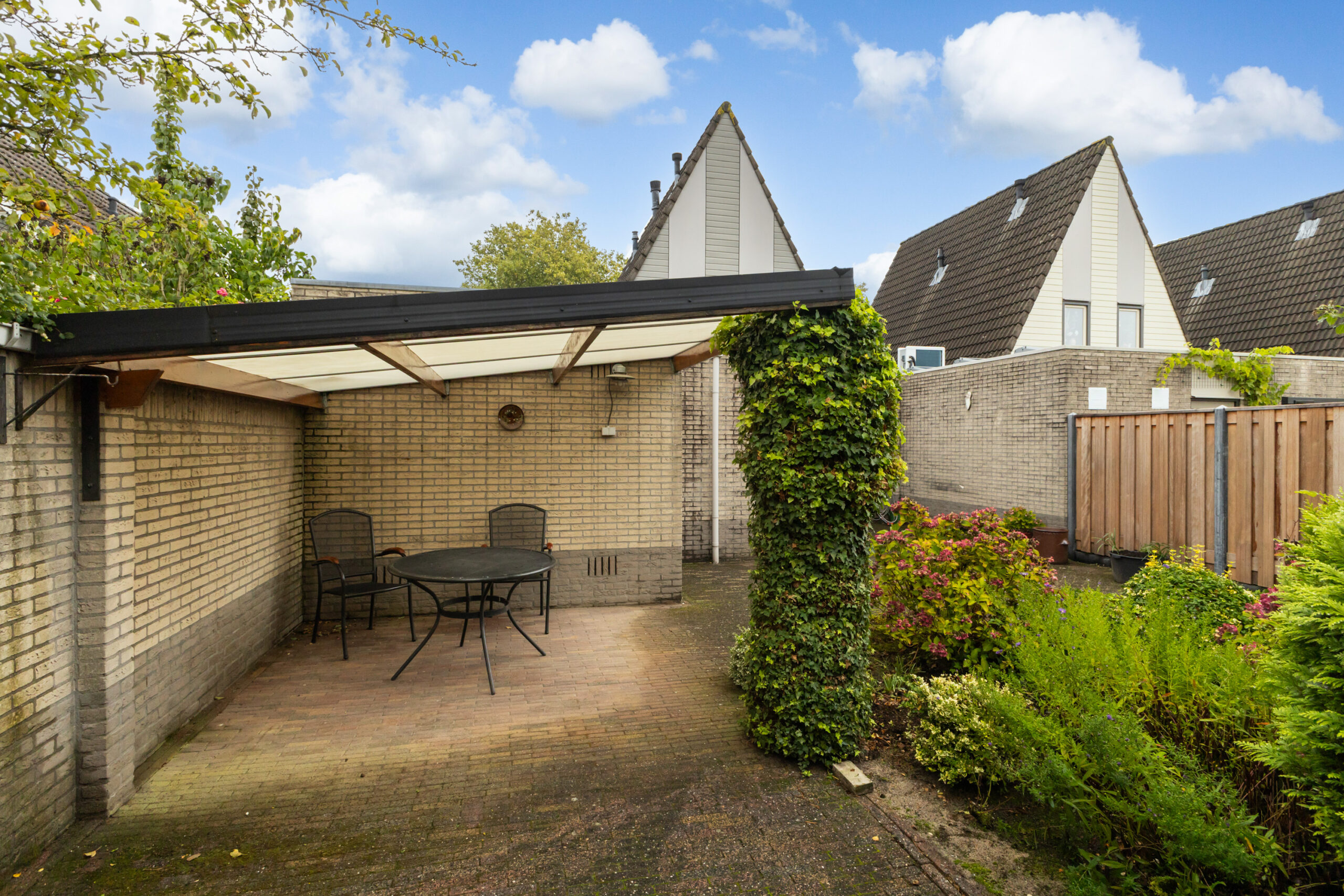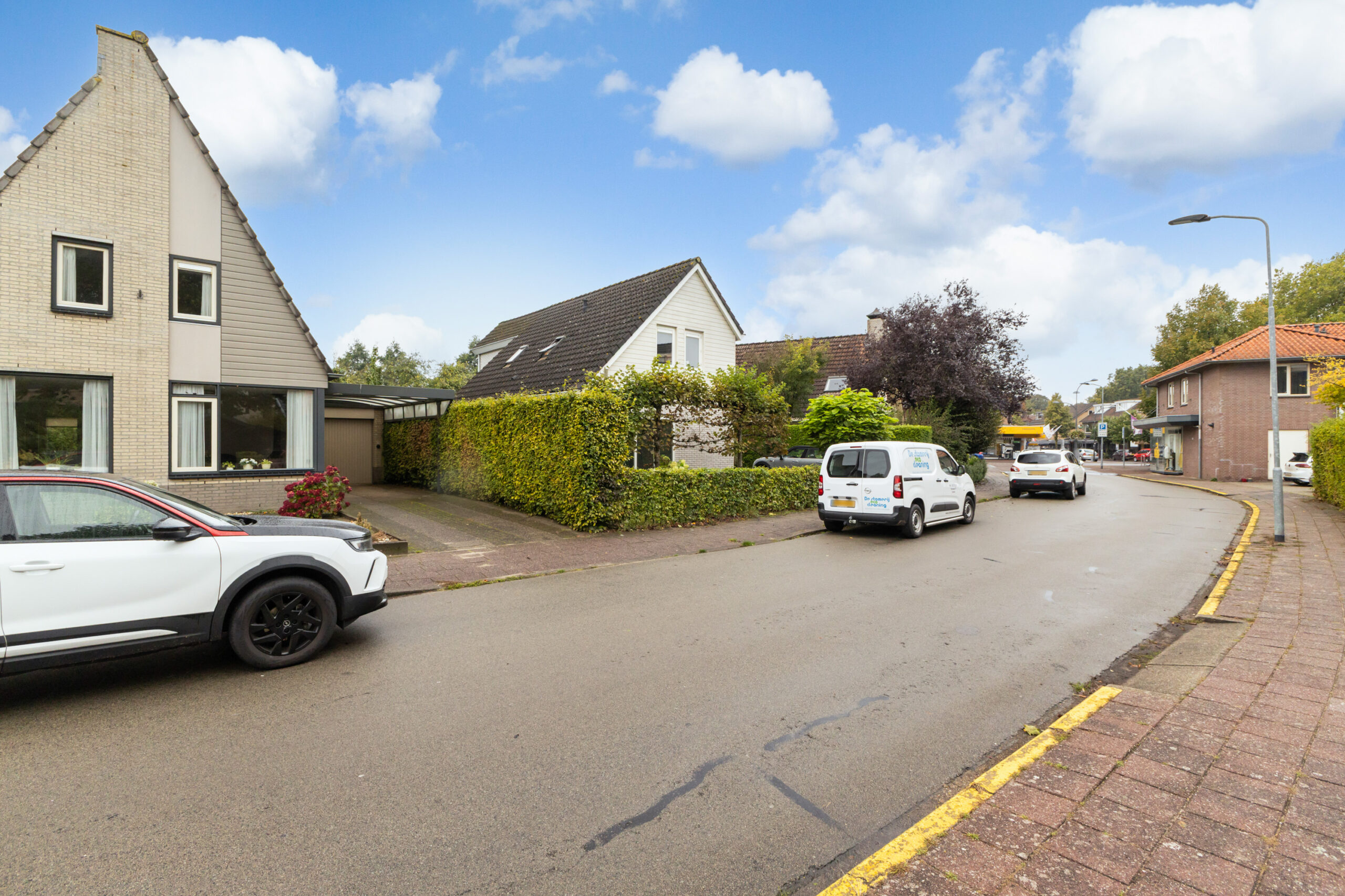 De aangebouwde garage is voorzien van een elektrische kanteldeur met loopdeur en heeft aan de binnenzijde een vaste kastenwand met schuifdeuren. Tevens is er vanuit de garage directe toegang tot de achtertuin. De voorgelegen oprit met carport biedt de mogelijkheid voor het parkeren van twee auto's op eigen terrein.