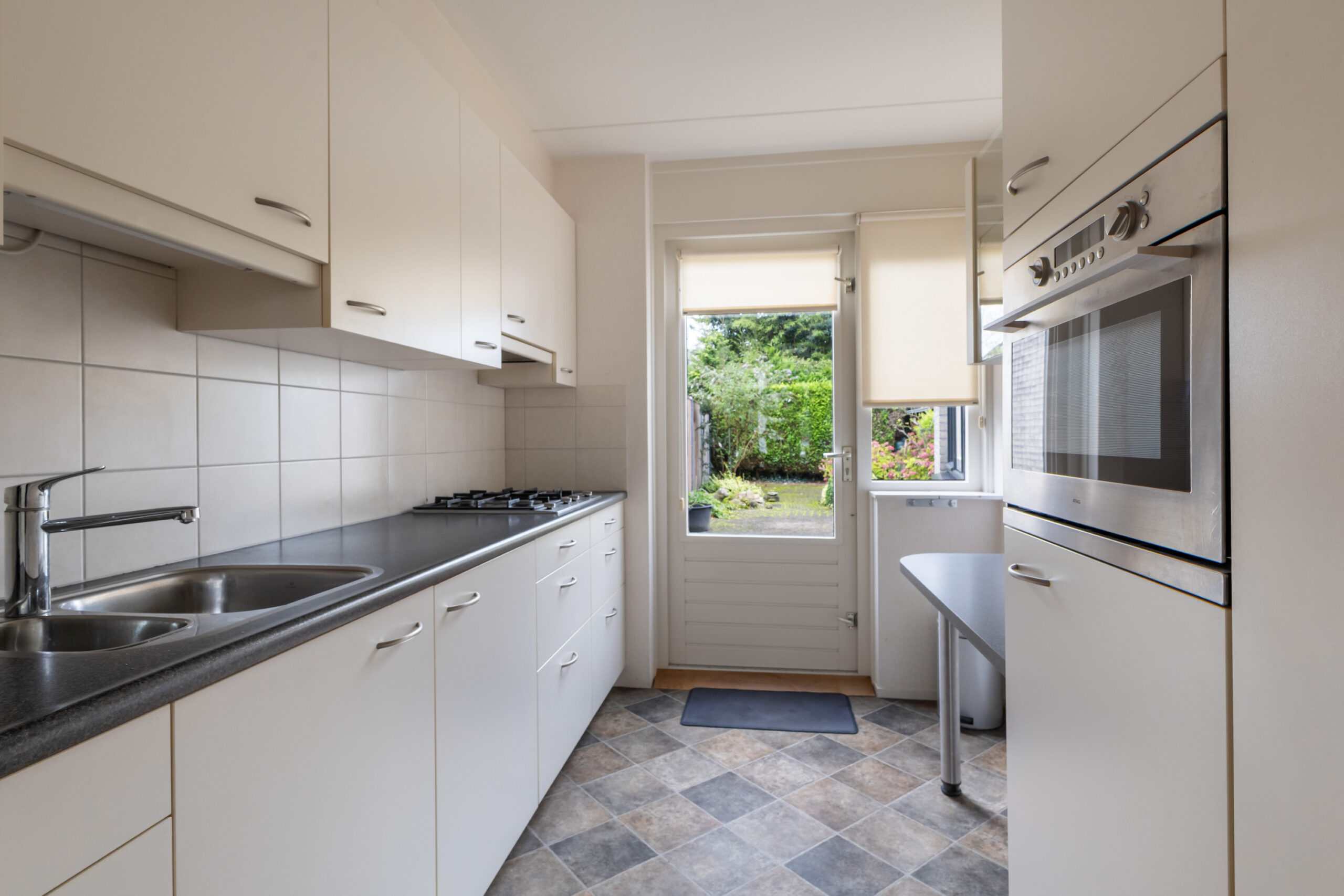 Begane grond: entree/hal met trapopgang en meterkast, toiletruimte, woonkamer met houtkachel, dichte keuken voorzien van keuken in lichte kleurstelling met de gewenste inbouwapparatuur en met directe toegang tot de achtertuin.