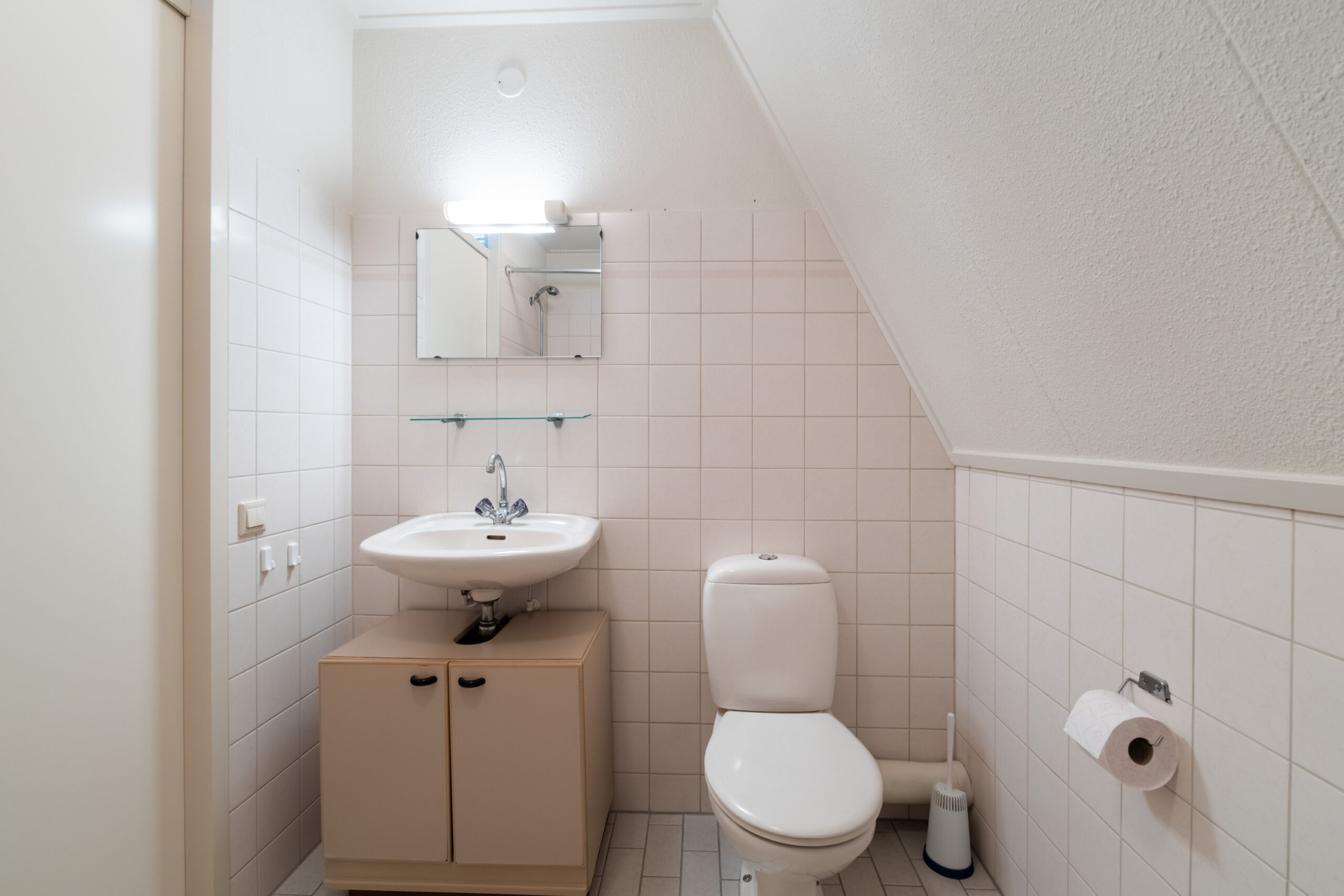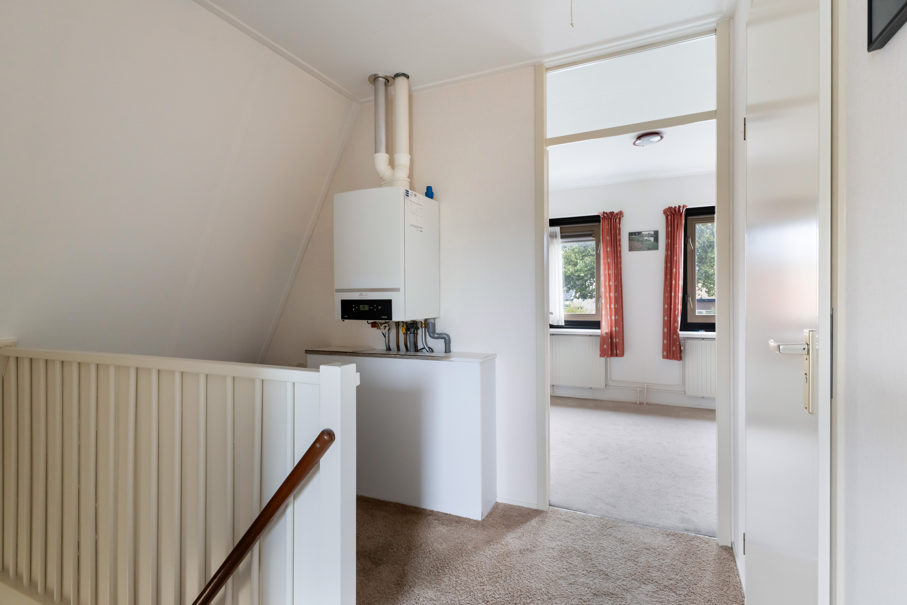 1e verdieping: overloop met opstelplaats voor de cv-ketel (Nefit), 2e en 3e slaapkamer voorzien van topgevelramen, badkamer met douche, wastafel en toilet.