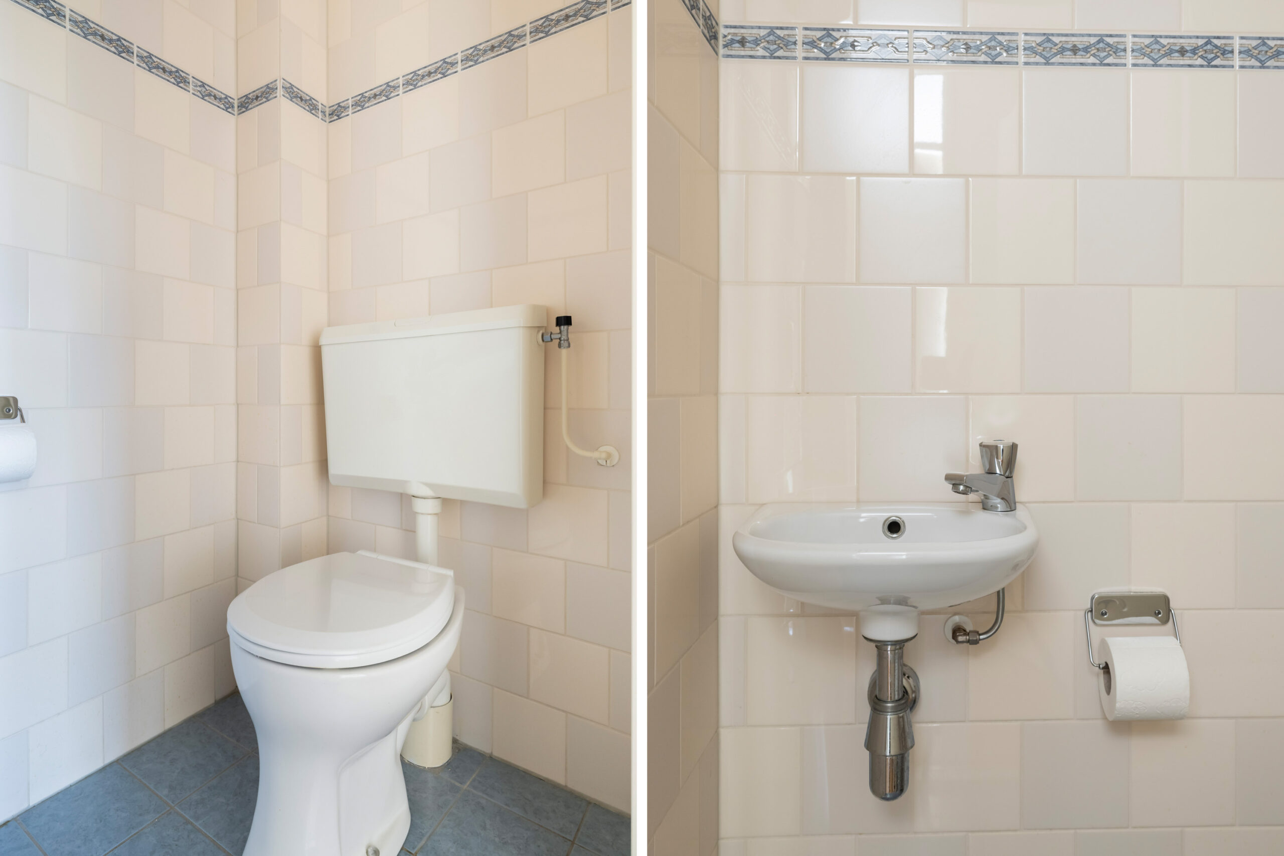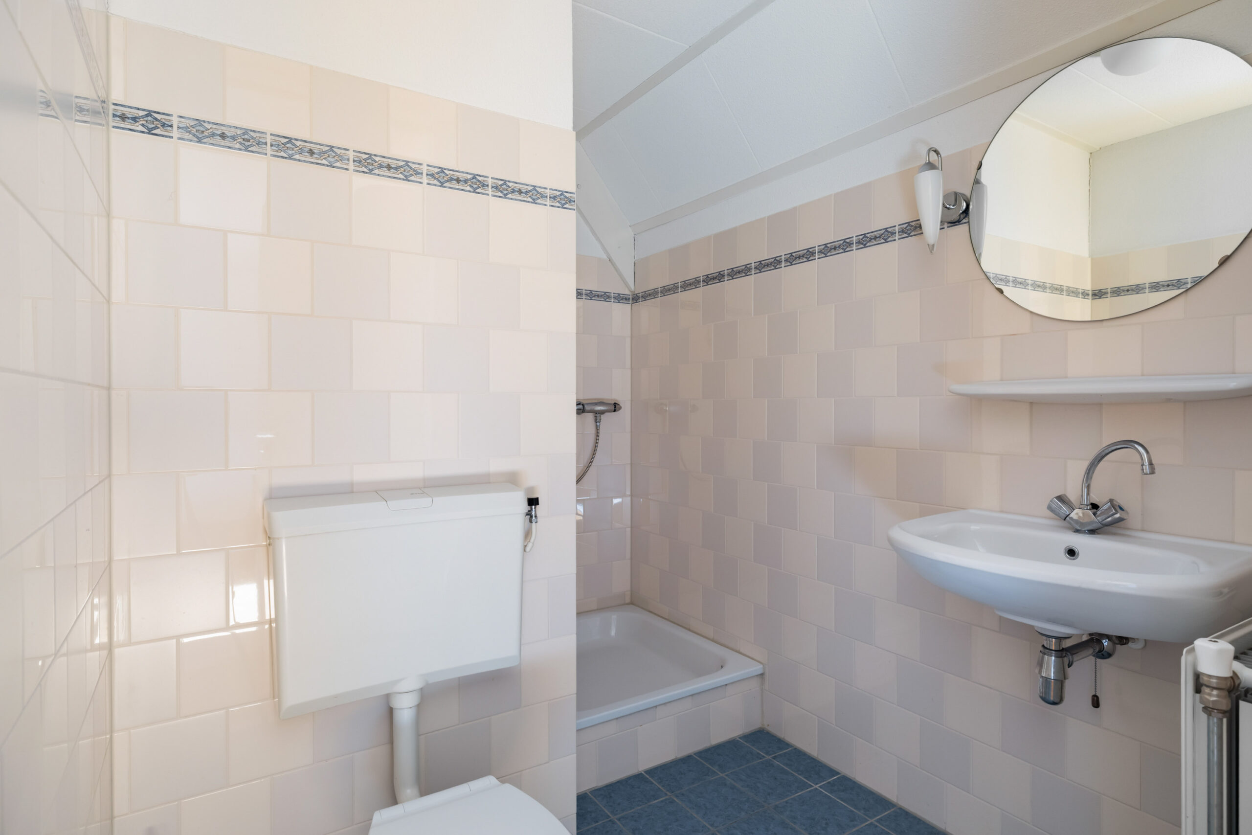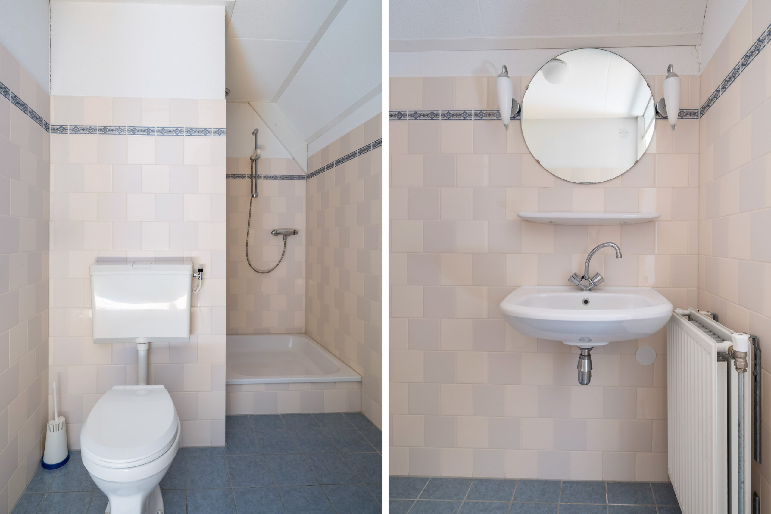 Tweede badkamer met toilet, wastafel en douche. Extra bergruimte en kast is aanwezig op de overloop. Hierin bevindt zich ook de Cv-ketel (bouwjaar 2025). Deze verdieping is perfect als master-bedroom of hobbyruimte.