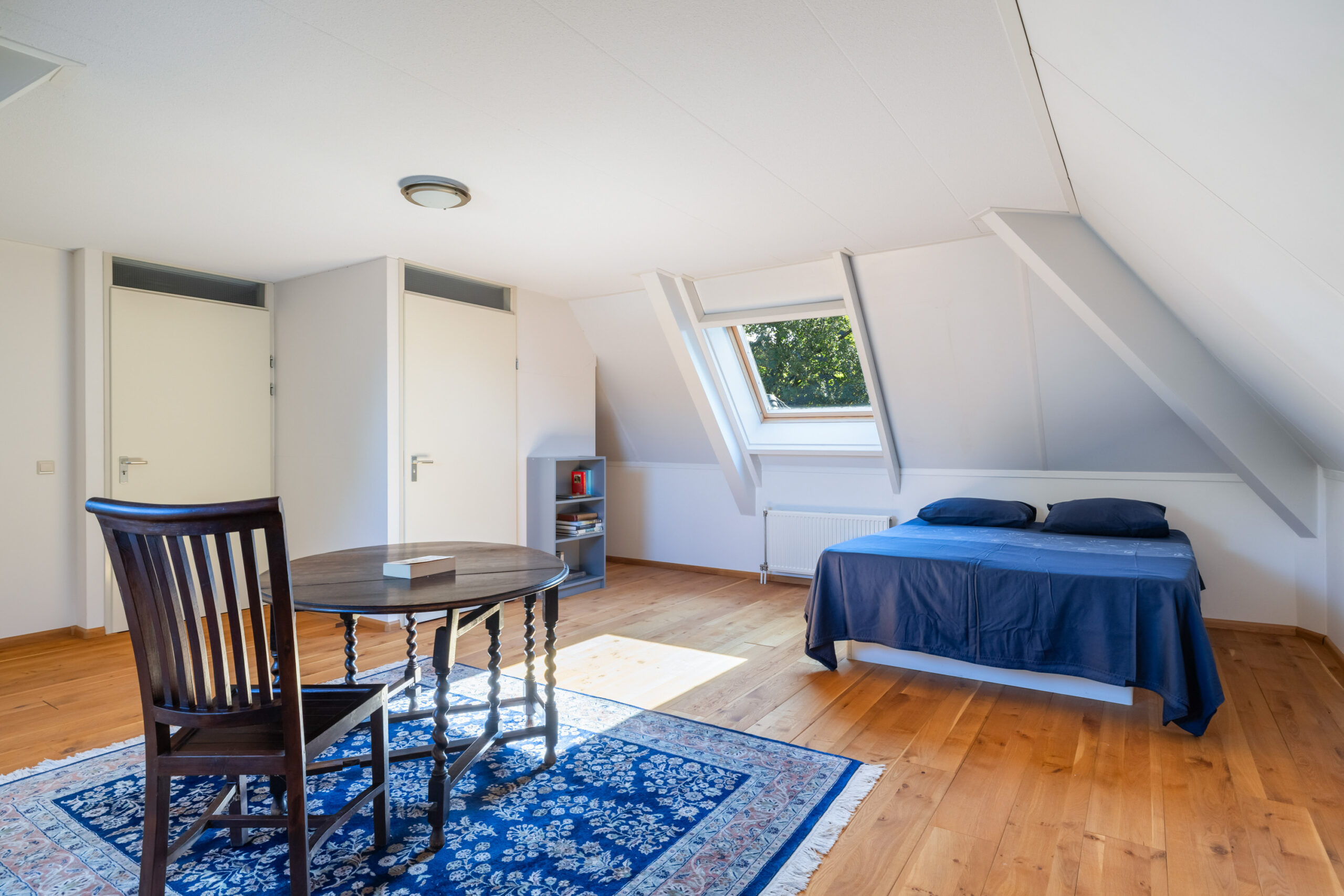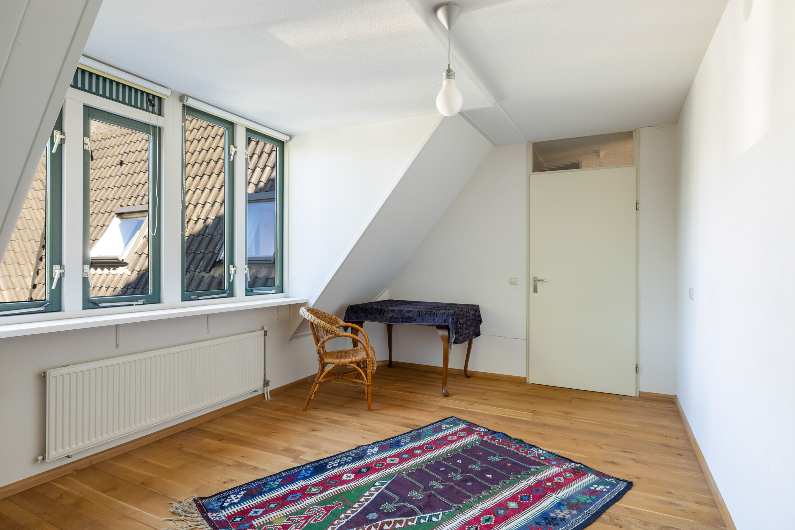 Via de vaste trap kom je op de opvallend ruime tweede woonlaag. Grote tweede slaapkamer voorzien van dakramen en een fijne plafondhoogte van ruim 2,3 m. Desgewenst is deze kamer makkelijk te splitsen.