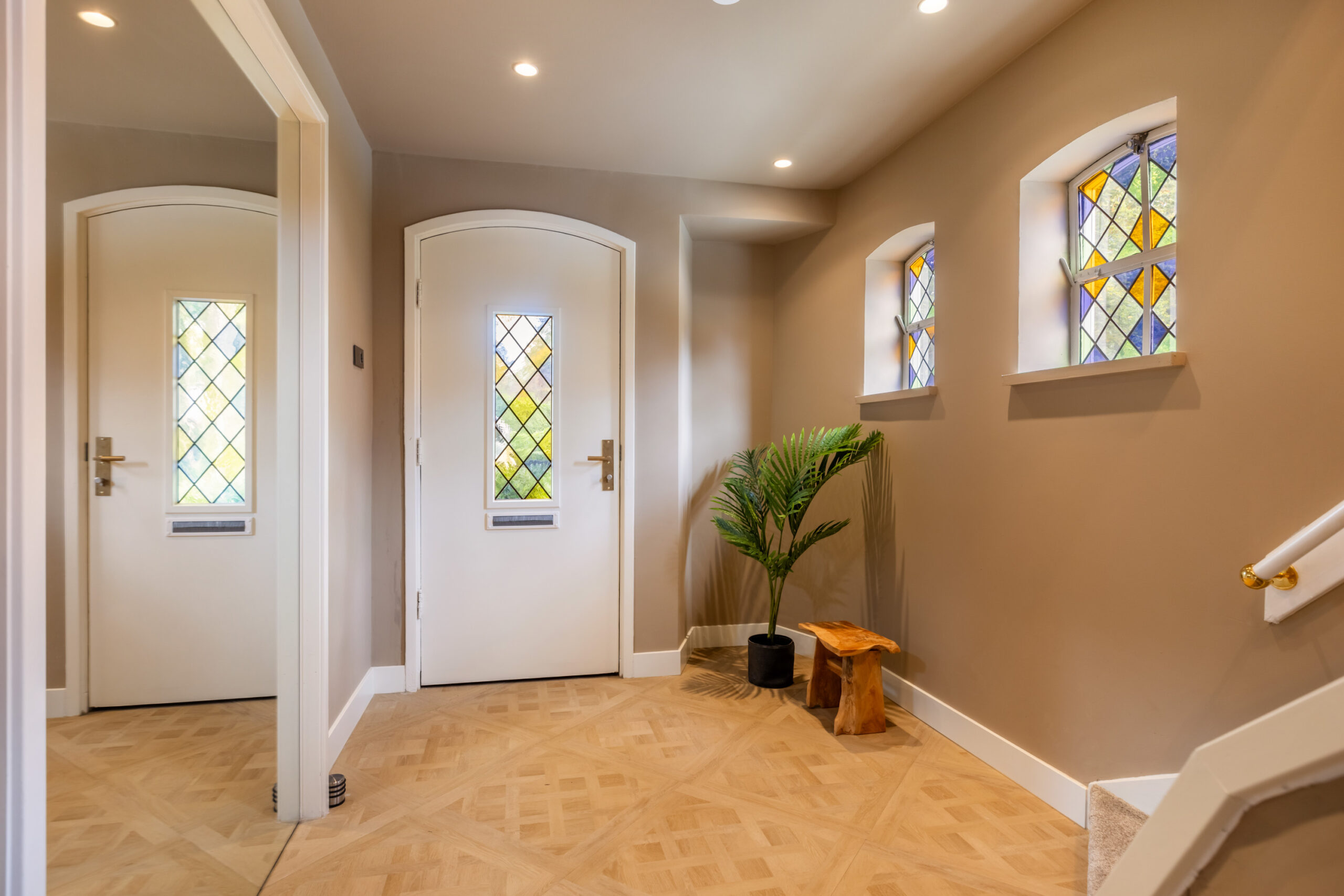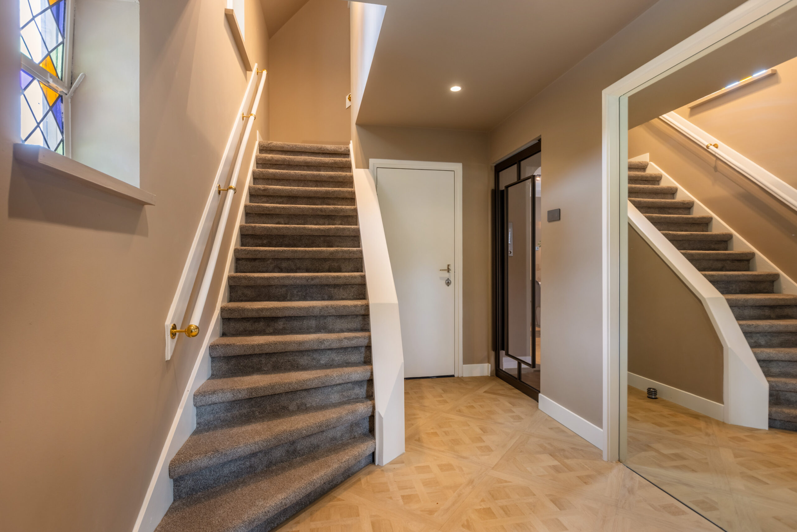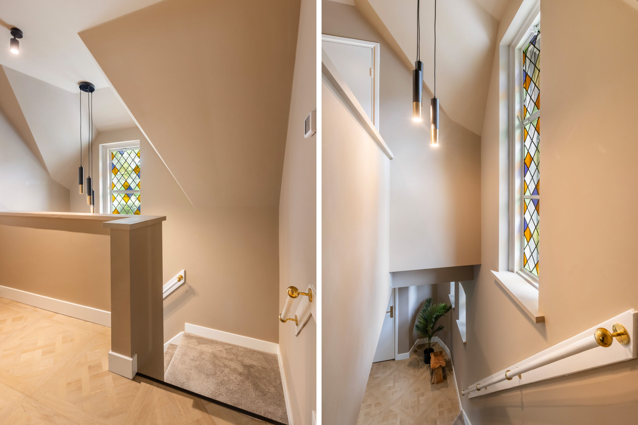Parterre: ruime entree/hal voorzien van authentieke glas-in-loodramen, statige trapopgang, luxe toiletruimte voorzien van vrijdragend toilet en waskom. Middels een prachtige stalen deur komt u in de sfeervolle living welke is voorzien van een luxe pvc-vloer met vloerverwarming, een doorkijk openhaard én een erker met openslaande deuren naar de tuin.