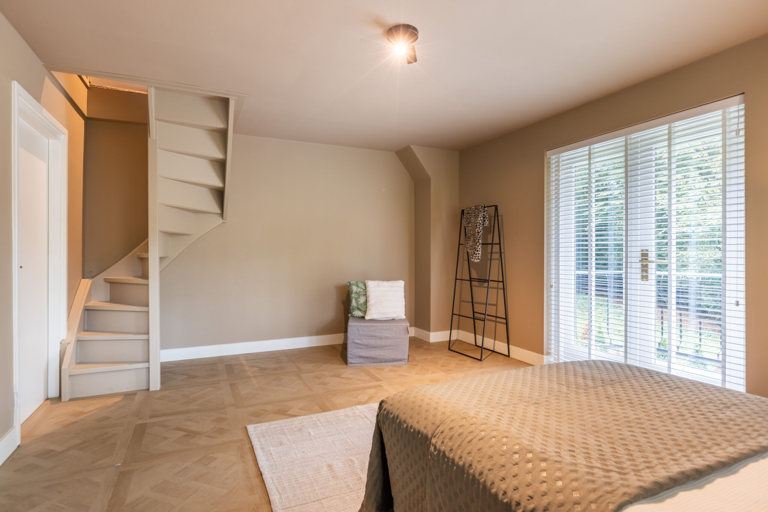 De 2e verdieping welke vanuit de royale slaapkamer via een vaste trap te bereiken is, zijn twee ruimtes die middels een open doorgang aan elkaar verbonden zijn en voorzien zijn van daglichttoetreding. Tevens biedt het de mogelijkheid voor een extra slaap-/werkkamer.