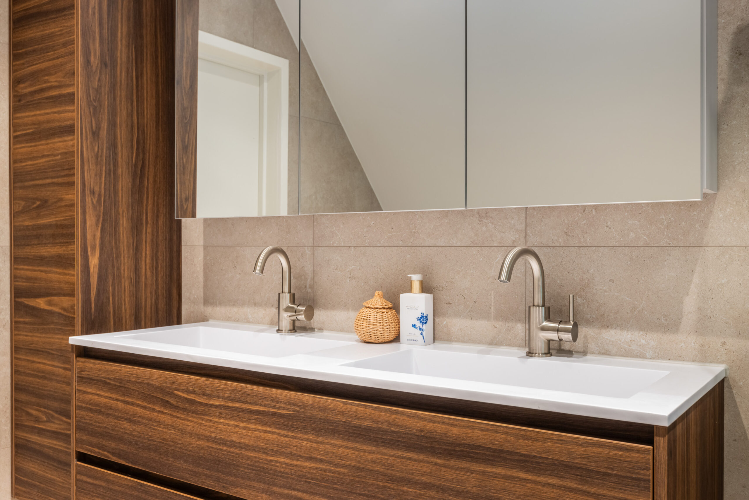 Middels een statige trap met bordes bereikt u de overloop van de 1e verdieping met toegang tot de slaapkamers die eveneens voorzien zijn van de prachtige pvc-vloer. De 2e en 3e slaapkamer, beiden met vaste kast zijn gesitueerd aan de achterzijde van de villa. De royale 4e (ouder)slaapkamer bevindt zich aan de voorzijde en beschikt over openslaande deuren naar het aangrenzende balkon. De luxe 2e badkamer met mooi tegelwerk is voorzien van een royaal ligbad, wastafelmeubel met dubbele wastafel en koperen kranen, een inloop-regendouche en een vrijdragend toilet.