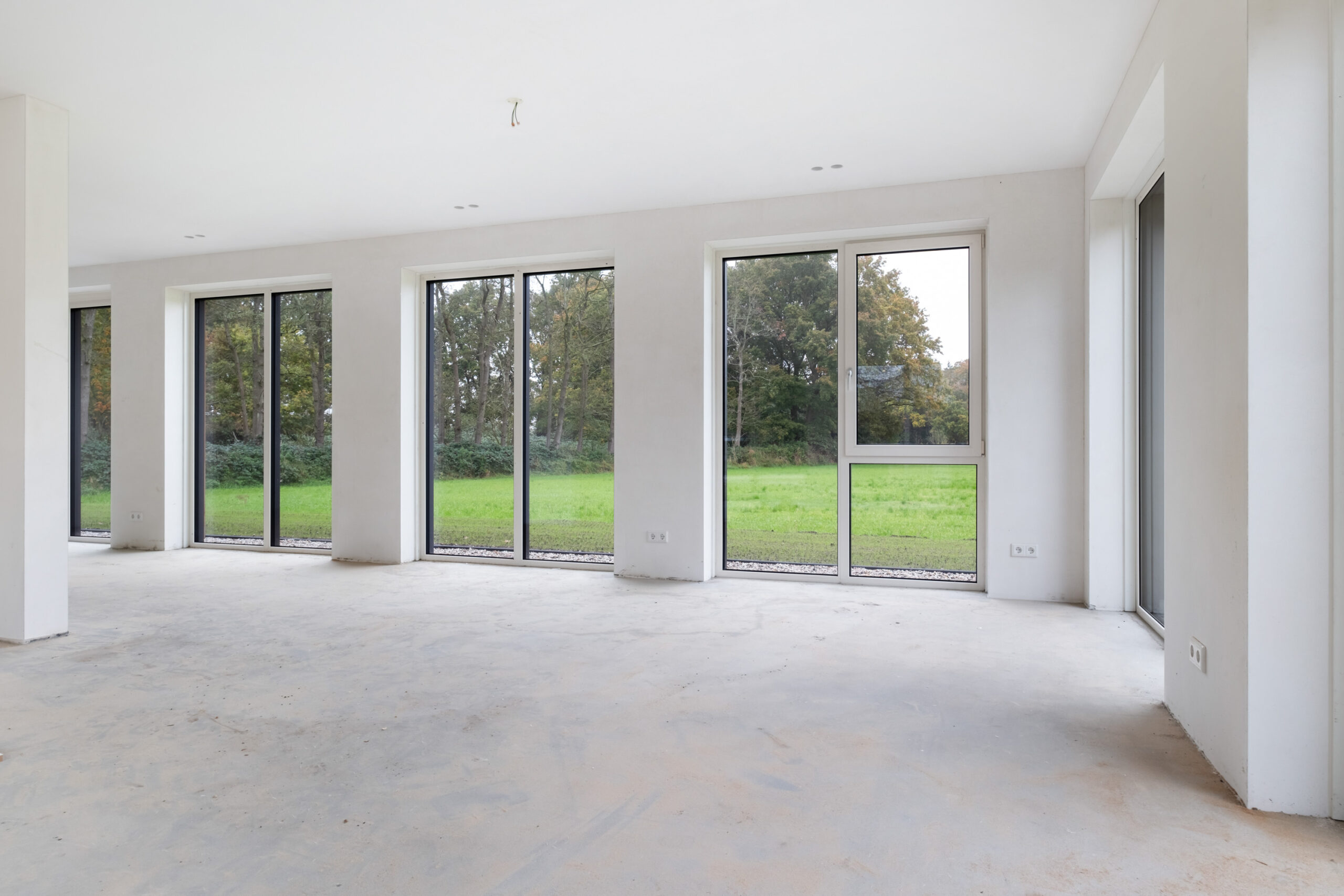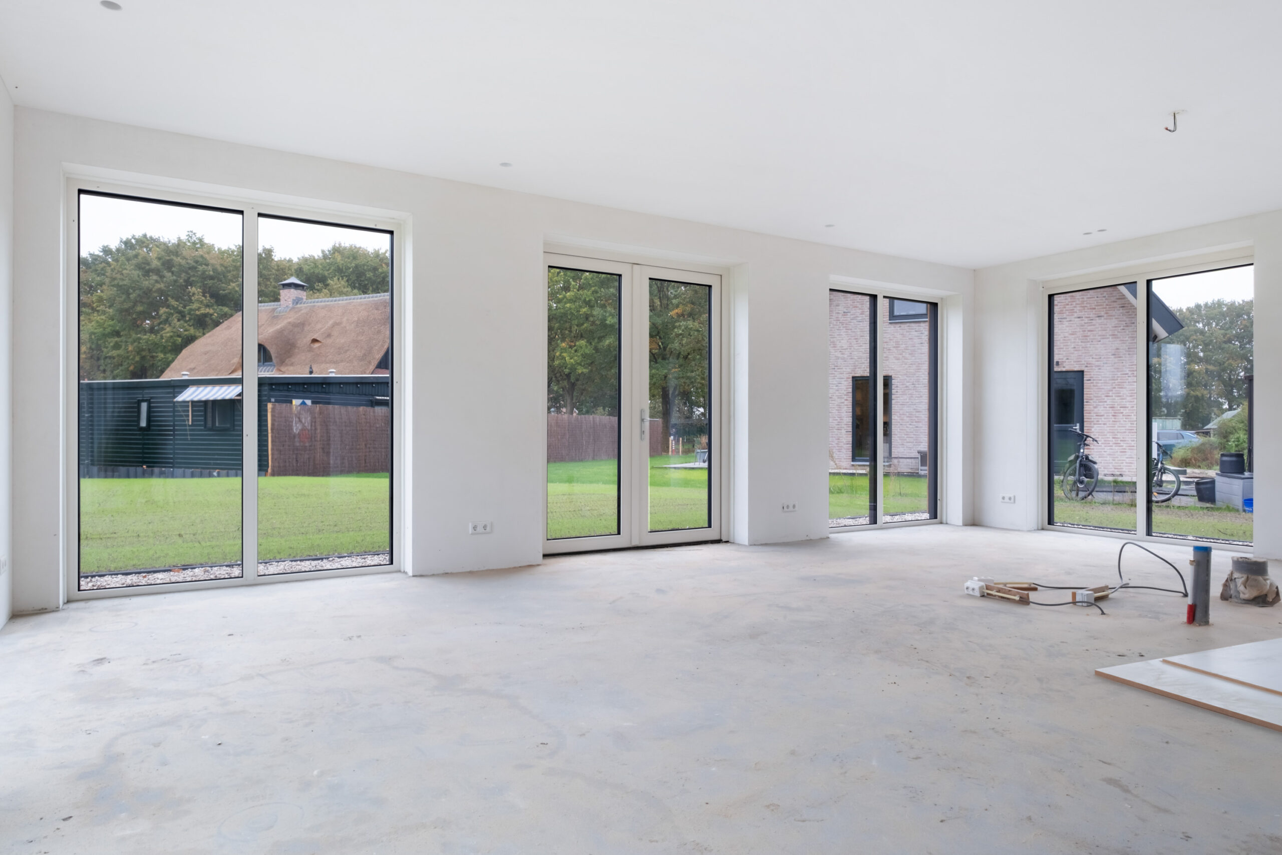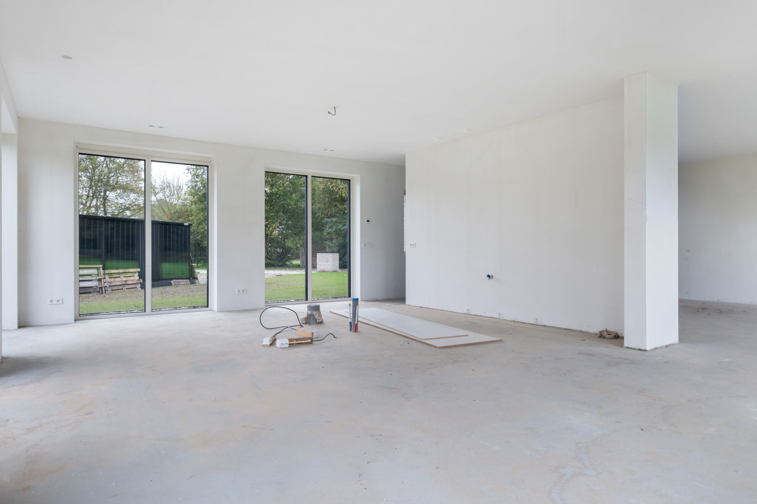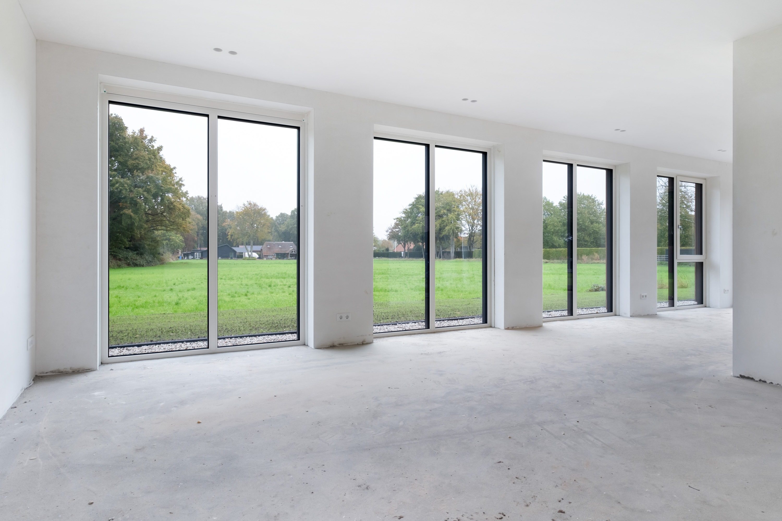 Vanuit de riante woonkamer-woonkeuken is er vrij zicht over de landelijke omgeving.