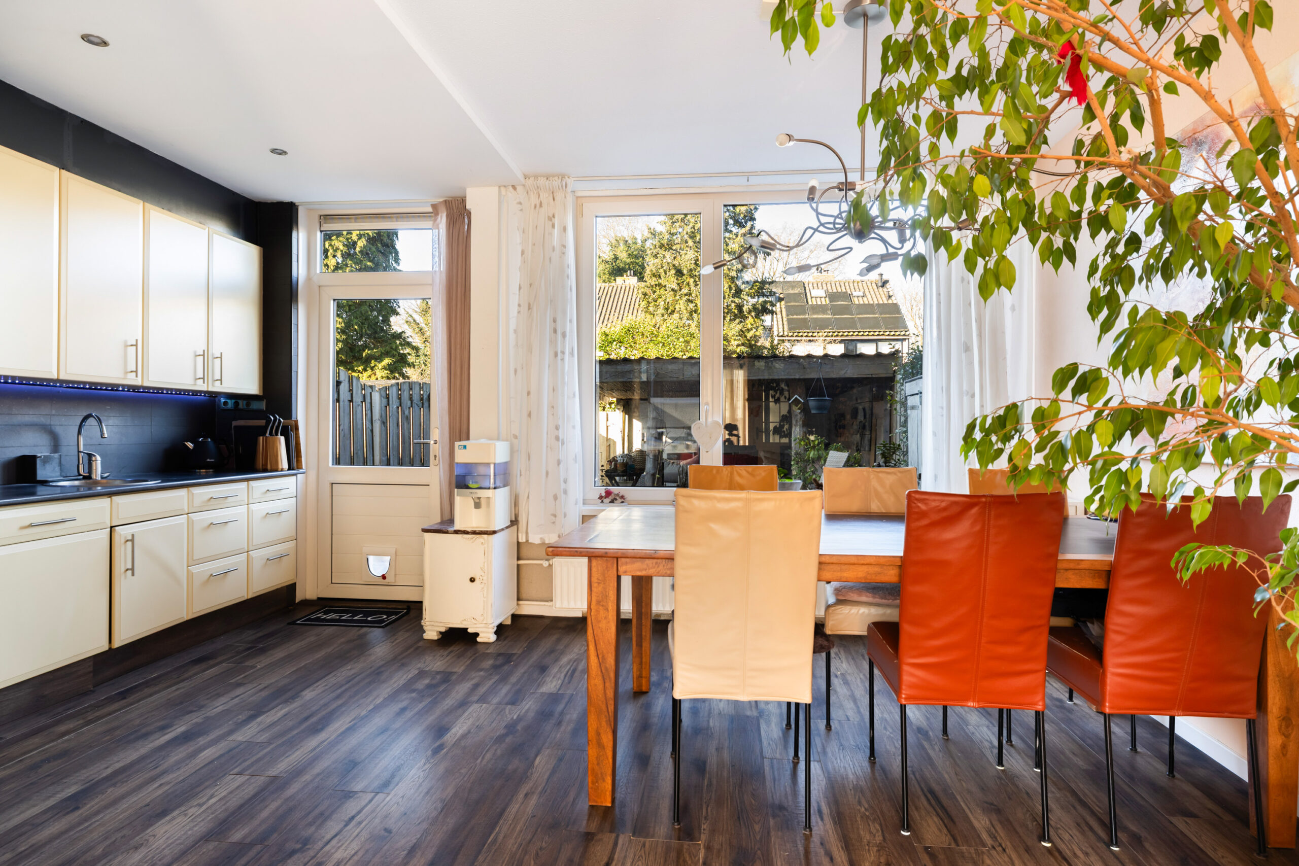 Begane grond: entree/hal, meterkast, toiletruimte voorzien van vrijdragend toilet en fonteintje, lichte woonkamer met zitgedeelte aan de voorzijde en eetgedeelte aan de achterzijde, trapopgang naar 1e verdieping, open keuken met keuken in lichte kleurstelling en voorzien van de gewenste inbouwapparatuur en directe toegang tot de achtertuin.