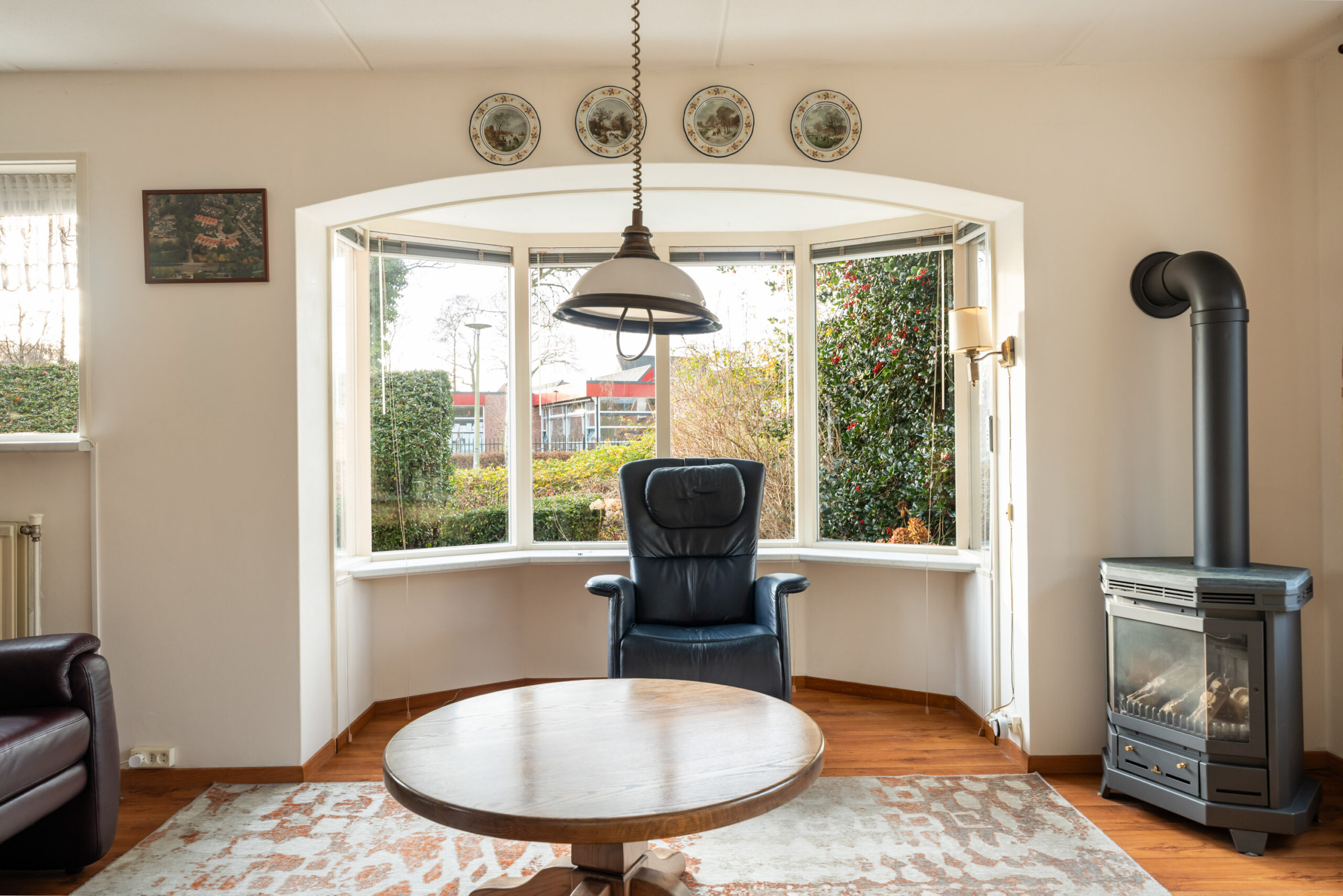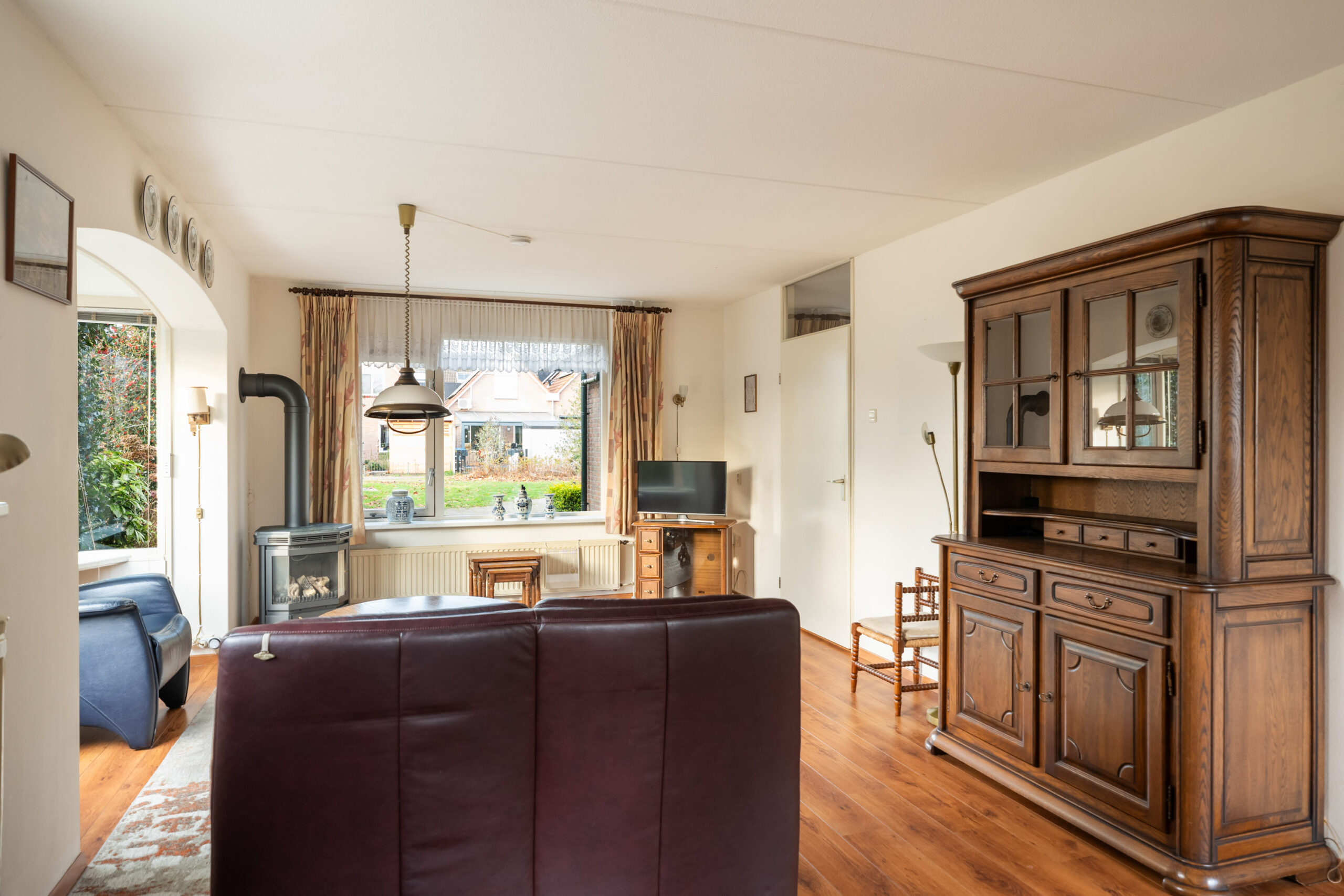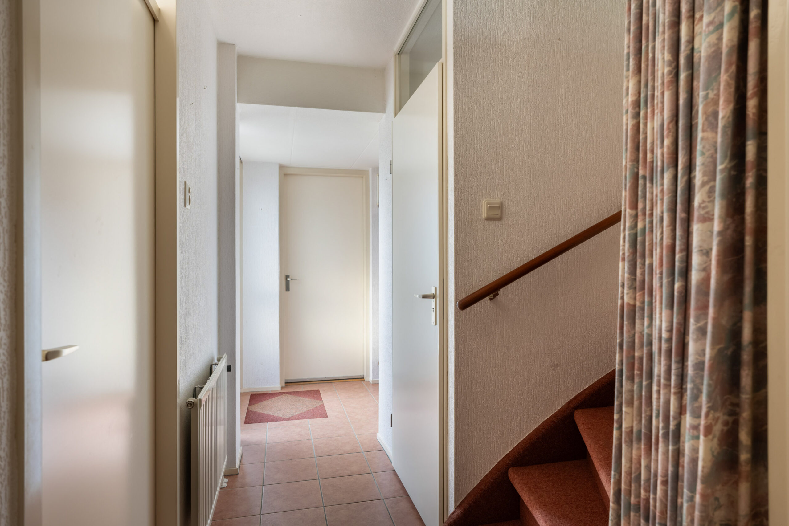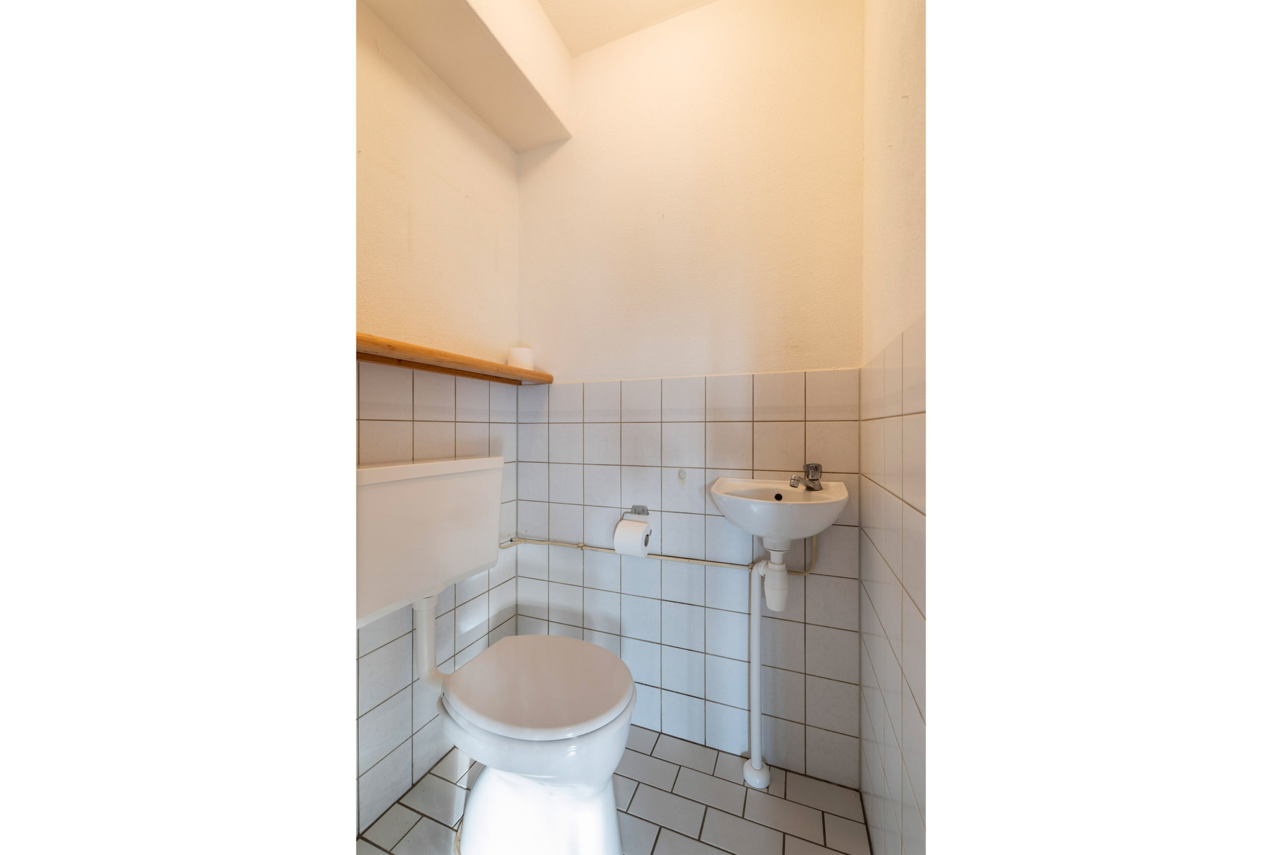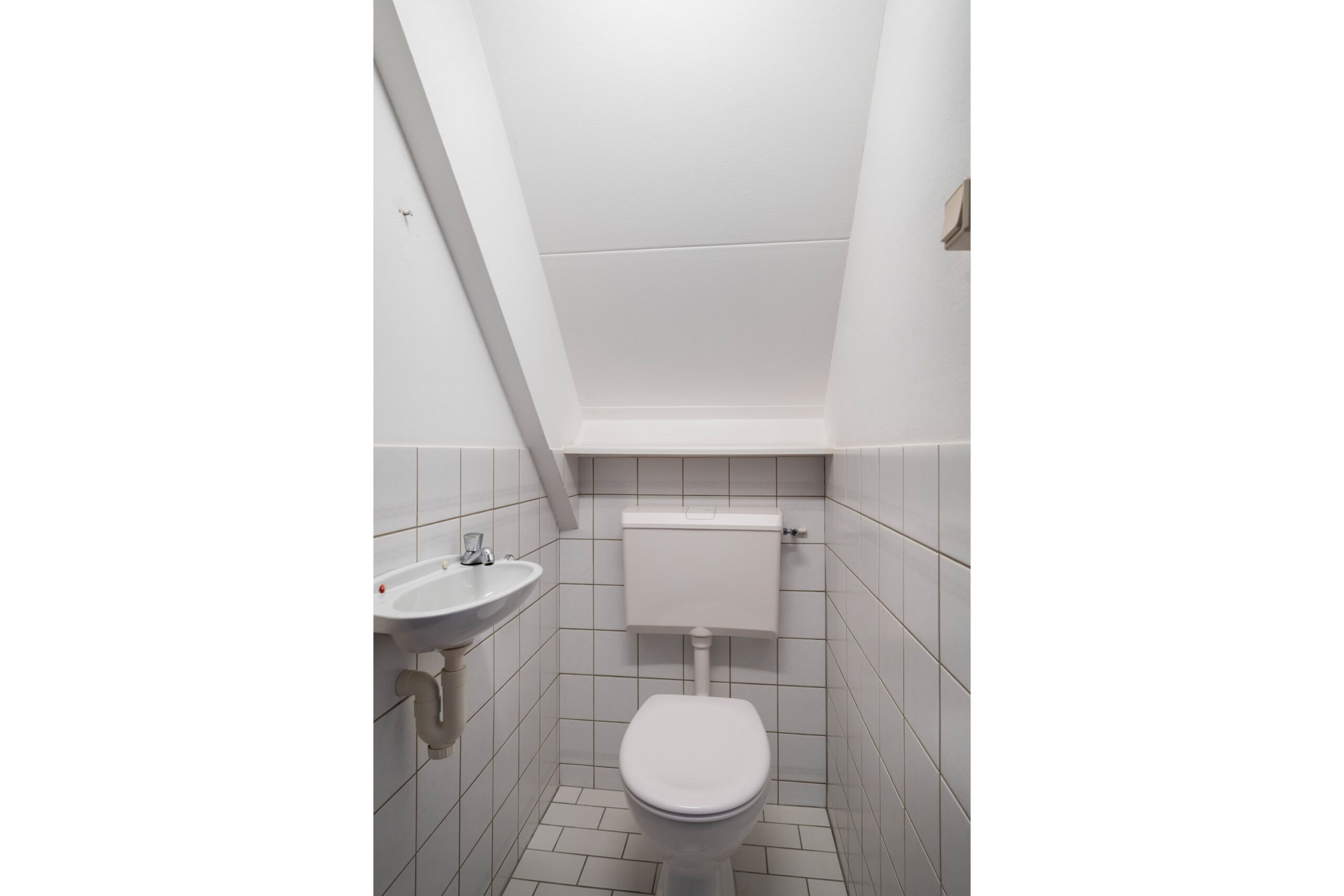 Begane grond: via de entree komt u in de hal met de meterkast, praktische bergkast onder de trap en een toiletruimte. Vanuit de hal heeft u toegang tot de ruime en lichte woonkamer, door de erker is er meer ruimte en licht. In de woonkamer is een sfeervolle gaskachel ingebouwd en de woonkamer staat in directe verbinding met de eetkamer, waar voldoende ruimte is voor een royale eettafel. De dichte keukenruimte grenst aan de eetkamer en is praktisch ingedeeld met diverse inbouwapparatuur en voldoende werk- en kastruimte. Vanuit de keuken is via de achterdeur toegang tot buiten. Aan de voorzijde van de woning bevindt zich een ruime inpandige berging van ca. 6 m² met toegang binnendoor vanuit de hal.