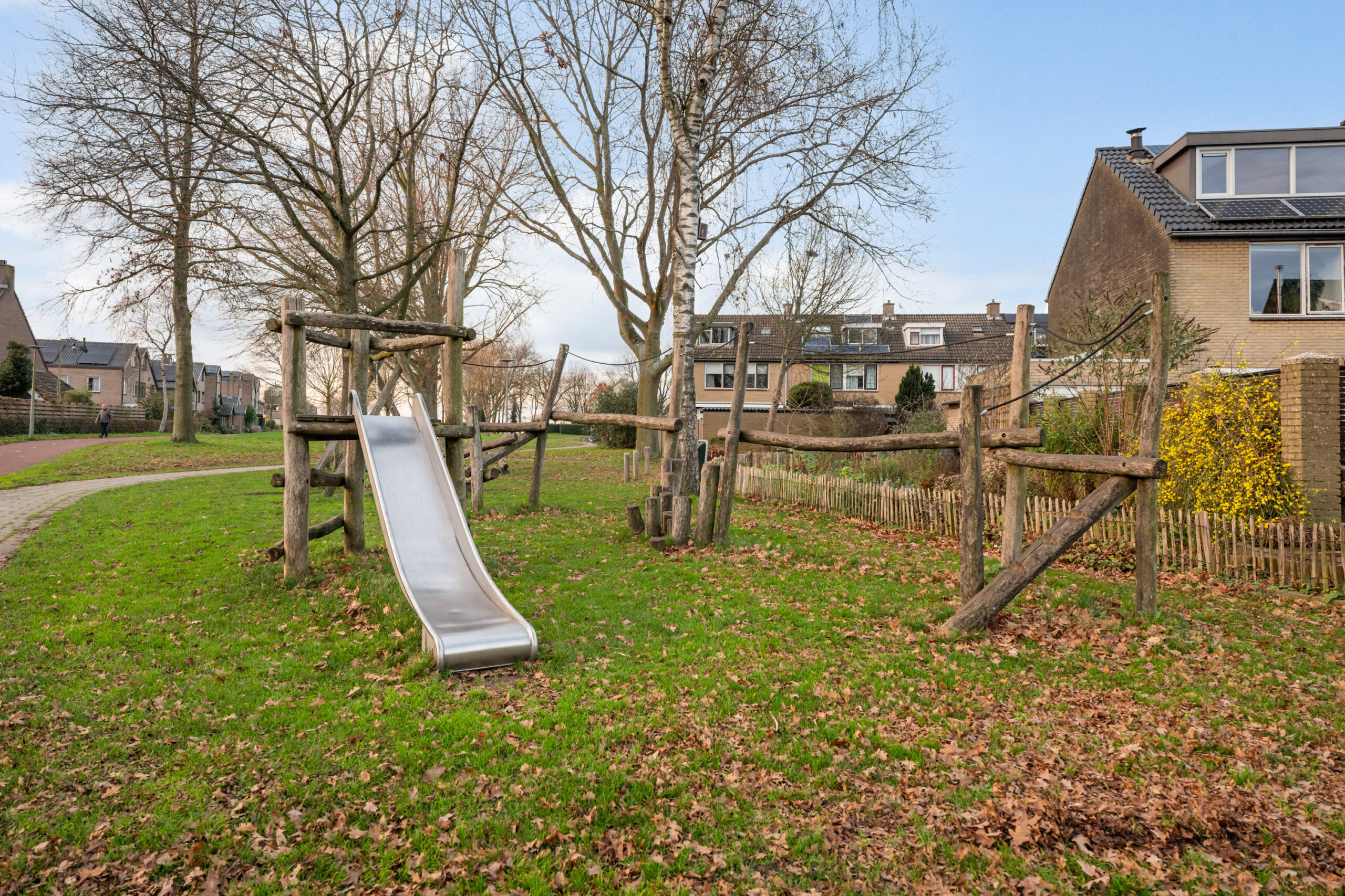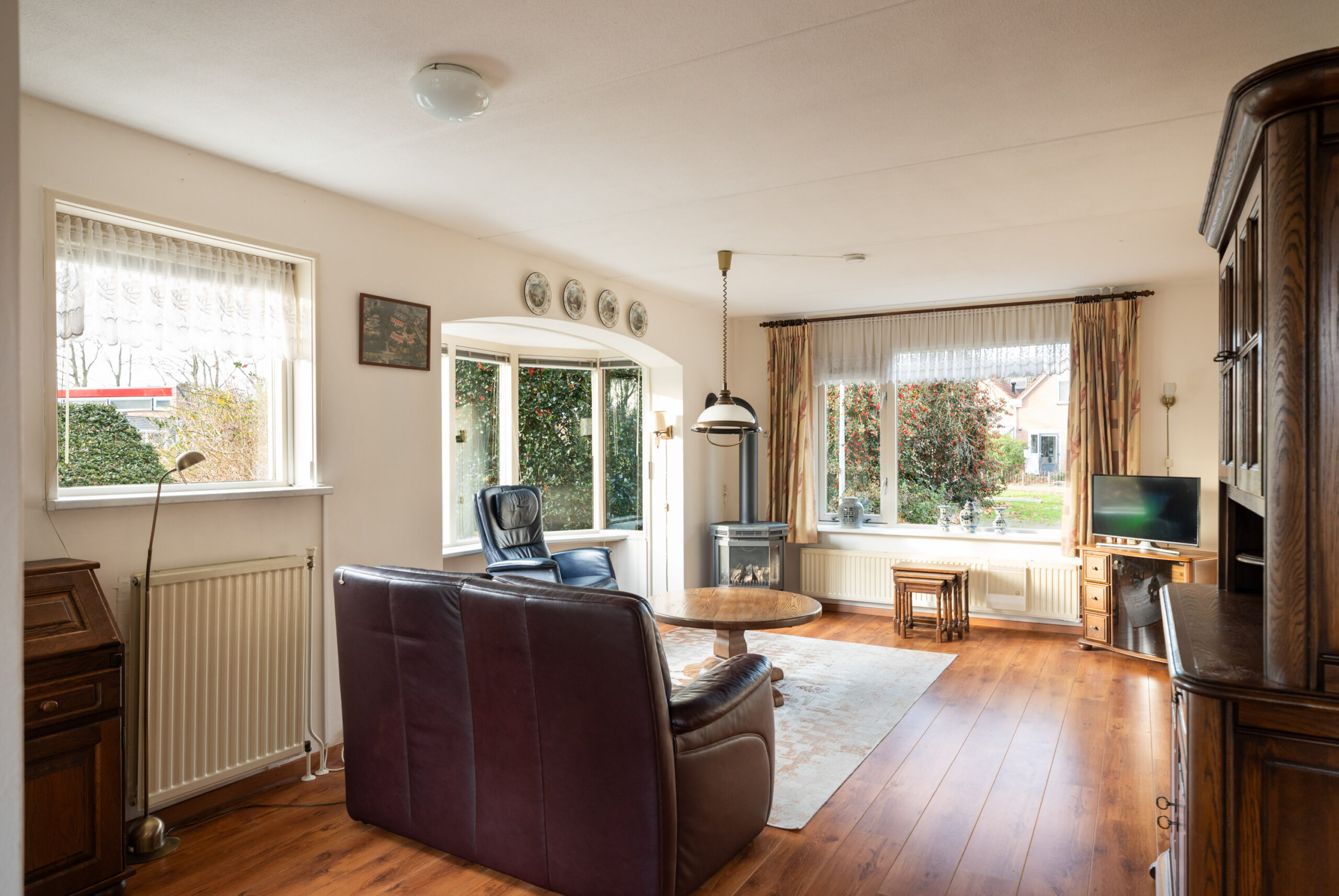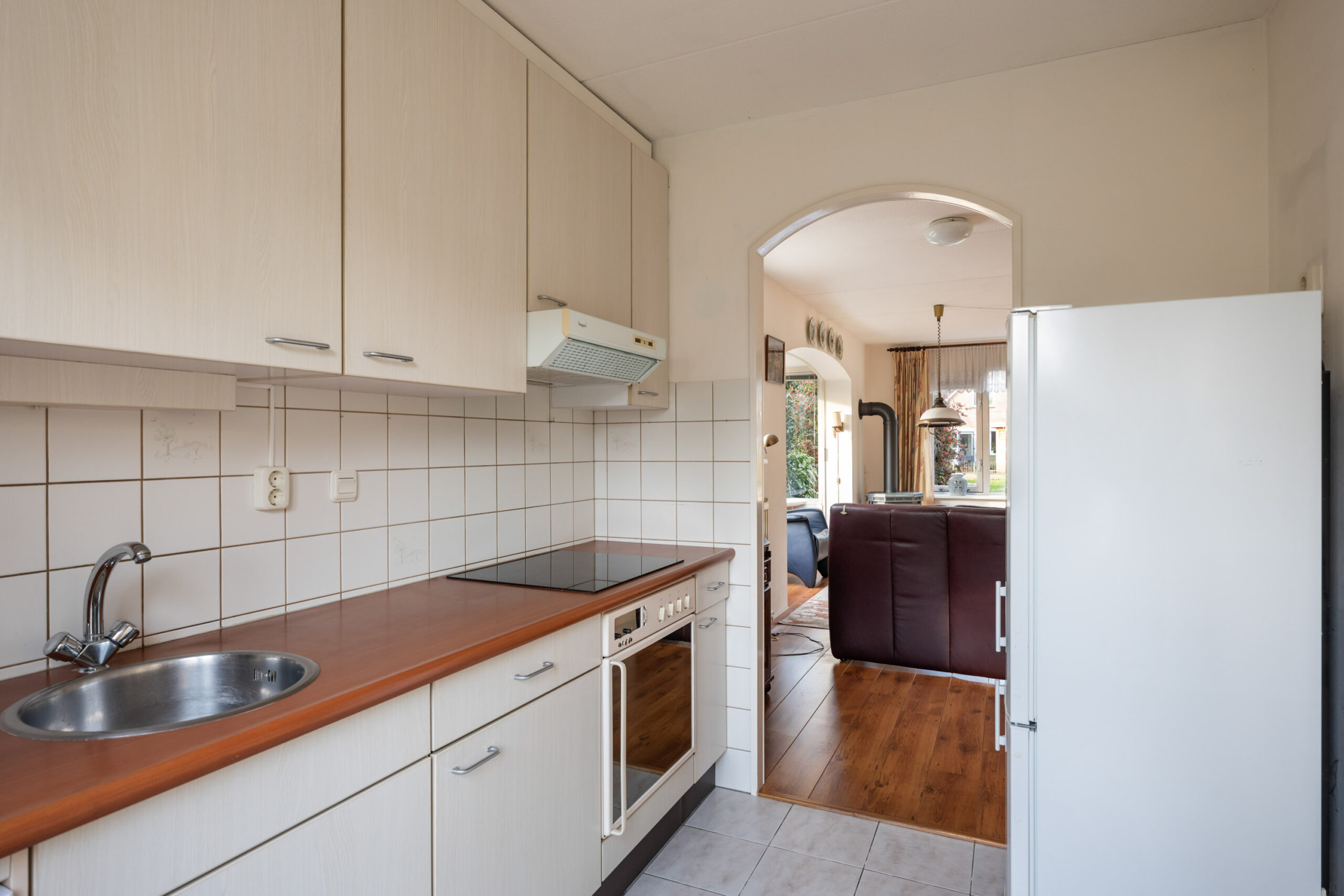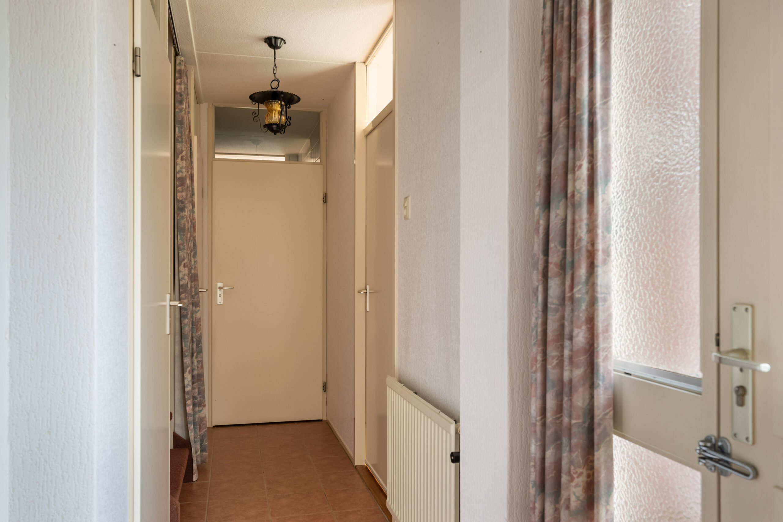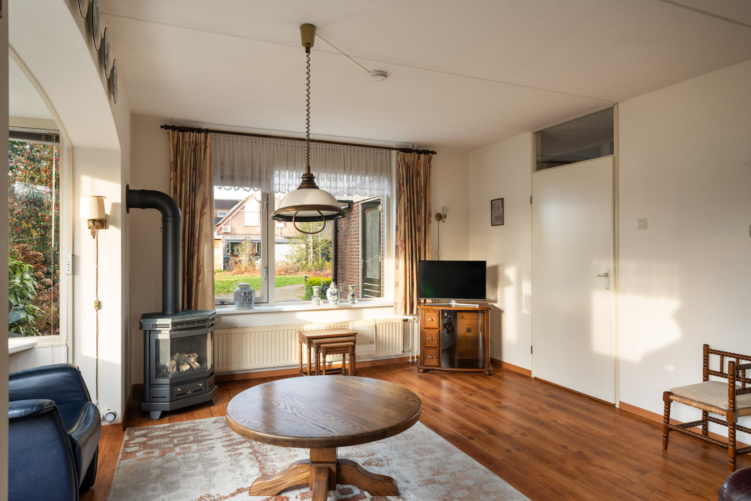 Begane grond: via de entree komt u in de hal met de meterkast, praktische bergkast onder de trap en een toiletruimte. Vanuit de hal heeft u toegang tot de ruime en lichte woonkamer, door de erker is er meer ruimte en licht. In de woonkamer is een sfeervolle gaskachel ingebouwd en de woonkamer staat in directe verbinding met de eetkamer, waar voldoende ruimte is voor een royale eettafel. De dichte keukenruimte grenst aan de eetkamer en is praktisch ingedeeld met diverse inbouwapparatuur en voldoende werk- en kastruimte. Vanuit de keuken is via de achterdeur toegang tot buiten. Aan de voorzijde van de woning bevindt zich een ruime inpandige berging van ca. 6 m² met toegang binnendoor vanuit de hal.